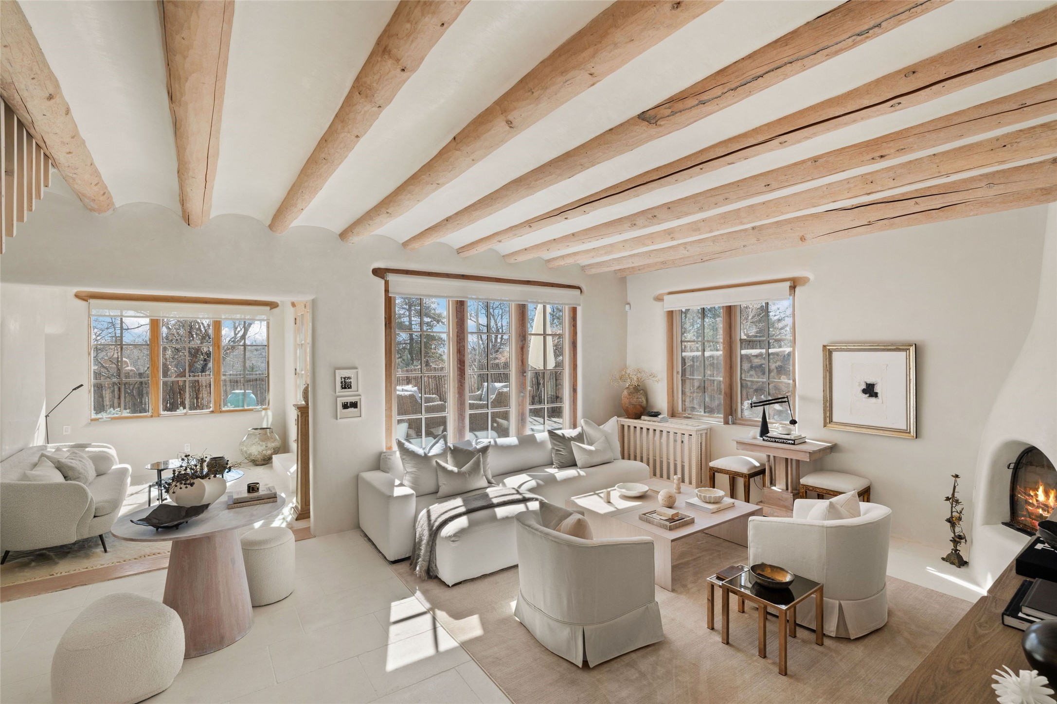 This exquisite 3-bedroom, 2 bathroom home is truly one of the prettiest we've seen. Located in the highly sought-after historic East side of Santa Fe, it boasts luxurious finishes including a La Cornue stove, built in Sub Zero refrigerator, Dolomite marble counter tops, tumbled honed Limestone flooring and an immaculate but charming professionally landscaped yard. Thoughtfully designed by Andrea McLaughlin of Austin, no detail has been overlooked in creating this stunning property. A true gem not to be missed!