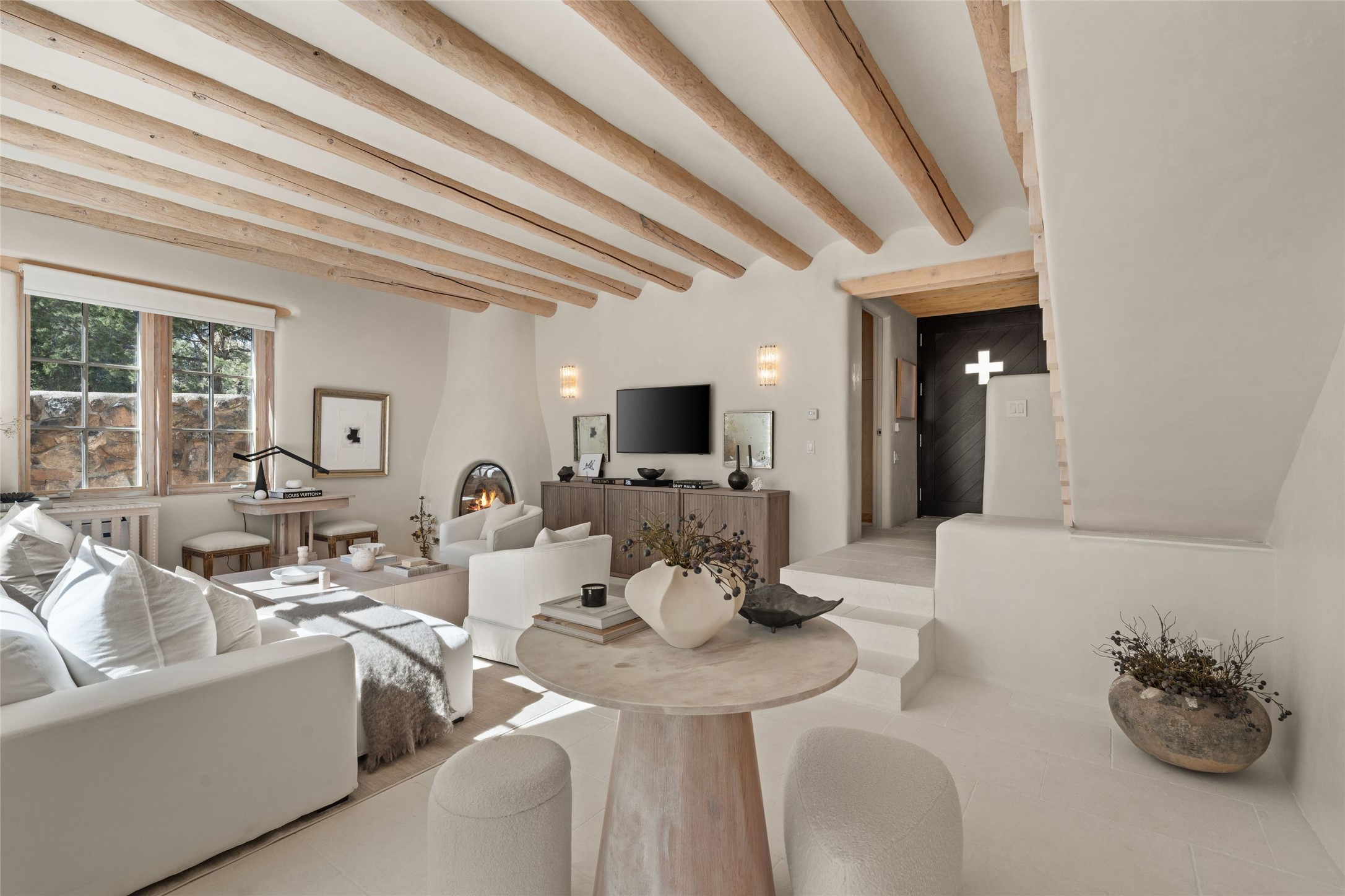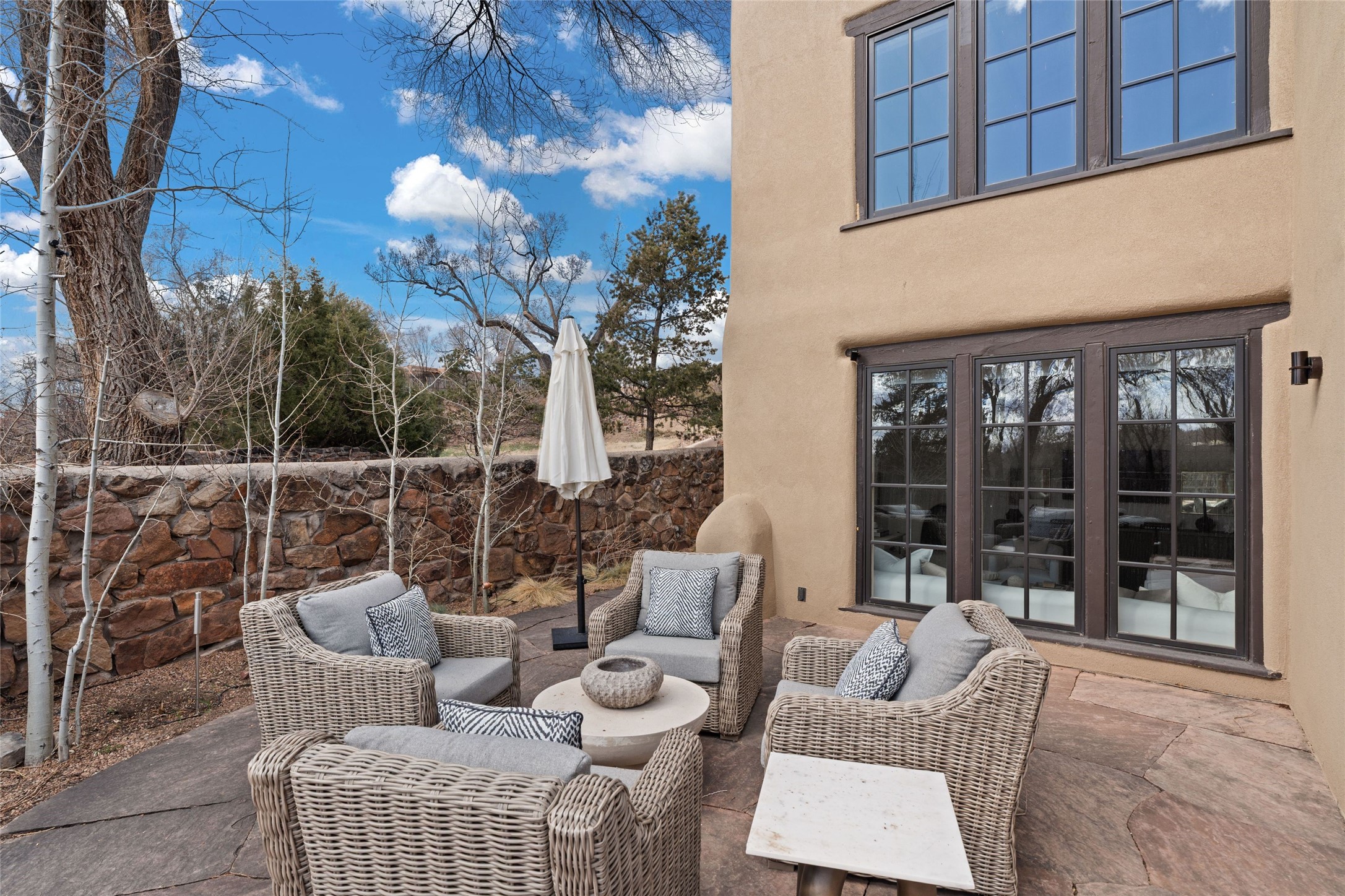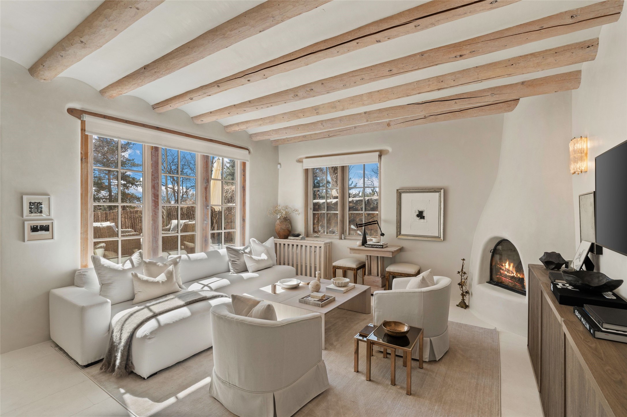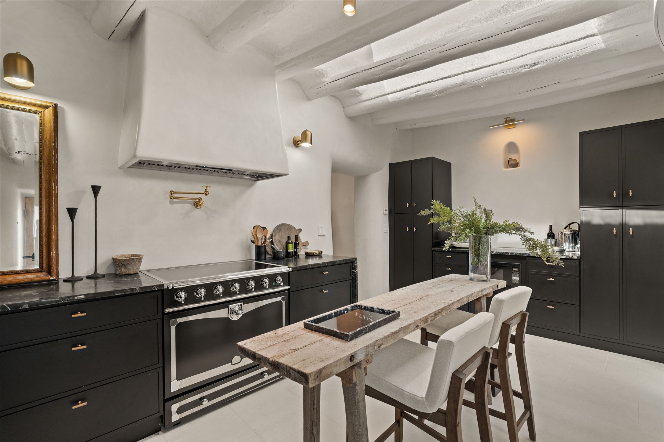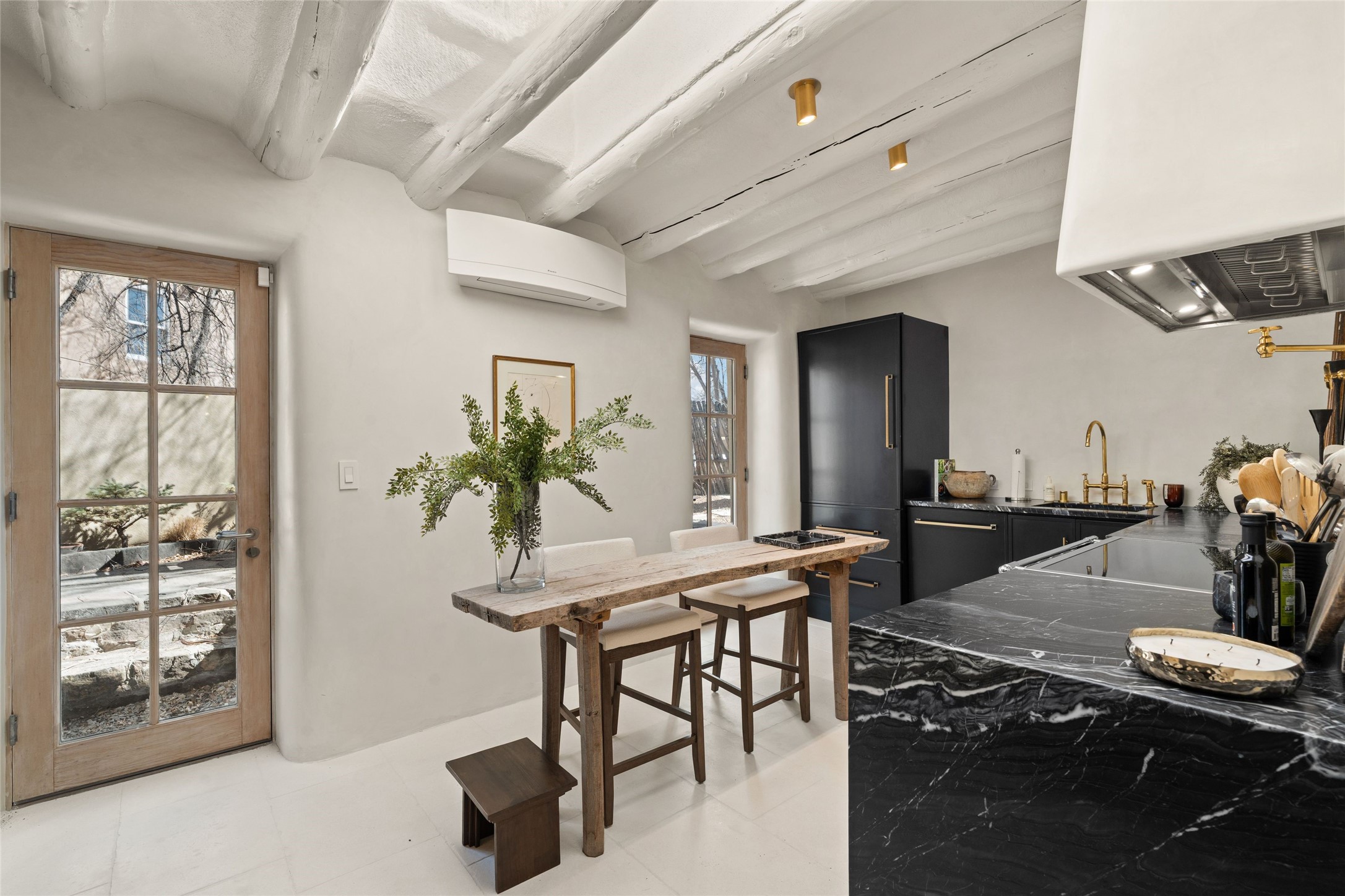 This exquisite 3-bedroom, 2 bathroom home is truly one of the prettiest we've seen. Located in the highly sought-after historic East side of Santa Fe, it boasts luxurious finishes including a La Cornue stove, built in Sub Zero refrigerator, Dolomite marble counter tops, tumbled honed Limestone flooring and an immaculate but charming professionally landscaped yard. Thoughtfully designed by Andrea McLaughlin of Austin, no detail has been overlooked in creating this stunning property. A true gem not to be missed!
