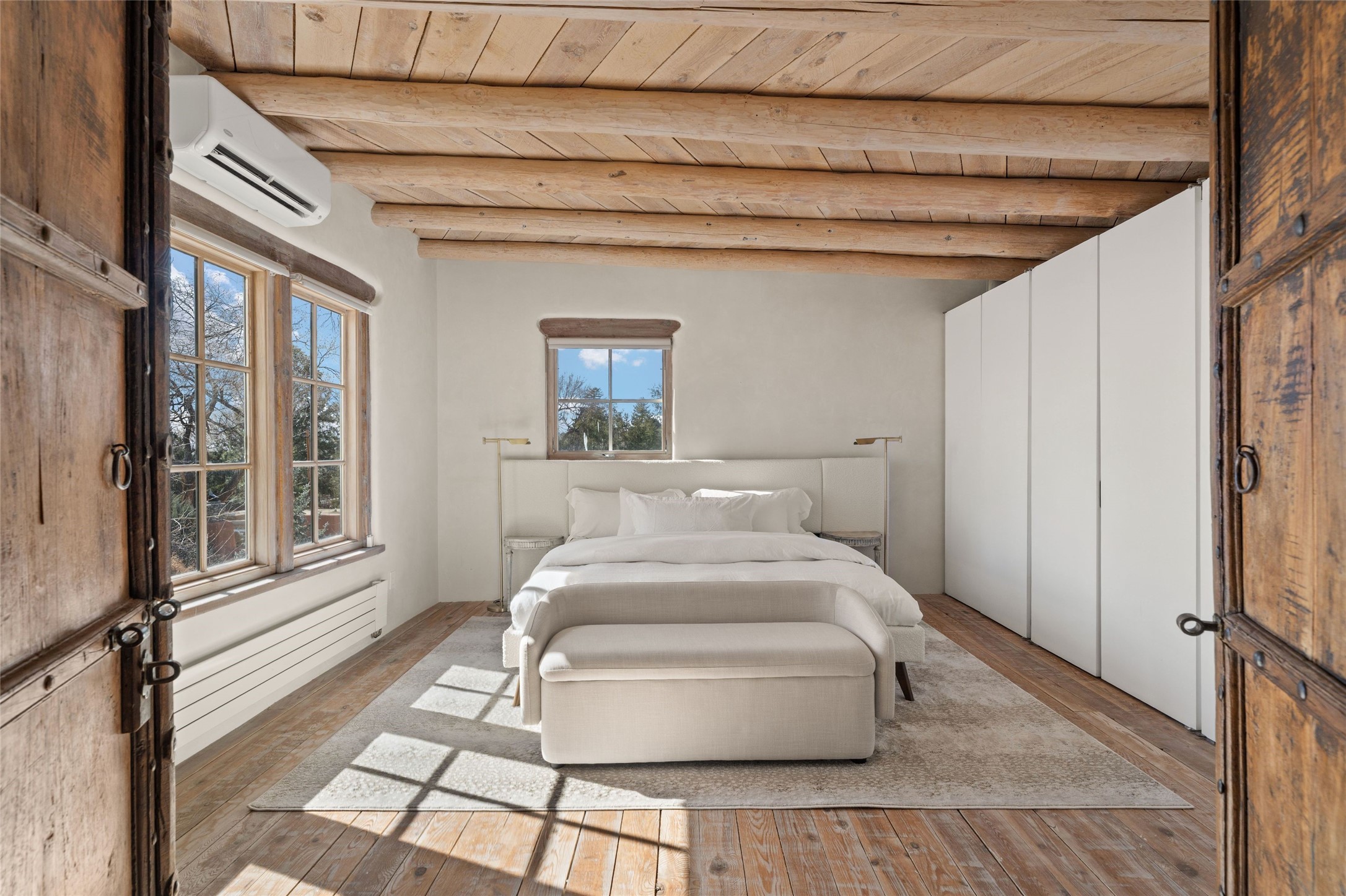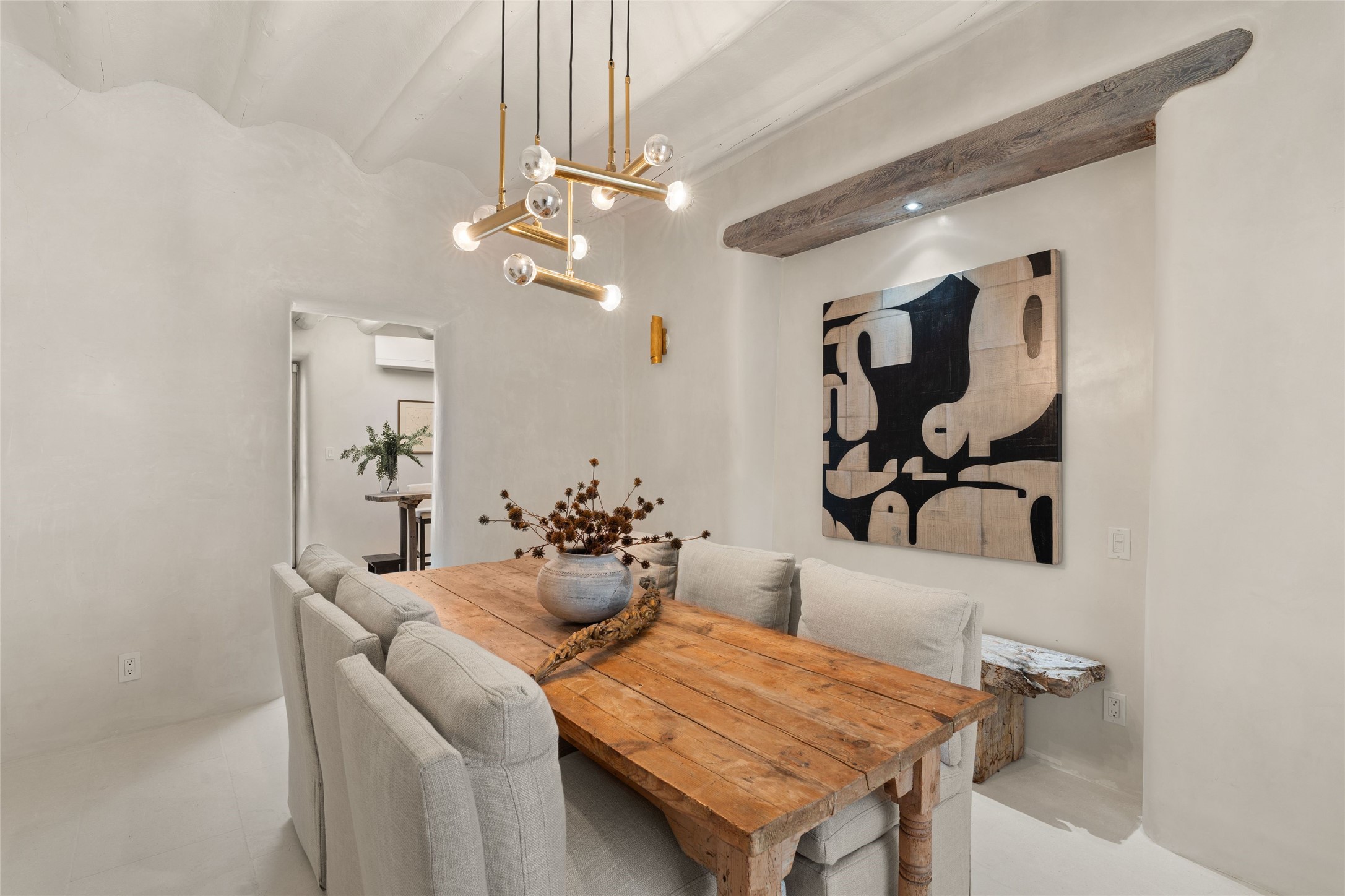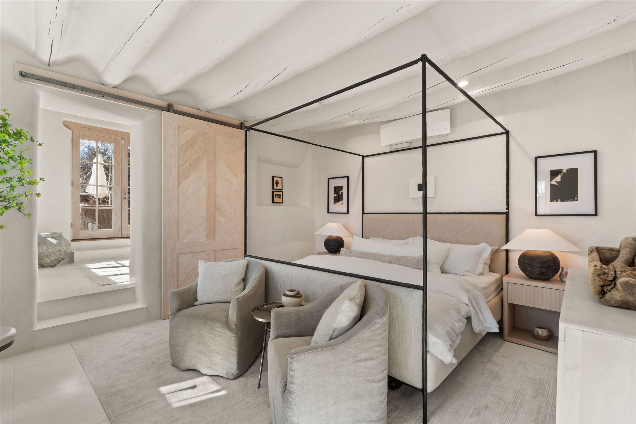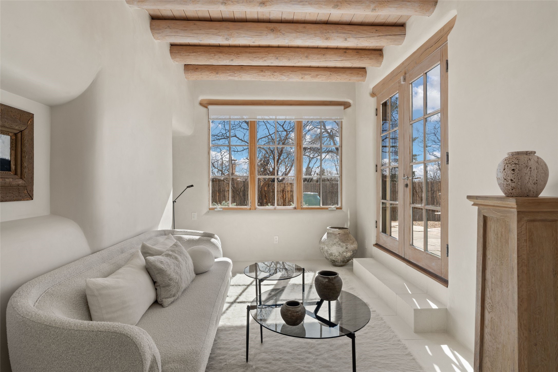 This exquisite 3-bedroom, 2 bathroom home is truly one of the prettiest we've seen. Located in the highly sought-after historic East side of Santa Fe, it boasts luxurious finishes including a La Cornue stove, built in Sub Zero refrigerator, Dolomite marble counter tops, tumbled honed Limestone flooring and an immaculate but charming professionally landscaped yard. Thoughtfully designed by Andrea McLaughlin of Austin, no detail has been overlooked in creating this stunning property. A true gem not to be missed!
