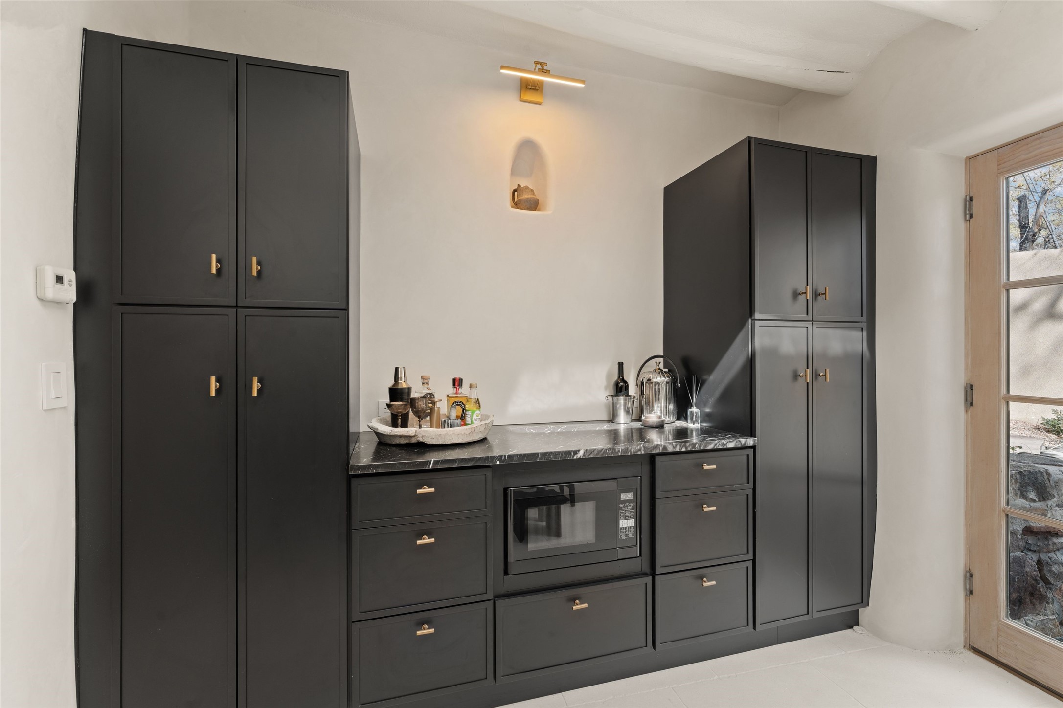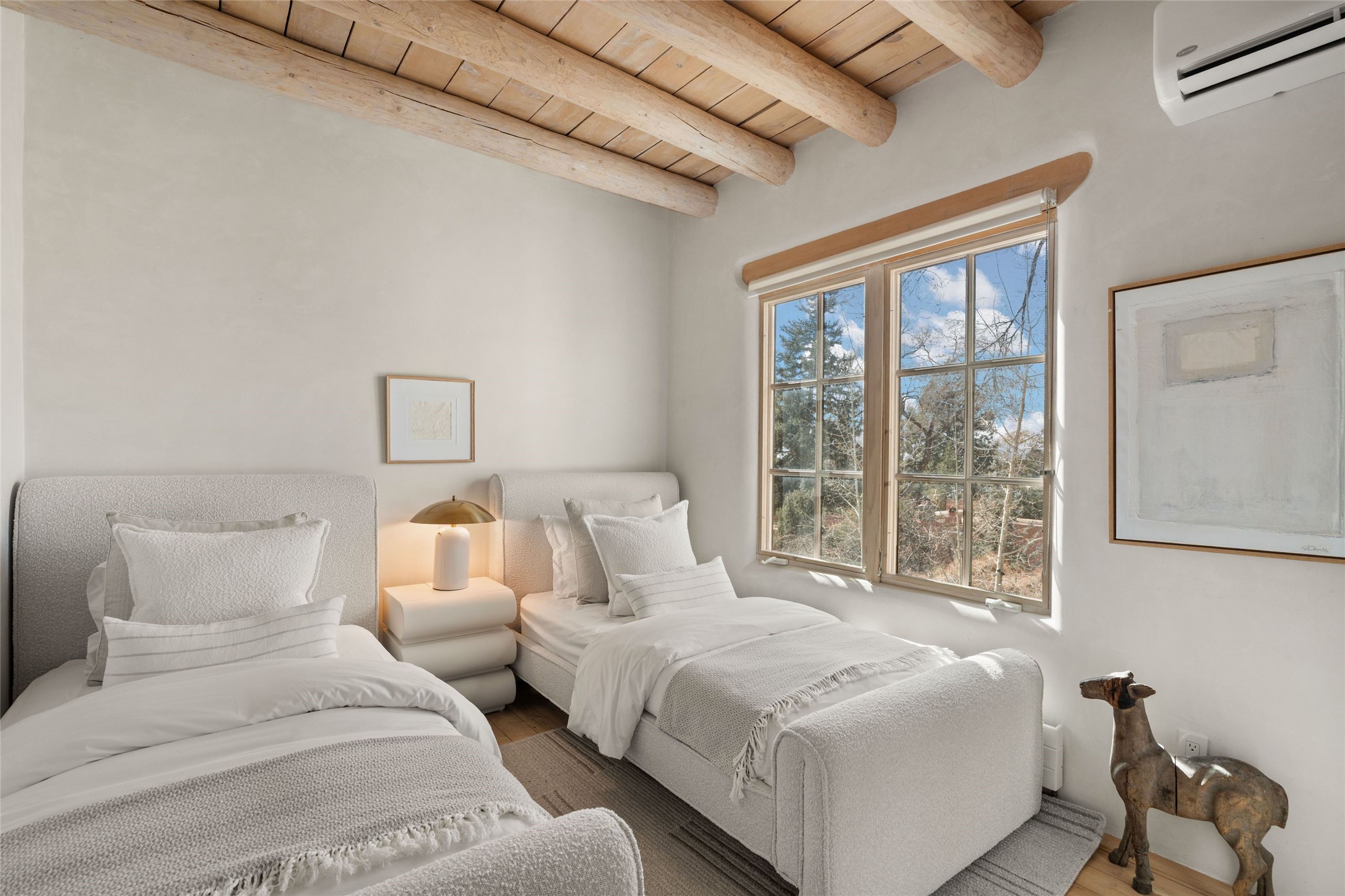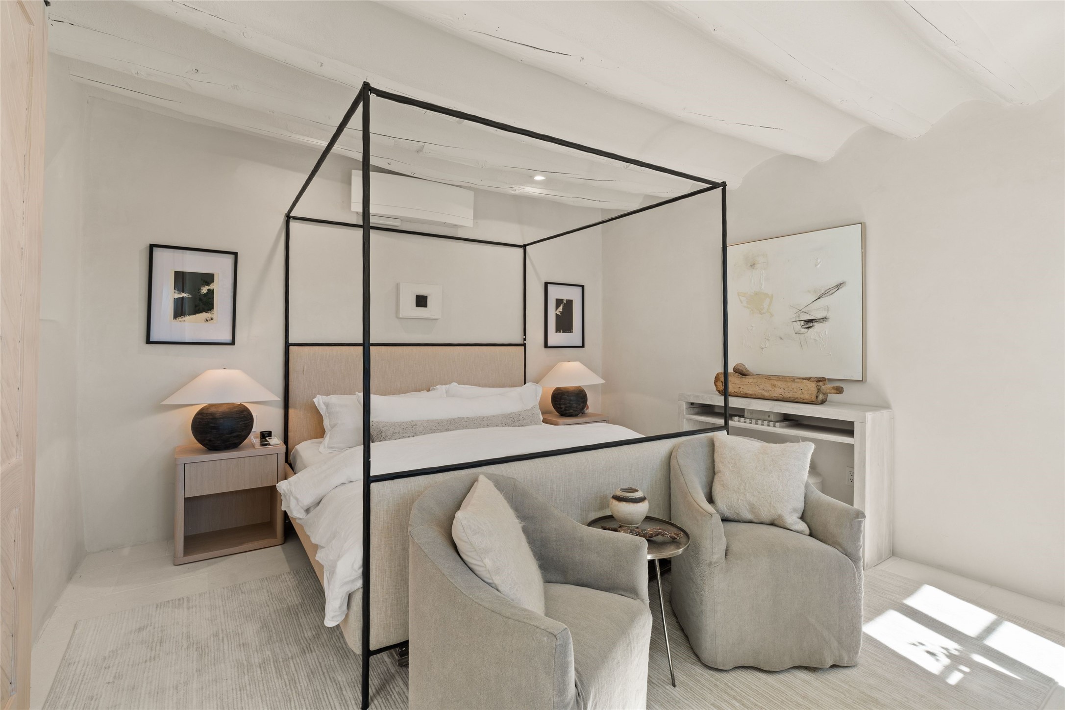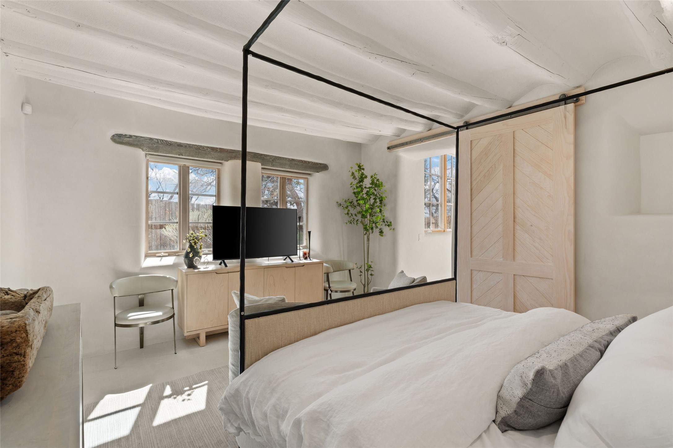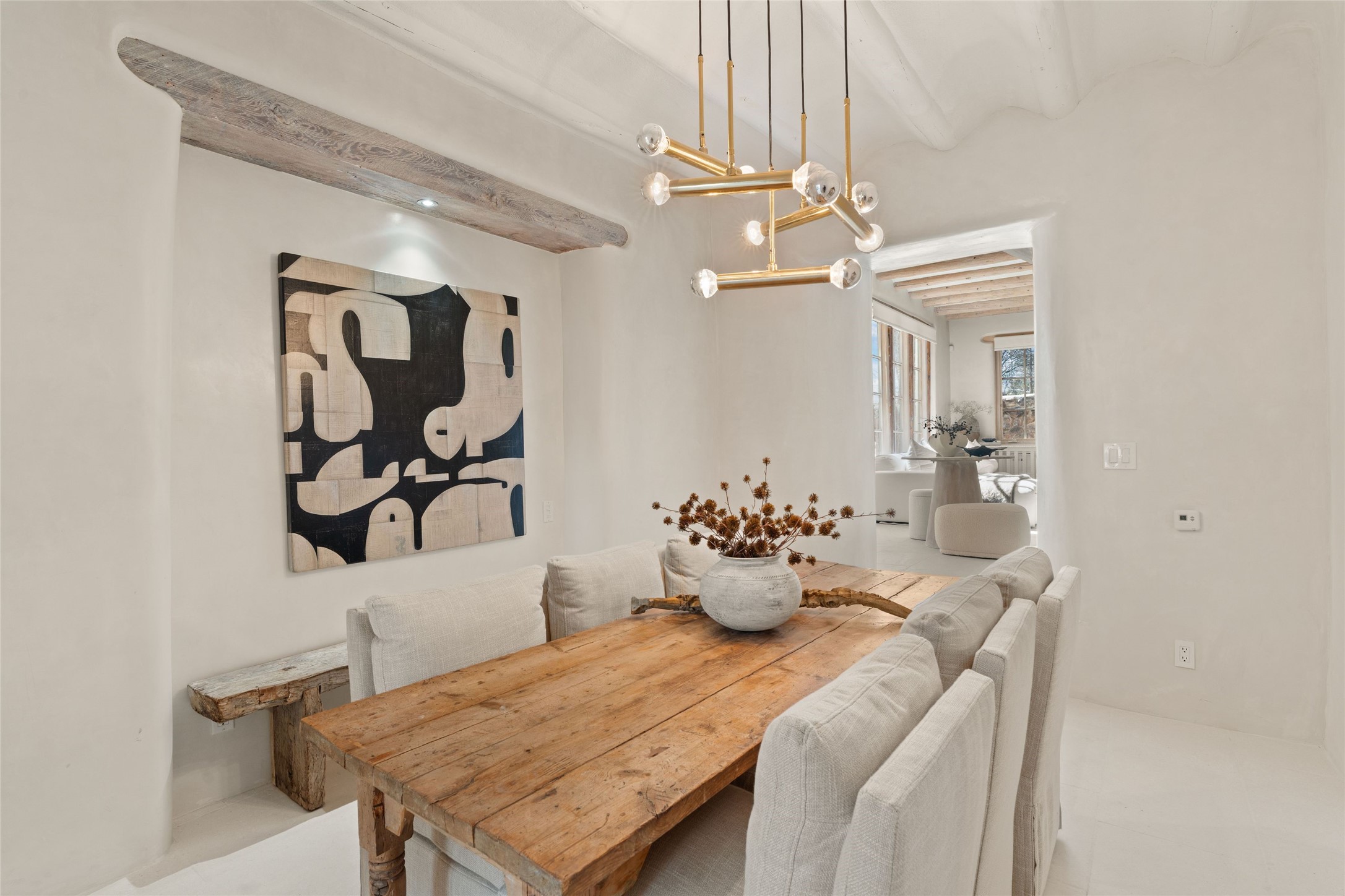This exquisite 3-bedroom, 2 bathroom home is truly one of the prettiest we've seen. Located in the highly sought-after historic East side of Santa Fe, it boasts luxurious finishes including a La Cornue stove, built in Sub Zero refrigerator, Dolomite marble counter tops, tumbled honed Limestone flooring and an immaculate but charming professionally landscaped yard. Thoughtfully designed by Andrea McLaughlin of Austin, no detail has been overlooked in creating this stunning property. A true gem not to be missed!