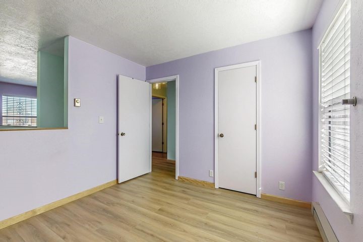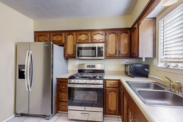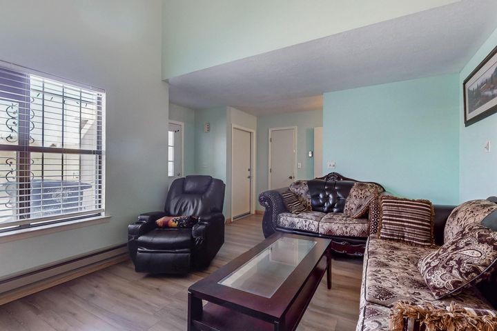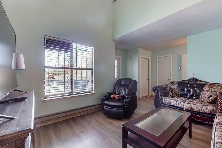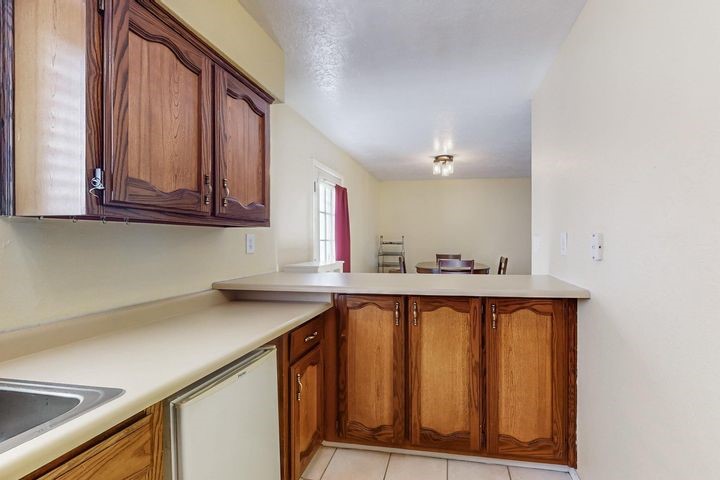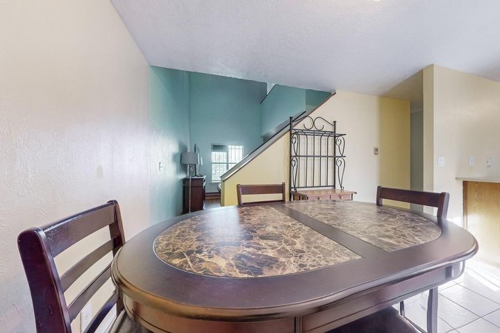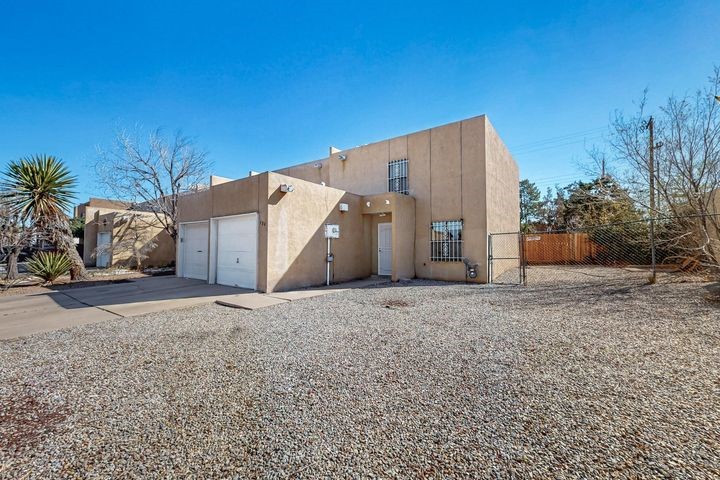 Great opportunity with this charming 2-story townhome with a prime location near Kirtland Air Force Base and Sandia Labs. This charming residence features a thoughtfully designed open-flowing floor plan that maximizes space and functionality, creating a welcoming ambiance with high ceilings, two spacious bedrooms and an oversized one-car garage. The sun-filled kitchen offers a breakfast bar and nook, baseboards, and evaporative cooling. The house is on a large corner lot, providing extra space for gatherings and the potential for backyard access. Convenient location and close to stores and restaurants. DON'T MISS THIS AMAZING OPPORTUNITY!!!