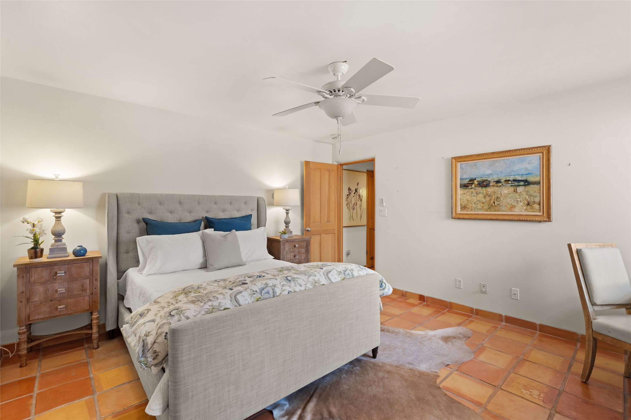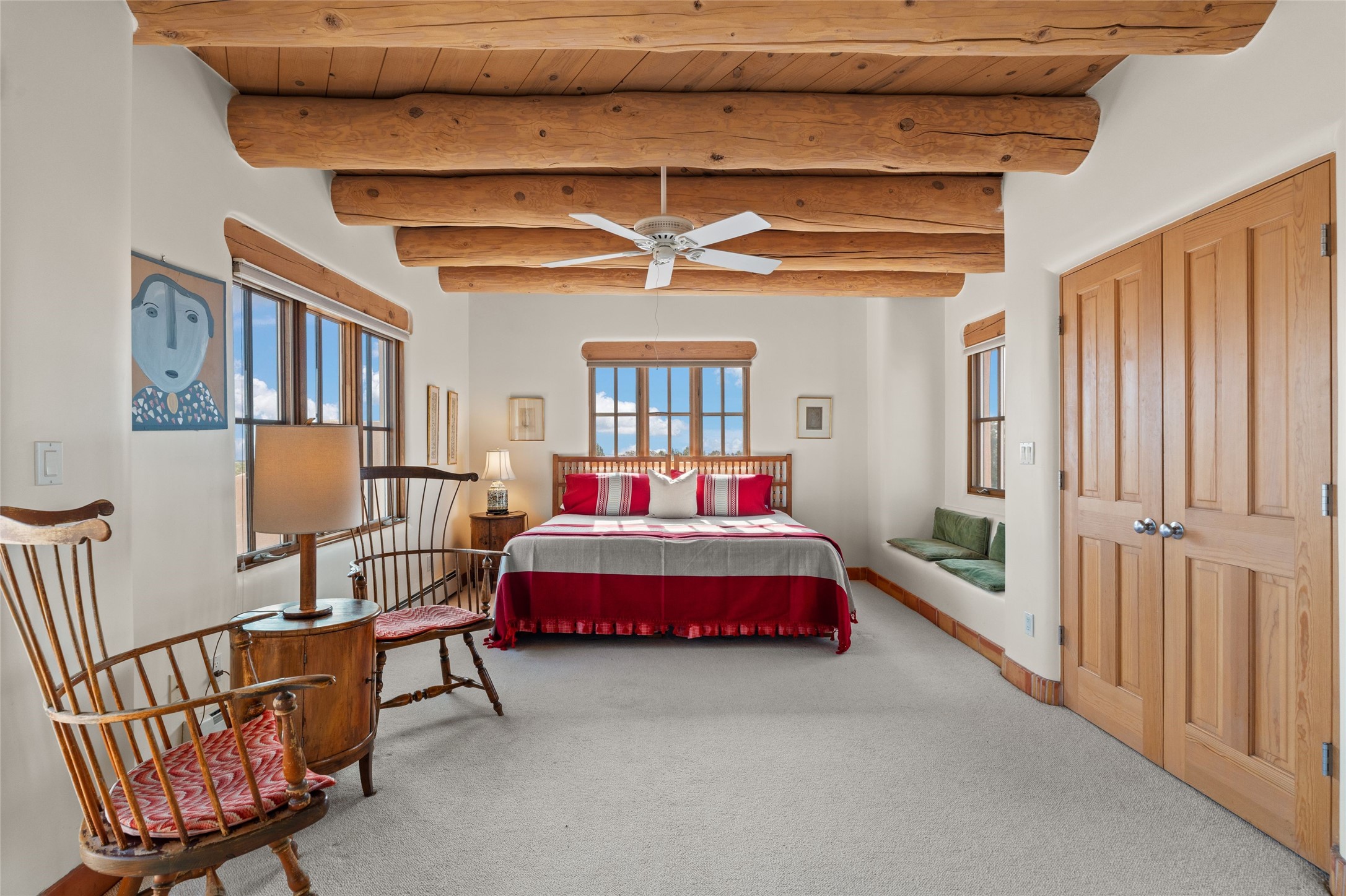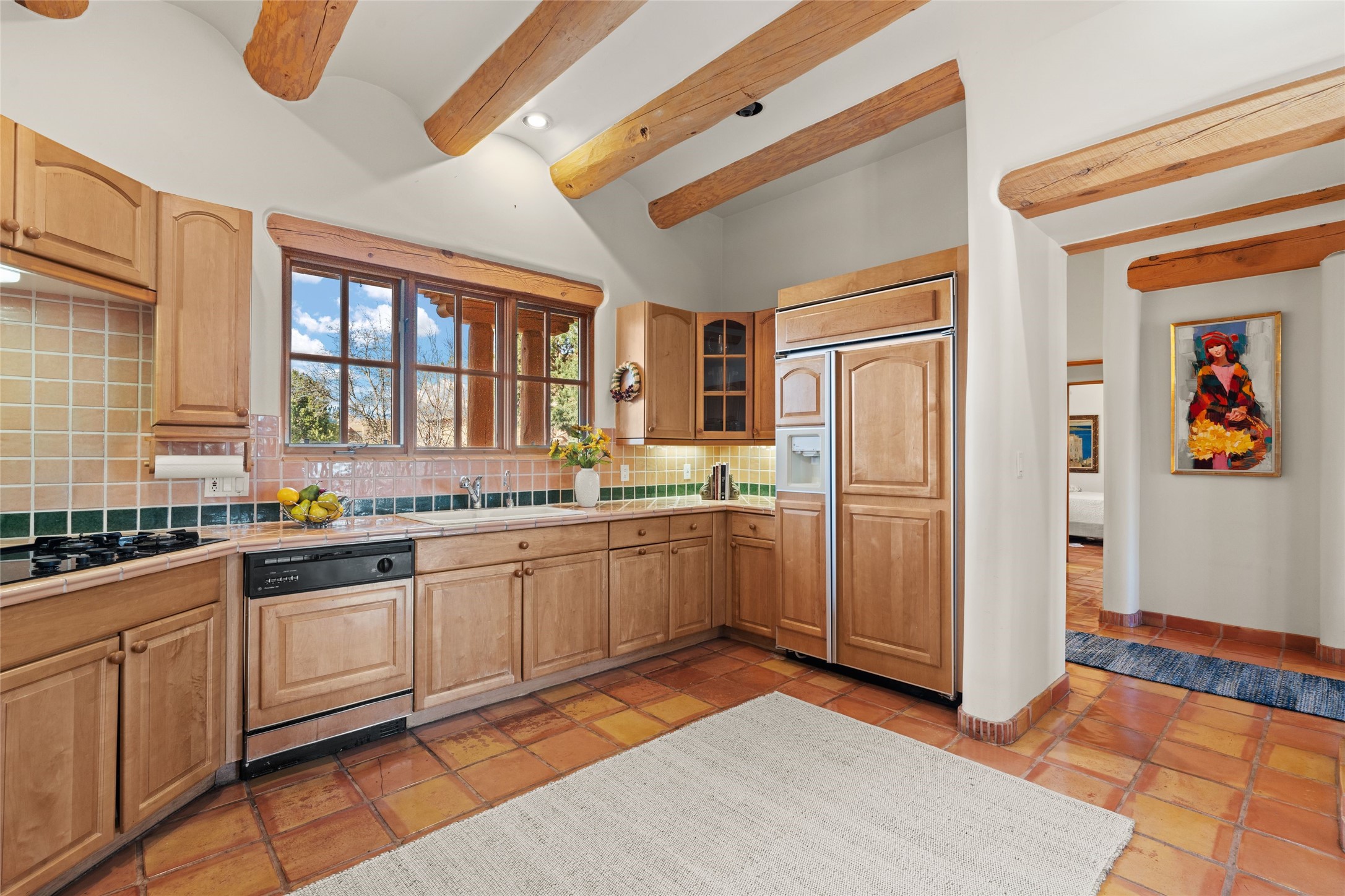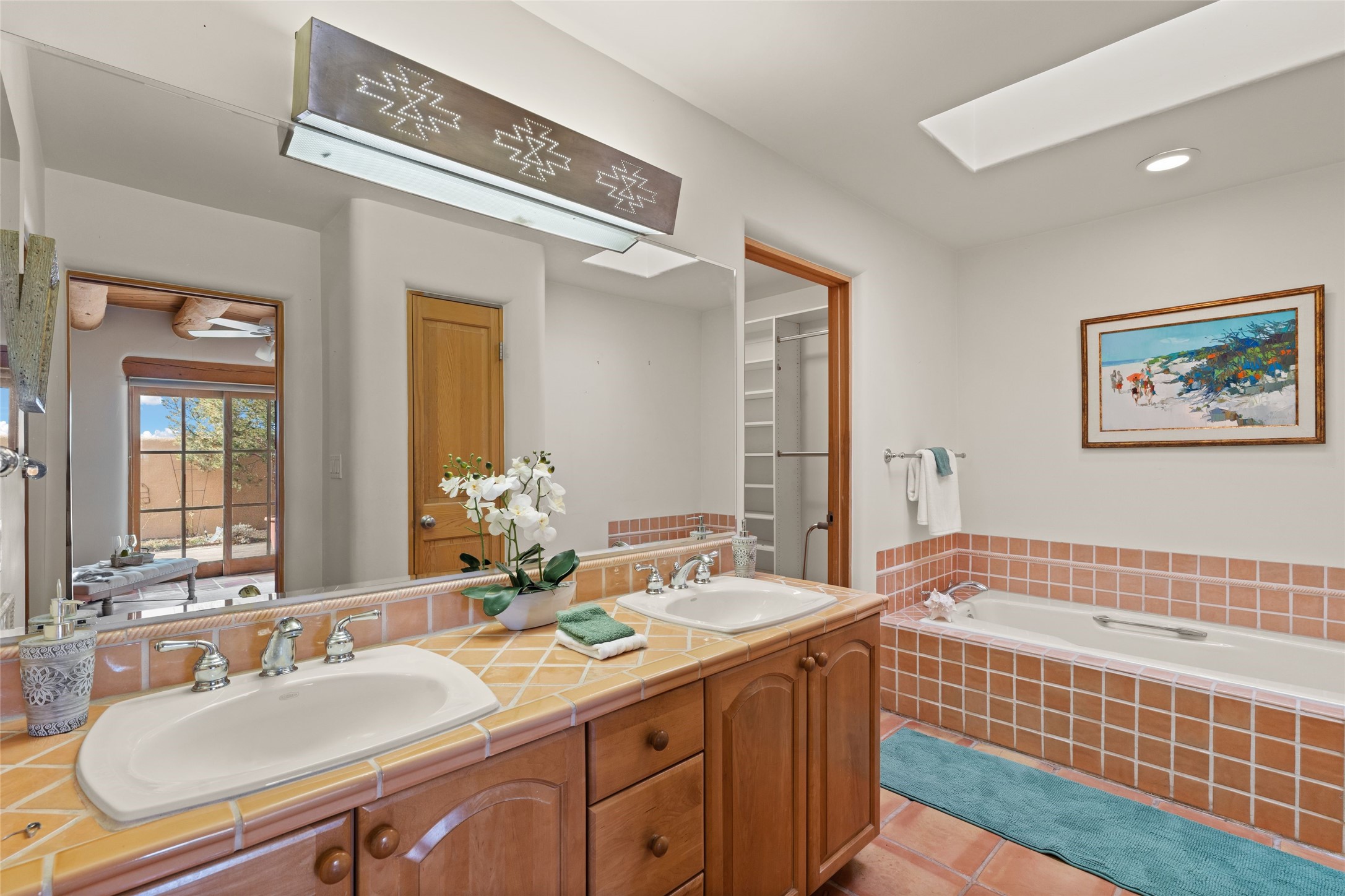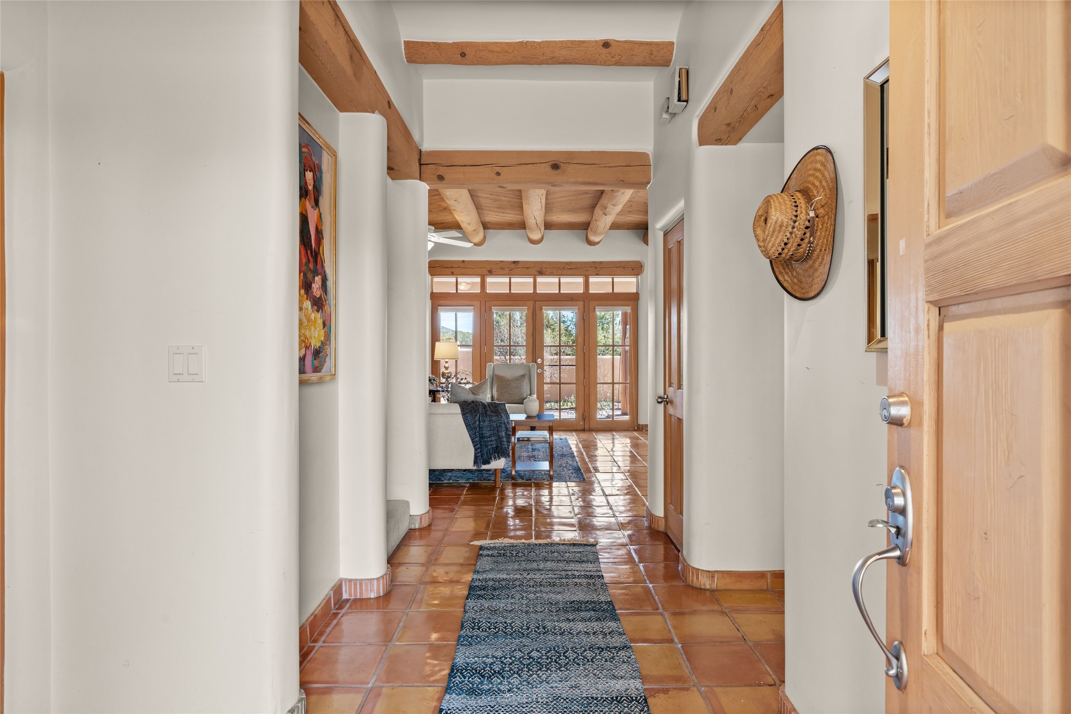 Classic Quail Run Pinon D floorplan featuring Santa Fe Style, great separation of bedrooms and timeless craftsmanship with ample sized rooms, a large kitchen and bright open living room. A serene and flowing space that allows for comfortable indoor living while showcasing spacious terraces that will beckon you outdoors. Tall portal with vigas offers views of the golf course, mountains and those famous Santa Fe skies. The gardens feature 30 specimen roses. This oversized outdoor space is ideal for entertaining. Upstairs there is a large sun flooded room that can be used as a bedroom or study. It includes an adjoining bathroom and outdoor deck with expansive scenery. Quintessential style that embodies Santa Fe beauty on the inside and out. If you are looking for a fabulous community with 24 hour hosted security and countless amenities as well as social clubs and gatherings, this is your next home! Ownership includes access to a state of the art gym, pool/spa, tennis/pickleball courts, golf, fitness classes and much more; come and see!