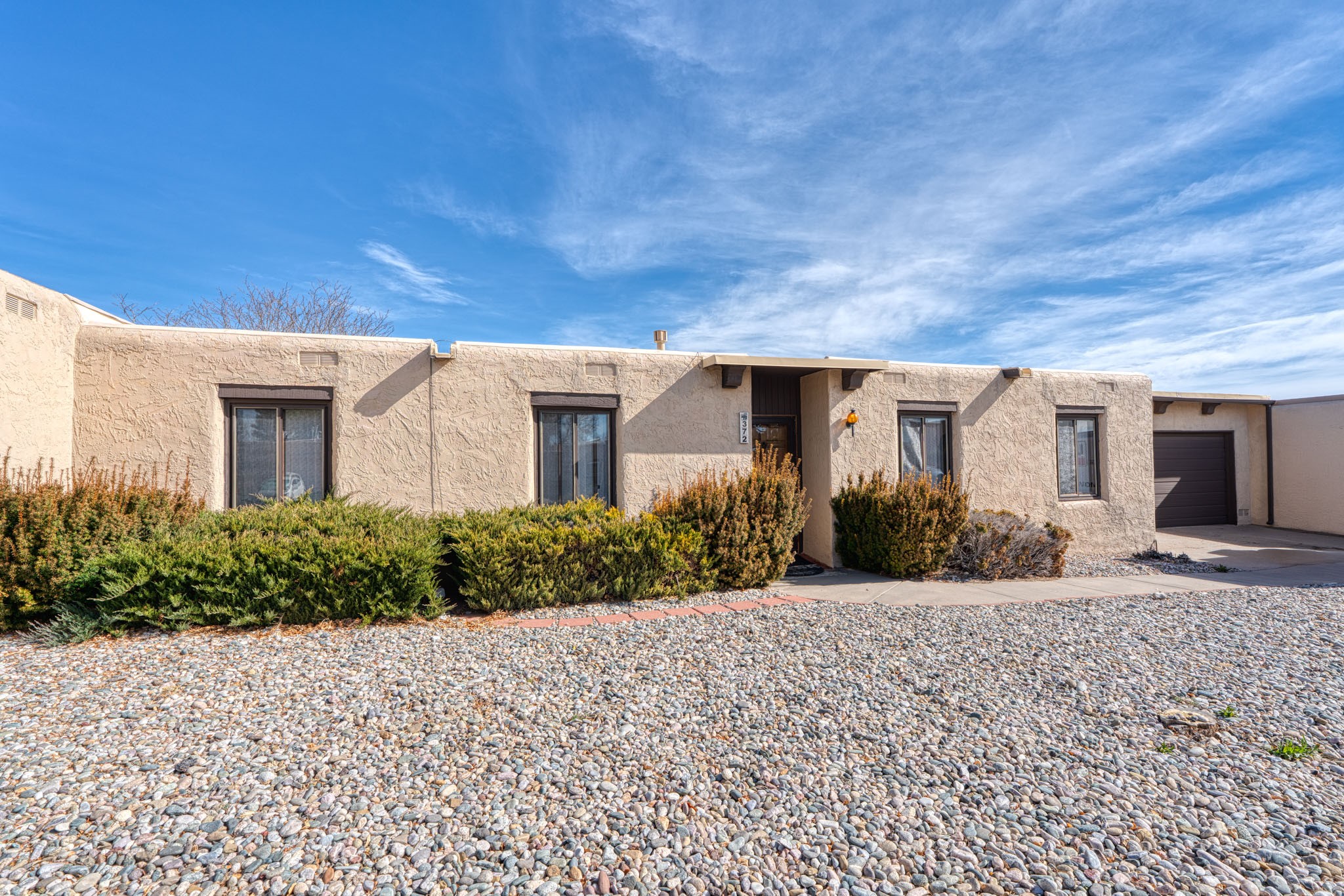 Nestled in the serene community of White Rock, this charming home offers a fantastic floor plan and an abundance of natural light. The property boasts a brand-new TPO roof, installed in 2024, and fresh interior paint. Situated just steps away from the scenic Chamisa Park, the backyard offers a tranquil, unobstructed view of the expansive space. Inside, the spacious layout includes two versatile living areas, providing the perfect balance of comfort and flexibility. The main living room is highlighted by a cozy fireplace and seamless access to the covered patio, ideal for outdoor entertaining. The second living space offers endless possibilities - whether as a formal dining room, home office, studio, or playroom. The primary suite is a true retreat, complete with a large walk-in closet and a luxurious three-quarter bath with a wheelchair-accessible, curb-less shower. Two additional guest bedrooms share a full bath, offering comfort and convenience for family or visitors. A spacious laundry room, located adjacent to the kitchen, includes built-in cabinets for added storage. The oversized, insulated garage is a standout, featuring a private workshop area with a utility sink and a large roll-up door that opens to create backyard access! Outside, the low-maintenance backyard features thoughtfully designed xeriscaping, and is ready for your touch. Large windows throughout the home flood each room with natural light, creating a warm and inviting atmosphere. Schedule a tour today and make this White Rock gem yours!