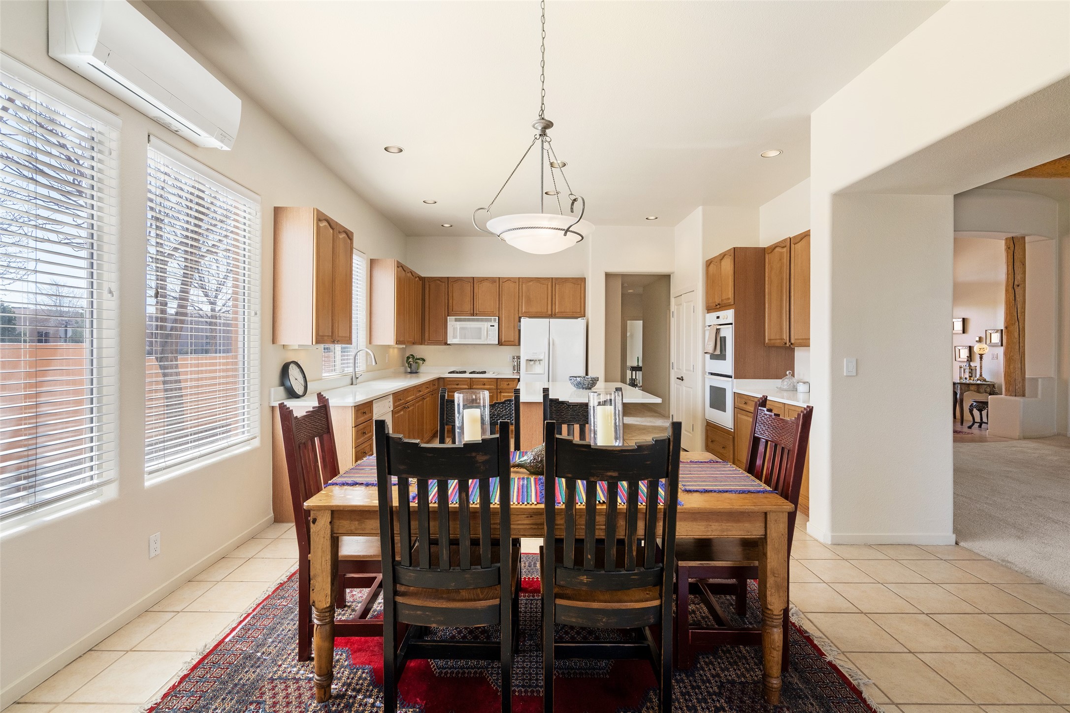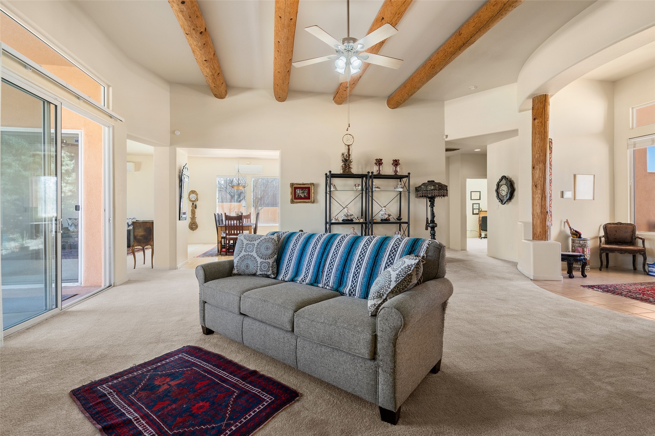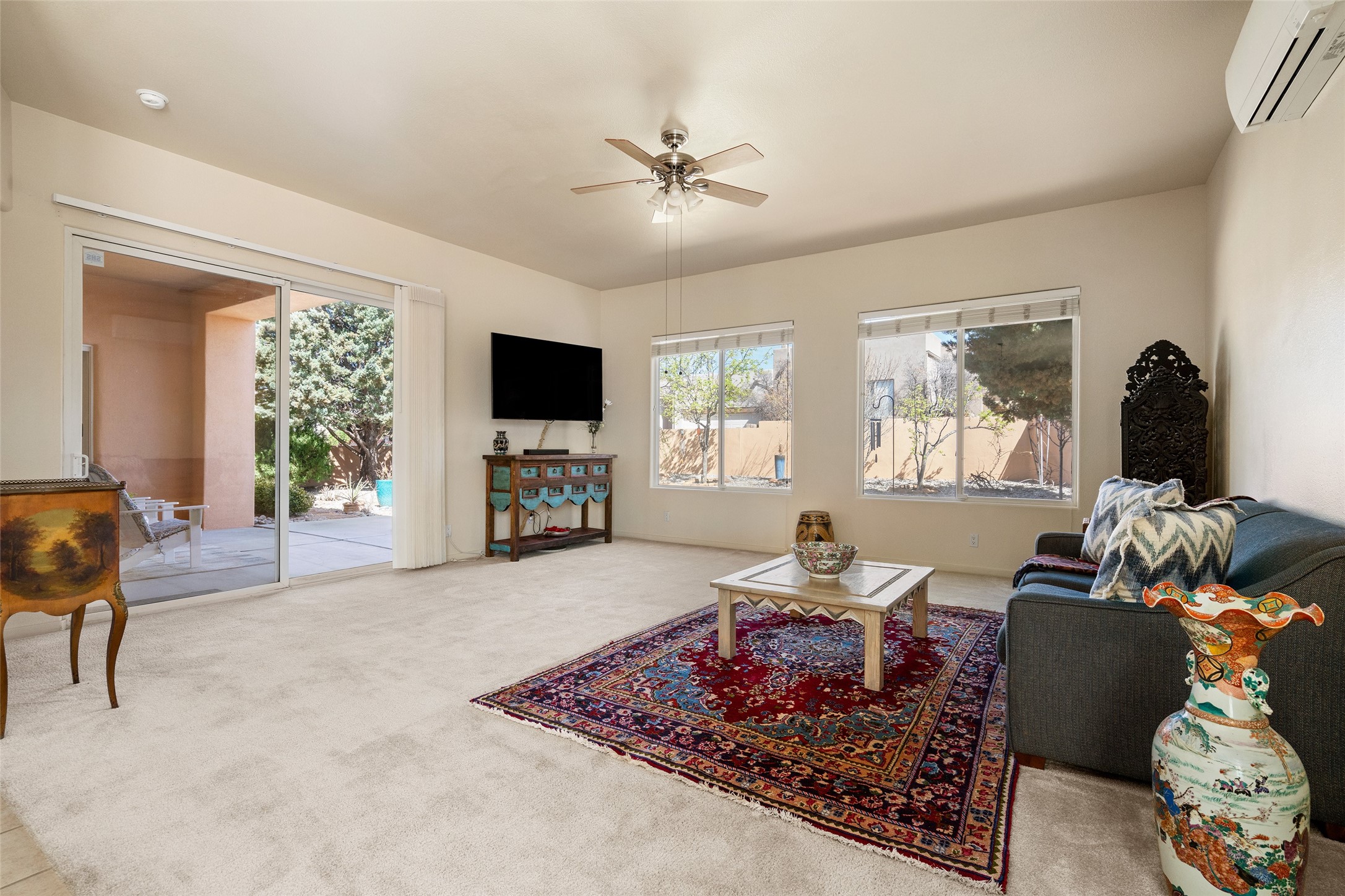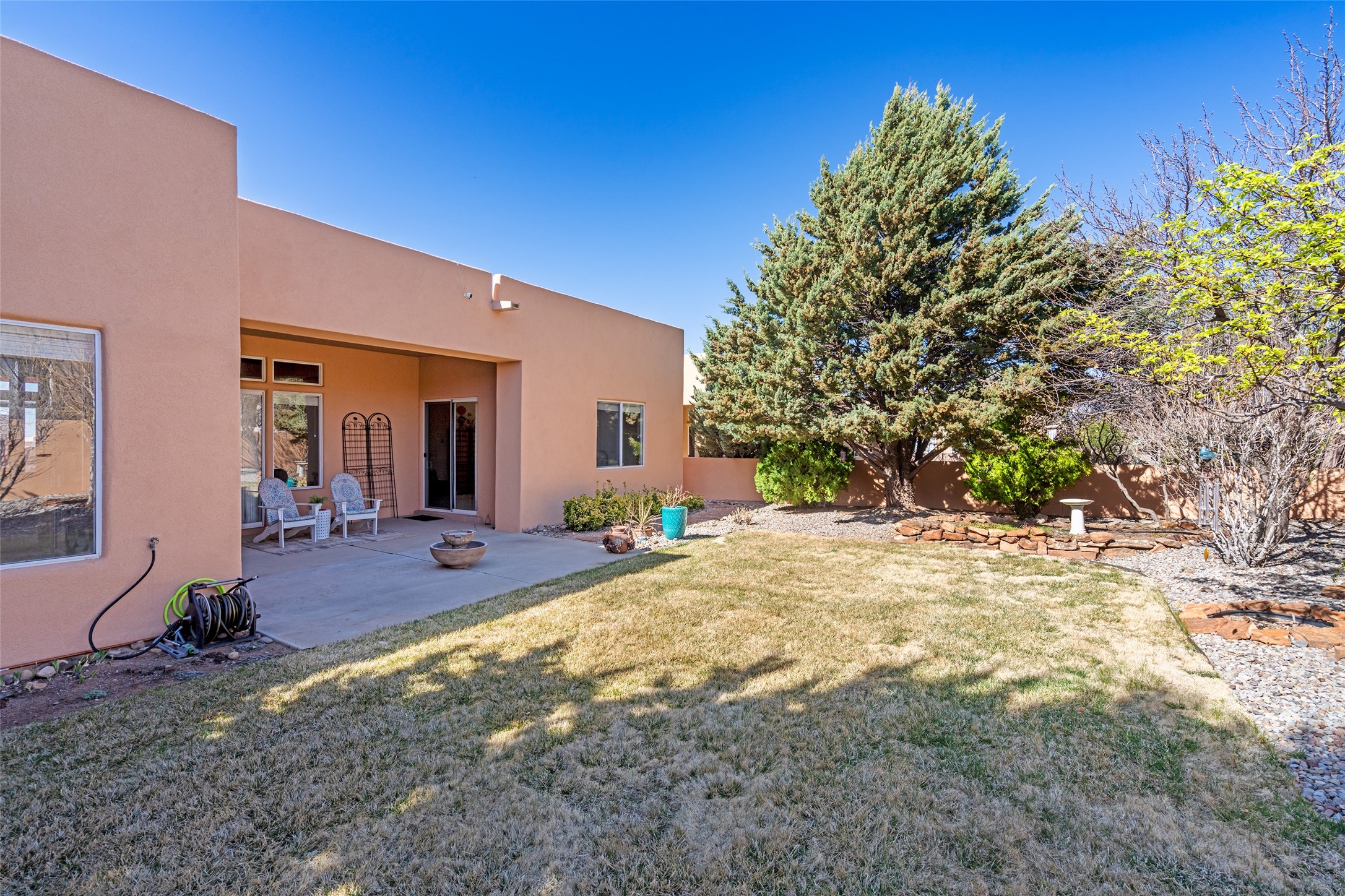 This 3-bedroom, 2-bathroom home in sought-after Rancho Viejo offers the perfect blend of comfort, space, and versatility. With two expansive living areas designed around an open-concept kitchen, this floor plan is ideal for both entertaining and everyday living. Each of the three generously sized bedrooms is thoughtfully separated for privacy, while a versatile bonus room offers endless possibilities--perfect as a den, playroom, home office, or studio. Stay comfortable year-round with radiant heat and two evaporative coolers. Step outside to a fully walled backyard oasis featuring lush grassy areas, mature trees for shade and privacy, and ample space for outdoor fun. Enjoy Santa Fe's renowned outdoor lifestyle from the covered portal, accessible from three main rooms of the home--ideal for morning coffee or evening gatherings.Experience peaceful living with modern conveniences in this well-loved home just minutes from all Santa Fe has to offer.