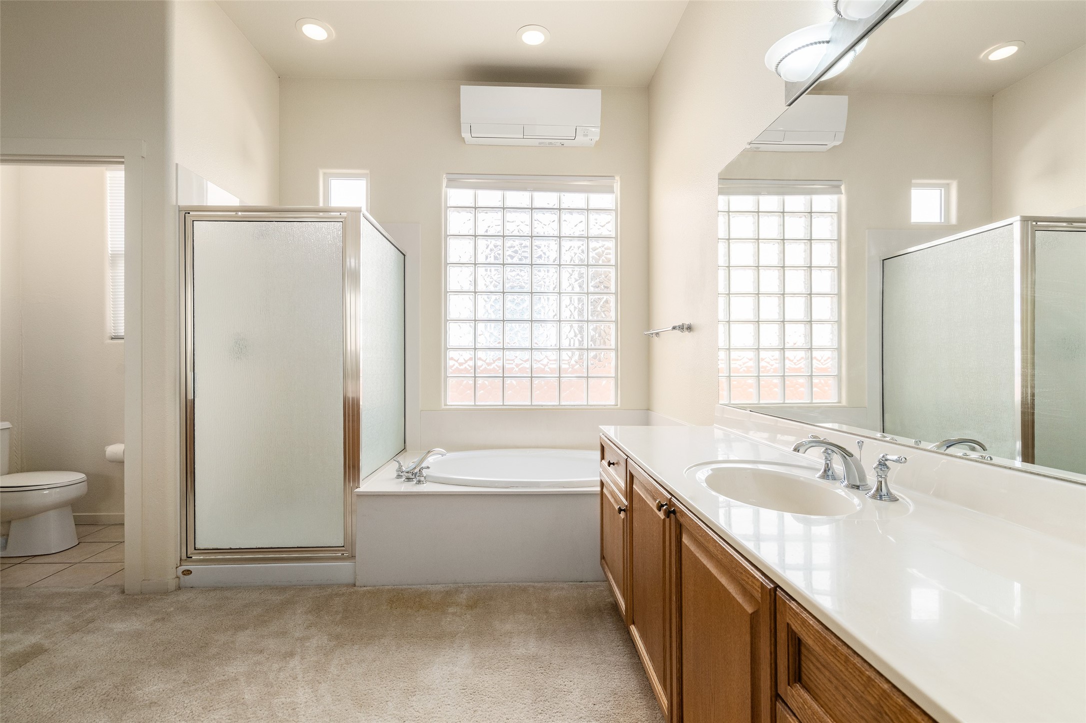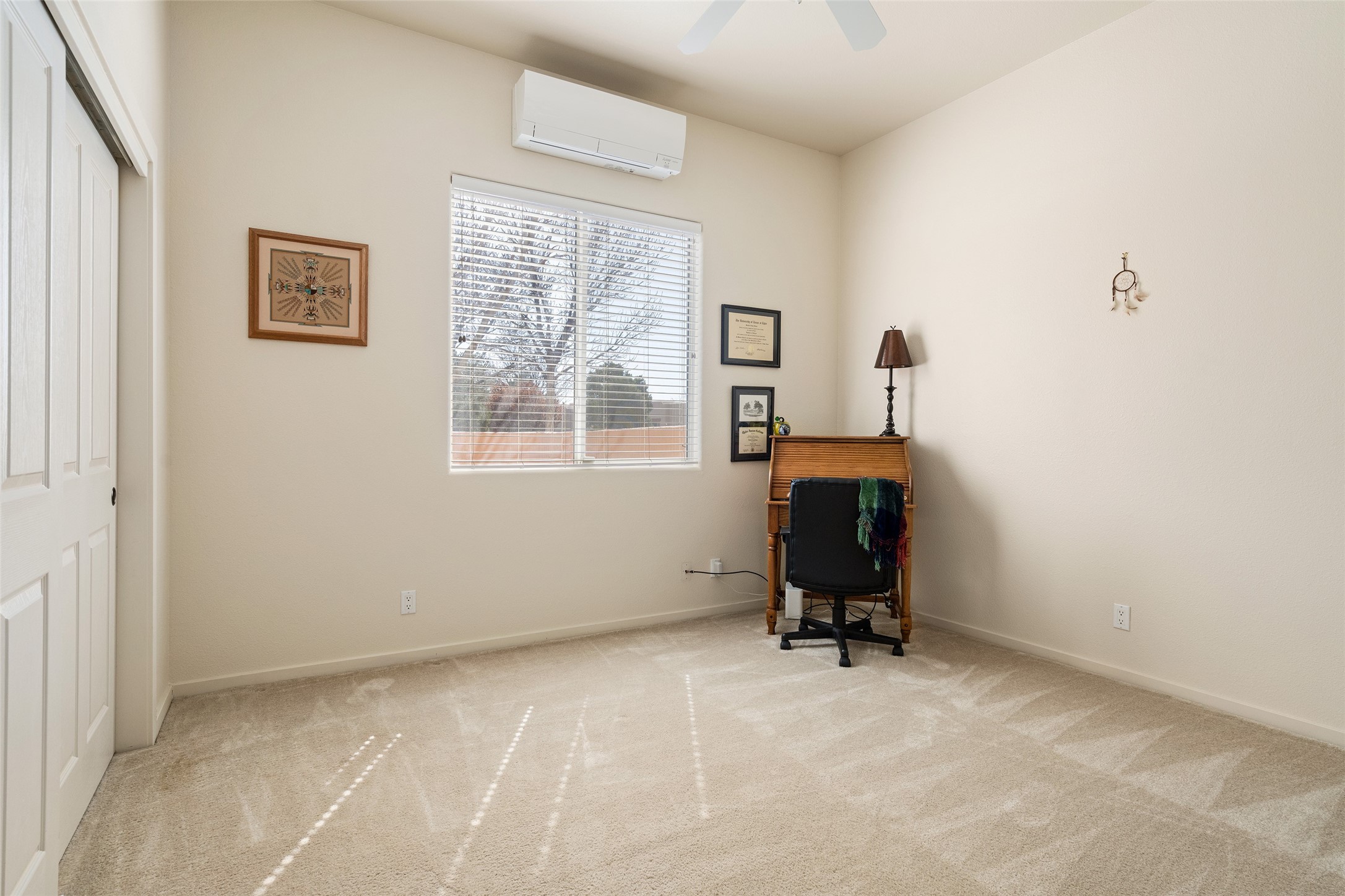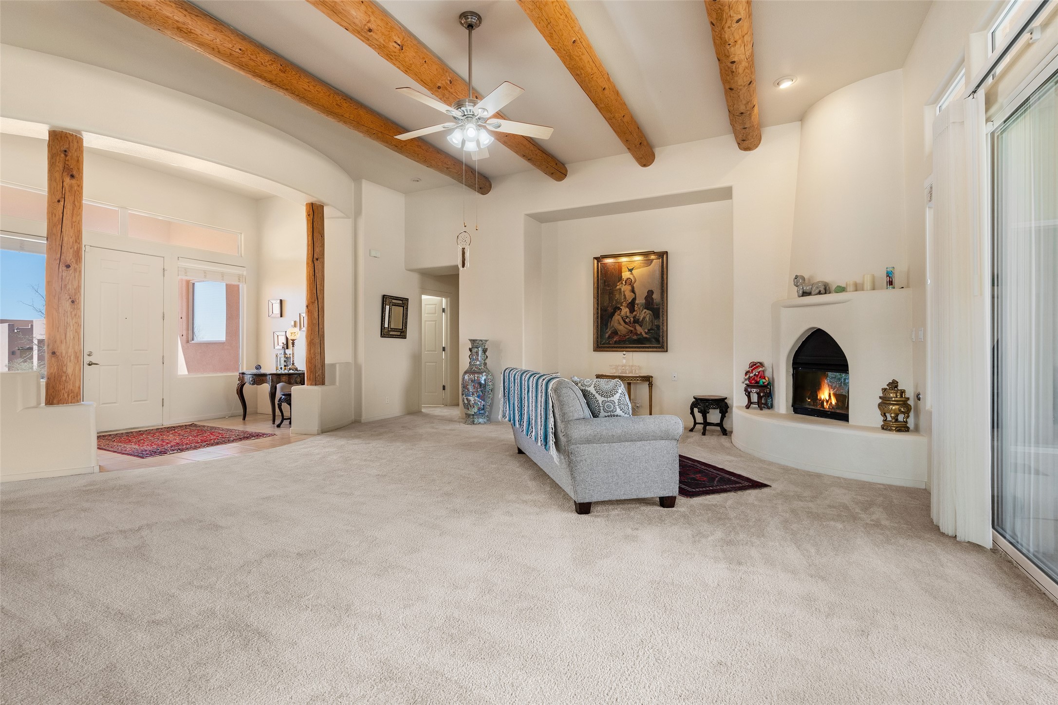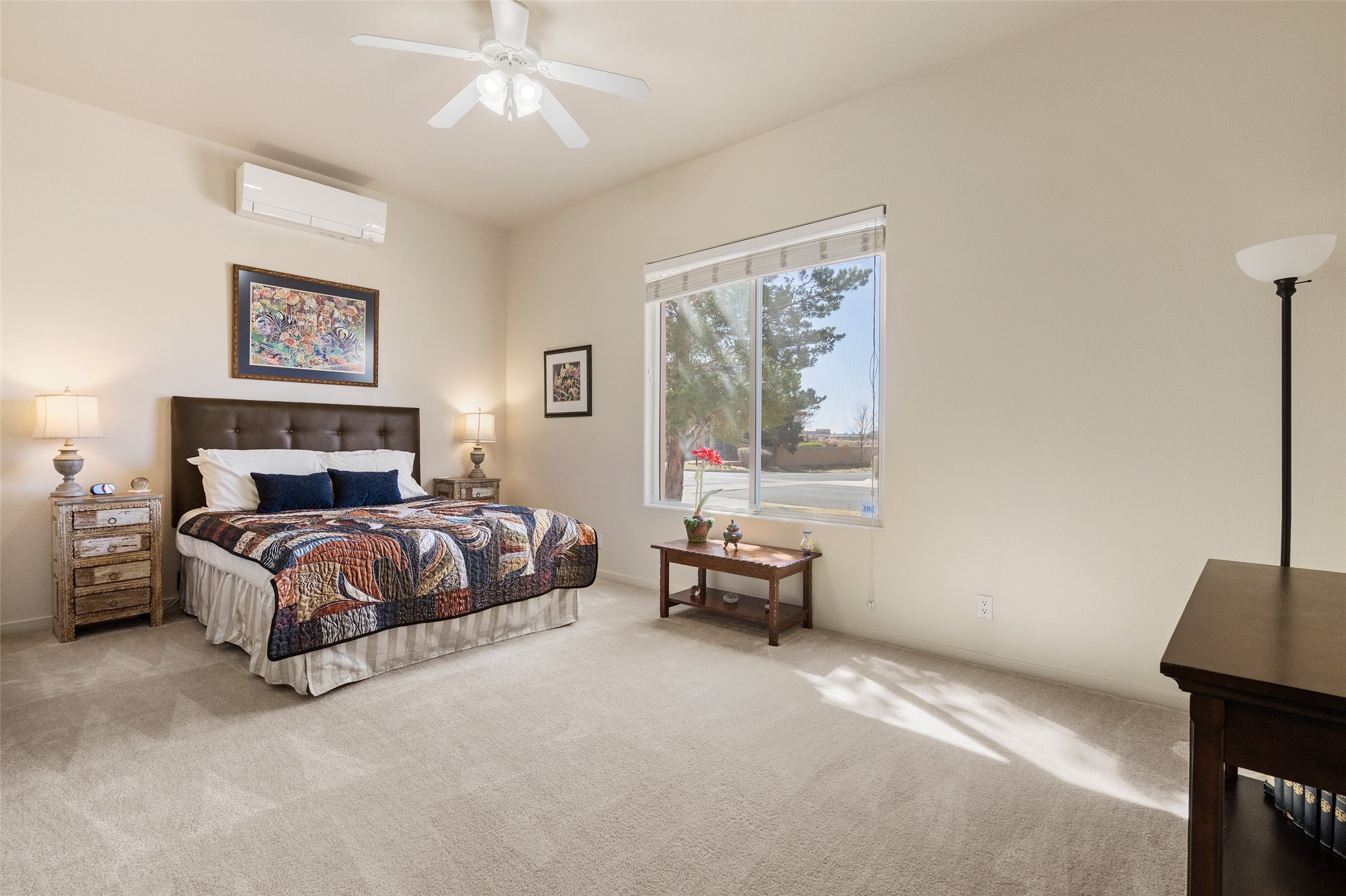 This 3-bedroom, 2-bathroom home in sought-after Rancho Viejo offers the perfect blend of comfort, space, and versatility. With two expansive living areas designed around an open-concept kitchen, this floor plan is ideal for both entertaining and everyday living. Each of the three generously sized bedrooms is thoughtfully separated for privacy, while a versatile bonus room offers endless possibilities--perfect as a den, playroom, home office, or studio. Stay comfortable year-round with radiant heat and two evaporative coolers. Step outside to a fully walled backyard oasis featuring lush grassy areas, mature trees for shade and privacy, and ample space for outdoor fun. Enjoy Santa Fe's renowned outdoor lifestyle from the covered portal, accessible from three main rooms of the home--ideal for morning coffee or evening gatherings.Experience peaceful living with modern conveniences in this well-loved home just minutes from all Santa Fe has to offer.