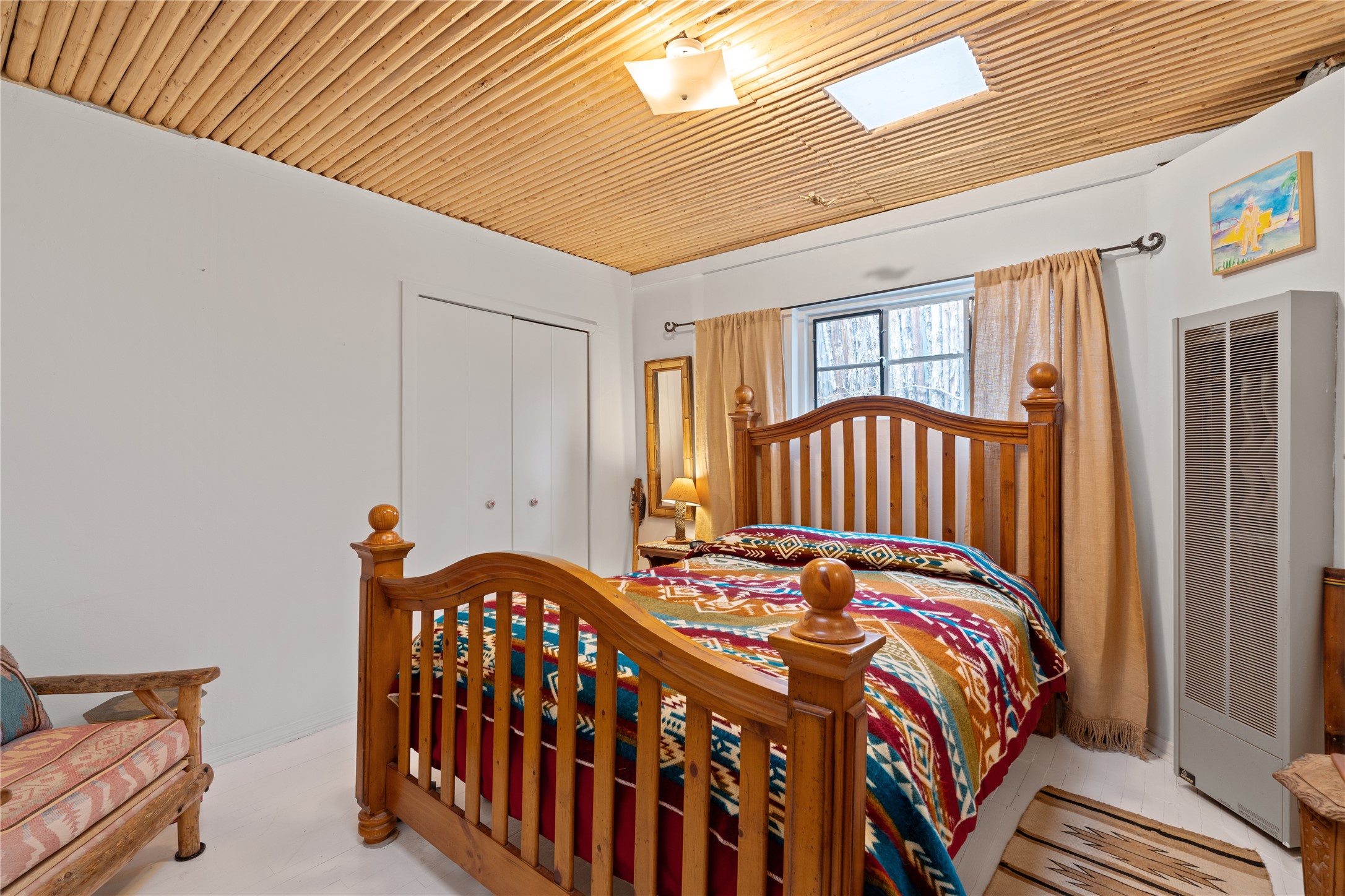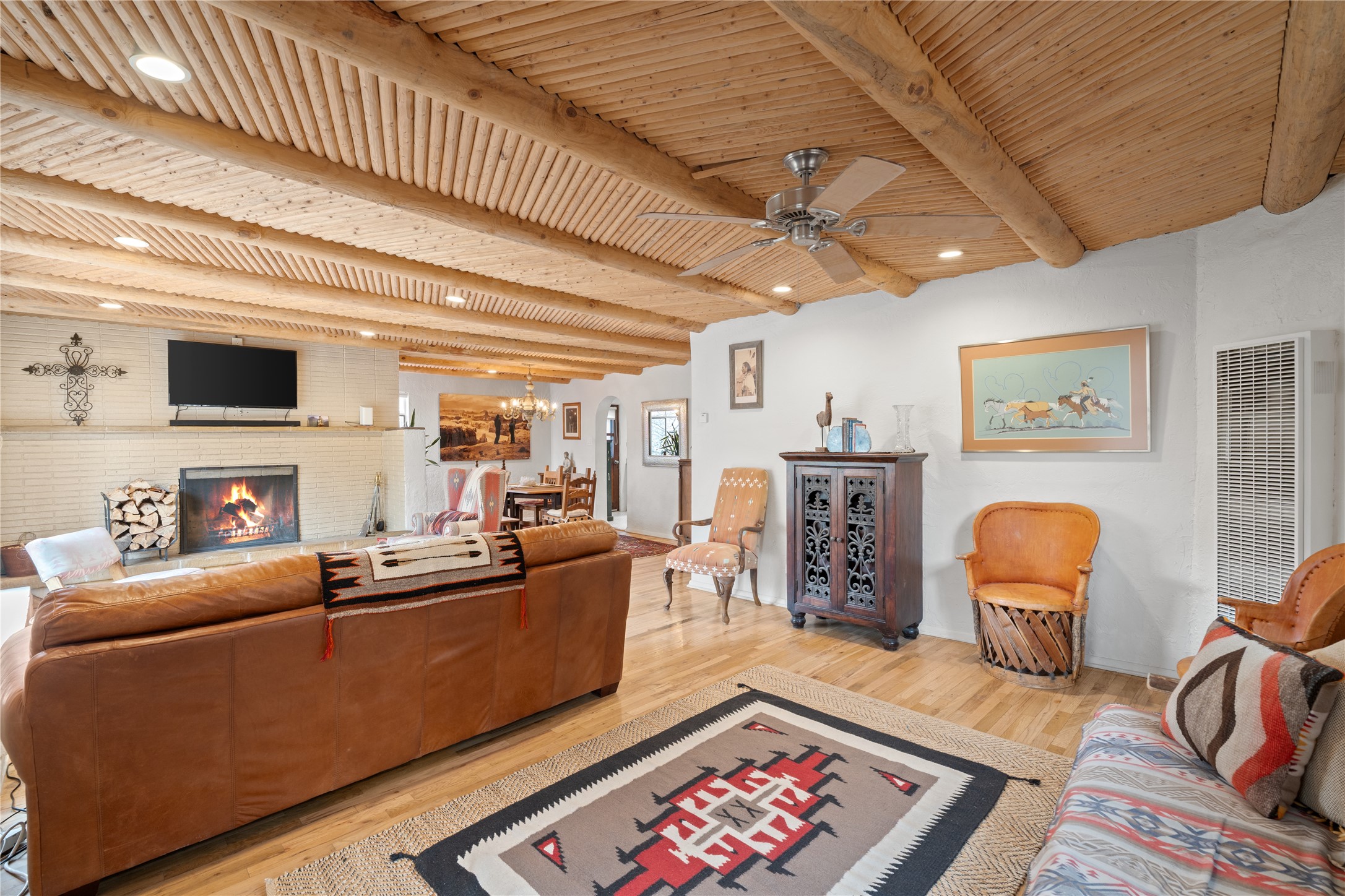 SHADE - TREES - WATER - all supreme attributes in this highly desirable location, as this historic Eastside pied-a-terre awaits at the east end of The Alameda with unlimited opportunities to enjoy the numerous old-growth large trees prevalent in the immediate area, water in the adjacent Acequia de la Muralla, and the popular and nurturing Santa Fe River walk along Camino Pequeno with its nature preserves and bird sanctuaries, and nearby Patrick Smith Park, the Water Park, and Canyon Road - all within a block or two and minutes from your new sanctuary. Hardwood floors, vigas and latillas, a living room fireplace, a ceiling fan, a private patio, an additional storage room (outside access), new kitchen appliances and upgrades, a new roof (2020) are some of the amenities and features of this home. As for the property's history, the original deed was conveyed to Salvador Gonzales in 1742 as the Canada Ancha Grant or Salvador Gonzales Grant consisting of approximately 200 acres of land from Gonzales Road to the hills of Cerro Gordo, from the Rio Santa Fe to Hyde Park Road. Lourdes Padilla Abeyta, a member of the Gonzales family and clan inherited the adobe casita in the 1940s from her parents, and her husband, a builder and mason, remodeled the original two rooms (today's bedrooms) and added all the other rooms and fireplace in the early 1950s. Opportunity knocks - rewards beckon - who will answer the call?