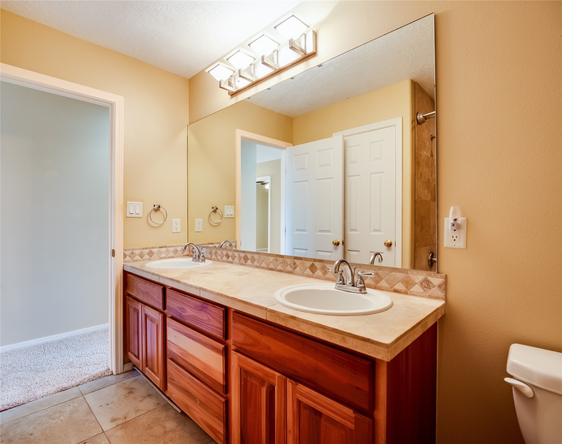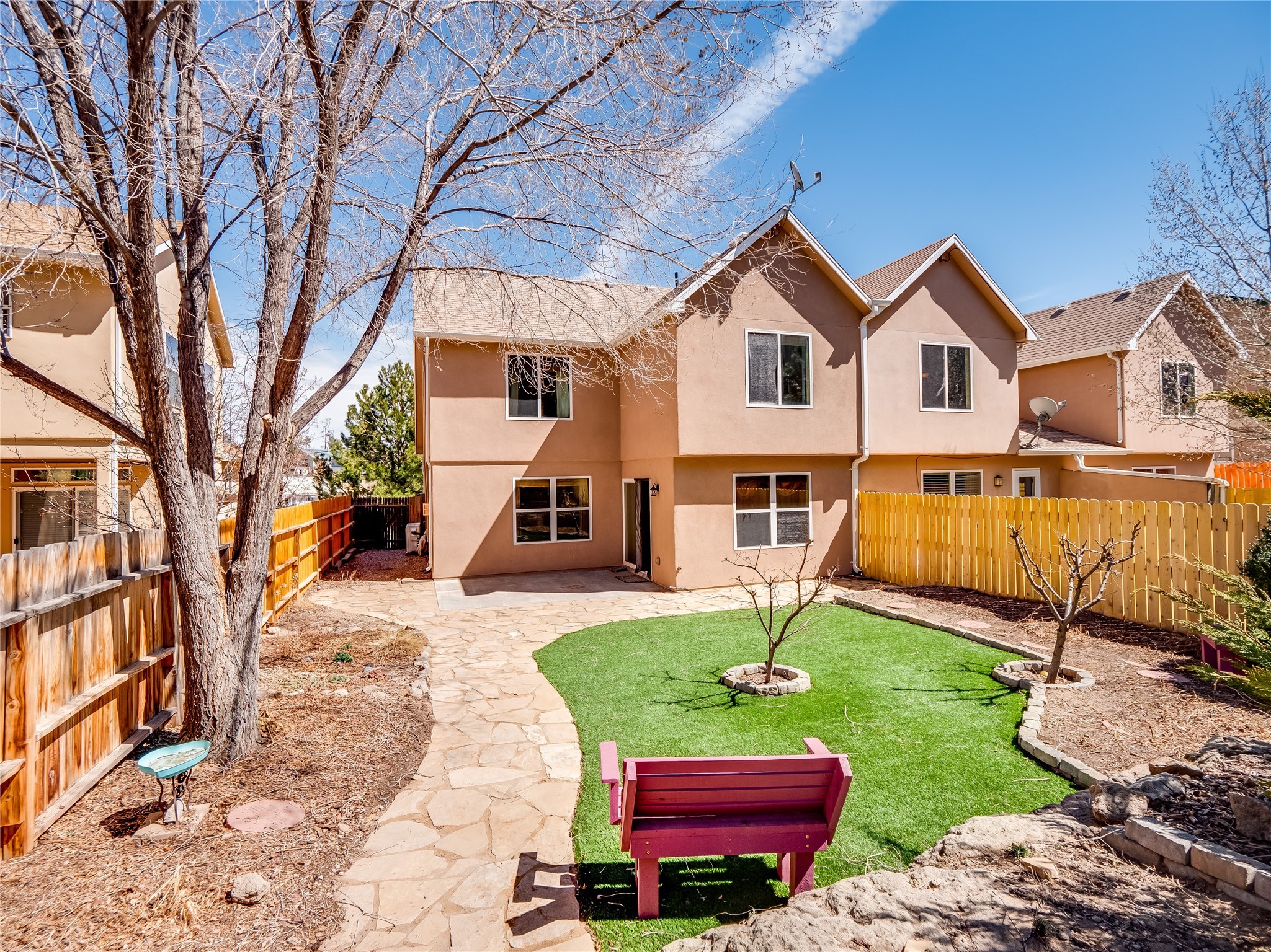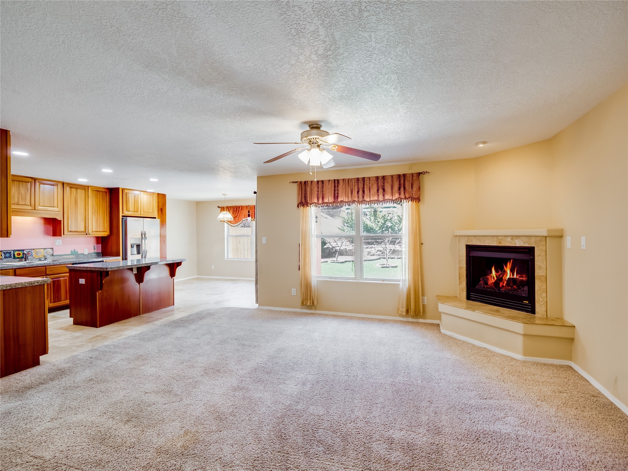 Beautiful two-story condo in the desirable N Community neighborhood. Offering both comfort and convenience, this home features a low-maintenance front yard with mature shrubs and trees. Step up into the entryway and head left to the open Great Room layout, where you'll find a cozy, carpeted living room with a gas fireplace serving as the focal point. A deep storage closet adds functionality to this space. Adjacent to the living room is the kitchen, featuring travertine tile flooring, an abundance of rich wood cabinetry adorned with granite counters, and a stylish tile backsplash in select areas. Stainless steel appliances enhance the kitchen's modern appeal, while the large center island, perfect for bar seating, overlooks the living room, making it ideal for both everyday living and entertaining. Off the kitchen, the dining space is bright and airy, with sliding glass doors that lead to the backyard, seamlessly blending indoor and outdoor living. This level also includes a convenient powder room and access to the attached two-car garage. Upstairs, plush carpeting extends throughout the three generously sized guest bedrooms, each equipped with individual mini-split heating and air conditioning units for personalized comfort. The guest bath with tile flooring, a double sink vanity, and a tiled shower/tub combination. The spacious primary en-suite boasts vaulted ceilings, double closets, and a spa-like bathroom with a double sink vanity, tile flooring, a deep soaking tub, and a tiled walk-in shower enclosed with glass doors. For added convenience, the laundry room is also located on this floor. Outside the fabulous fenced-in backyard has a turf lawn, a large patio perfect for outdoor gatherings, and beautiful landscaping that enhances the space. A storage shed has been thoughtfully transformed into a workshop. This wonderful home is ideally located near parks, schools, and Trails. Come see this place for yourself and experience all that it has to offer!