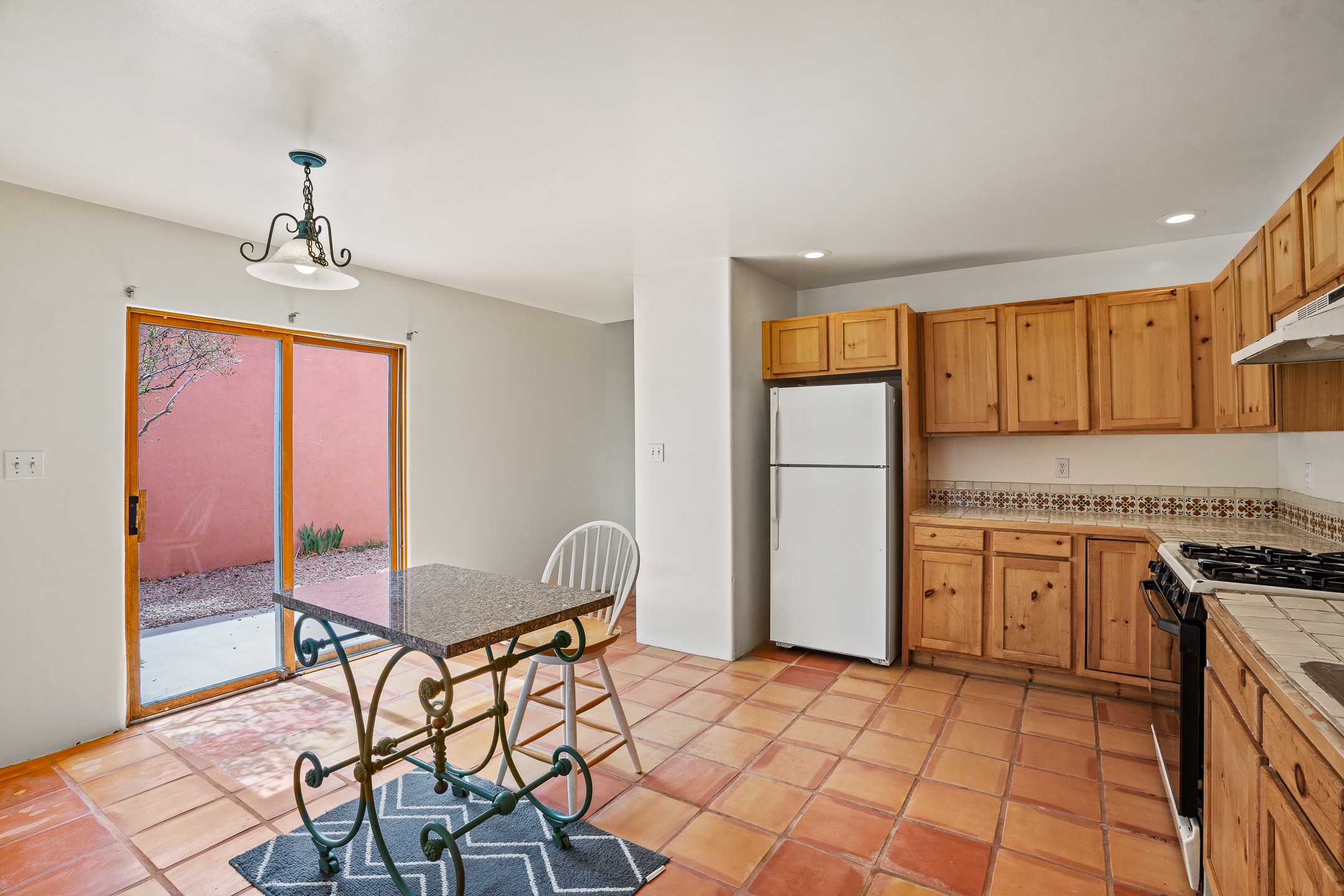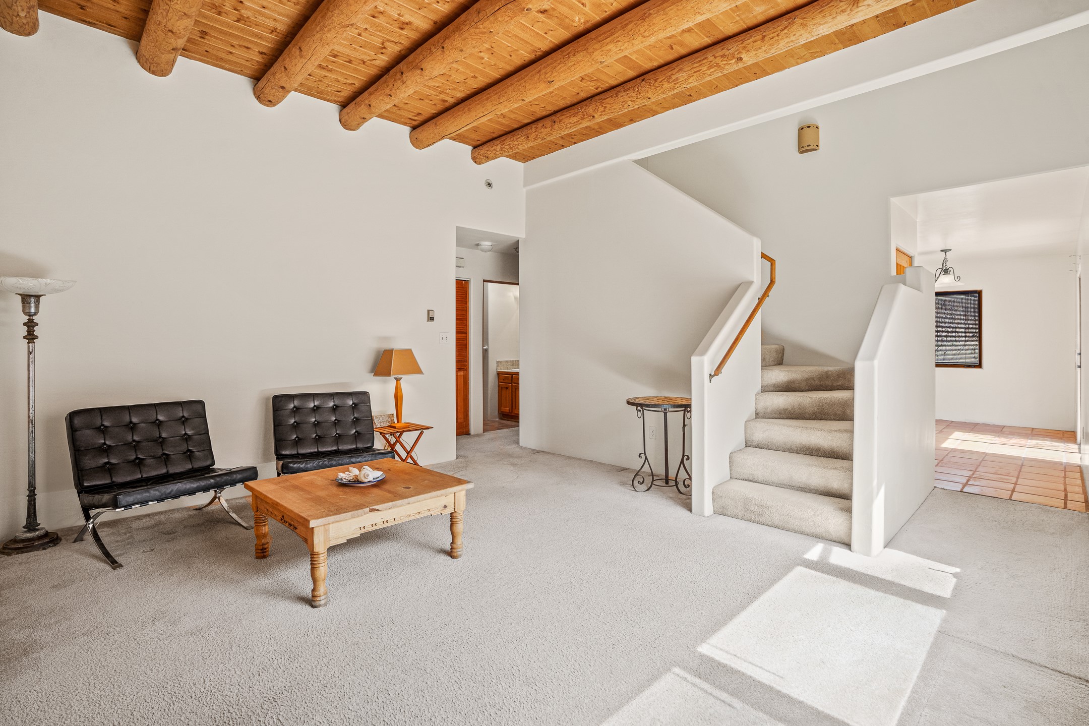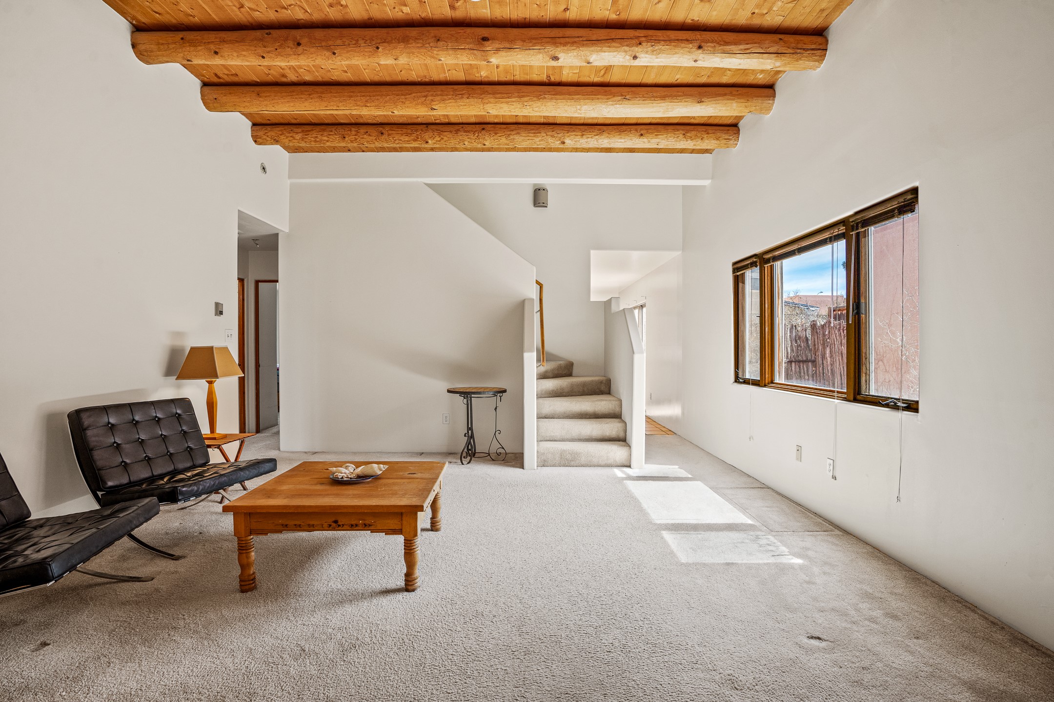 Discover the perfect blend of country charm and city convenience with this delightful four-bedroom, three-bathroom home, nestled in a serene Southside cul-de-sac. The main living area boasts rustic vigas and soaring high ceilings, creating a warm and inviting atmosphere. The spacious kitchen is bathed in natural light, making it a joy to cook and entertain. Two of the four bedrooms come with their own private bathrooms, offering comfort and privacy.The versatile downstairs bedroom suite can function as a separate apartment, complete with its own entrance and private fenced yard, ideal for guests or rental income. The home opens to a tranquil, fenced yard with low-maintenance landscaping, perfect for relaxing or entertaining.Situated next to a private greenbelt with scenic walking paths, this home is just two houses away from the community clubhouse, which is perfect for hosting events. Having been lovingly maintained by the same owner for 25 years, this home is filled with natural light and offers a peaceful retreat within the city. With low HOA fees of just $35 per month, this charming home is a rare find. Don't miss the opportunity to make it yours!