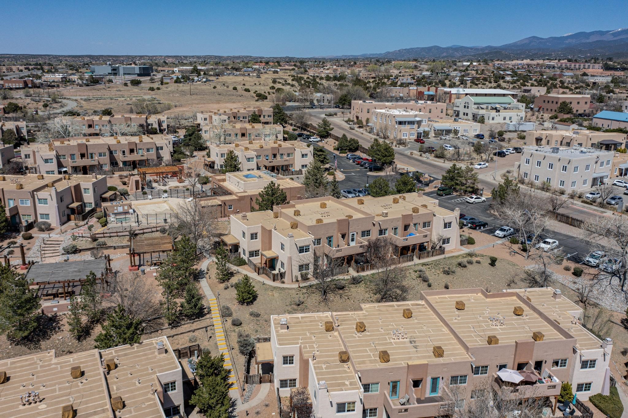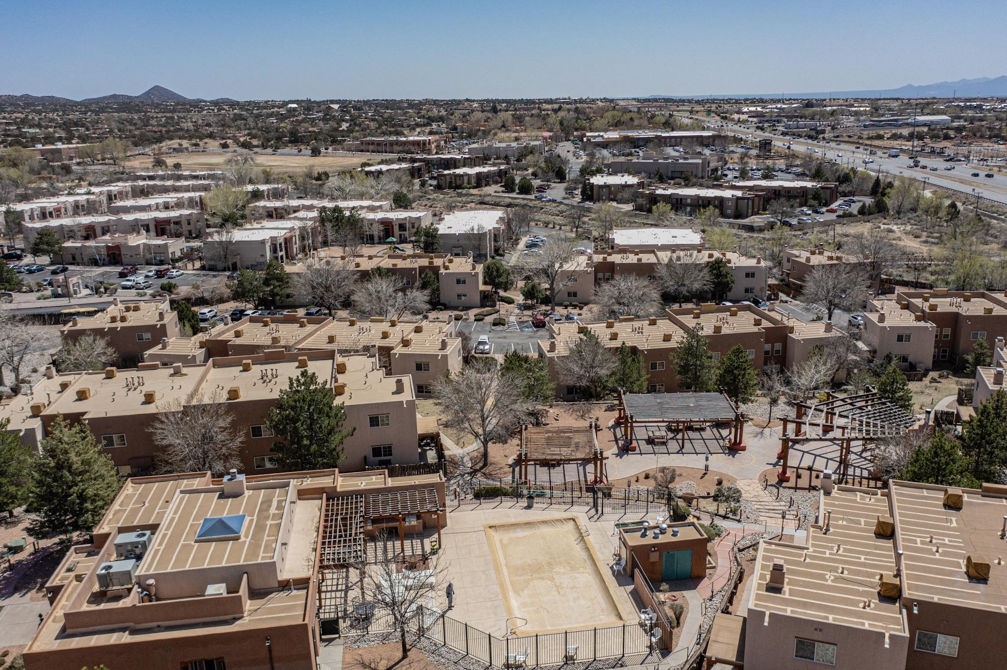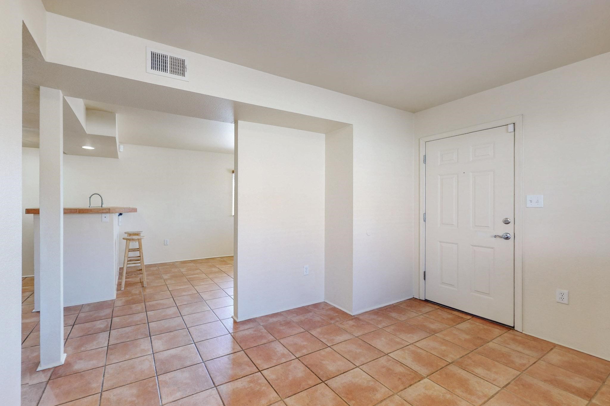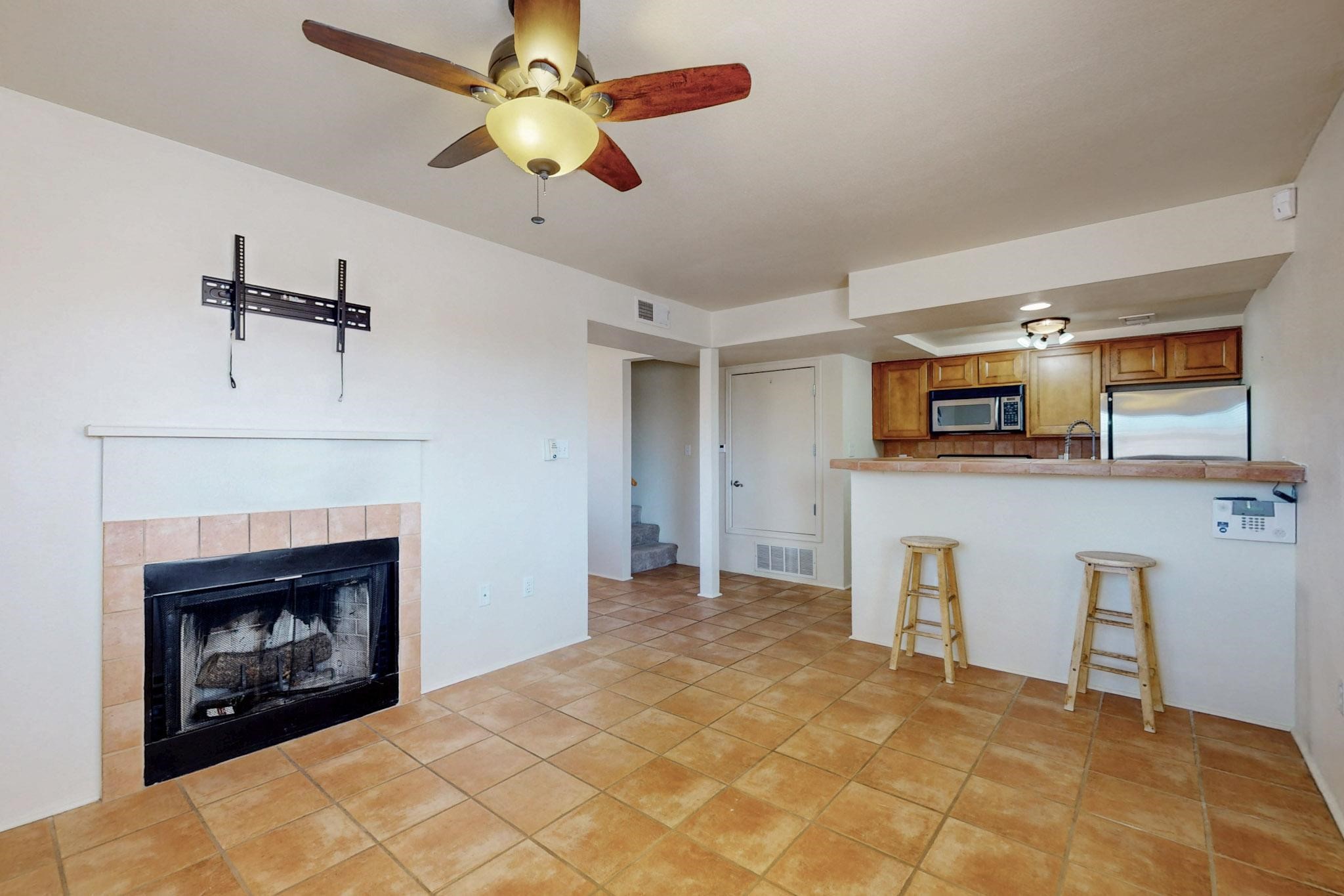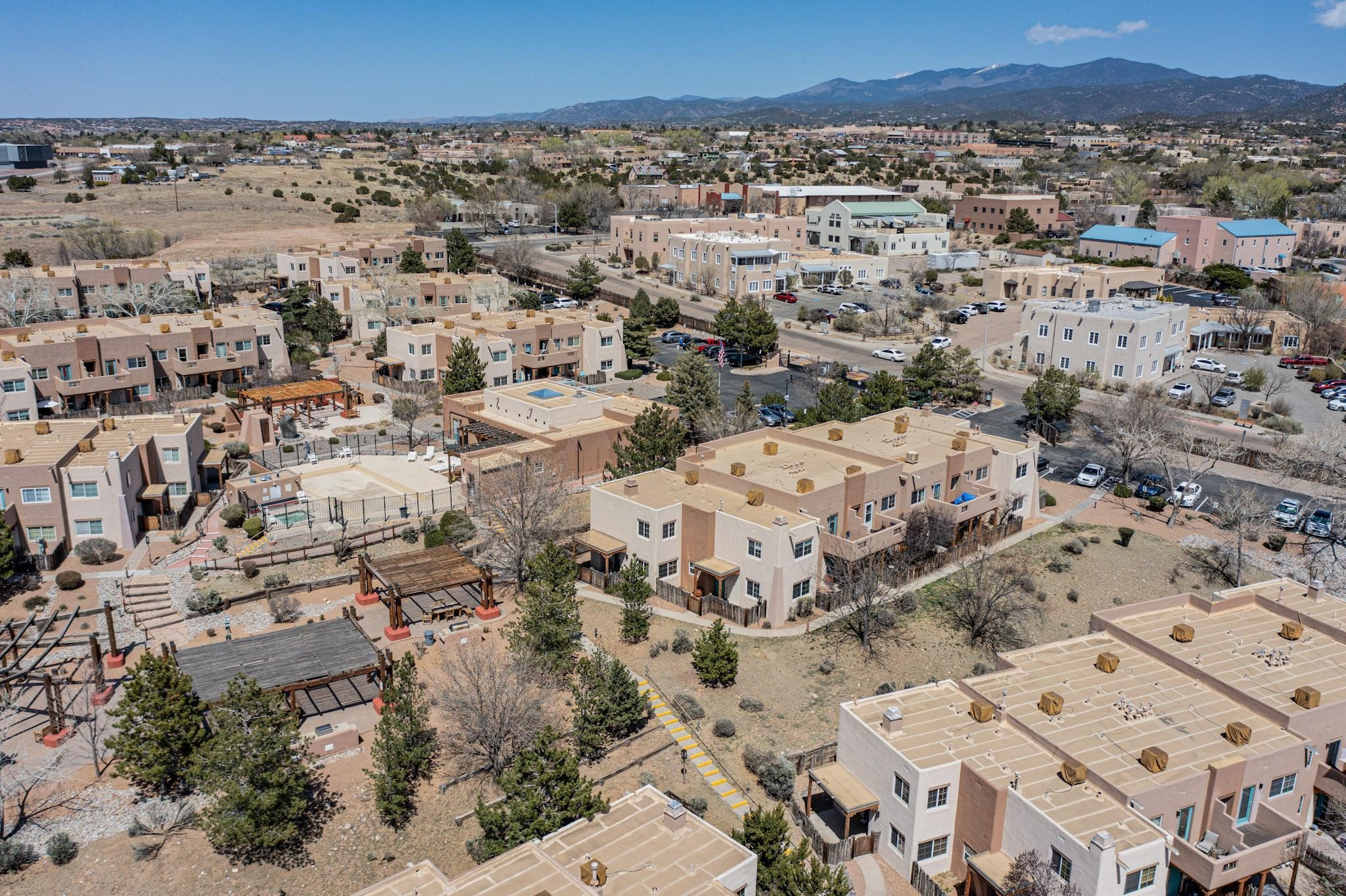 Welcome home to this wonderful, deluxe, end unit, in well maintained Dos Santos! Freshly painted with 2 bedrooms, 2 baths, 950+/- square feet, stainless steel appliances in the kitchen, with Saltillo tile floors and carpet in the bedrooms. This corner unit has a front and side yard located right next to the community area with BBQ grills, the pool and hot tub and the clubhouse! Enjoy this well maintained complex that also includes a dog park and water/sewer that's included in your HOA fees. Schedule your showing today - you won't be disappointed!
