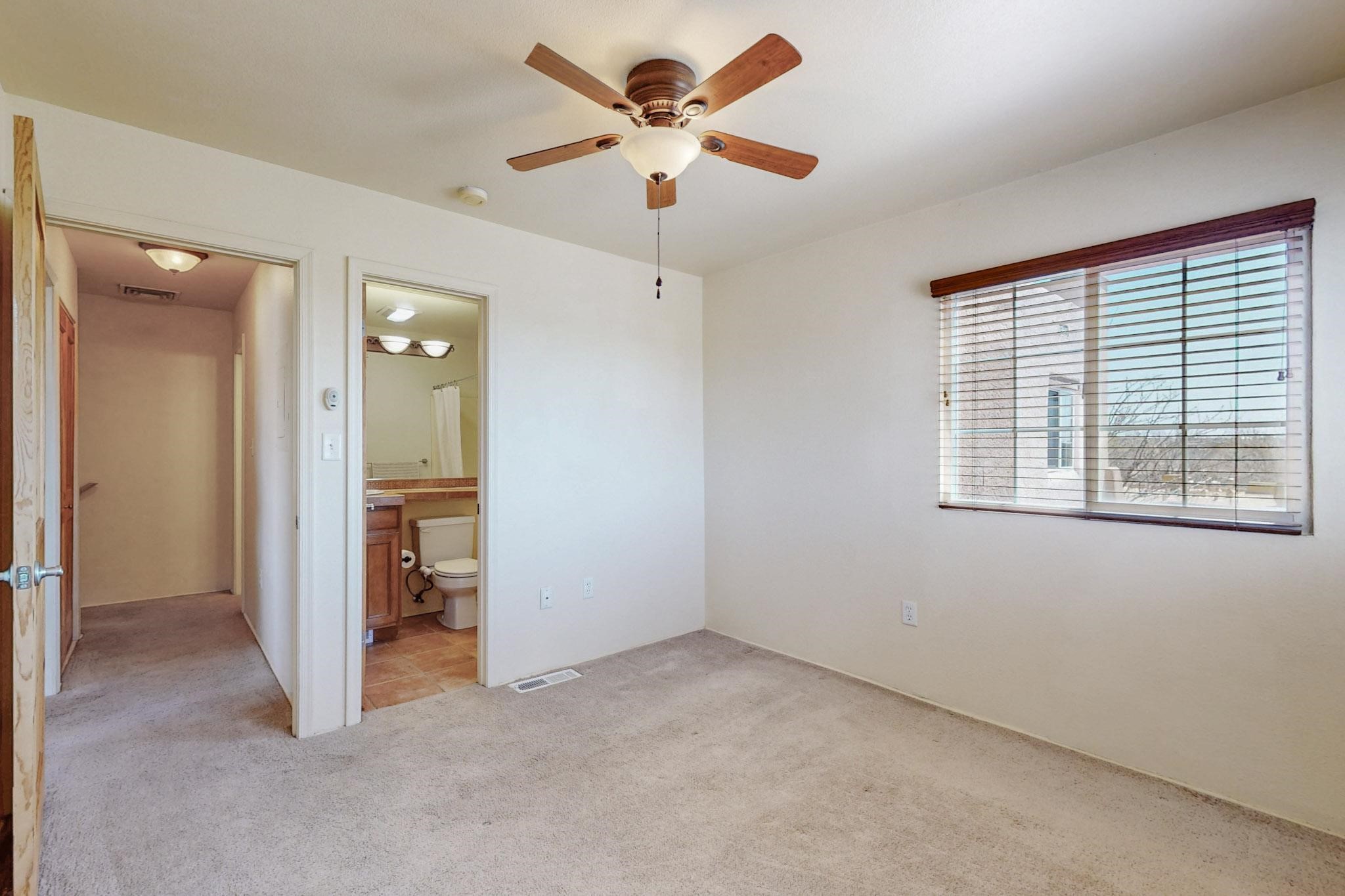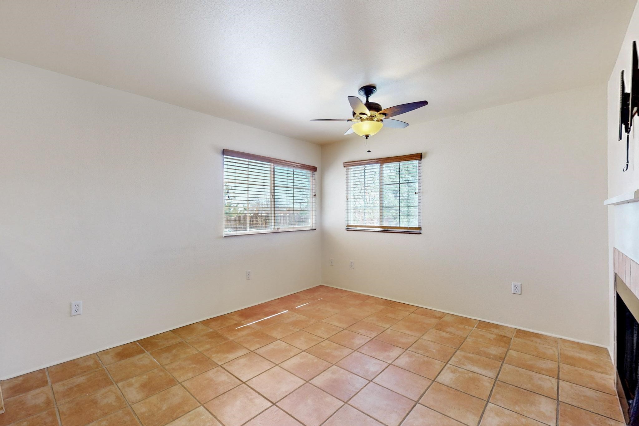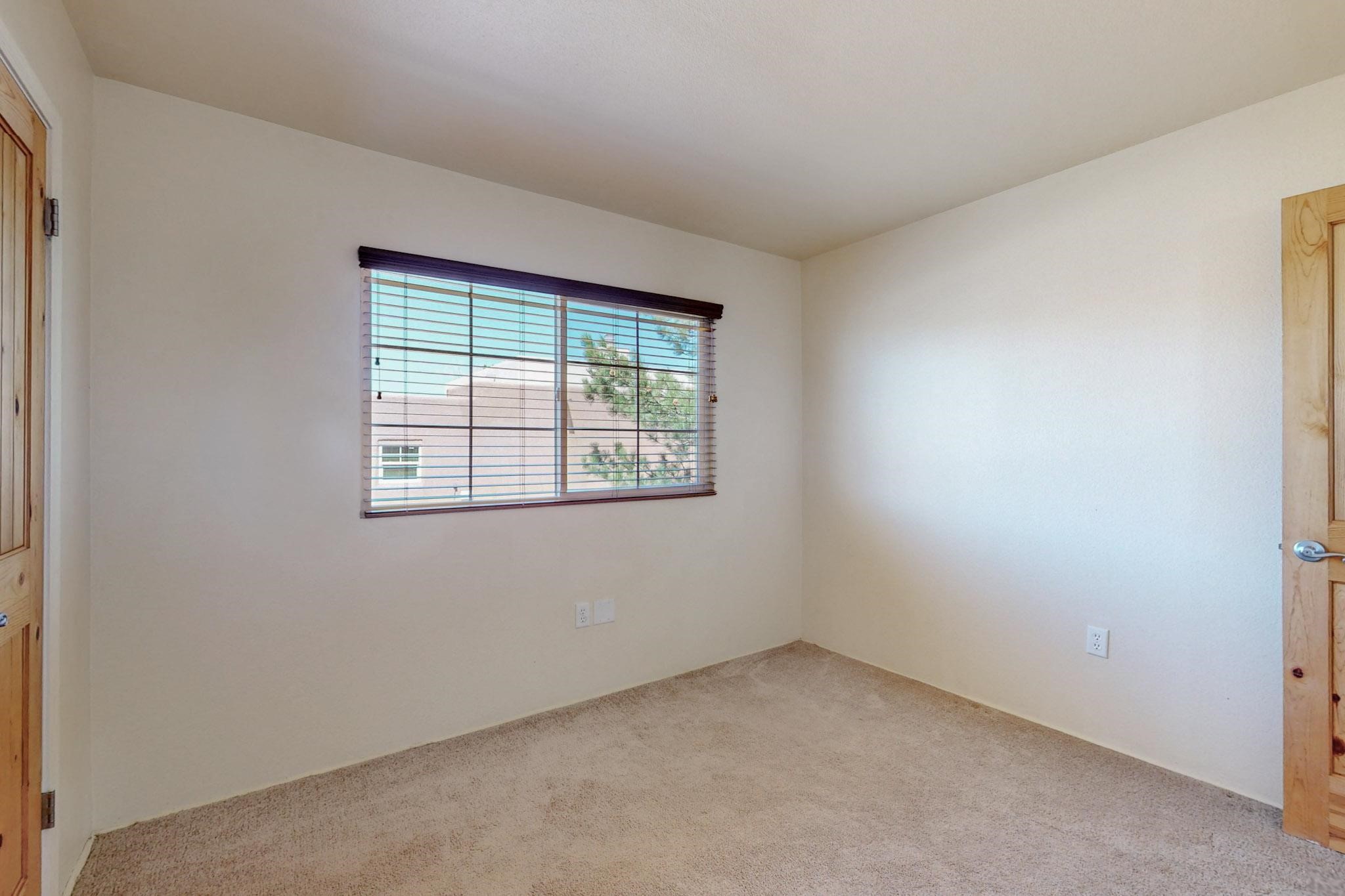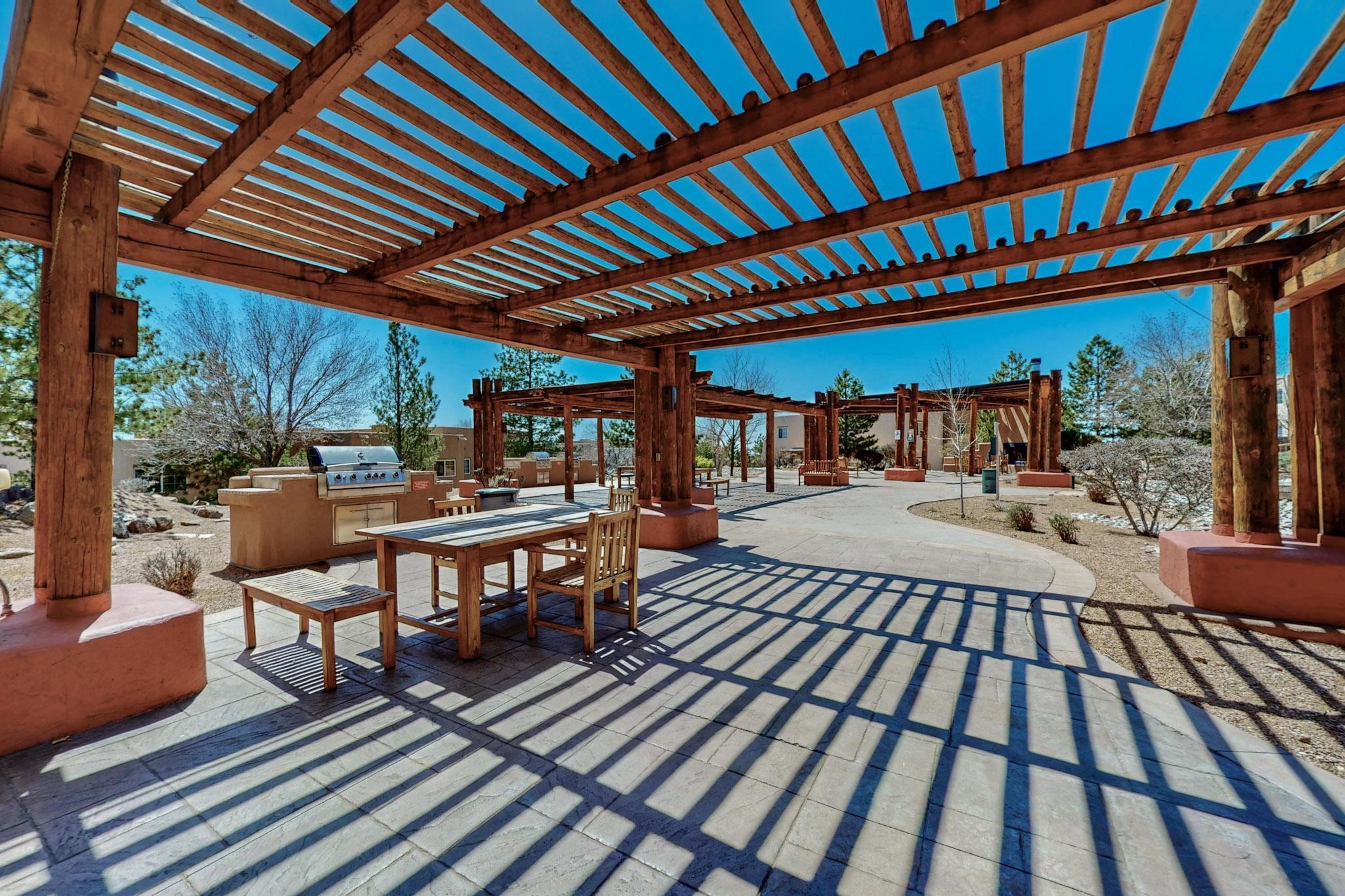 Welcome home to this wonderful, deluxe, end unit, in well maintained Dos Santos! Freshly painted with 2 bedrooms, 2 baths, 950+/- square feet, stainless steel appliances in the kitchen, with Saltillo tile floors and carpet in the bedrooms. This corner unit has a front and side yard located right next to the community area with BBQ grills, the pool and hot tub and the clubhouse! Enjoy this well maintained complex that also includes a dog park and water/sewer that's included in your HOA fees. Schedule your showing today - you won't be disappointed!