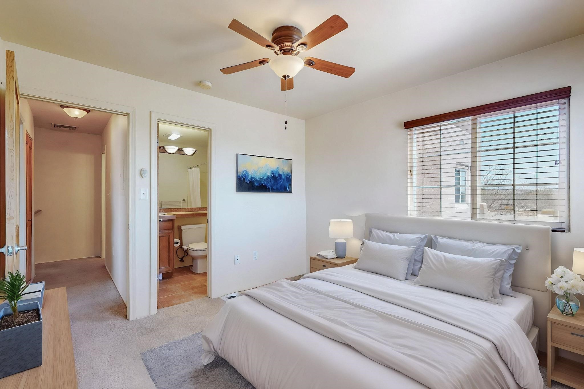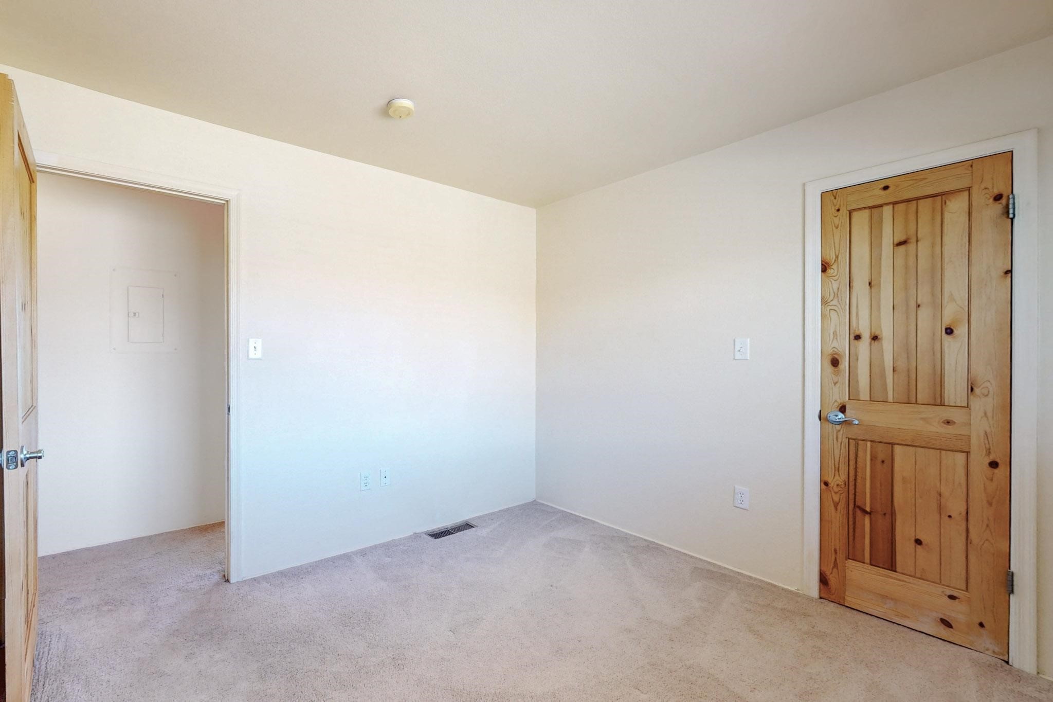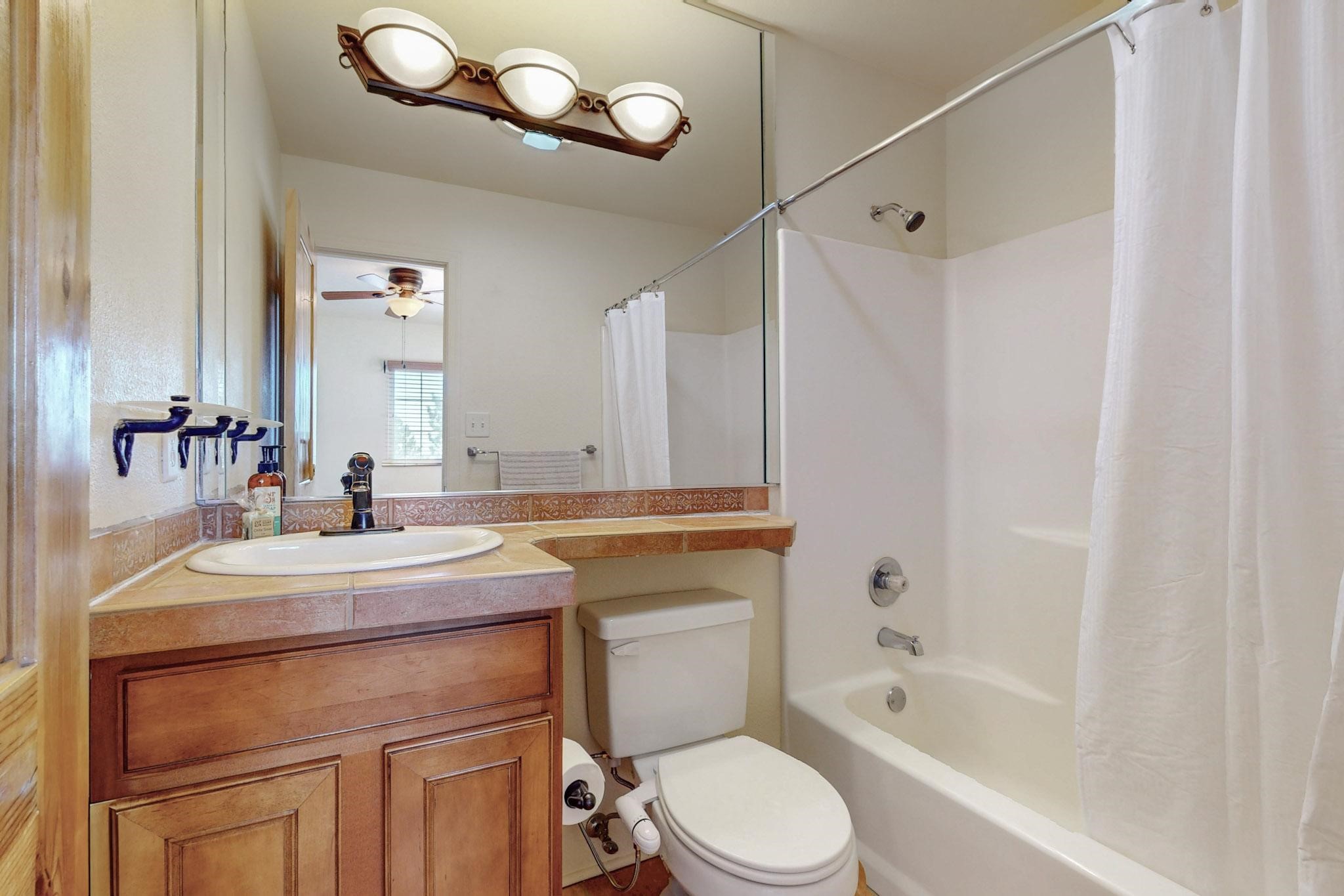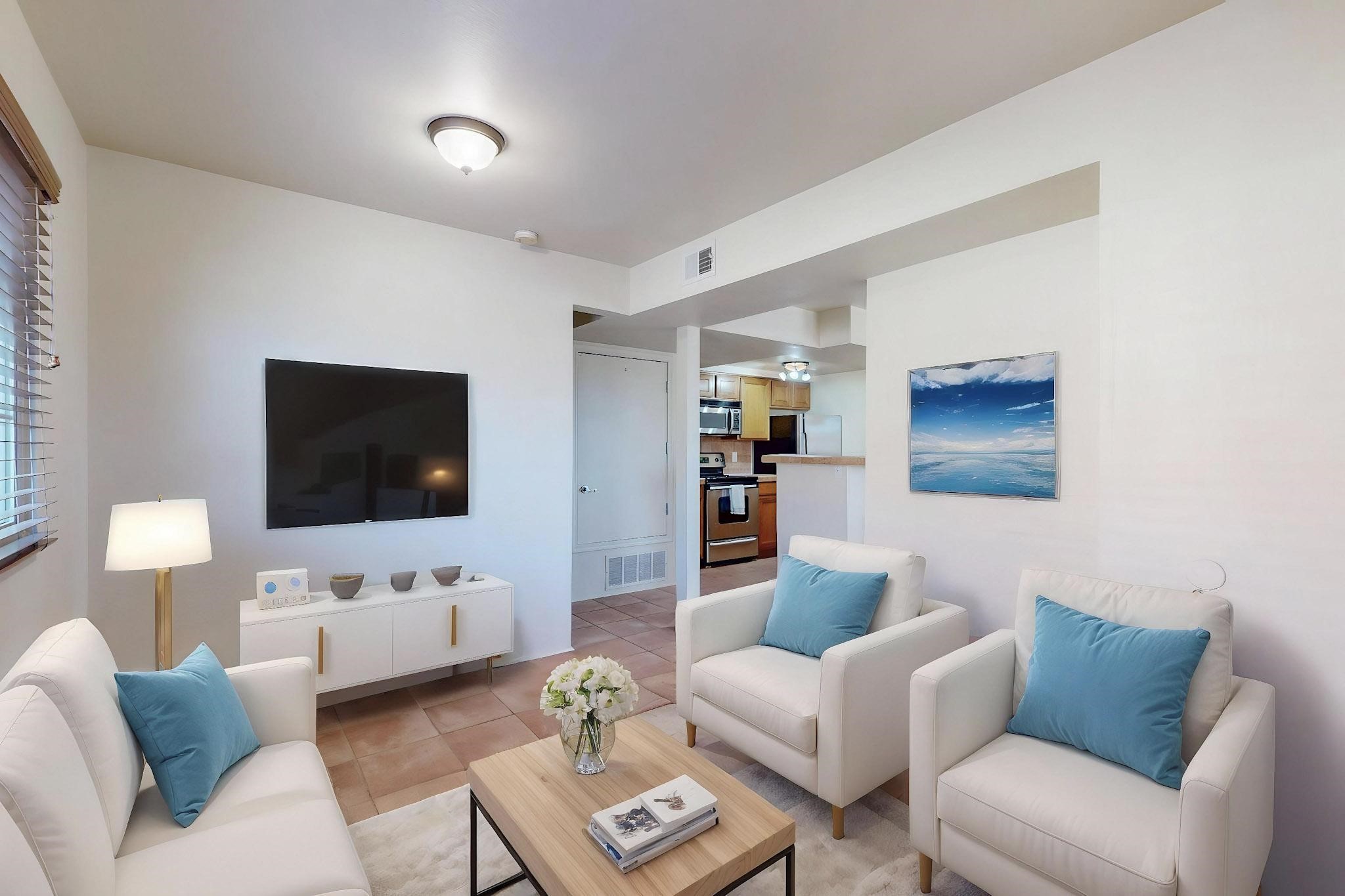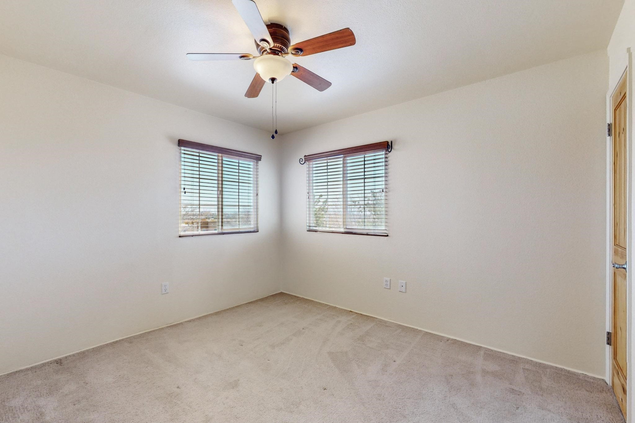 Welcome home to this wonderful, deluxe, end unit, in well maintained Dos Santos! Freshly painted with 2 bedrooms, 2 baths, 950+/- square feet, stainless steel appliances in the kitchen, with Saltillo tile floors and carpet in the bedrooms. This corner unit has a front and side yard located right next to the community area with BBQ grills, the pool and hot tub and the clubhouse! Enjoy this well maintained complex that also includes a dog park and water/sewer that's included in your HOA fees. Schedule your showing today - you won't be disappointed!