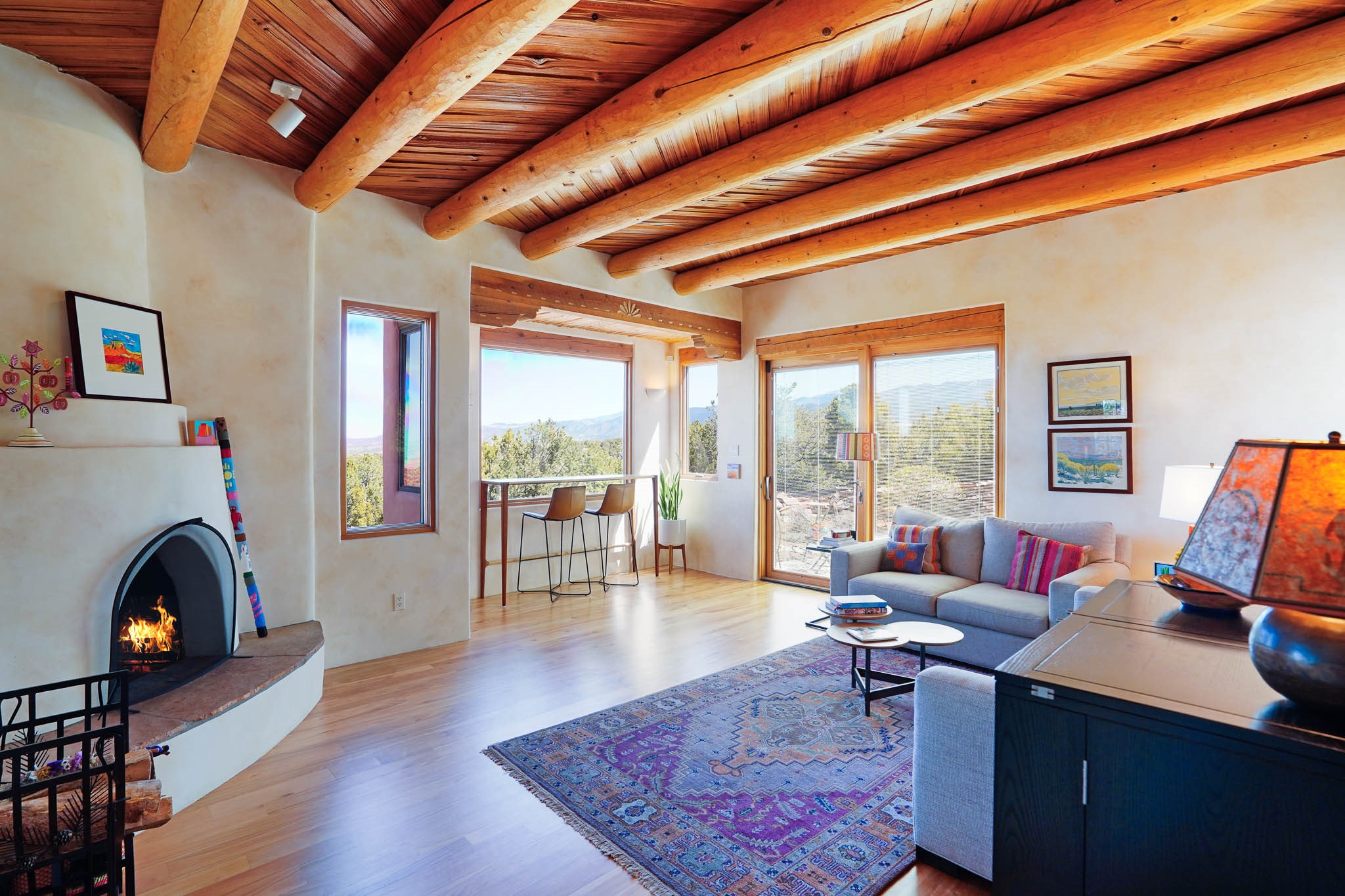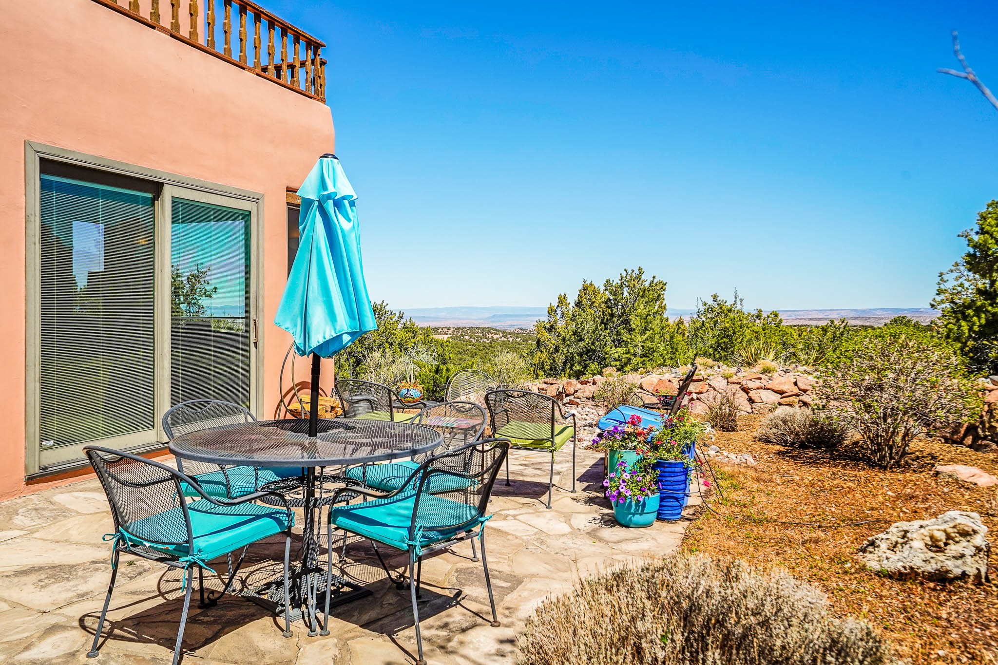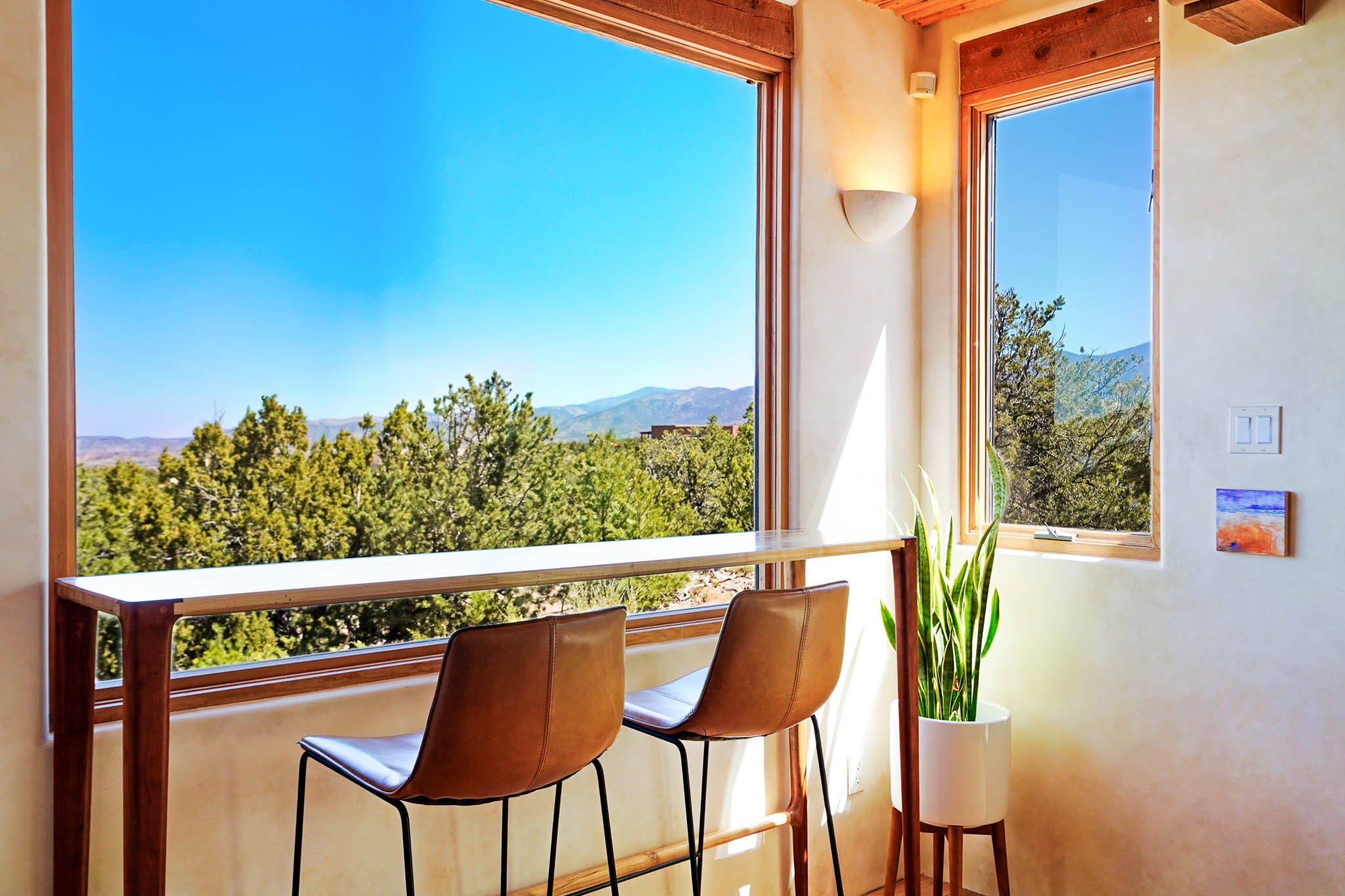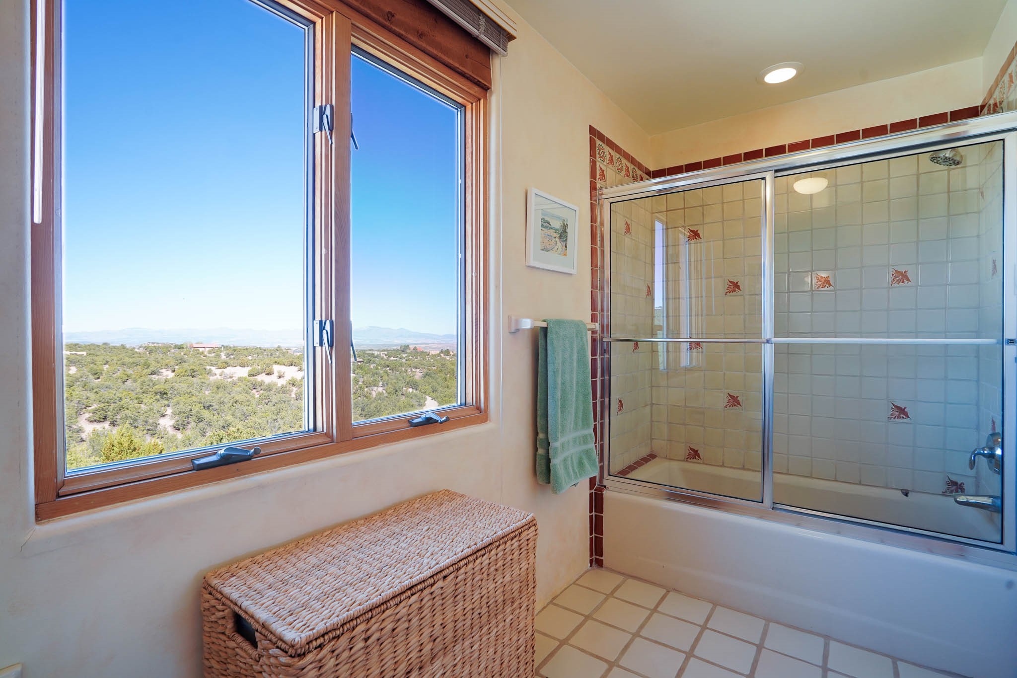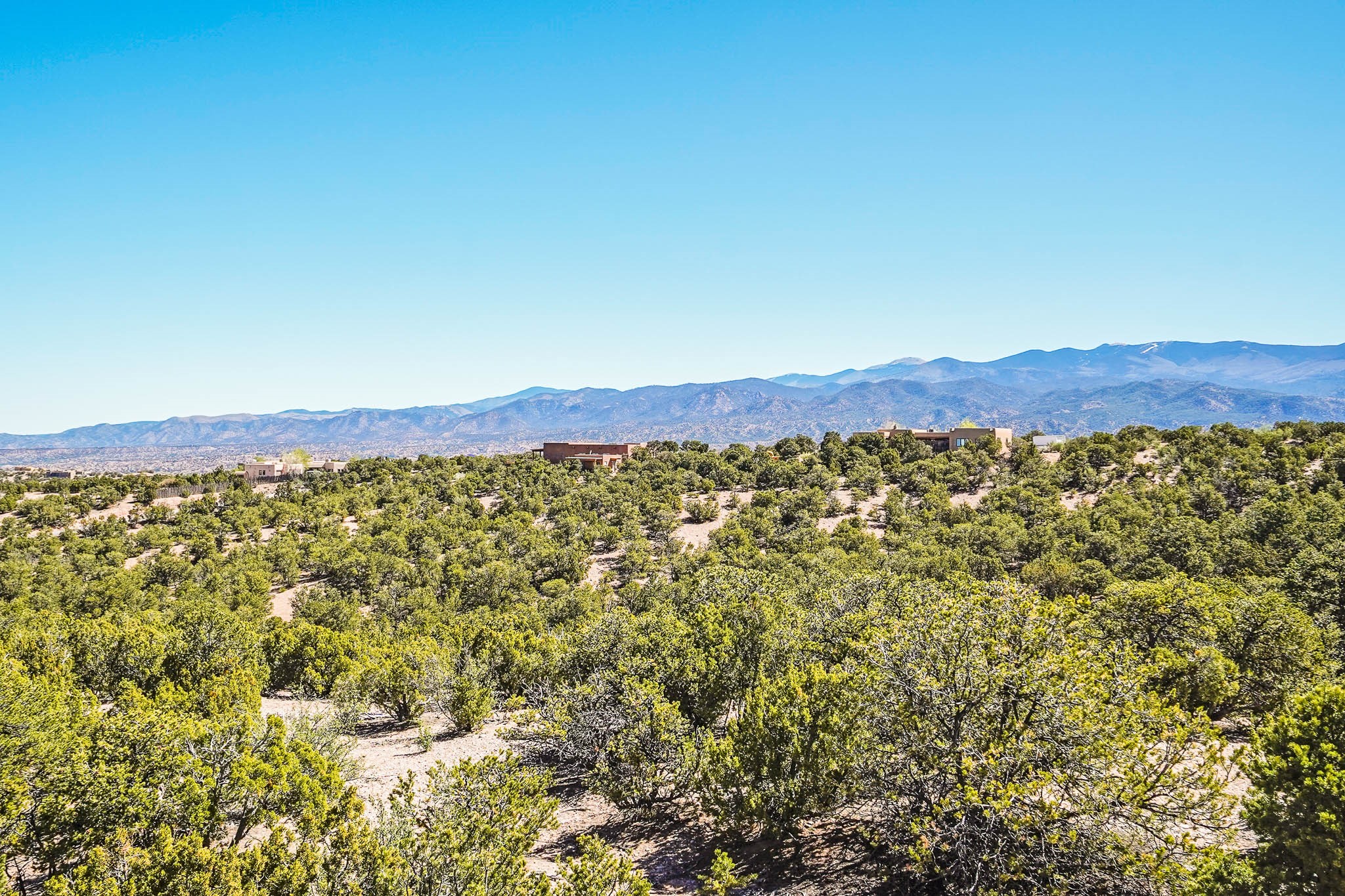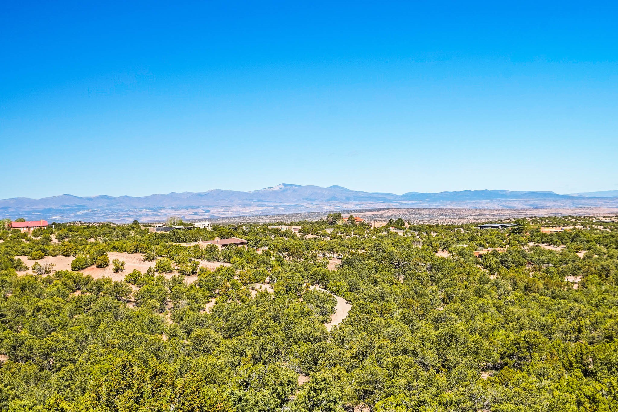True to its name, 22 Loma Serena--"Serene Hill"--offers a peaceful hilltop retreat with some of the most breathtaking views in Santa Fe. Located in the desirable Tano Road area, this 2,508-square-foot home sits on 4.55 private acres, surrounded by pion trees and big New Mexico skies. You'll enjoy panoramic views of the Sangre de Cristos, Jemez Mountains, Badlands, and beyond all the way to Colorado. Built with classic Southwestern charm, the home features warm wood beams and vigas, colorful Talavera and Saltillo tile, beautiful hardwood floors, and cozy kiva fireplaces. The open floorplan flows easily and is filled with natural light. There are three spacious bedrooms, including two upstairs suites with private decks, and four bathrooms--one full and three baths--giving everyone space and privacy. The welcoming kitchen, bright living and dining areas, and large windows bring the outdoors in, while the Eastside flagstone patio is perfect for soaking up the crisp Santa Fe air. A gated courtyard, sunny stone patio, direct-entry one-car garage, and a private guest suite with its own entrance add even more flexibility and comfort. In addition the property was reroofed in 2019, new HVAC installed 2022 and re-stuccoed in 2023. Whether you're looking for a serene full-time home or a peaceful getaway to gather with family and friends, 22 Loma Serena is the kind of place that just feels good to come home to.