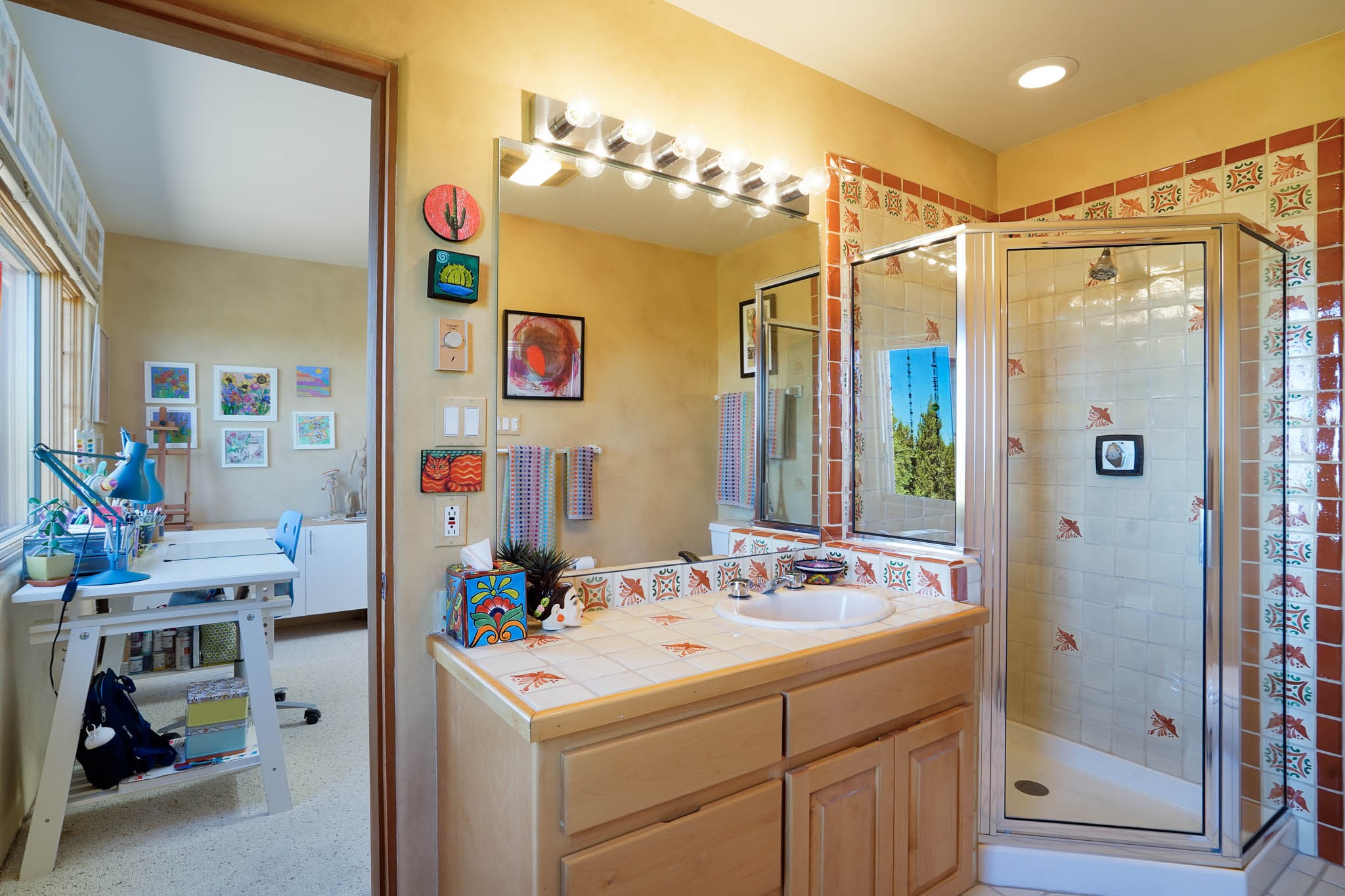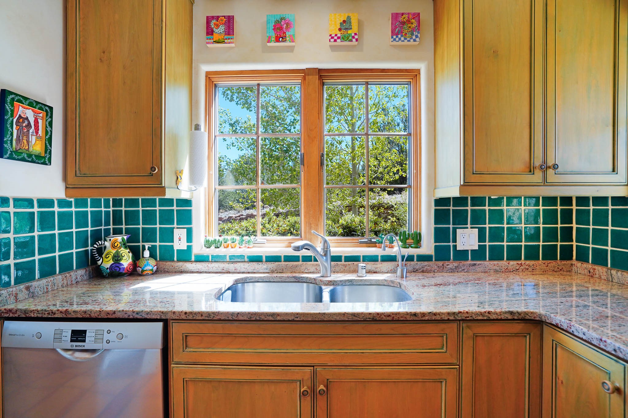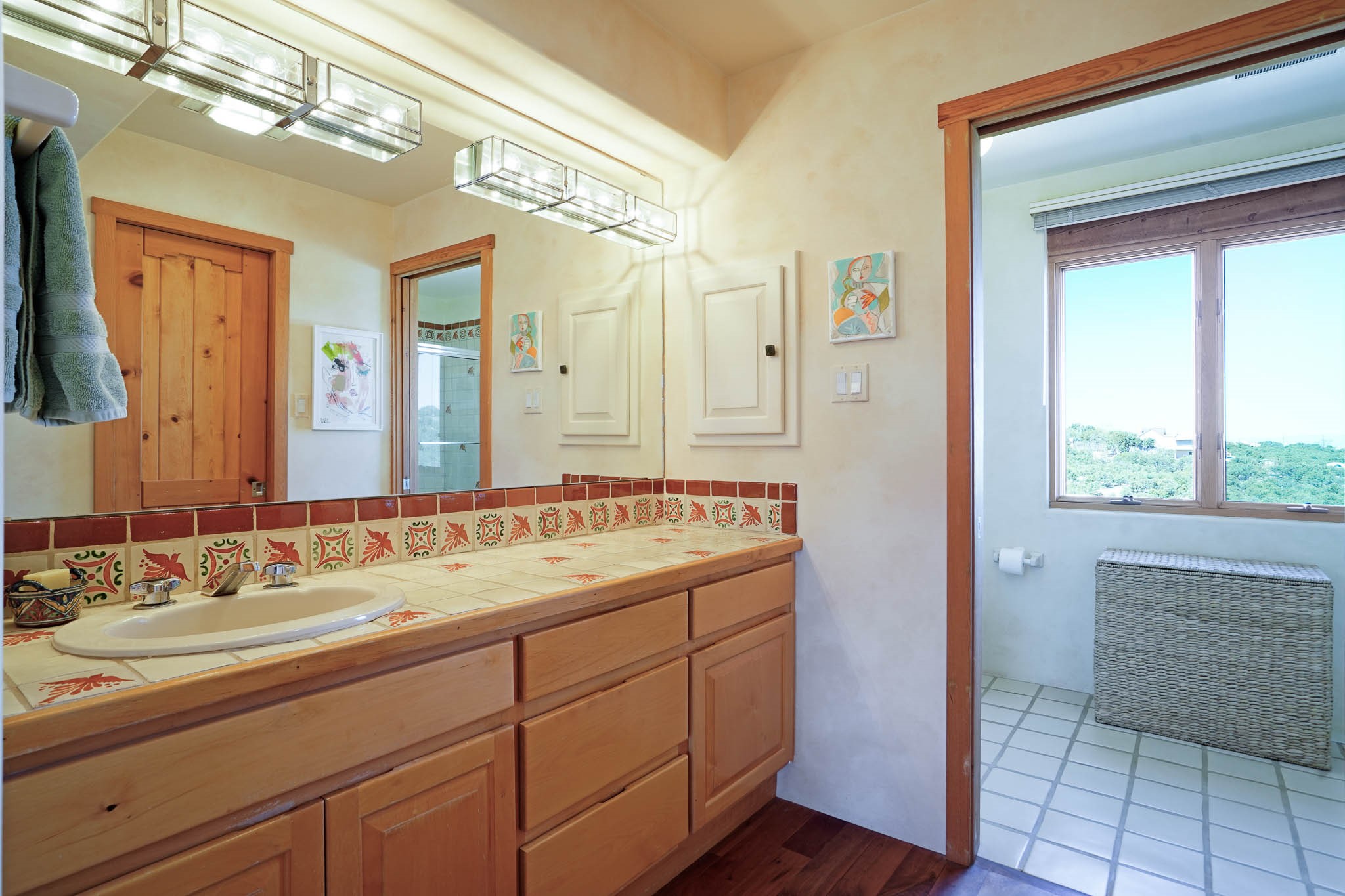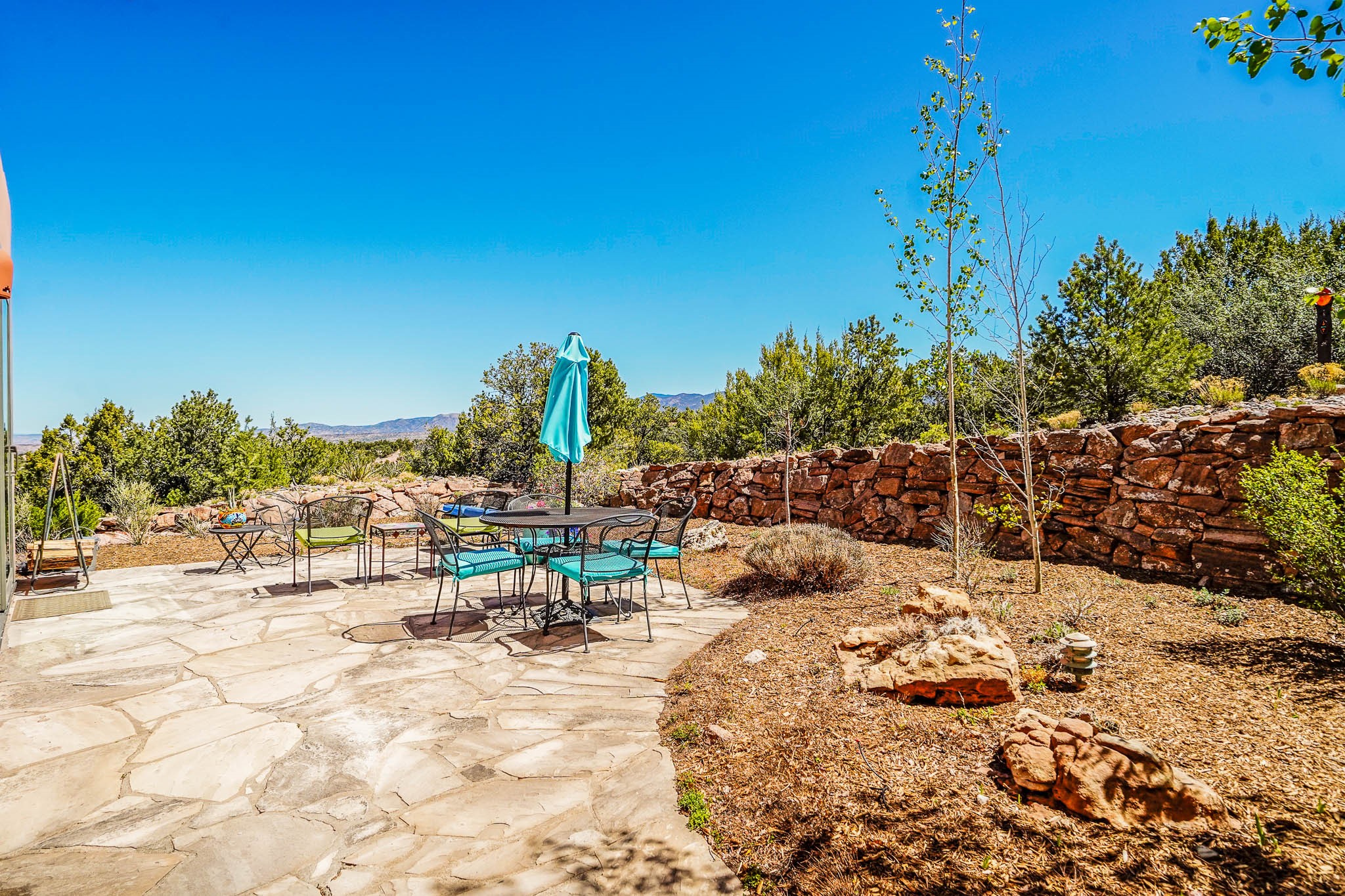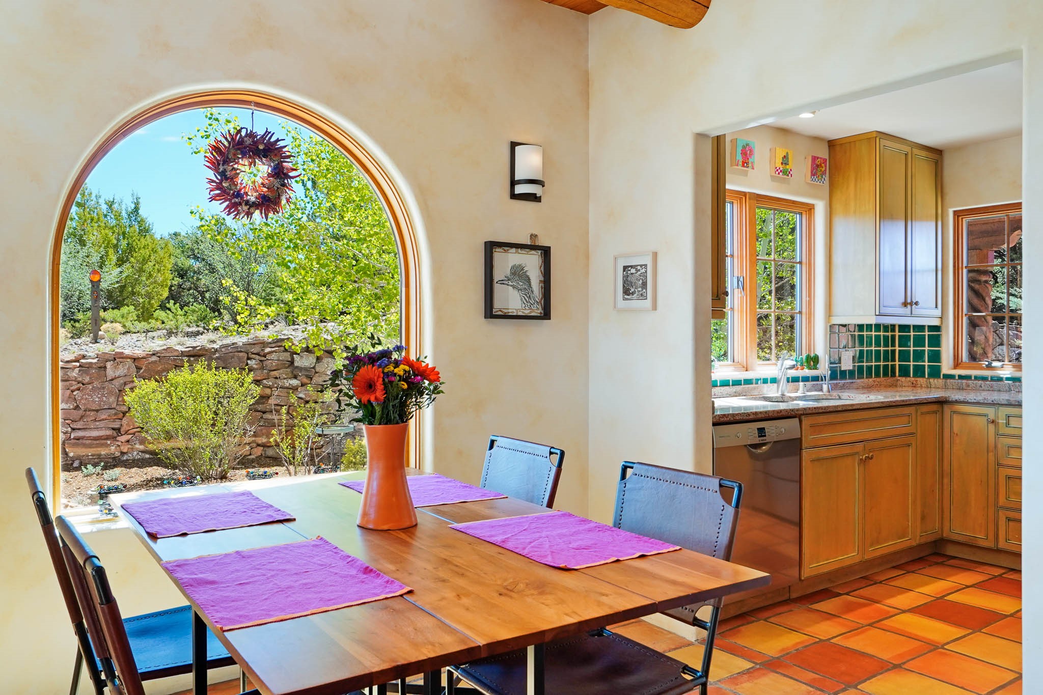 True to its name, 22 Loma Serena--"Serene Hill"--offers a peaceful hilltop retreat with some of the most breathtaking views in Santa Fe. Located in the desirable Tano Road area, this 2,508-square-foot home sits on 4.55 private acres, surrounded by pion trees and big New Mexico skies. You'll enjoy panoramic views of the Sangre de Cristos, Jemez Mountains, Badlands, and beyond all the way to Colorado. Built with classic Southwestern charm, the home features warm wood beams and vigas, colorful Talavera and Saltillo tile, beautiful hardwood floors, and cozy kiva fireplaces. The open floorplan flows easily and is filled with natural light. There are three spacious bedrooms, including two upstairs suites with private decks, and four bathrooms--one full and three baths--giving everyone space and privacy. The welcoming kitchen, bright living and dining areas, and large windows bring the outdoors in, while the Eastside flagstone patio is perfect for soaking up the crisp Santa Fe air. A gated courtyard, sunny stone patio, direct-entry one-car garage, and a private guest suite with its own entrance add even more flexibility and comfort. In addition the property was reroofed in 2019, new HVAC installed 2022 and re-stuccoed in 2023. Whether you're looking for a serene full-time home or a peaceful getaway to gather with family and friends, 22 Loma Serena is the kind of place that just feels good to come home to.