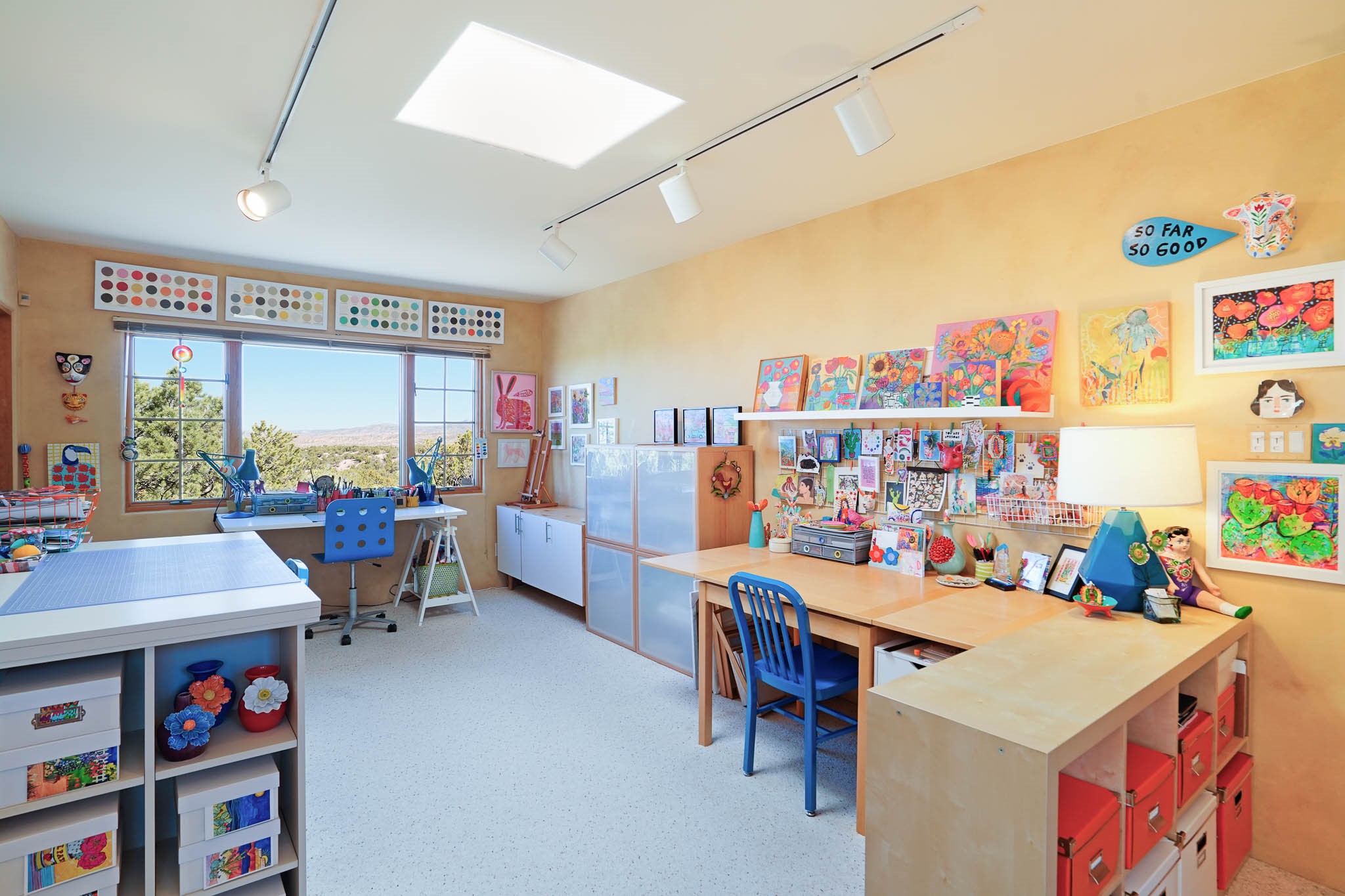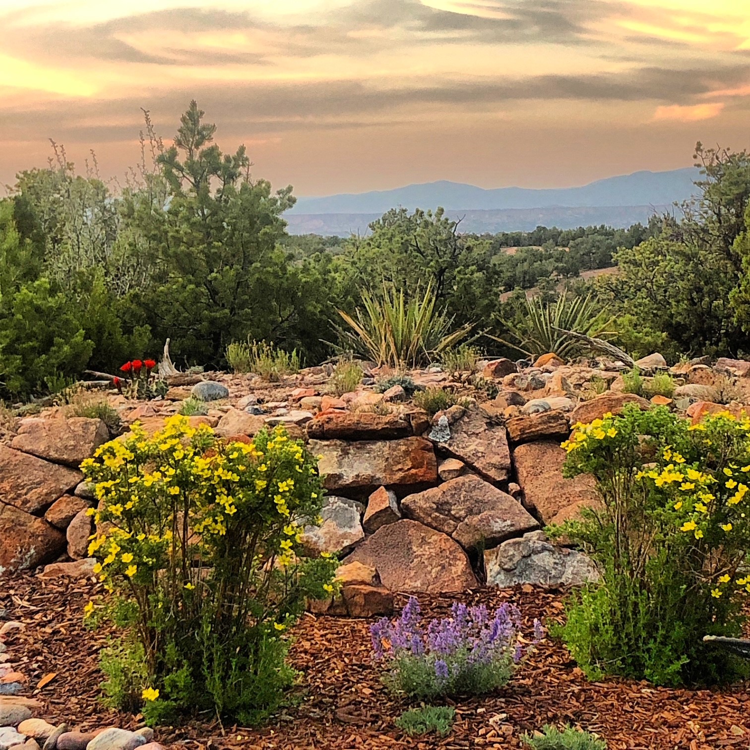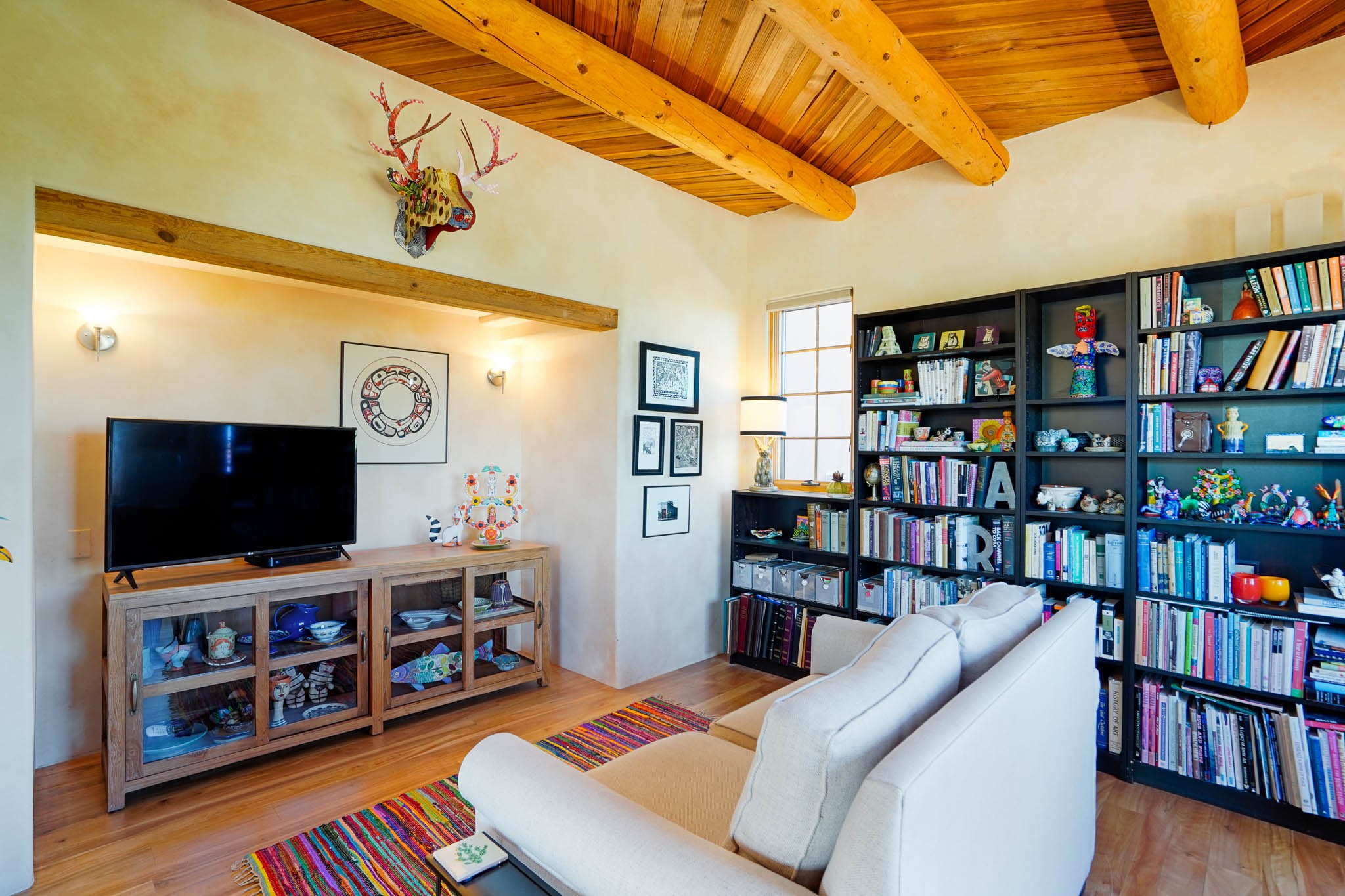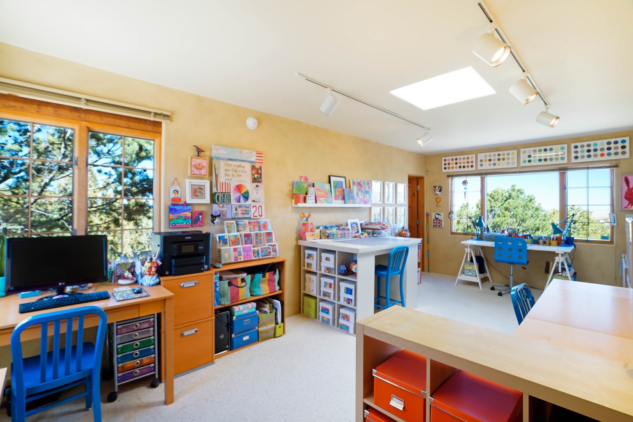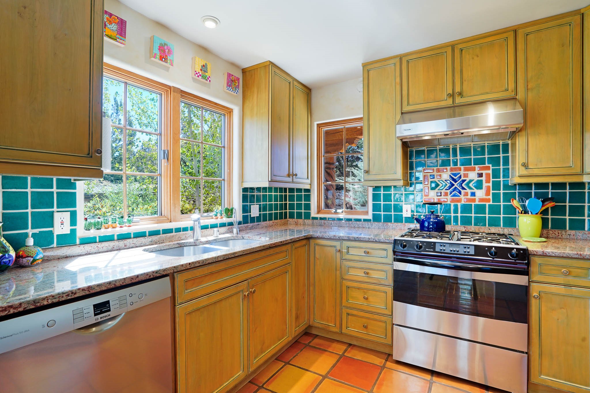 True to its name, 22 Loma Serena--"Serene Hill"--offers a peaceful hilltop retreat with some of the most breathtaking views in Santa Fe. Located in the desirable Tano Road area, this 2,508-square-foot home sits on 4.55 private acres, surrounded by pion trees and big New Mexico skies. You'll enjoy panoramic views of the Sangre de Cristos, Jemez Mountains, Badlands, and beyond all the way to Colorado. Built with classic Southwestern charm, the home features warm wood beams and vigas, colorful Talavera and Saltillo tile, beautiful hardwood floors, and cozy kiva fireplaces. The open floorplan flows easily and is filled with natural light. There are three spacious bedrooms, including two upstairs suites with private decks, and four bathrooms--one full and three baths--giving everyone space and privacy. The welcoming kitchen, bright living and dining areas, and large windows bring the outdoors in, while the Eastside flagstone patio is perfect for soaking up the crisp Santa Fe air. A gated courtyard, sunny stone patio, direct-entry one-car garage, and a private guest suite with its own entrance add even more flexibility and comfort. In addition the property was reroofed in 2019, new HVAC installed 2022 and re-stuccoed in 2023. Whether you're looking for a serene full-time home or a peaceful getaway to gather with family and friends, 22 Loma Serena is the kind of place that just feels good to come home to.