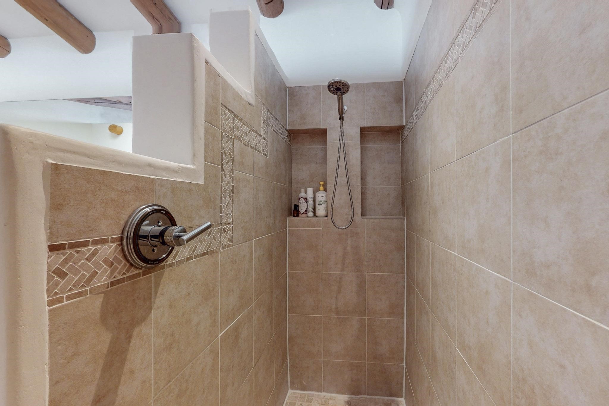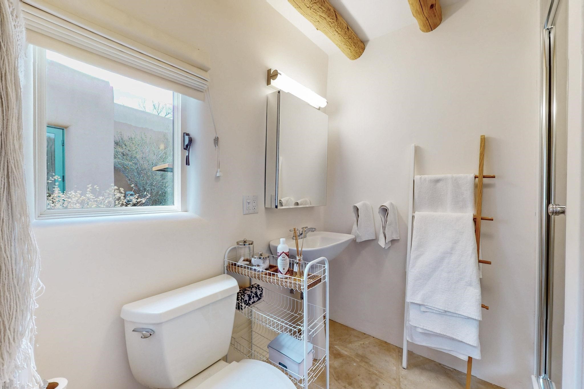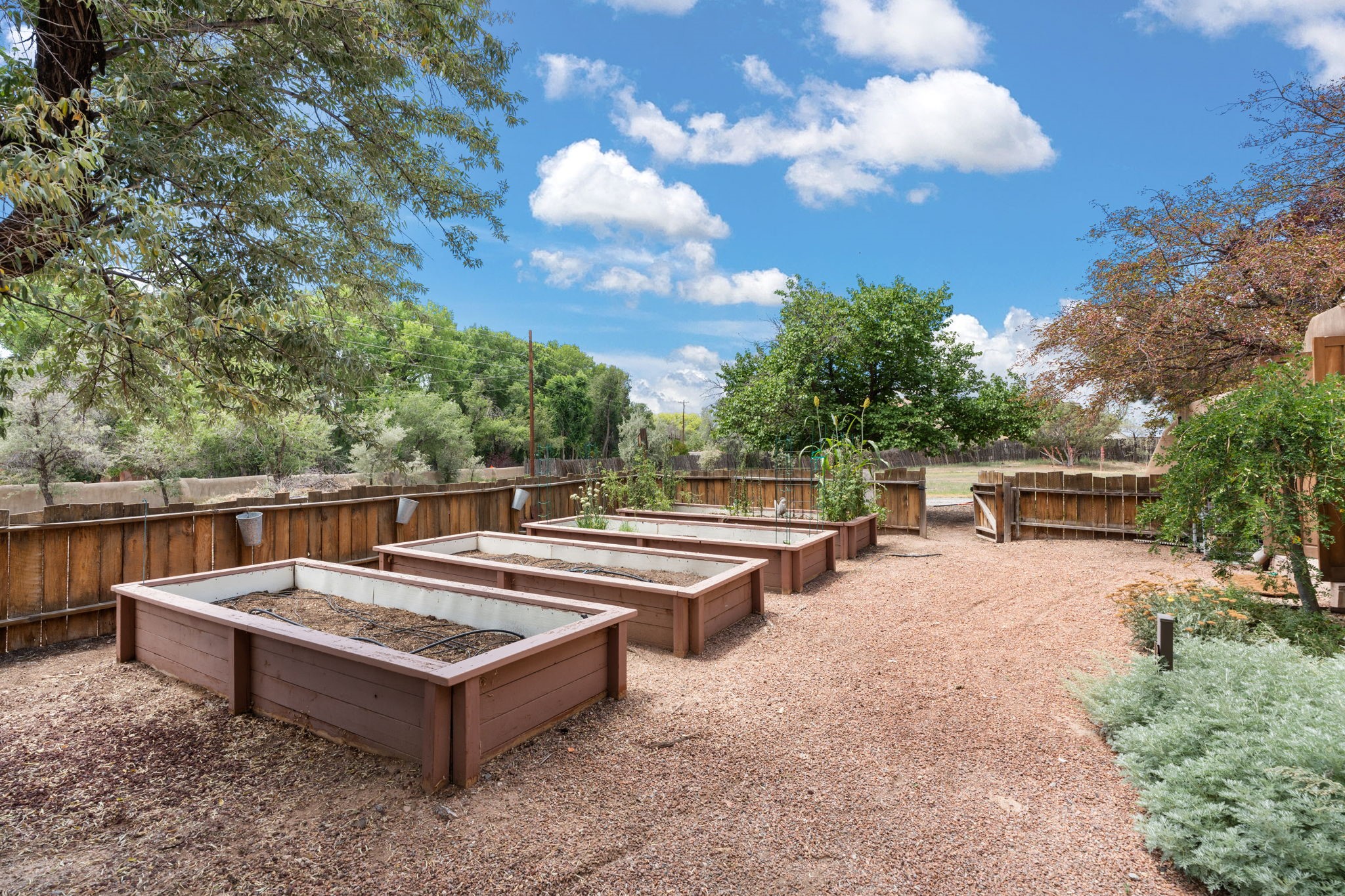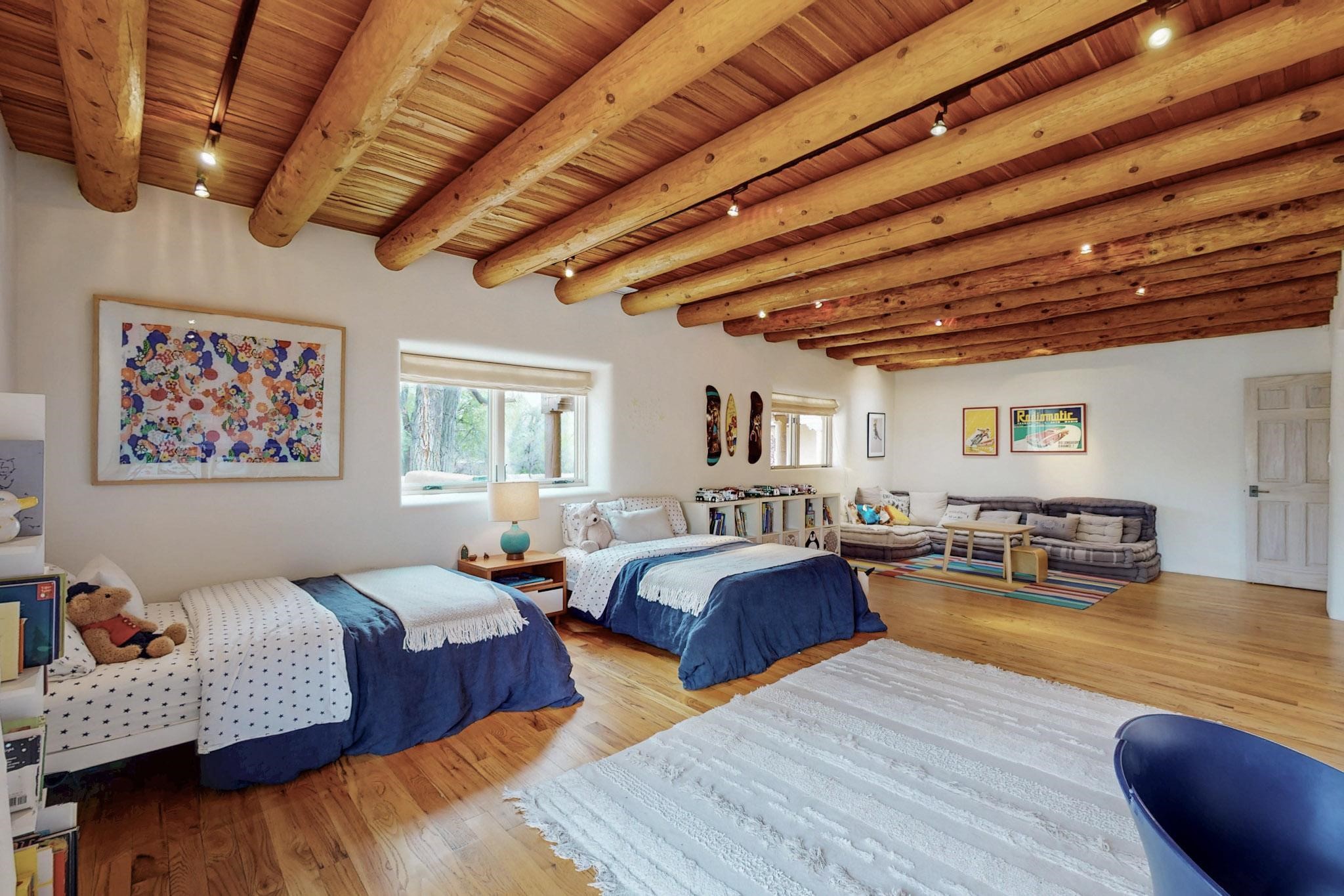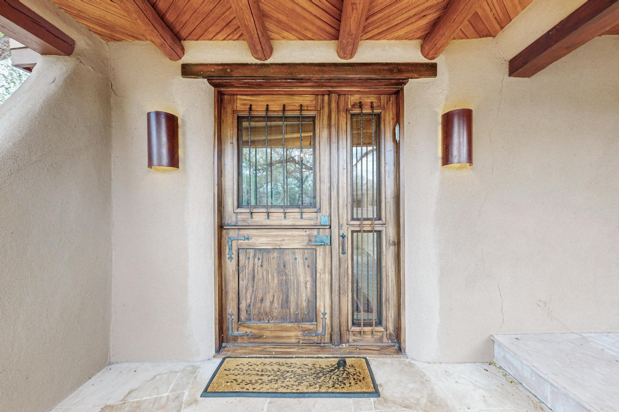 Situated on 2.05 fertile acres in the Nambe Valley lies Casa Alegria. With easy access to both Santa Fe and Los Alamos, this magnificent property boasts authentic Pueblo-style craftsmanship throughout. Surrounding the premiere home on this compound, you'll enjoy courtyards, portals, fireplaces, patios, and landscaped gardens, with mature trees. The interior of this expansive home offers a gourmet kitchen, hardwood and flagstone flooring, viga ceilings, and kiva fireplaces. In its expansive primary bedroom, you'll enjoy a spa bath, walk-in closet, and a spacious patio with its own swimming pool. Additionally, the one-bedroom guesthouse with equally impressive craftsmanship offers a dining area, bathroom, and kitchenette. Adjacent to the oversized 2-car garage is a bonus studio or office space, also with its own bath. Welcome to this spectacular northern New Mexico property.