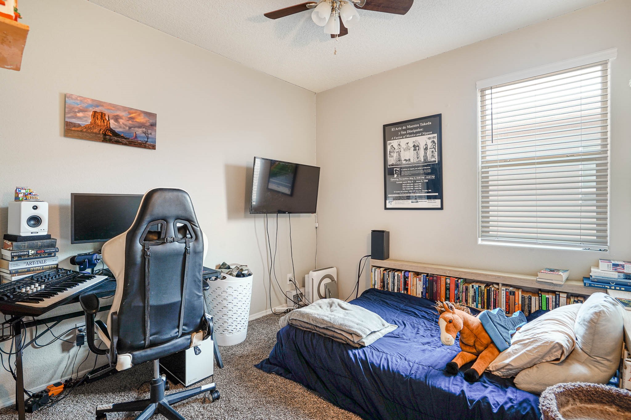 Welcome to this 2019-built, single-story home in the sought-after Cielo Azul Community! Offering 1,791 square feet of thoughtfully designed living space, this 3-bedroom, 2-bathroom home also features a versatile office/studio--perfect for remote work or creative pursuits.Designed for both comfort and entertaining, the open-concept layout seamlessly connects the living, dining, and kitchen areas, creating a spacious and inviting atmosphere. You'll love the generous room sizes, stylish flooring, and ample closet space throughout. The private owner's suite is set apart from the guest bedrooms for added tranquility and features dual closets for exceptional storage.Refrigerated central air ensures year-round comfort, while the spacious backyard offers an ideal space for relaxation and gatherings. Enjoy the enclosed patio with paver-stone accents and a built-in natural gas line--perfect for seamless outdoor grilling and entertaining.Additional highlights include a two-car garage with direct home entry and a prime location with easy access to Highway 599. Situated near Ramirez Thomas Elementary School, Camino Real Academy, shopping, dining, entertainment, and everyday conveniences, this home truly has it all.Don't miss out--schedule your showing today!