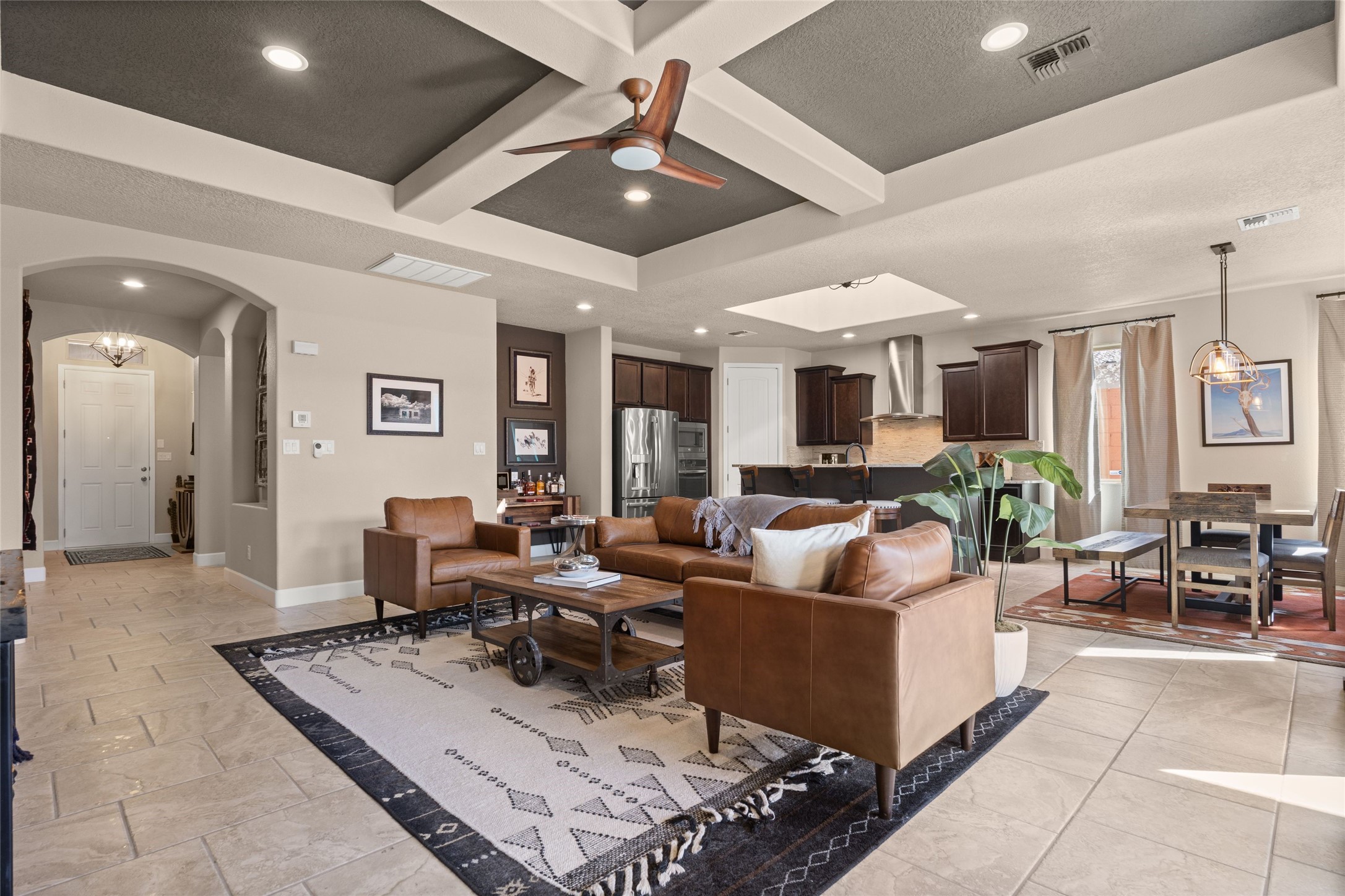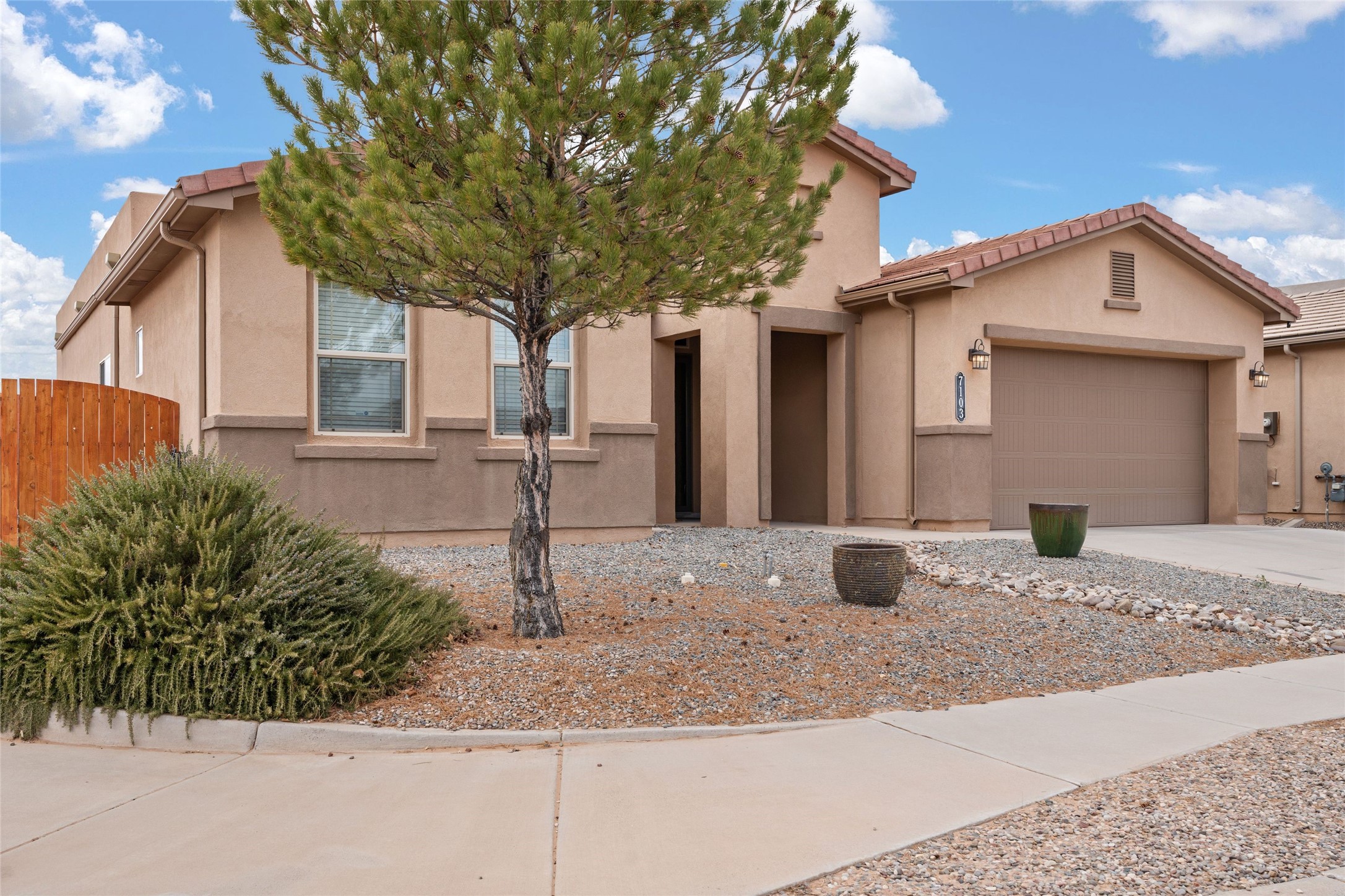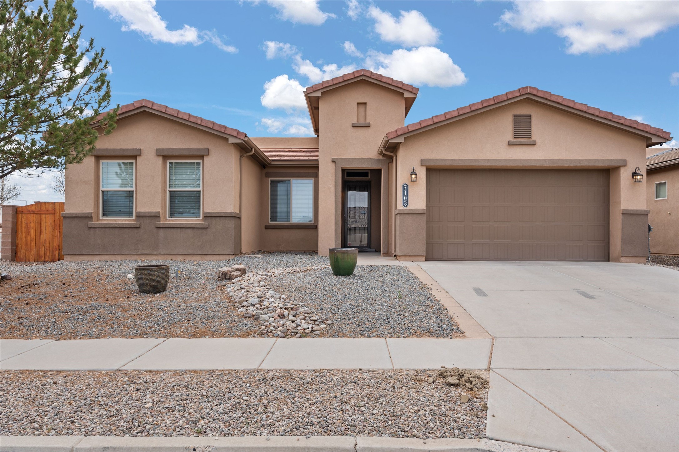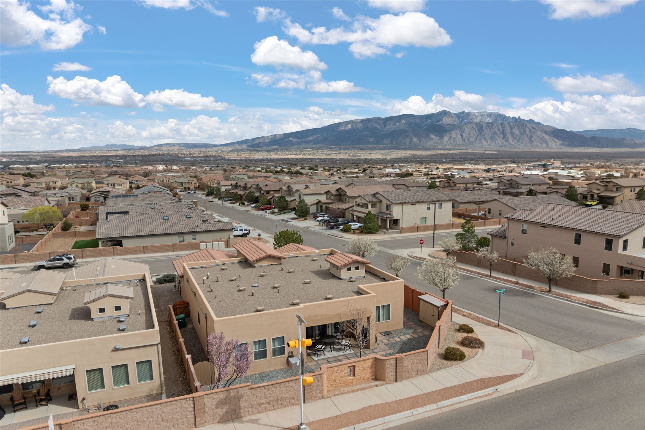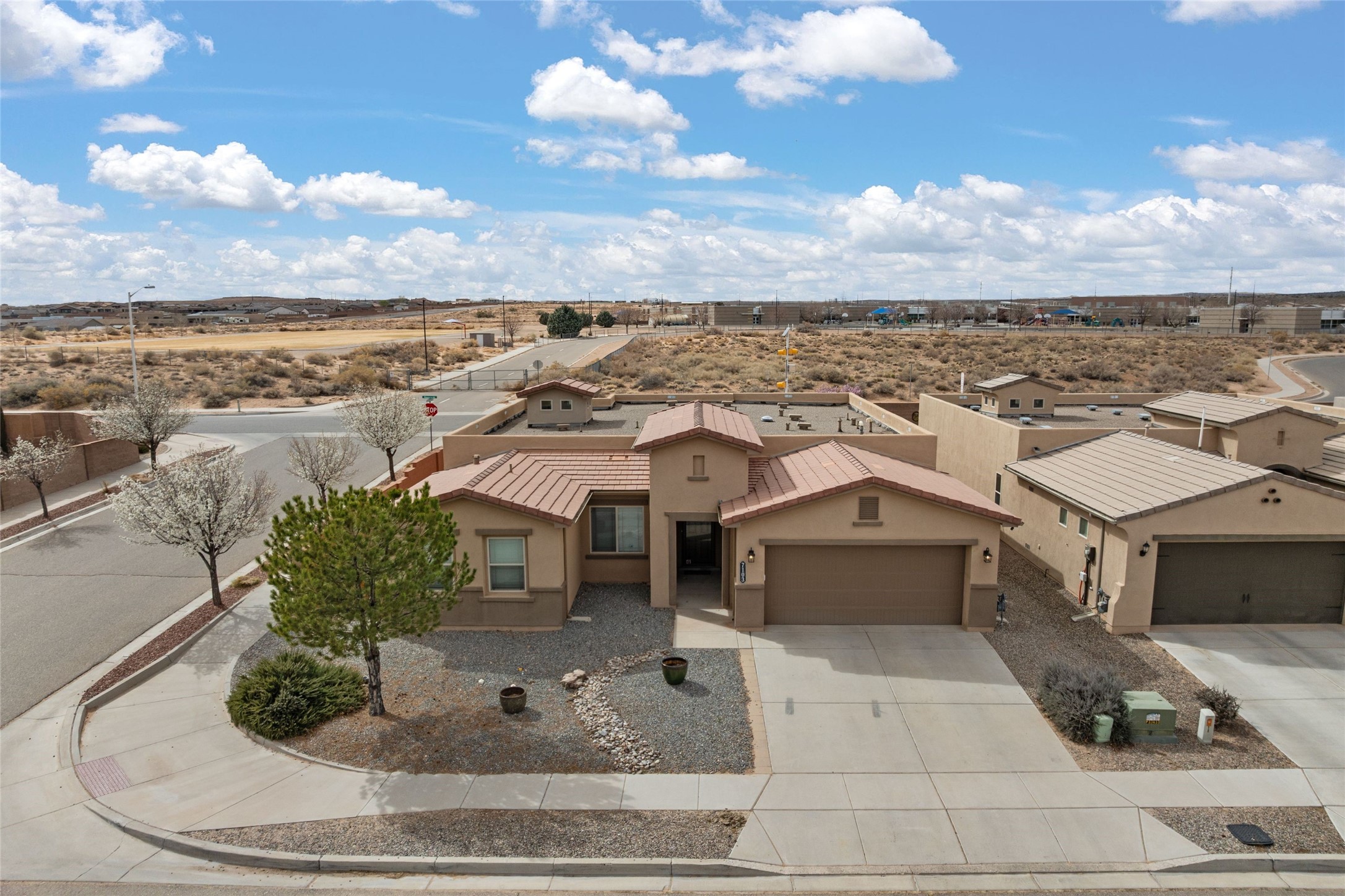 CORNER-LOT IN HIGHLY DESIRABLE LOMAS ENCANTADAS - This stunning corner-lot property in the highly sought after Lomas Encantadas Community offers the perfect blend of both comfort and elegance with its chic architectural details throughout. Meticulously maintained by its owner, this 3-bedroom, 3-bathroom single-story residence with no interior steps also includes a flex room that can serve as a supplemental office or media room. Enjoy cooking in the beautifully appointed chef's kitchen, which features stainless steel appliances, granite counter tops, and a sizable pantry. The spacious living room is bathed in natural light and boasts a coffered, two-tone ceiling which seamlessly flows into the kitchen and dining areas and opens onto a covered patio. The large three-panel door leading to the rear patio provides plenty of natural light and the perfect vantage point for enjoying those spectacular evening sunsets! The large primary suite offers ample space for a supplemental sitting area, while also accommodating a king-size bed. Two additional bedrooms are also generously sized and share a Jack-and-Jill Full bathroom. The tandem garage provides extra room for a significant amount of storage and either a workshop or hobby space. With its spectacular views of the Sandia Mountains at the front of the property and sunset views available via the rear patio, the outdoor spaces are truly inviting! This lovely home is conveniently located just minutes from schools, shopping, restaurants, and a dog park. Don't miss out on this exciting opportunity to own this spectacular home in Lomas Encantadas - schedule your showing today!