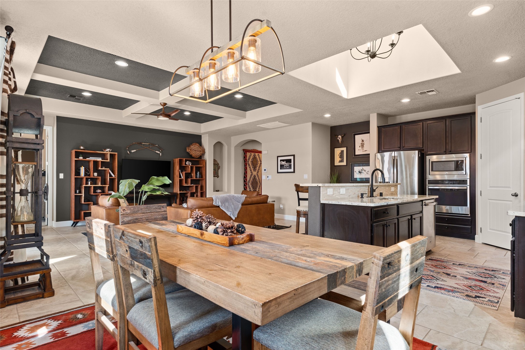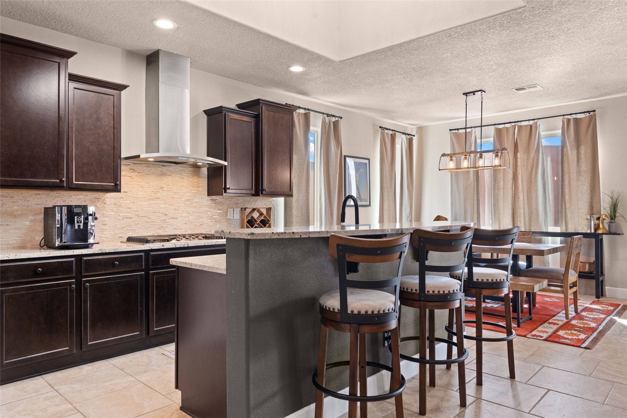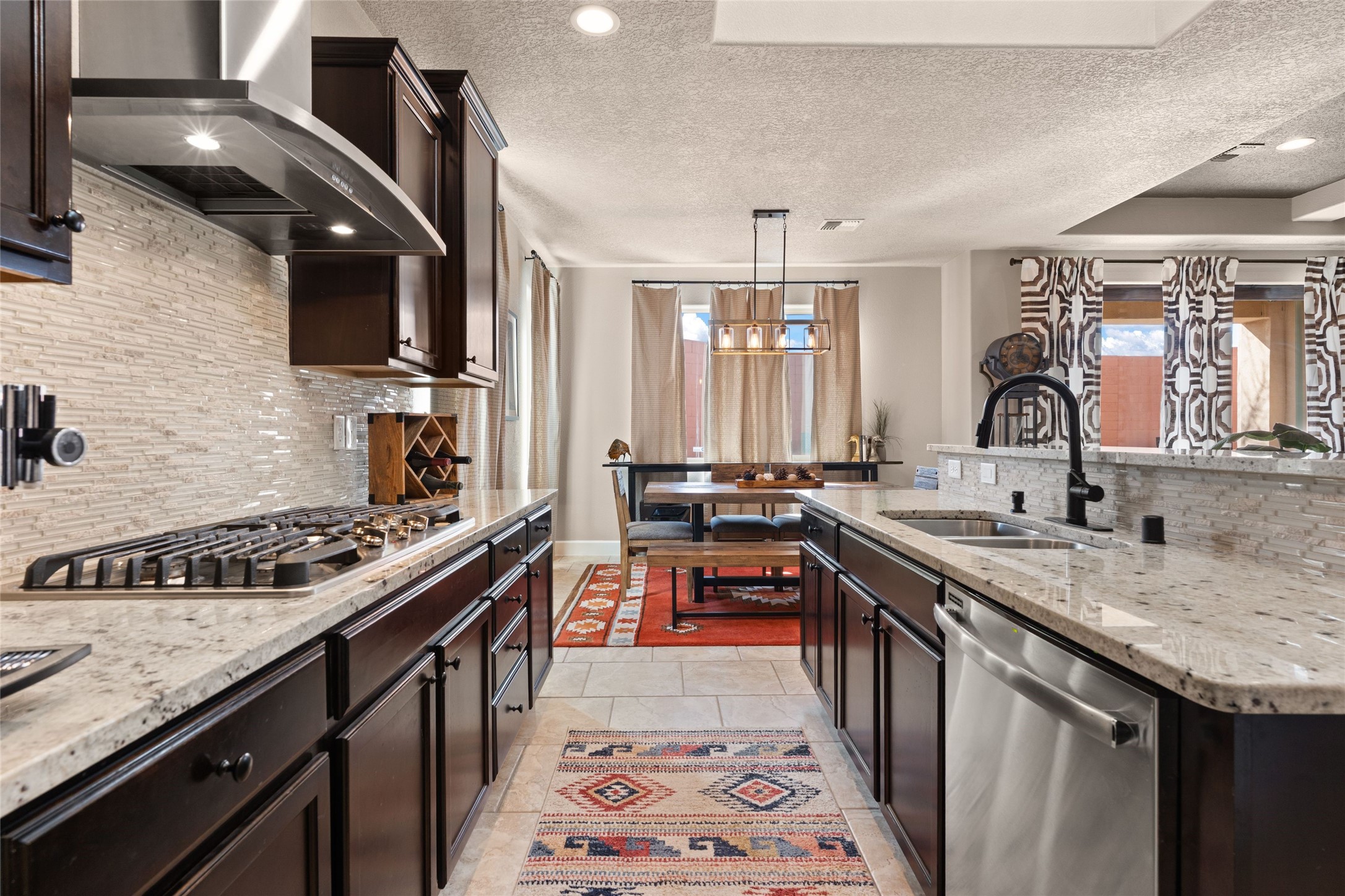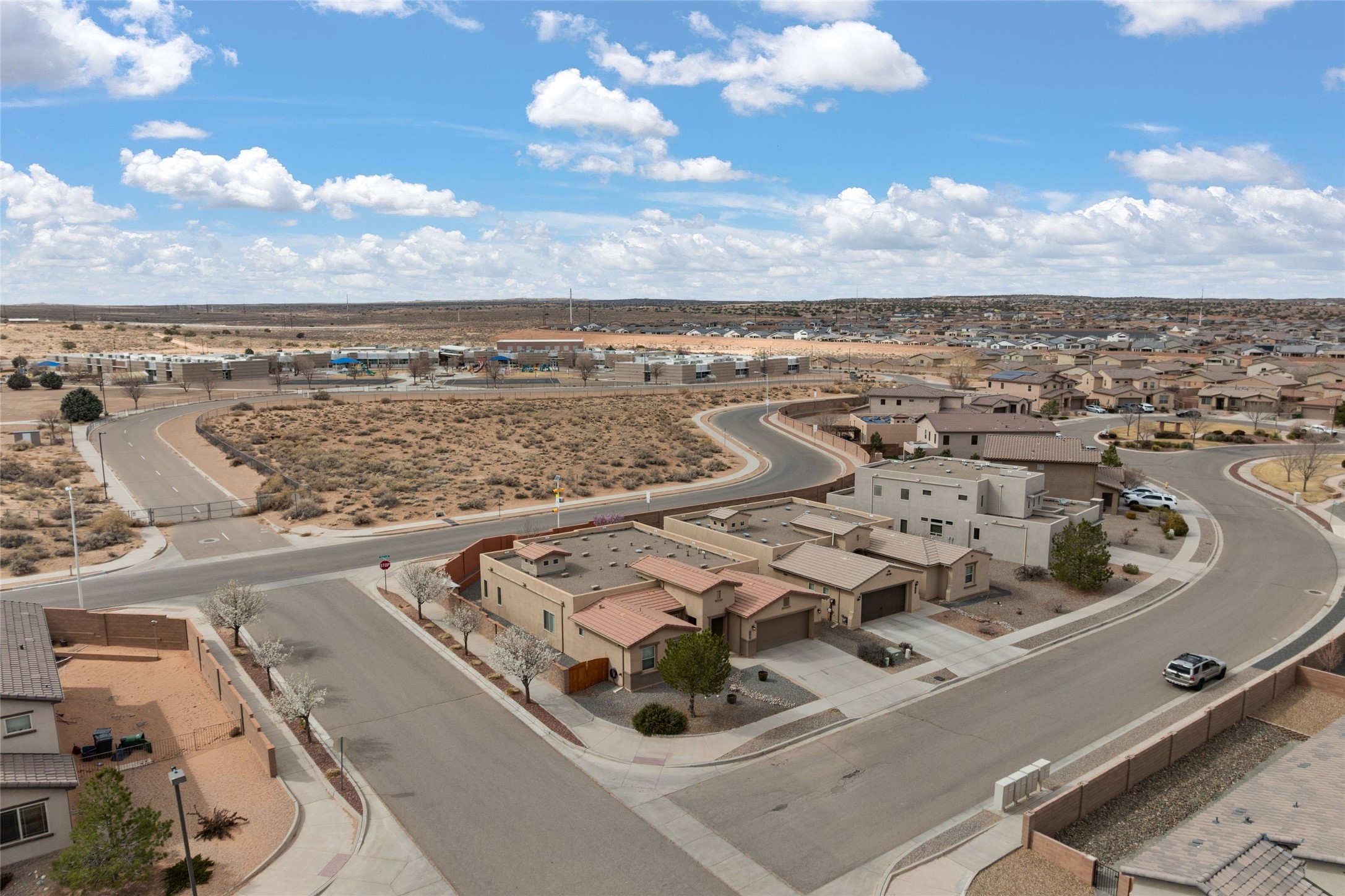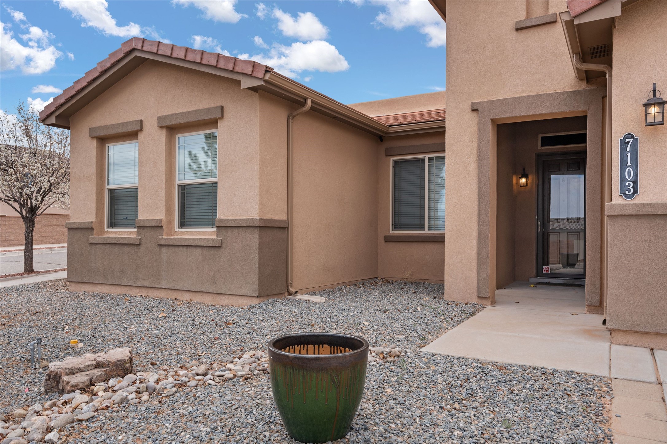 CORNER-LOT IN HIGHLY DESIRABLE LOMAS ENCANTADAS - This stunning corner-lot property in the highly sought after Lomas Encantadas Community offers the perfect blend of both comfort and elegance with its chic architectural details throughout. Meticulously maintained by its owner, this 3-bedroom, 3-bathroom single-story residence with no interior steps also includes a flex room that can serve as a supplemental office or media room. Enjoy cooking in the beautifully appointed chef's kitchen, which features stainless steel appliances, granite counter tops, and a sizable pantry. The spacious living room is bathed in natural light and boasts a coffered, two-tone ceiling which seamlessly flows into the kitchen and dining areas and opens onto a covered patio. The large three-panel door leading to the rear patio provides plenty of natural light and the perfect vantage point for enjoying those spectacular evening sunsets! The large primary suite offers ample space for a supplemental sitting area, while also accommodating a king-size bed. Two additional bedrooms are also generously sized and share a Jack-and-Jill Full bathroom. The tandem garage provides extra room for a significant amount of storage and either a workshop or hobby space. With its spectacular views of the Sandia Mountains at the front of the property and sunset views available via the rear patio, the outdoor spaces are truly inviting! This lovely home is conveniently located just minutes from schools, shopping, restaurants, and a dog park. Don't miss out on this exciting opportunity to own this spectacular home in Lomas Encantadas - schedule your showing today!