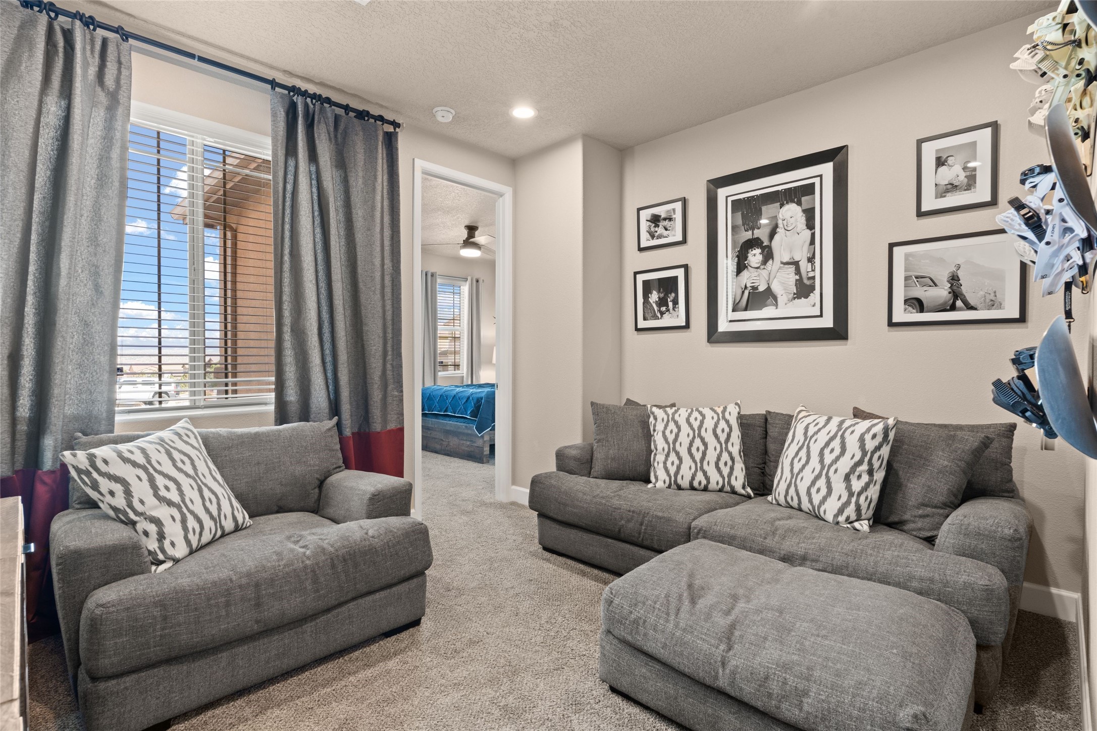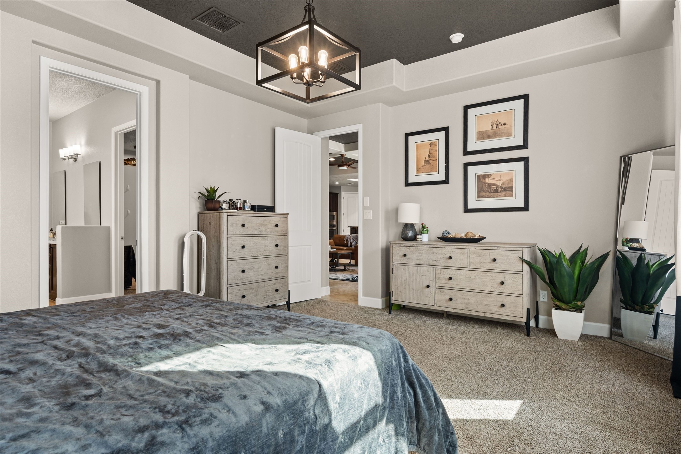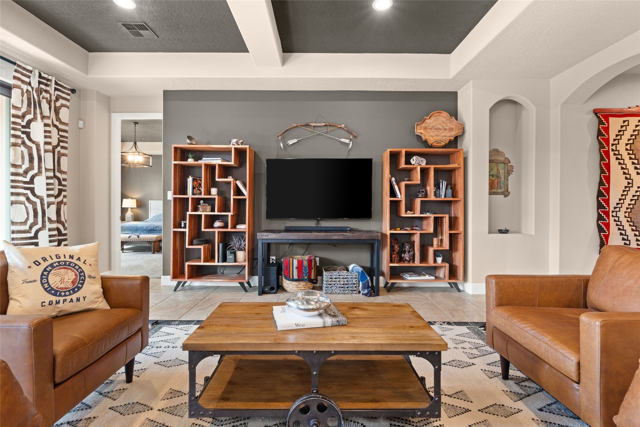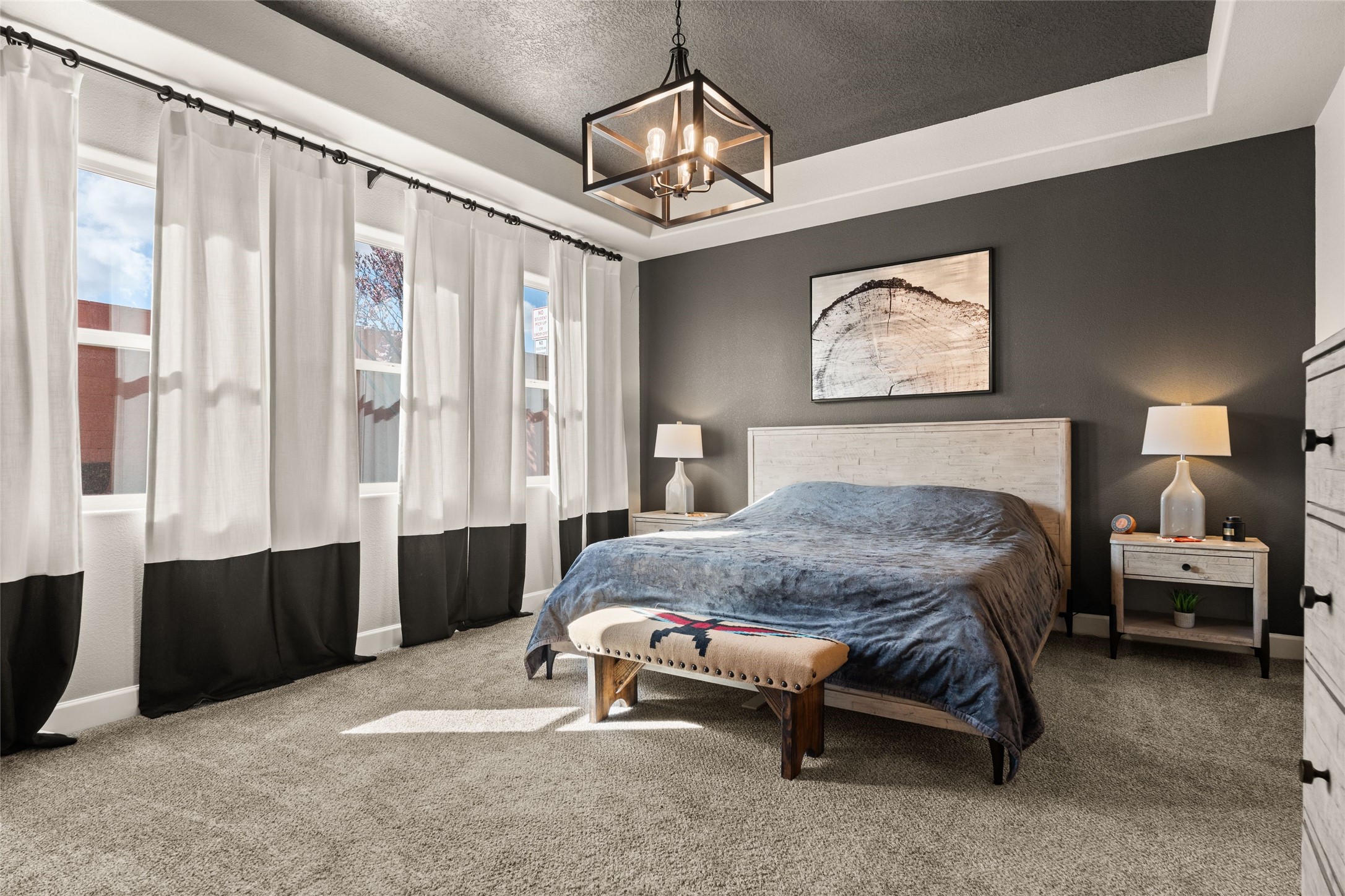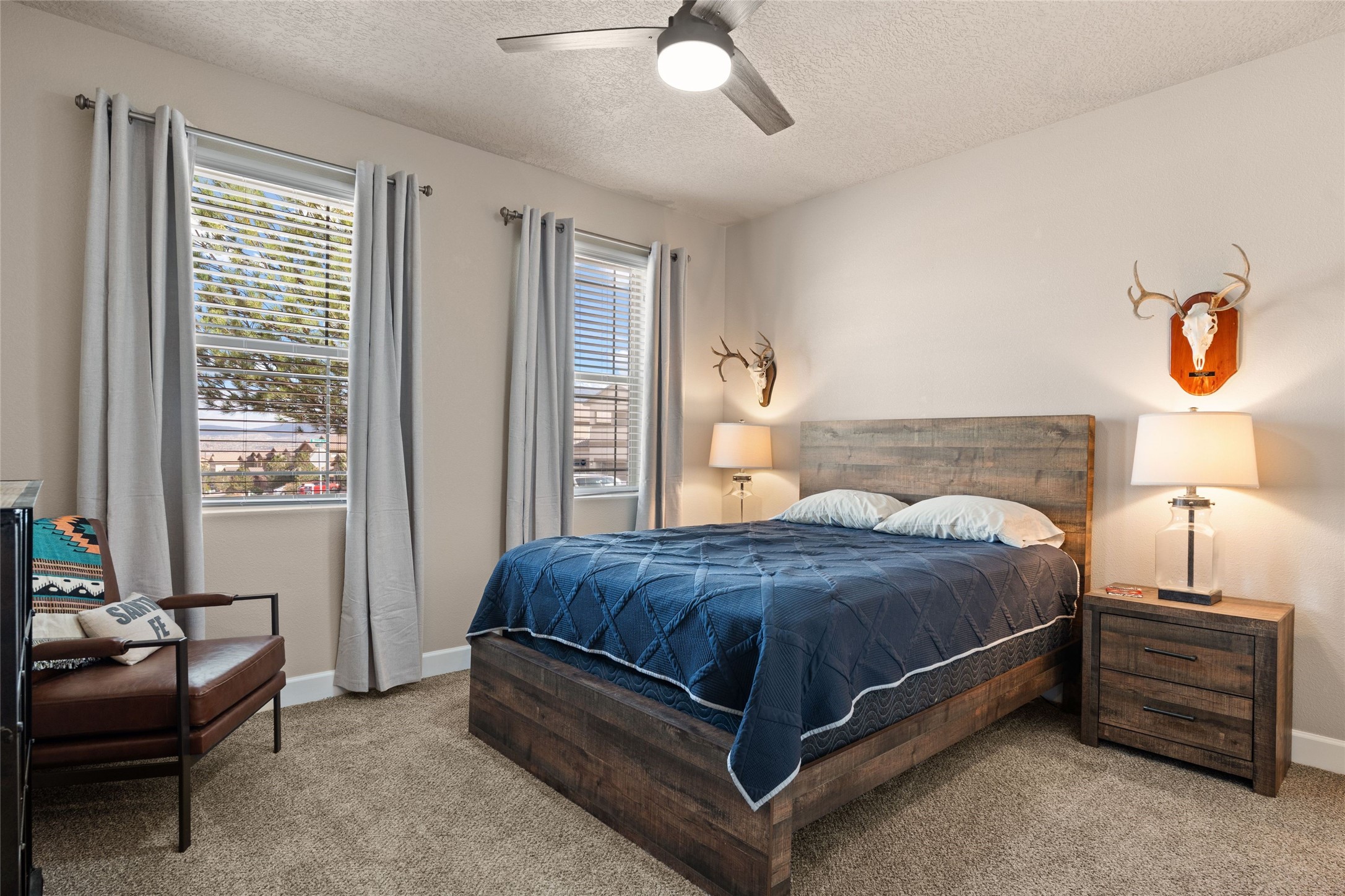 CORNER-LOT IN HIGHLY DESIRABLE LOMAS ENCANTADAS - This stunning corner-lot property in the highly sought after Lomas Encantadas Community offers the perfect blend of both comfort and elegance with its chic architectural details throughout. Meticulously maintained by its owner, this 3-bedroom, 3-bathroom single-story residence with no interior steps also includes a flex room that can serve as a supplemental office or media room. Enjoy cooking in the beautifully appointed chef's kitchen, which features stainless steel appliances, granite counter tops, and a sizable pantry. The spacious living room is bathed in natural light and boasts a coffered, two-tone ceiling which seamlessly flows into the kitchen and dining areas and opens onto a covered patio. The large three-panel door leading to the rear patio provides plenty of natural light and the perfect vantage point for enjoying those spectacular evening sunsets! The large primary suite offers ample space for a supplemental sitting area, while also accommodating a king-size bed. Two additional bedrooms are also generously sized and share a Jack-and-Jill Full bathroom. The tandem garage provides extra room for a significant amount of storage and either a workshop or hobby space. With its spectacular views of the Sandia Mountains at the front of the property and sunset views available via the rear patio, the outdoor spaces are truly inviting! This lovely home is conveniently located just minutes from schools, shopping, restaurants, and a dog park. Don't miss out on this exciting opportunity to own this spectacular home in Lomas Encantadas - schedule your showing today!