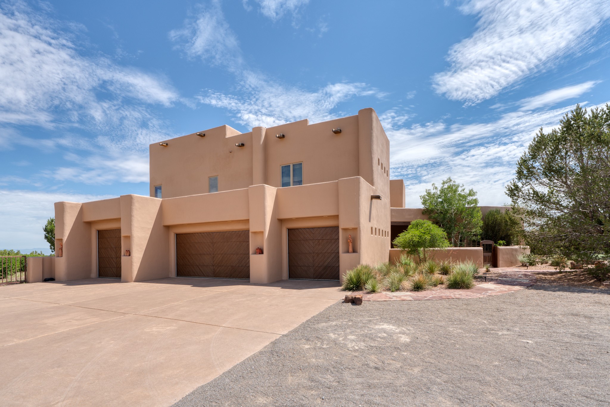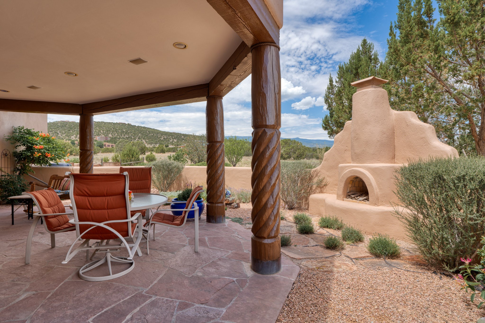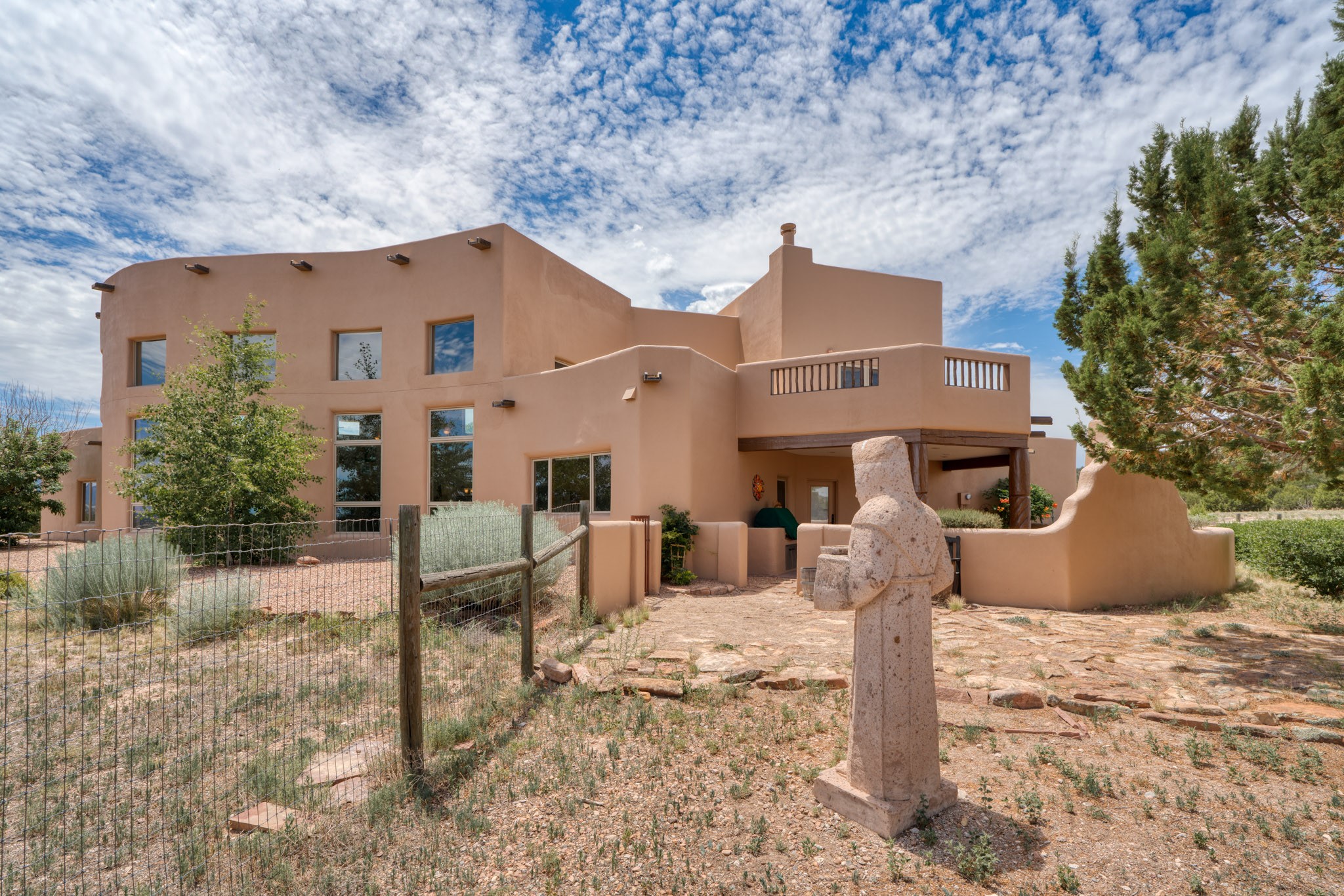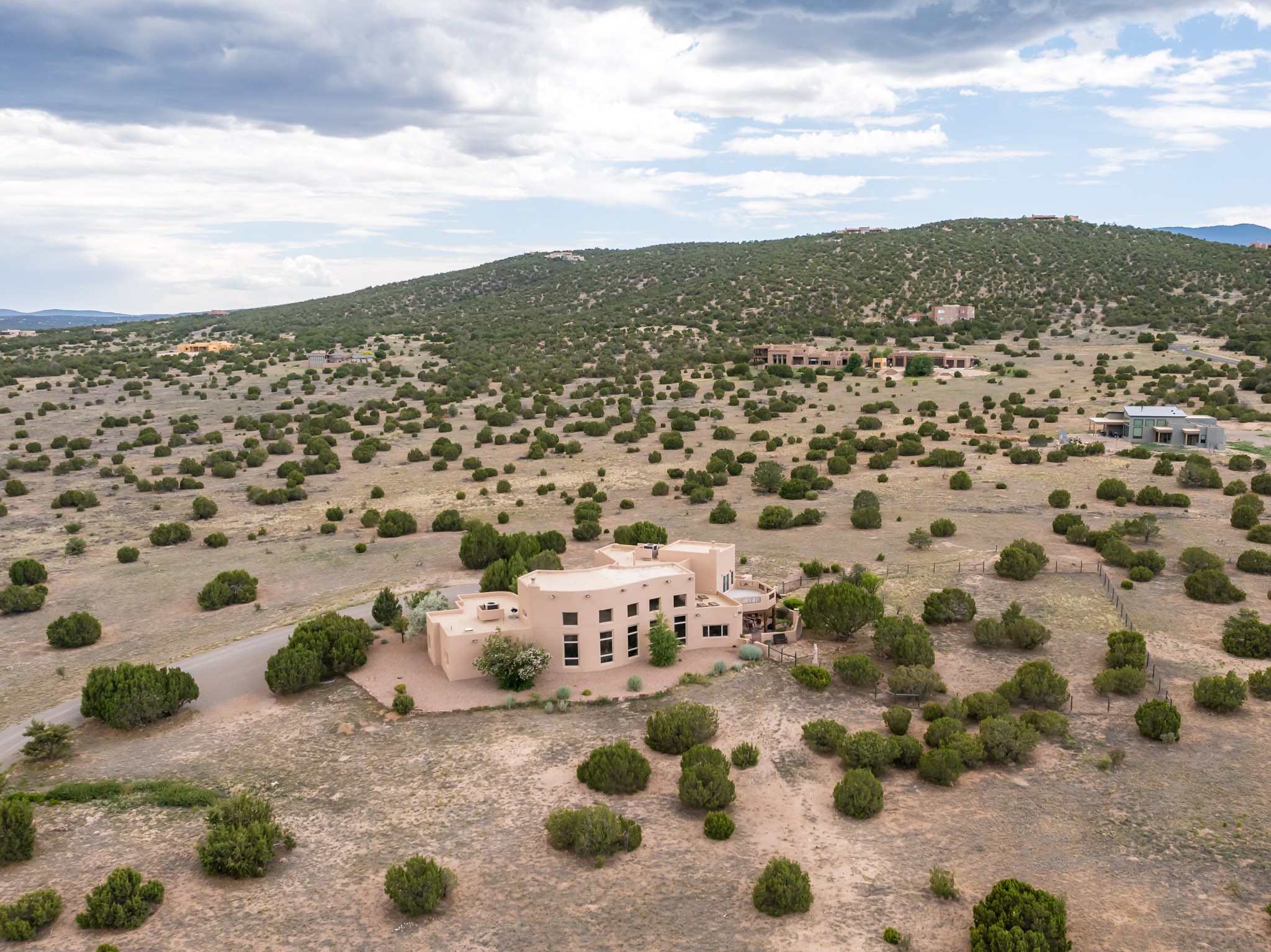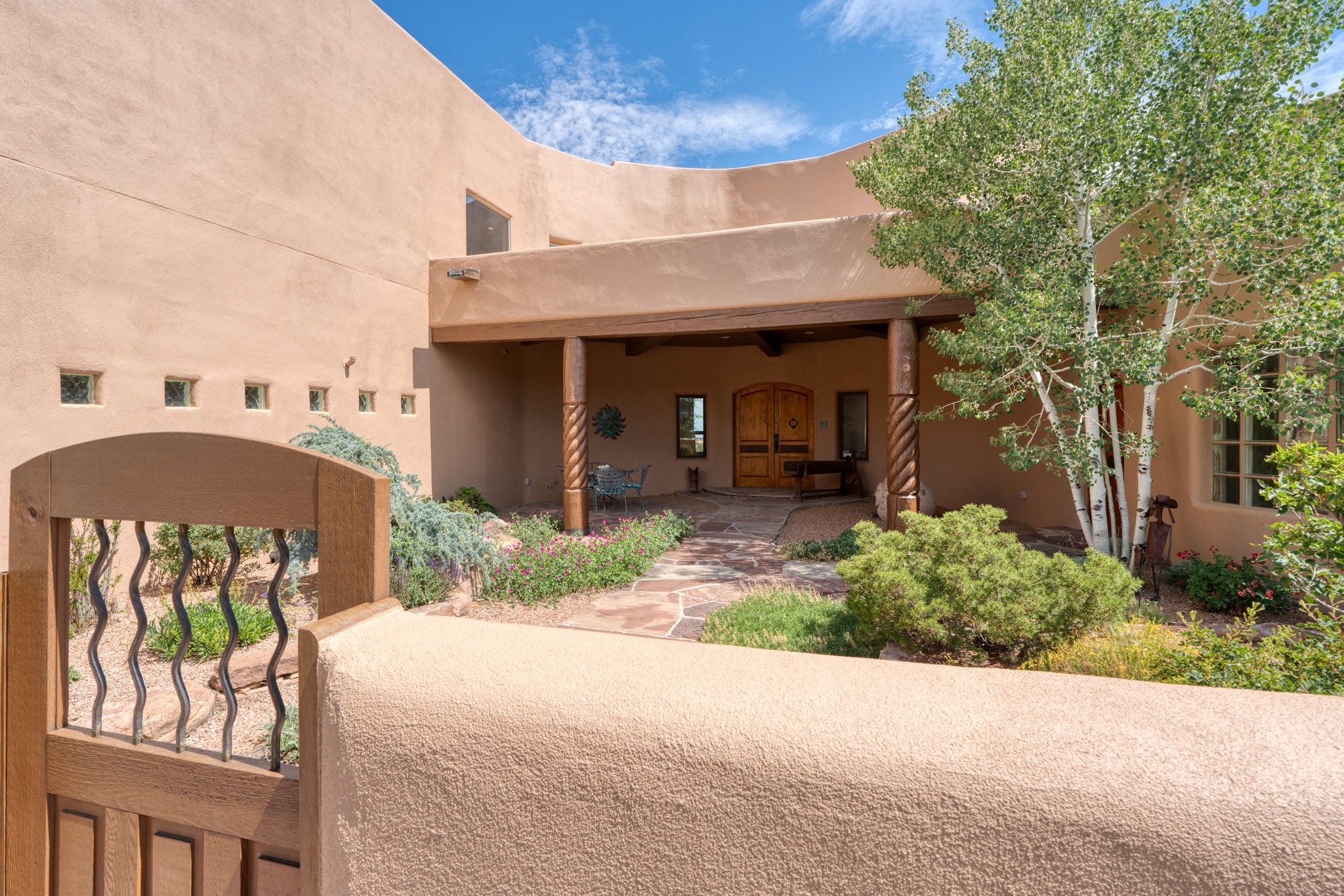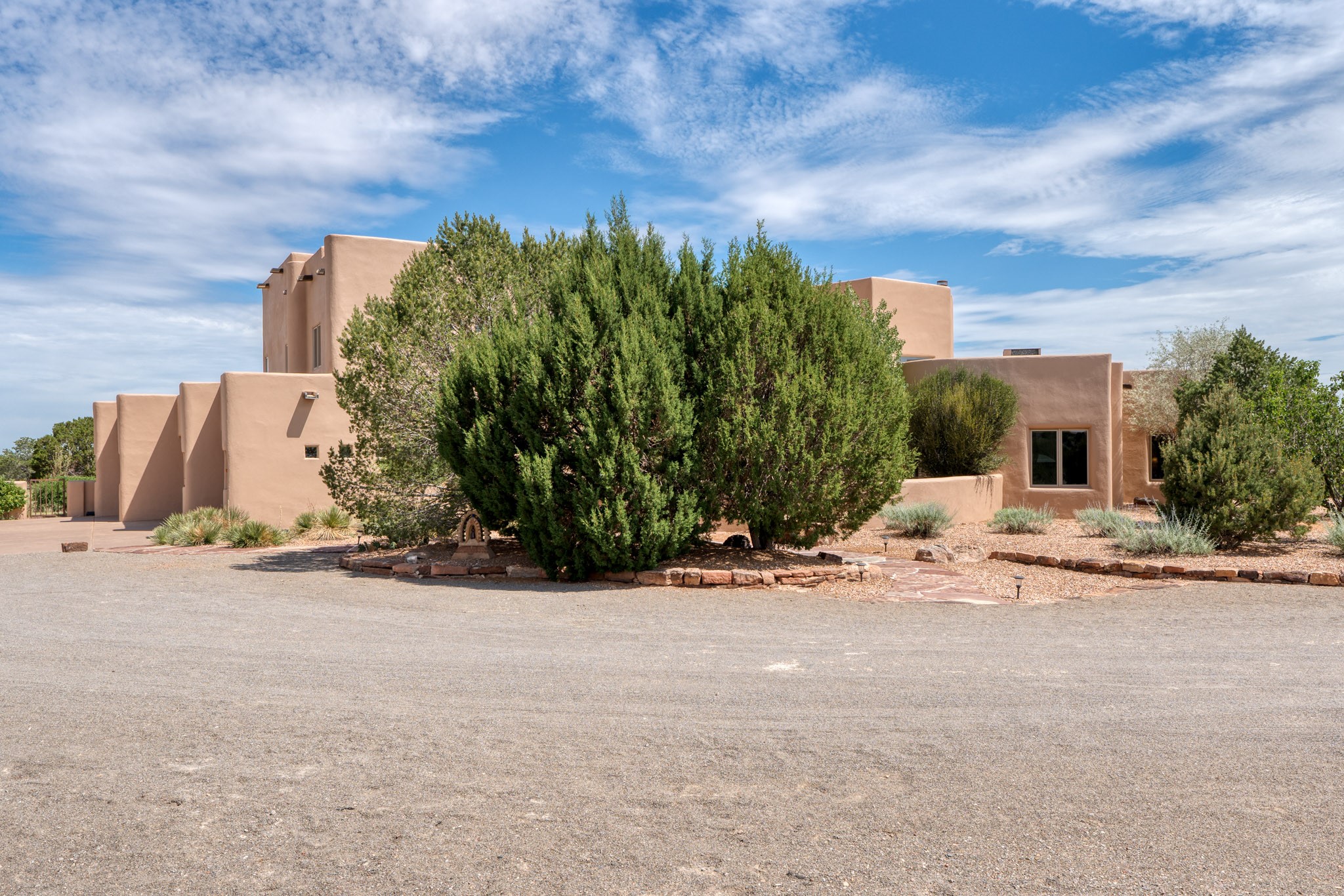 Imagine a home designed to capture the essence of East Mountain living on 10 acres, where expansive walls of glass blur the lines between indoors & out. This custom-built masterpiece boasts soaring ceilings with handcrafted wood beams that amplify light and openness, while every window offers a breathtaking vista. This beauty with a fabulous open floor plan, originally built for the builder, with many custom features. Certified Green Build with ICF Construction and Turkish travertine floors, Pella wood windows, magnificent 22' Kiva in Living room, Chef's kitchen with high-end Kitchen Aid appliances, Thermador Professional range, tons of counter space & butcher block island. Covered patio with kiva fireplace, 4-car oversized garage, fenced yard (2/3 ac) Roof-top deck on 10 acres.
