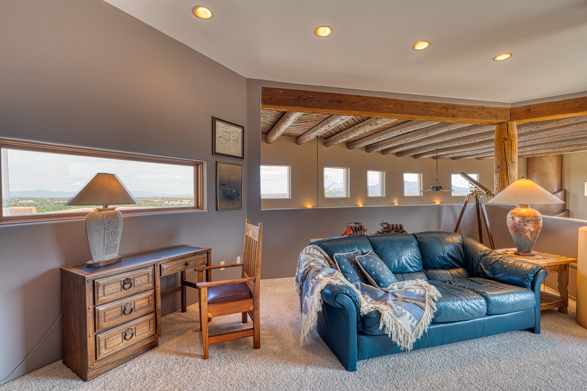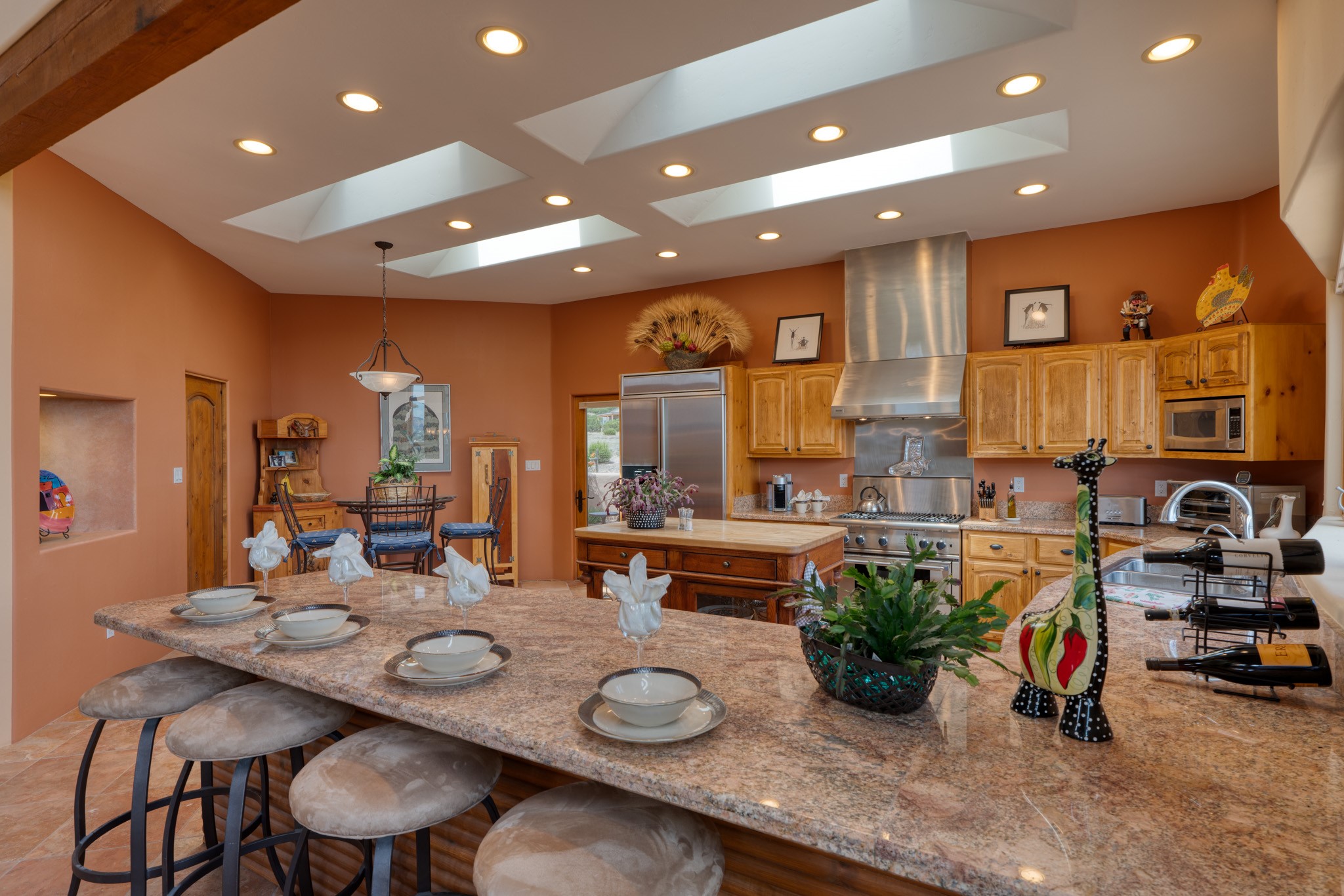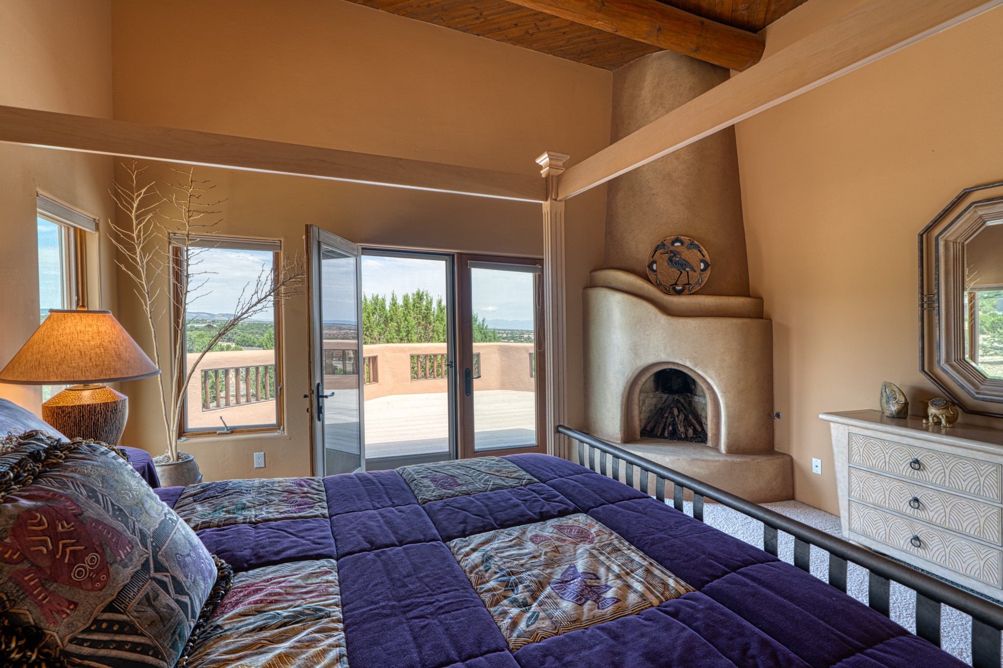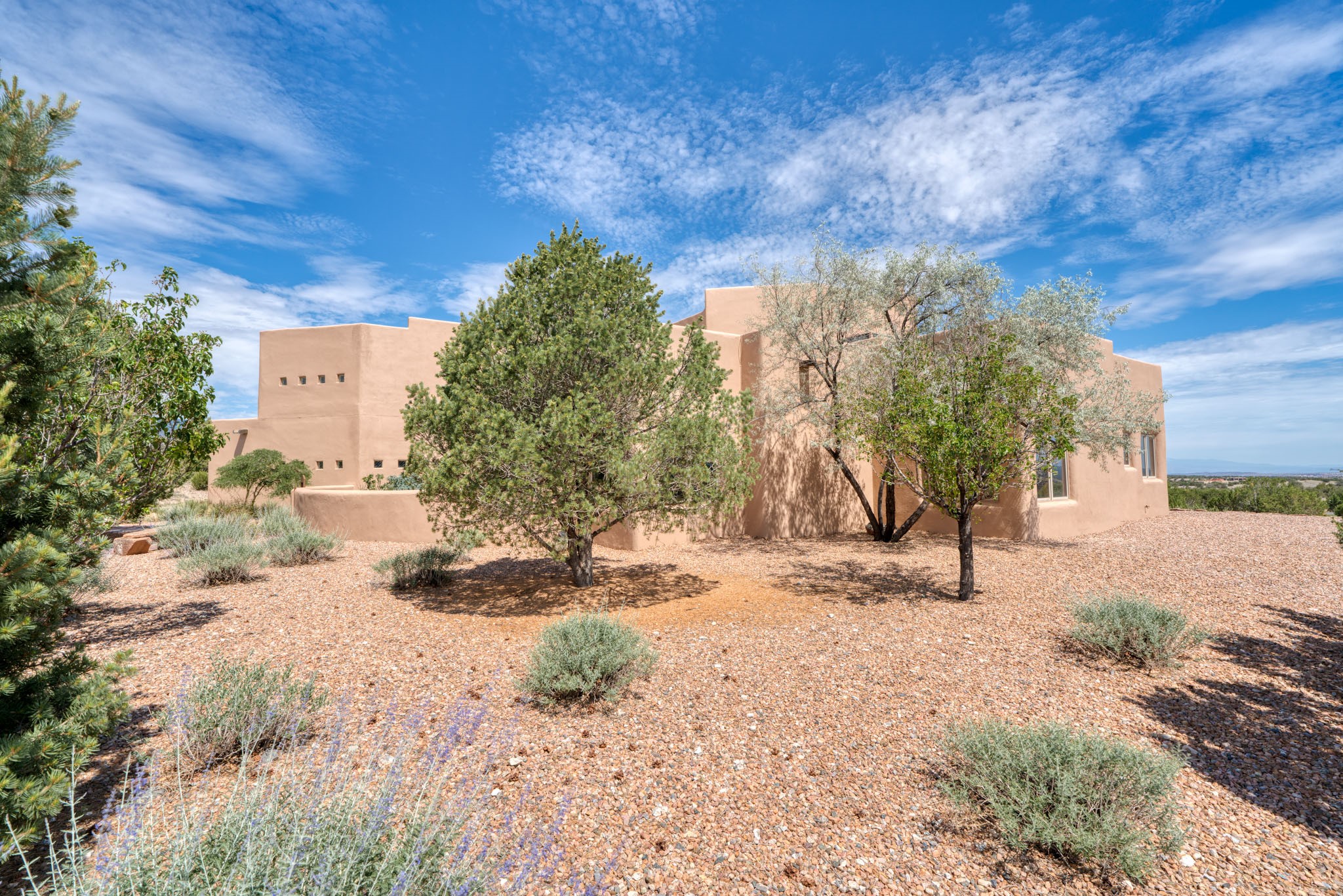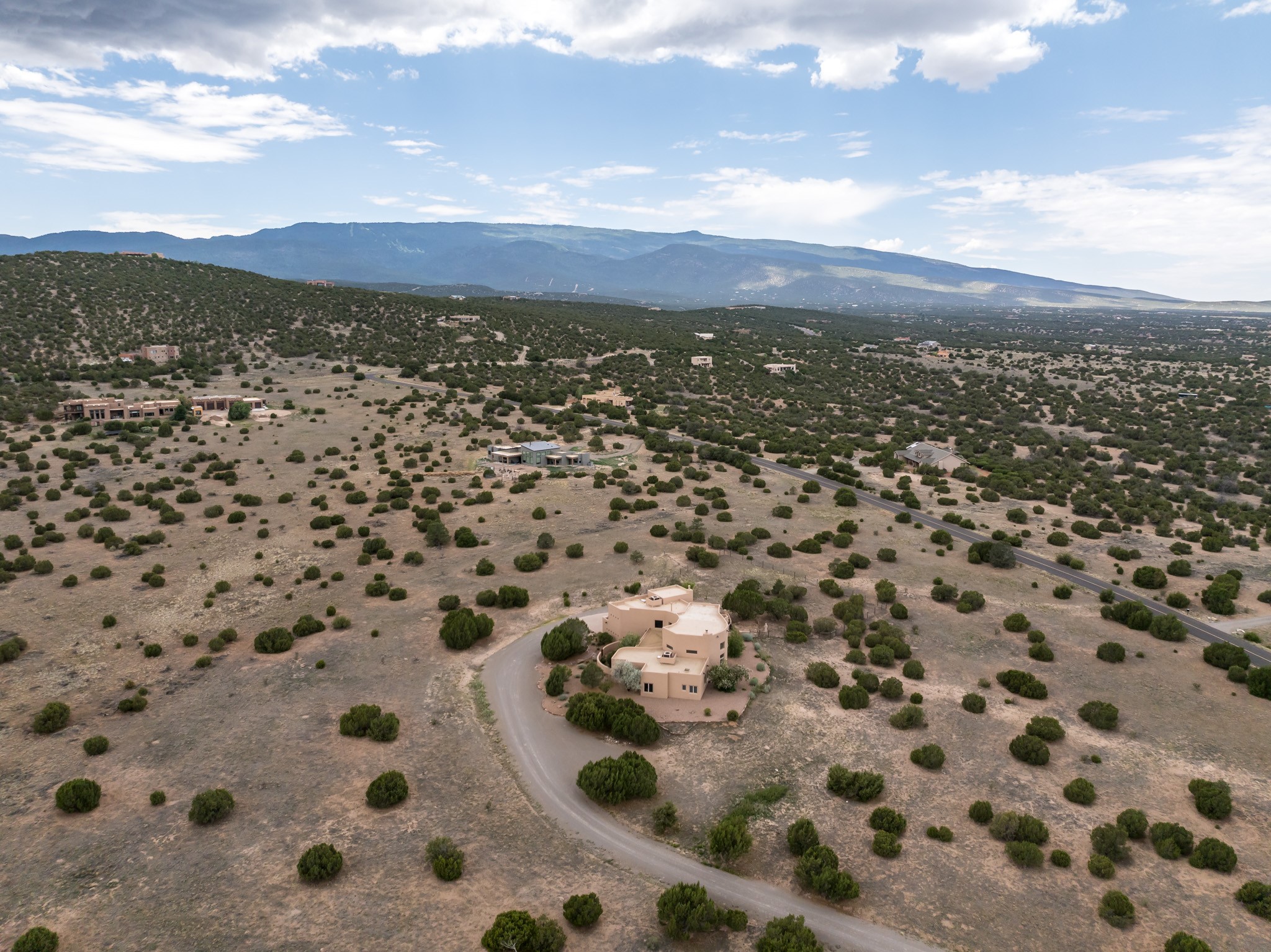 Imagine a home designed to capture the essence of East Mountain living on 10 acres, where expansive walls of glass blur the lines between indoors & out. This custom-built masterpiece boasts soaring ceilings with handcrafted wood beams that amplify light and openness, while every window offers a breathtaking vista. This beauty with a fabulous open floor plan, originally built for the builder, with many custom features. Certified Green Build with ICF Construction and Turkish travertine floors, Pella wood windows, magnificent 22' Kiva in Living room, Chef's kitchen with high-end Kitchen Aid appliances, Thermador Professional range, tons of counter space & butcher block island. Covered patio with kiva fireplace, 4-car oversized garage, fenced yard (2/3 ac) Roof-top deck on 10 acres.