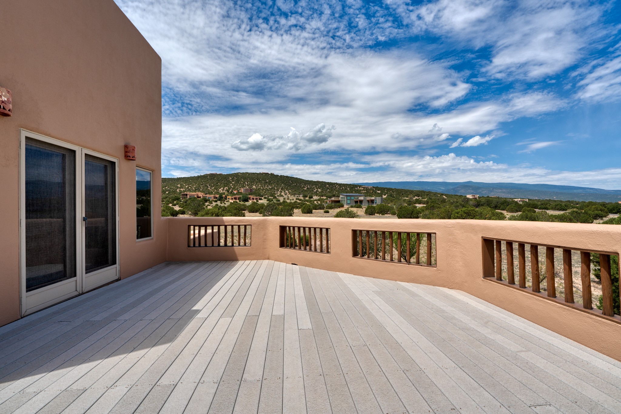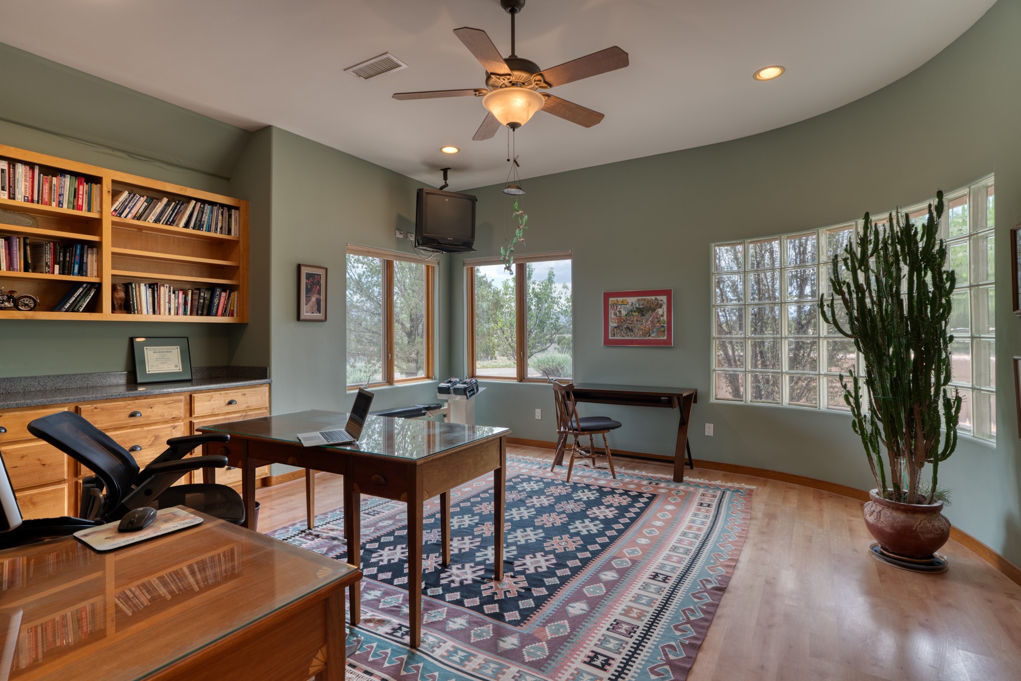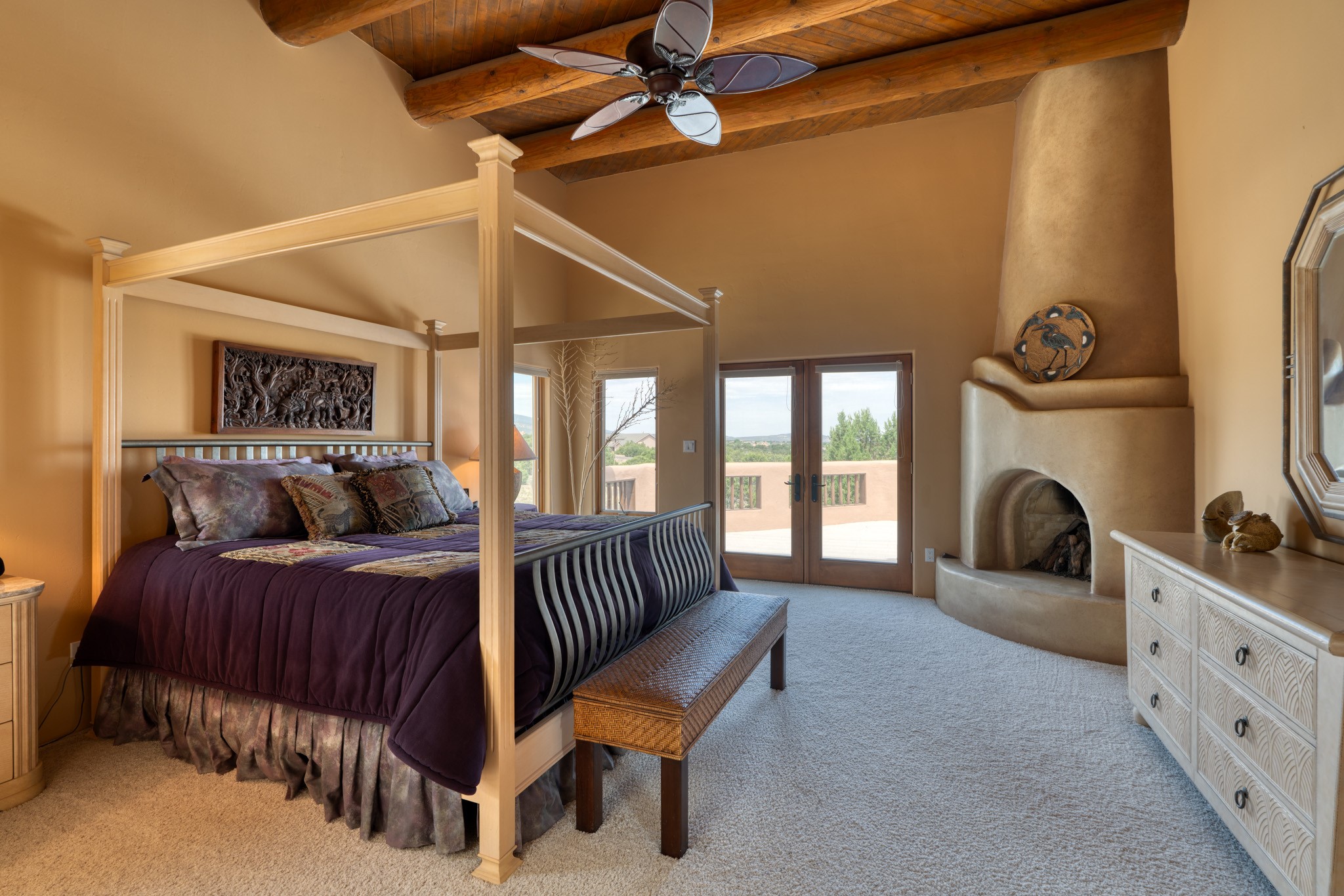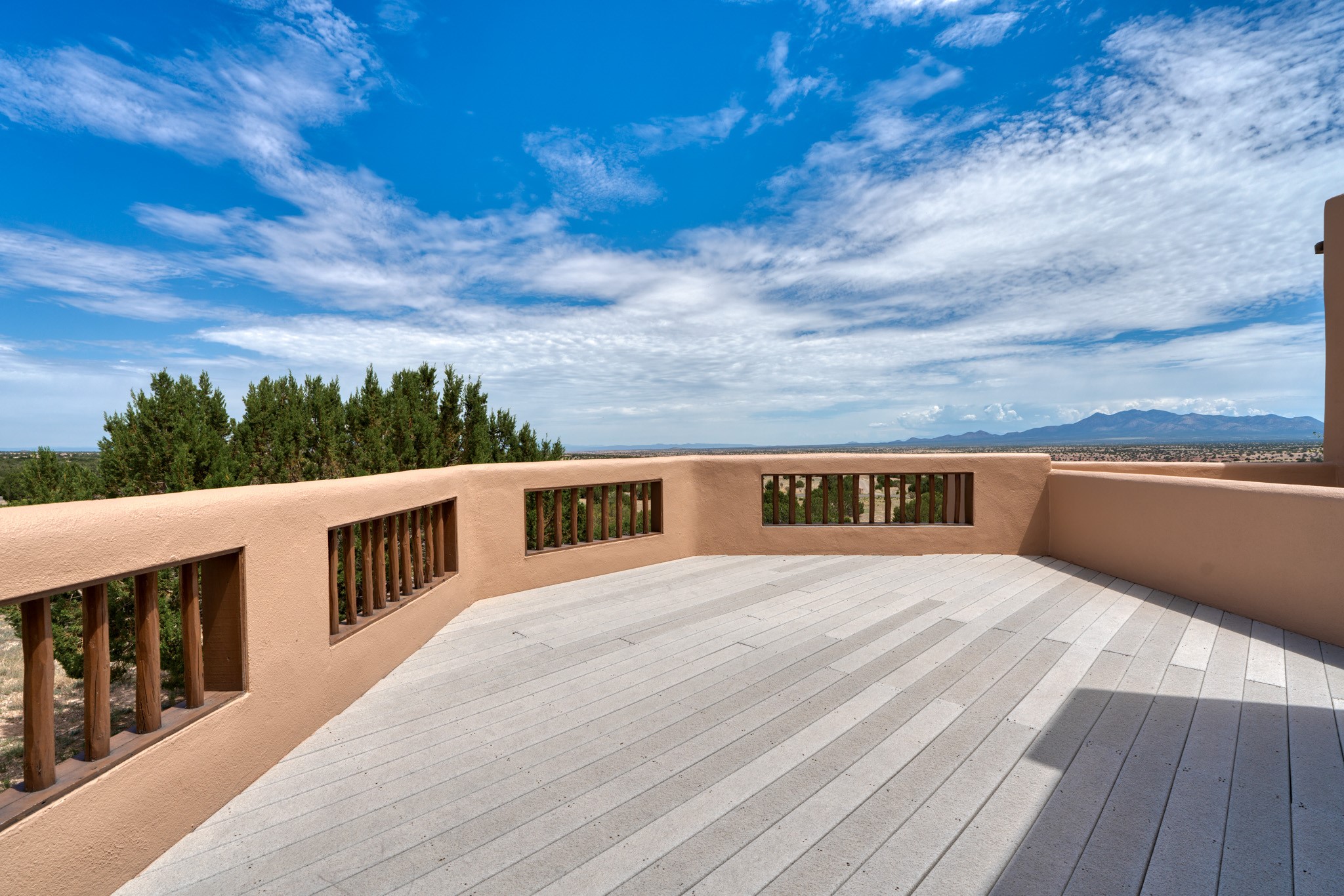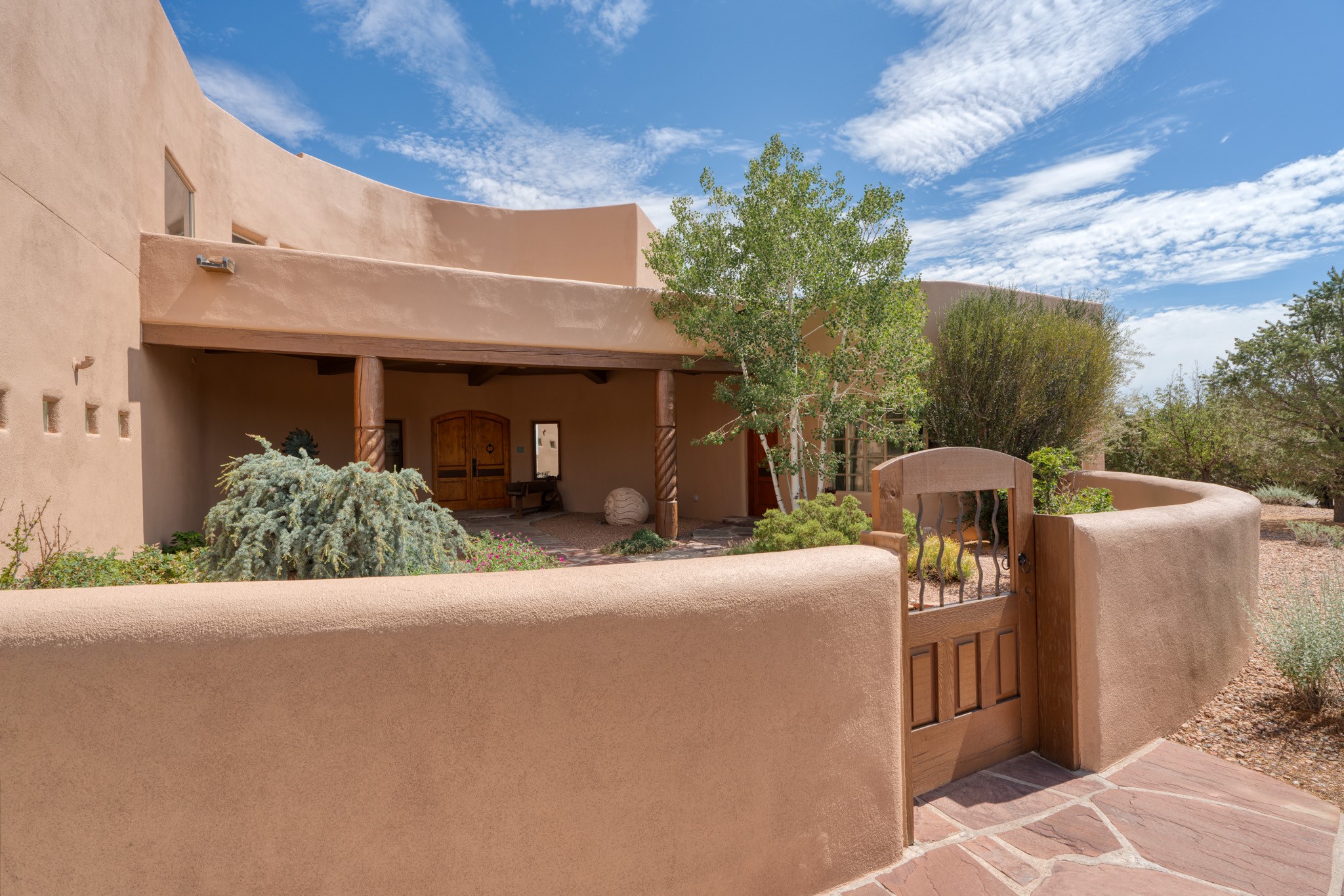 Imagine a home designed to capture the essence of East Mountain living on 10 acres, where expansive walls of glass blur the lines between indoors & out. This custom-built masterpiece boasts soaring ceilings with handcrafted wood beams that amplify light and openness, while every window offers a breathtaking vista. This beauty with a fabulous open floor plan, originally built for the builder, with many custom features. Certified Green Build with ICF Construction and Turkish travertine floors, Pella wood windows, magnificent 22' Kiva in Living room, Chef's kitchen with high-end Kitchen Aid appliances, Thermador Professional range, tons of counter space & butcher block island. Covered patio with kiva fireplace, 4-car oversized garage, fenced yard (2/3 ac) Roof-top deck on 10 acres.