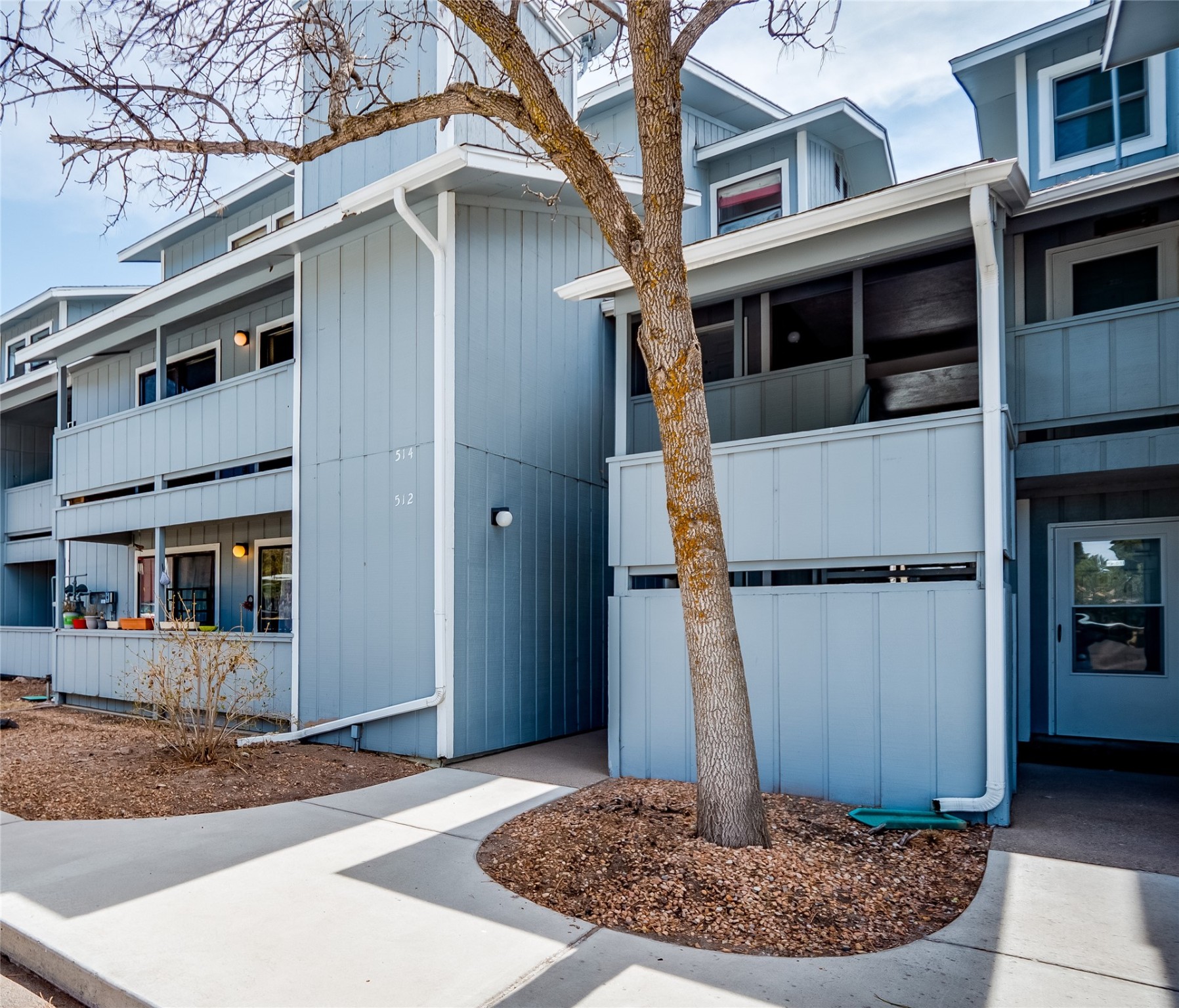 Welcome to this inviting two-story condo in the desirable Ridge Park community, offering serene treeline views from its second-floor location. Step inside to a welcoming entrance with tile flooring and a convenient coat closet. The spacious and inviting living room is the heart of the home, featuring soaring vaulted ceilings that enhance the open and airy feel. Plush carpeting adds warmth underfoot, while a wood-burning fireplace with a classic mantel serves as a cozy focal point, perfect for chilly evenings. Natural light streams in through large sliding glass doors, which lead to a covered deck, offering a peaceful outdoor retreat with treetop views. A striking spiral staircase adds architectural charm, leading to the loft-style primary suite on the second floor. The open-concept design seamlessly connects the living room to the dining area and kitchen, making the space perfect for both relaxing and entertaining. The bright galley-style kitchen features warm wood cabinetry, stylish black hardware, laminate flooring, and a passthrough window that doubles as bar seating. Just off the kitchen, you'll find a laundry closet with a stackable washer and dryer, plus built-in shelving for added convenience. A hallway with two additional storage closets leads to a full guest bathroom, complete with a single sink vanity and a tiled shower/tub combination. The spacious guest bedroom offers direct access to the covered deck, providing a private retreat with tranquil views. Upstairs, the loft-style primary en-suite is a spacious and serene escape, tucked away for ultimate privacy. The room boasts double closets offering ample storage and organization and a well-appointed bathroom with a large sink vanity and a walk-in tiled shower. Located near parks, shopping, and restaurants, this lovely condo is ready to welcome you home. Added amenities include a community pool, clubhouse, and fitness room. Don't miss your chance to see this beautiful home and schedule a viewing today!