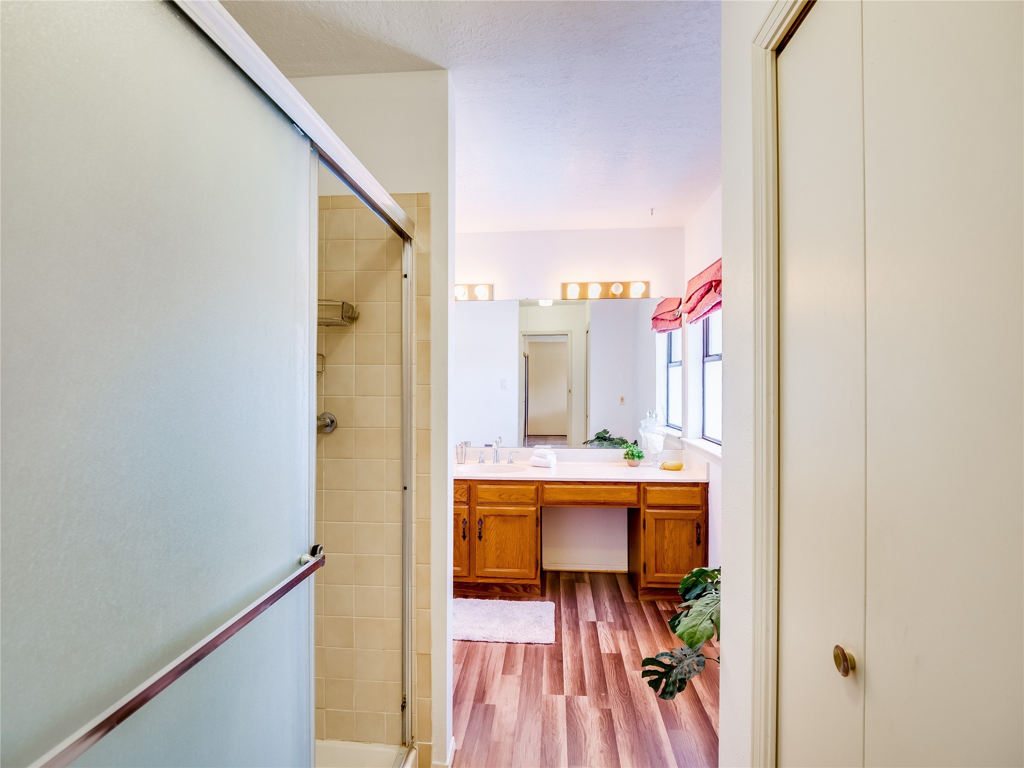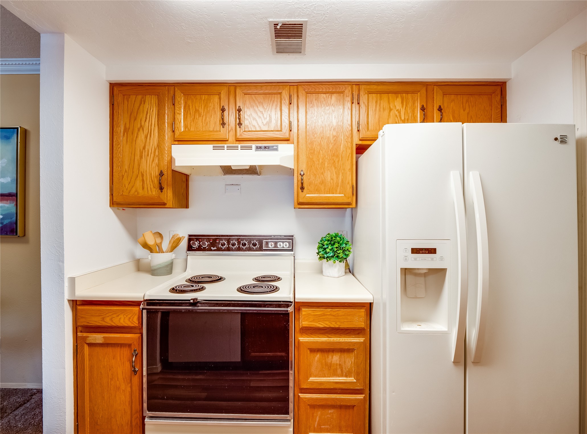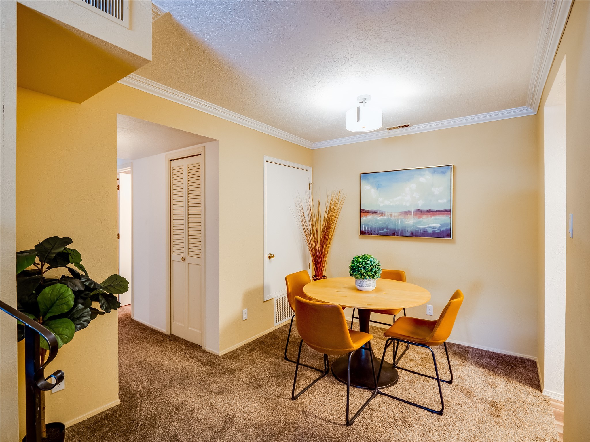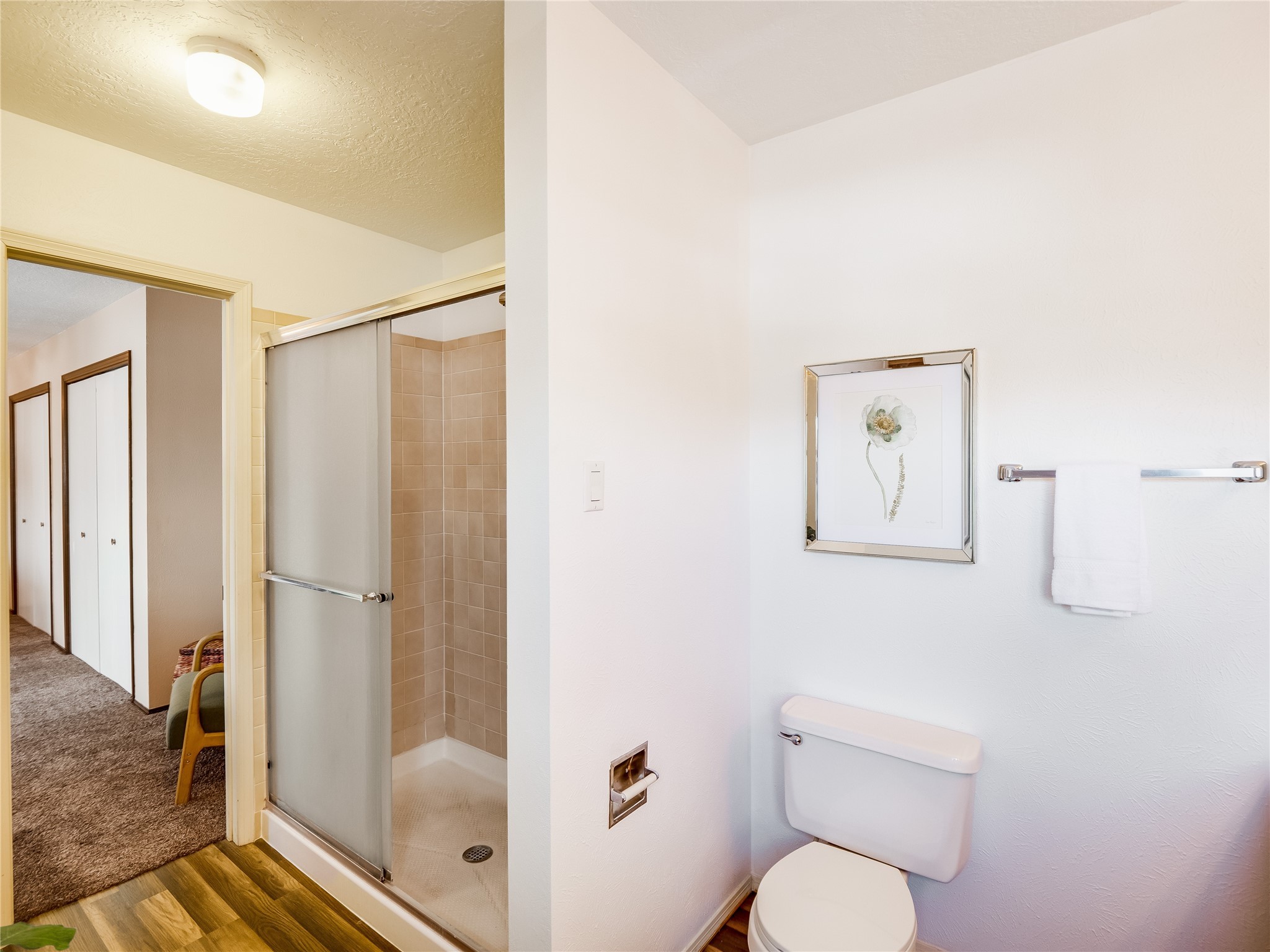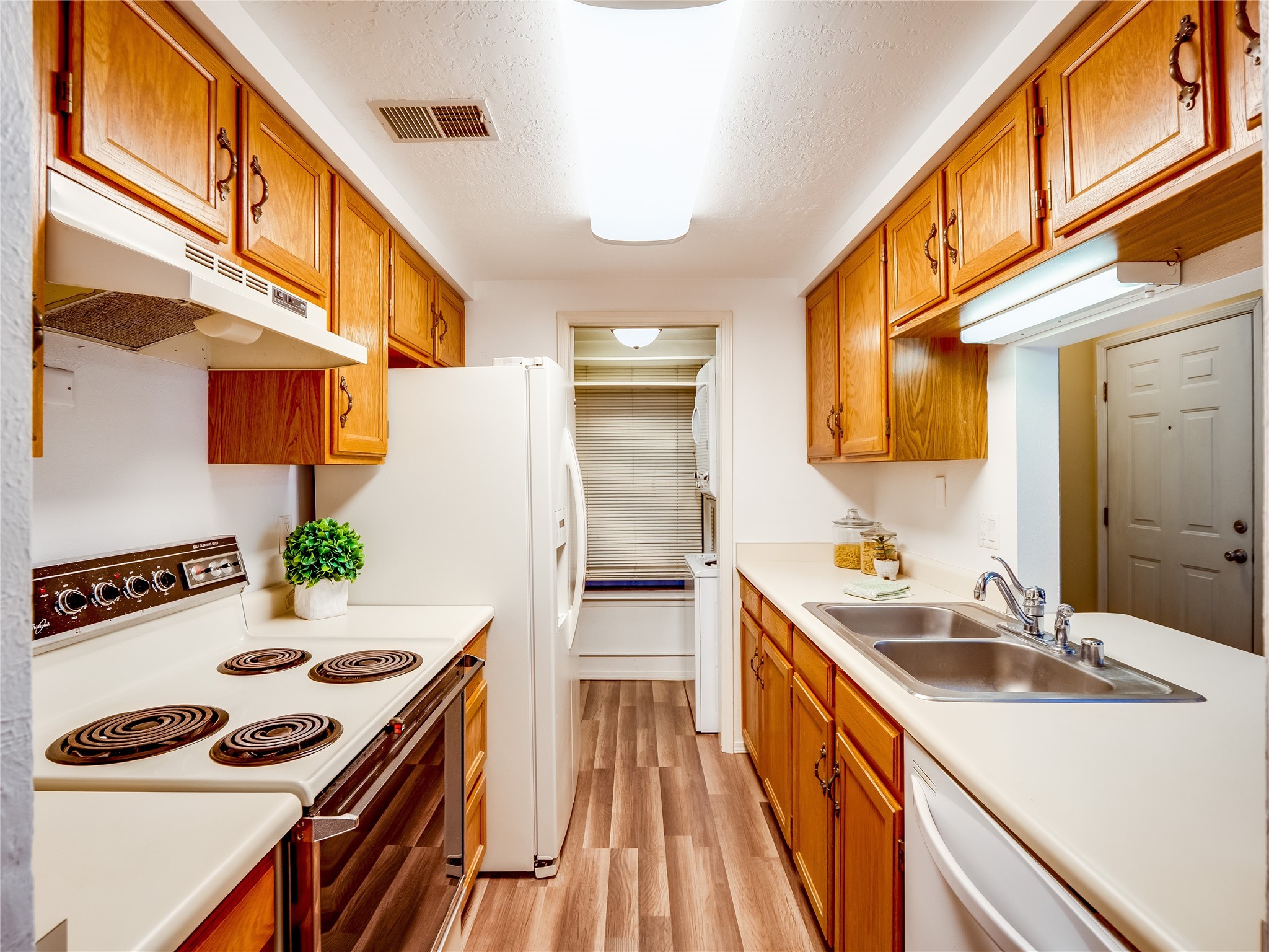 Welcome to this inviting two-story condo in the desirable Ridge Park community, offering serene treeline views from its second-floor location. Step inside to a welcoming entrance with tile flooring and a convenient coat closet. The spacious and inviting living room is the heart of the home, featuring soaring vaulted ceilings that enhance the open and airy feel. Plush carpeting adds warmth underfoot, while a wood-burning fireplace with a classic mantel serves as a cozy focal point, perfect for chilly evenings. Natural light streams in through large sliding glass doors, which lead to a covered deck, offering a peaceful outdoor retreat with treetop views. A striking spiral staircase adds architectural charm, leading to the loft-style primary suite on the second floor. The open-concept design seamlessly connects the living room to the dining area and kitchen, making the space perfect for both relaxing and entertaining. The bright galley-style kitchen features warm wood cabinetry, stylish black hardware, laminate flooring, and a passthrough window that doubles as bar seating. Just off the kitchen, you'll find a laundry closet with a stackable washer and dryer, plus built-in shelving for added convenience. A hallway with two additional storage closets leads to a full guest bathroom, complete with a single sink vanity and a tiled shower/tub combination. The spacious guest bedroom offers direct access to the covered deck, providing a private retreat with tranquil views. Upstairs, the loft-style primary en-suite is a spacious and serene escape, tucked away for ultimate privacy. The room boasts double closets offering ample storage and organization and a well-appointed bathroom with a large sink vanity and a walk-in tiled shower. Located near parks, shopping, and restaurants, this lovely condo is ready to welcome you home. Added amenities include a community pool, clubhouse, and fitness room. Don't miss your chance to see this beautiful home and schedule a viewing today!