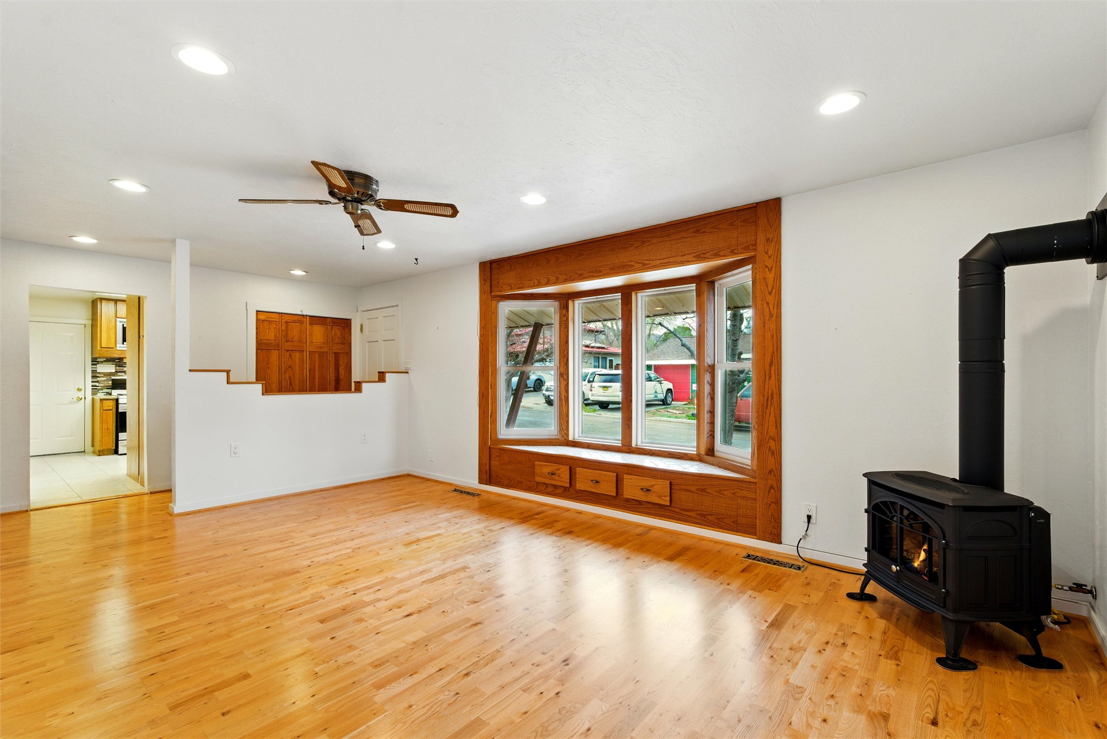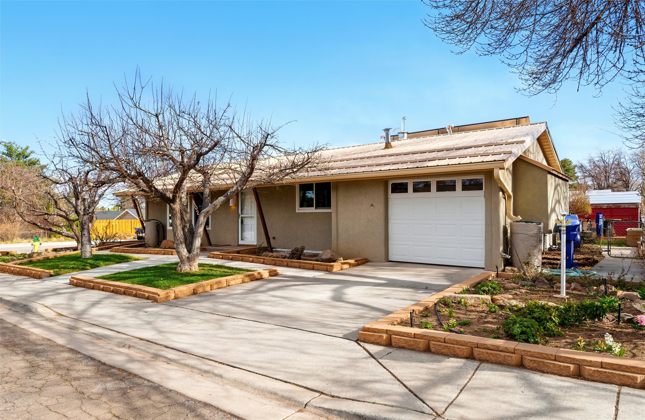 Lovingly maintained by the same owner for the past 47 years, this 3-bedroom, 2-bathroom home is a true testament to pride of ownership. Every inch of this property has been thoughtfully cared for, and it shows.Come inside to be greeted by warm hardwood floors and an inviting living room centered around a cozy wood-burning fireplace and a large bay window that floods the space with natural light. Just off the living area, a sunny bonus room offers the perfect spot for a home office, creative studio, or quiet retreat.The primary suite is generously sized and features dual closets and a spacious en suite bathroom with custom cabinetry and a walk-in shower. Down the hall, you'll find three additional bedrooms, providing plenty of room for family, guests, or hobbies.The heart of the home--its kitchen--shines with solid wood cabinets, granite countertops, and updated appliances, creating a beautiful and functional space for everyday living and entertaining.Outside, the charm continues. The home features updated stucco, a propanel roof, and newer windows, ensuring comfort and peace of mind. The lovingly landscaped yard boasts dozens perennial plantings, raised planting beds, several fruit trees, and all of it is easy to maintain with the automatic irrigation system and rain catchment barrels. In addition to the attached single-car garage, there are two additional garage/workshop spaces perfect for storage, hobbies, or projects; one of them features a mechanics pit so you can maintain your car right at home! There is a large garden shed in the backyard.Enjoy refrigerated central air, thoughtful upgrades throughout, and a prime downtown location that keeps you close to everything Los Alamos has to offer.This special home is filled with history, warmth, and care--and now it's ready to welcome its next chapter.