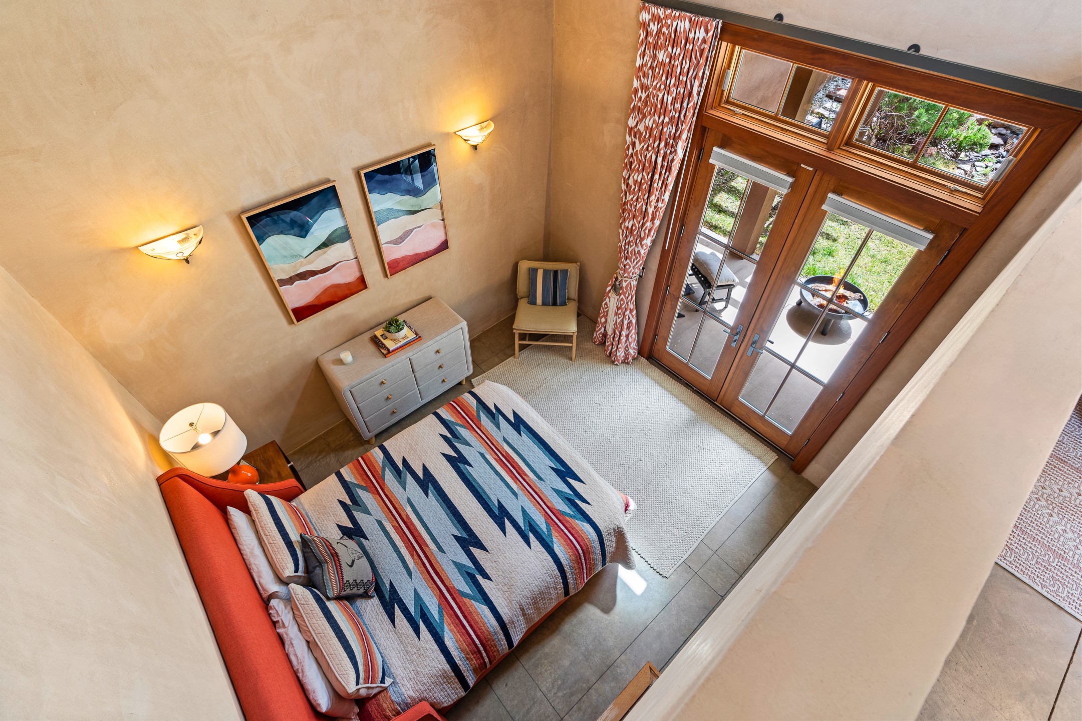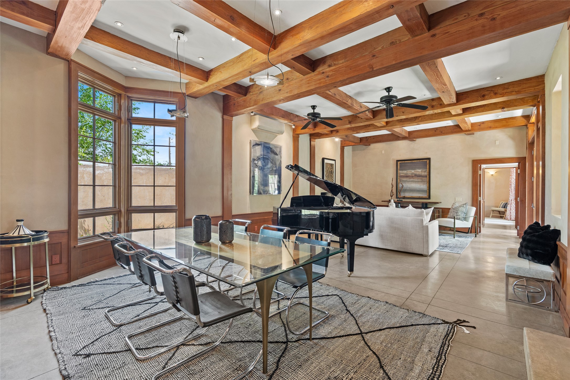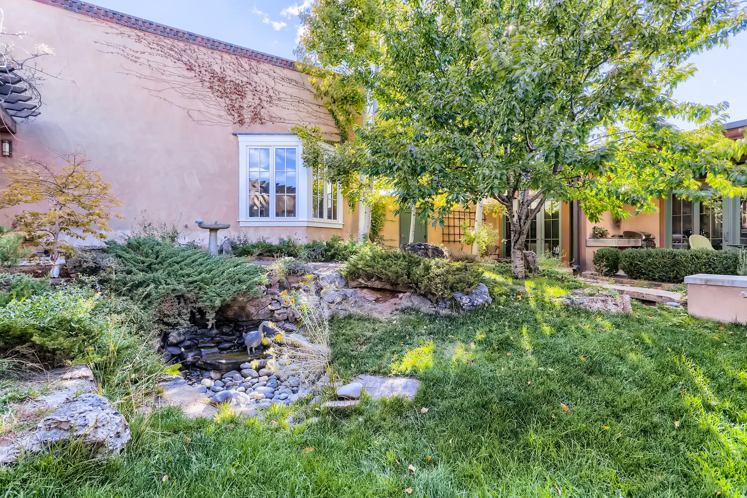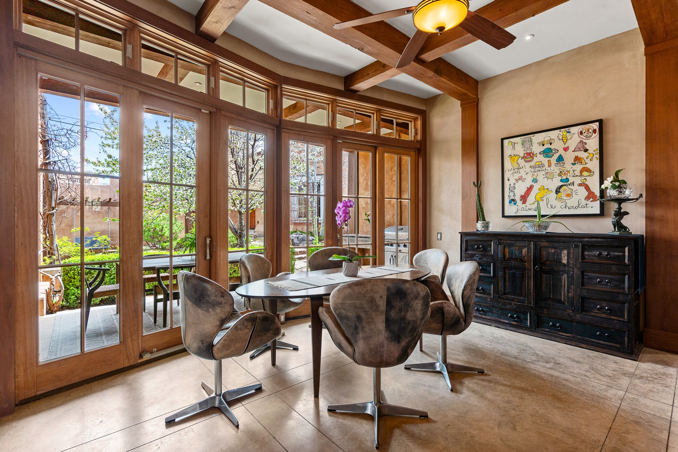 An Architectural & Design Masterpiece.A brilliant collaboration between renowned architect and designer has produced a serene, sophisticated sanctuary in one of Santa Fe's most desirable neighborhoods. This private, gated, 4-bedroom, 4-bath compound is located in the coveted Eastside along the Old Santa Fe trail just moments from the Plaza, Canyon Road, museums, shopping, and world-class dining. Recently elevated with extensive high-end upgrades, the property seamlessly blends quality craftsmanship with timeless elegance. Architectural highlights include soaring ceilings, natural American Clay plaster walls, Douglas Fir coffered wood beam ceilings, and dramatic floor-to-ceiling transom windows. Expertly curated lighting creates a warm and refined ambiance throughout. At the heart of the home is a stunning chef's kitchen--outfitted with a Subzero refrigerator and new Viking appliances--overlooking a beautifully landscaped central courtyard designed for effortless indoor/outdoor living. Each room opens to this verdant garden oasis featuring a tranquil waterfall fountain, lush greenery, alfresco dining, and multiple verandas for entertaining. The grand living and dining rooms are anchored by a natural stone fireplace and expansive glass doors that frame a courtyard garden with mature Wisteria, Aspen, and a stately Cherry tree. Upstairs, the luxurious primary suite offers breathtaking views of Picacho Peak and includes a spa-like bath with Jacuzzi tub, steam shower, dual vanities, and walk-in closet. The crown jewel: a private rooftop terrace with fireplace, cedar hot tub, sauna, and wrap-around deck--perfect for starry Santa Fe nights. Additional amenities include a 2.5-car garage, new mini splits, recessed lighting, designer tile work, and custom draperies. This property is currently part of a rare compound opportunity with 994 Old Pecos Trail next door. While both homes are offered individually, a buyer also has the unique opportunity to purchase them together and create an extraordinary multi-residence estate. (See listing #202501401.)