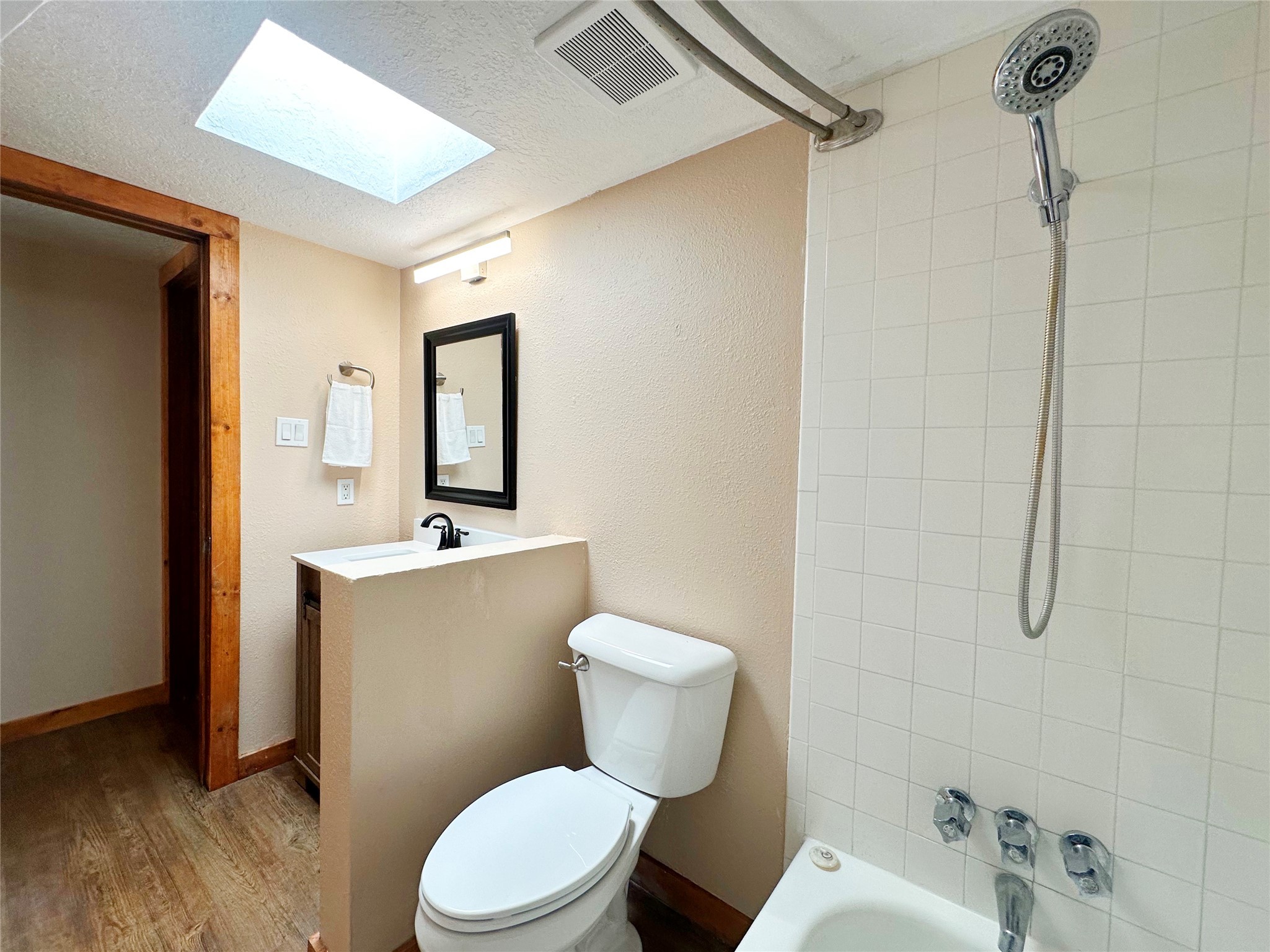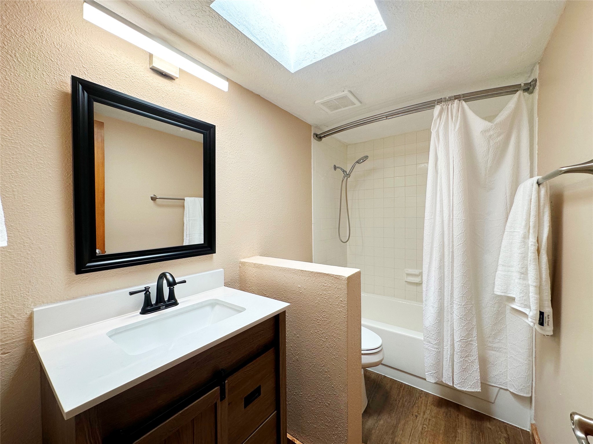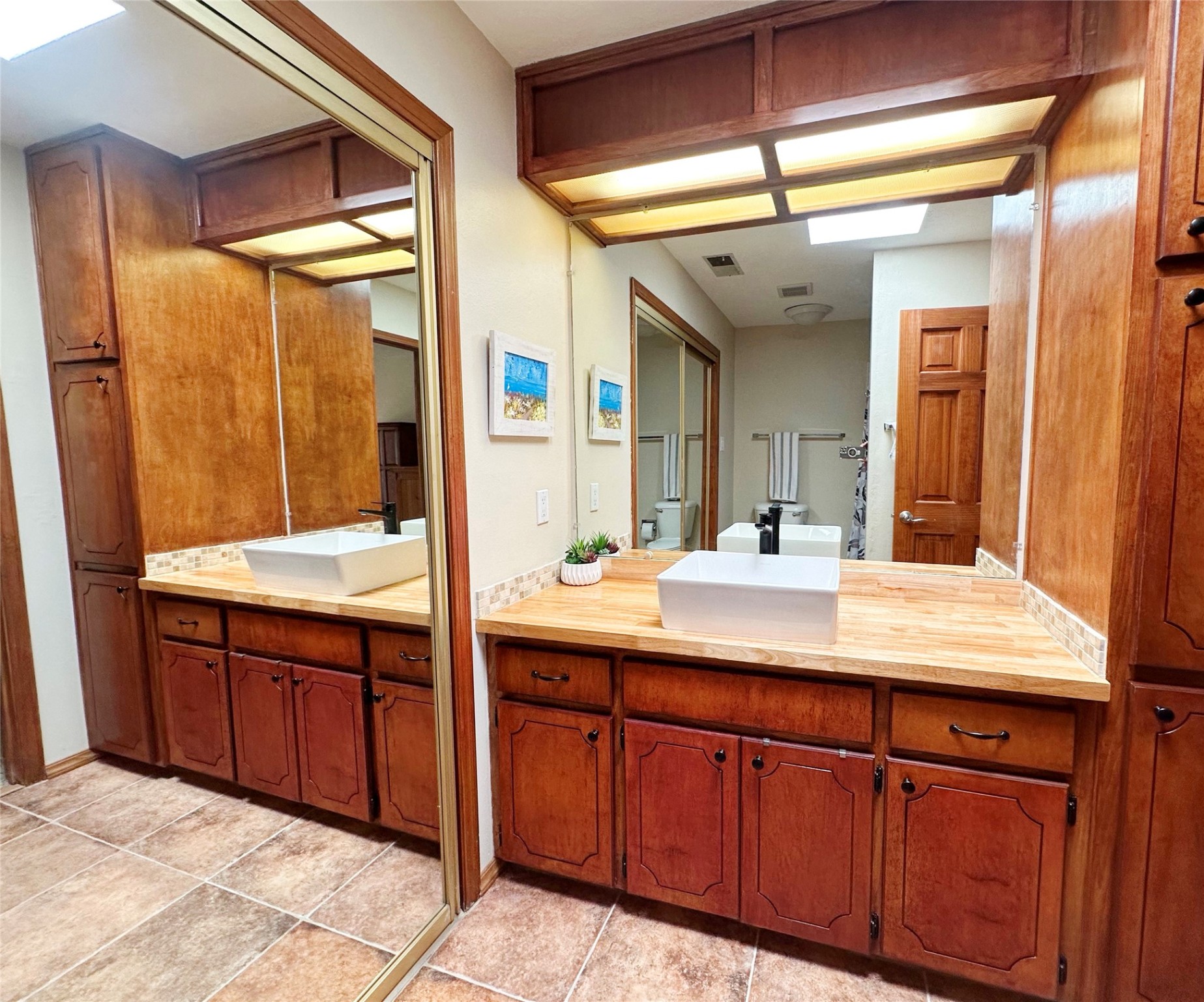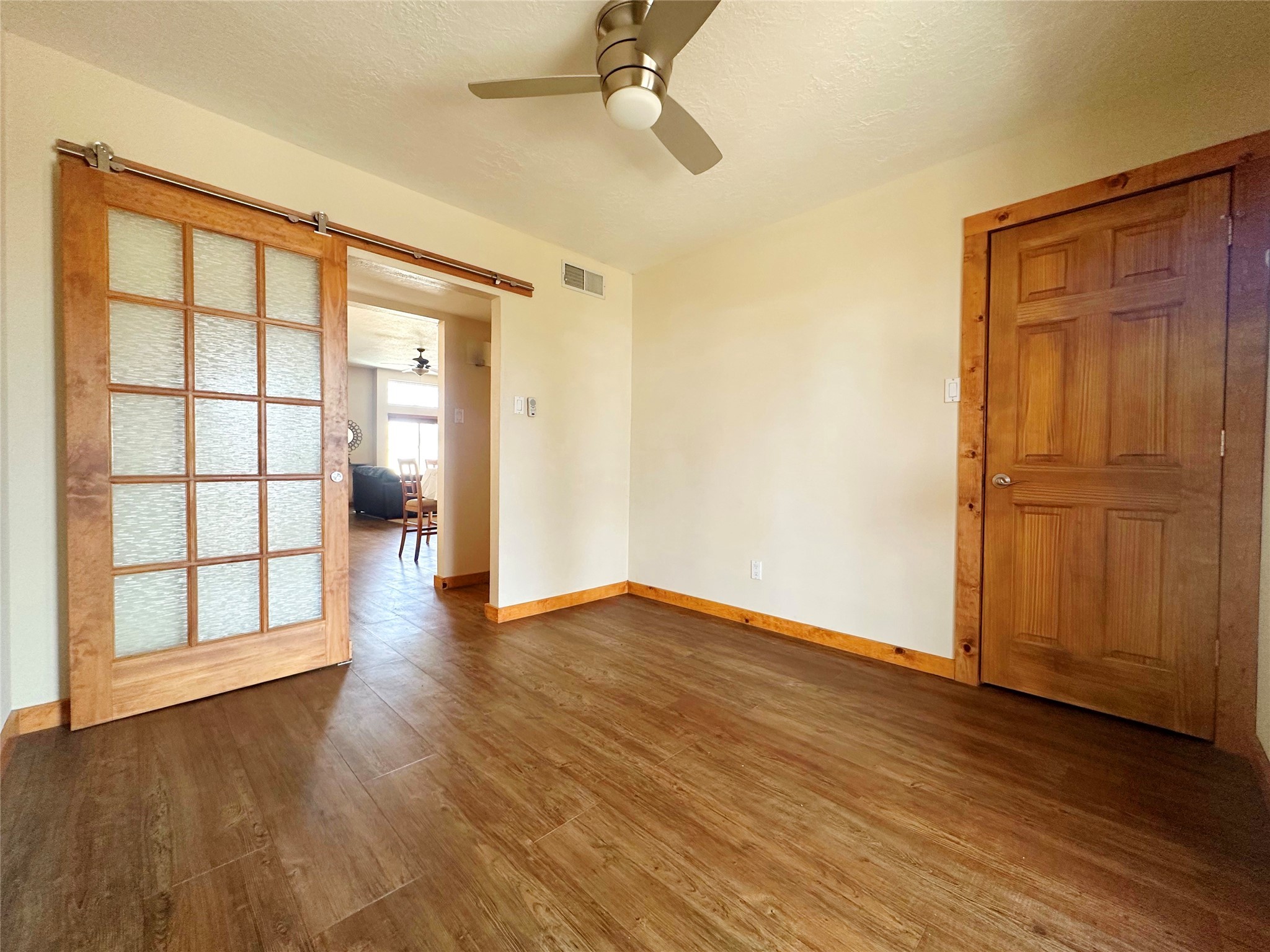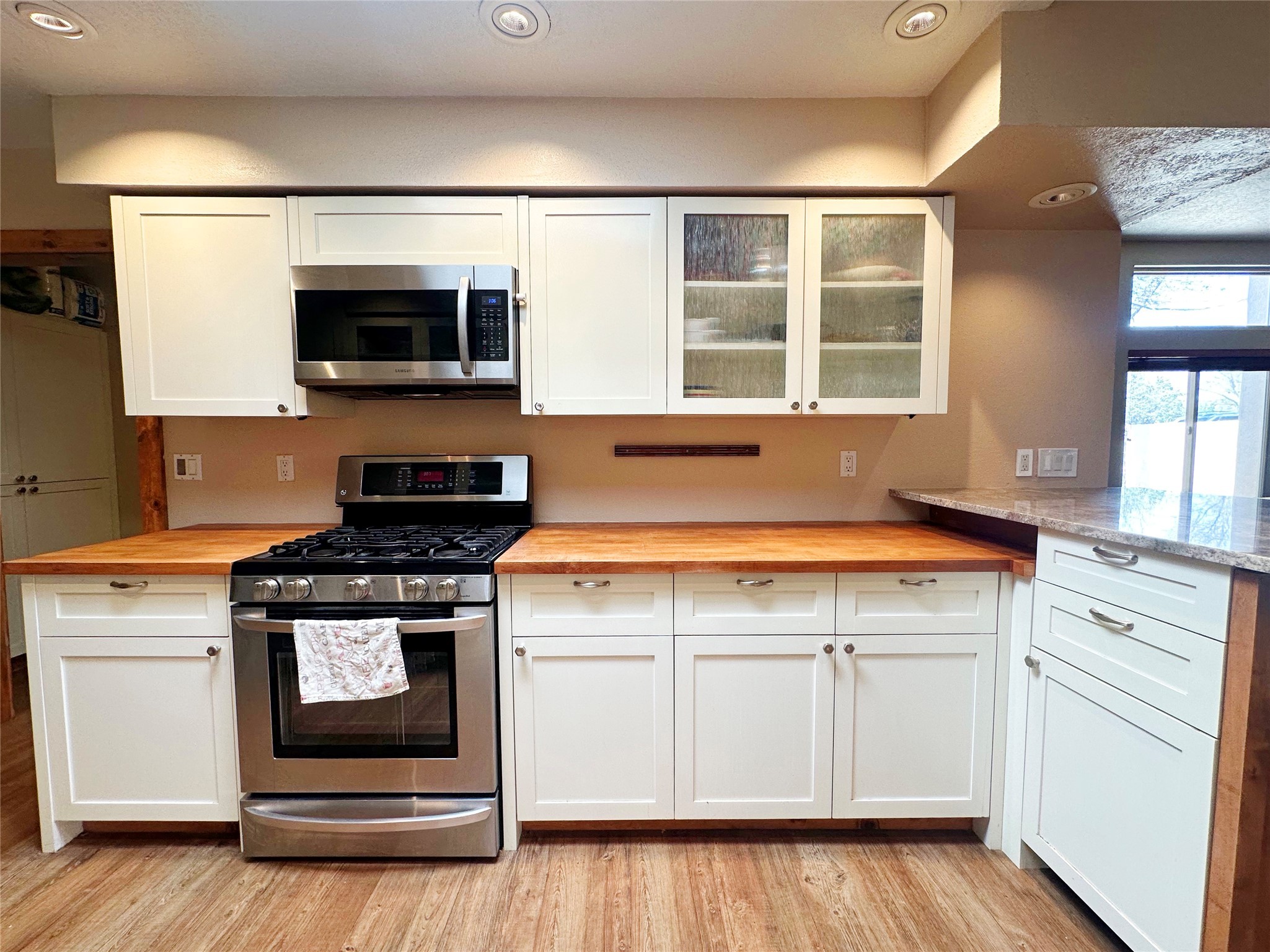 Well-maintained Santa Fe home offering three bedrooms and two baths in a convenient location. The heart of the home presents an open-concept living area with a well-designed kitchen, featuring butcher block countertops, stainless steel appliances, and glass display cabinetry. A large skylight and modern recessed lighting create bright, welcoming spaces throughout. Embracing Santa Fe's indoor-outdoor lifestyle, both the primary suite and second bedroom open directly to a covered deck with cooling fans, creating natural extensions of the living space. The primary suite includes an en-suite bath, while a tastefully refreshed guest bath completes the modern layout. A beautiful backyard features a flourishing Japanese blossom tree, offering a peaceful setting with room for additional landscaping. Multiple outdoor living spaces, including an intimate side patio and welcoming front courtyard, provide versatile areas for relaxation or entertaining. The two-car garage provides secure parking and storage space. Set near the Santa Fe Rail Trail with easy I-25 access, this home is just a 10-minute drive to the historic Plaza. The location perfectly combines pleasant residential living with convenient access to Santa Fe's culture. Adding to this home's appeal, the seller provides a generous $3,000 credit at closing towards carpet replacement in the bedrooms.