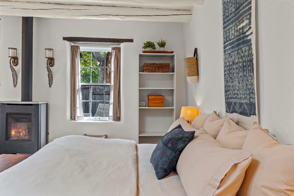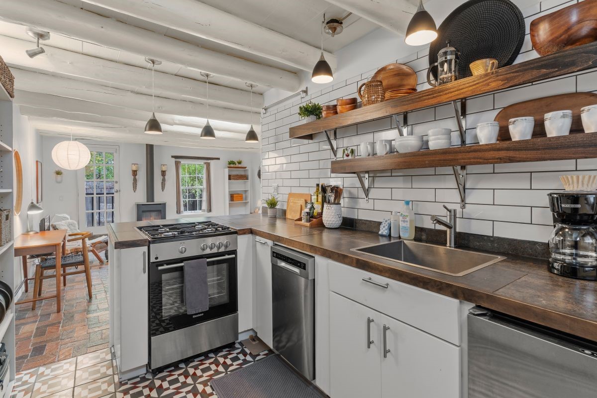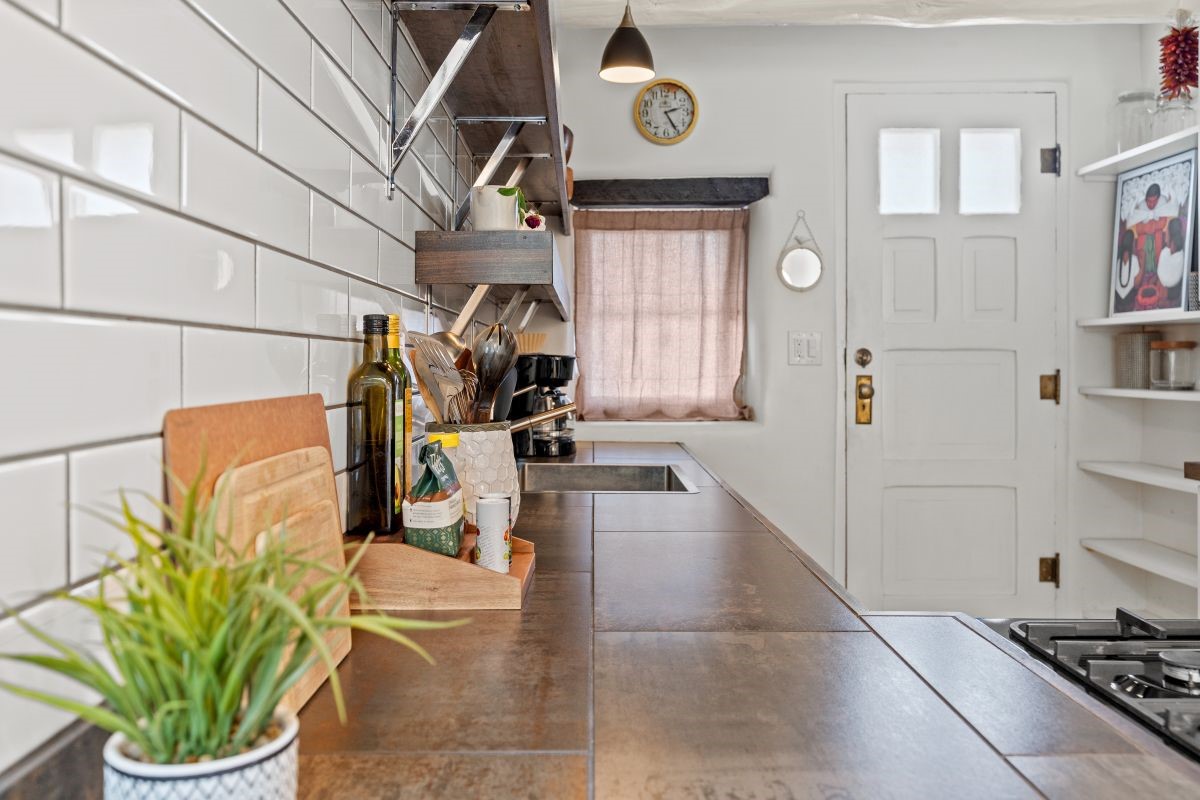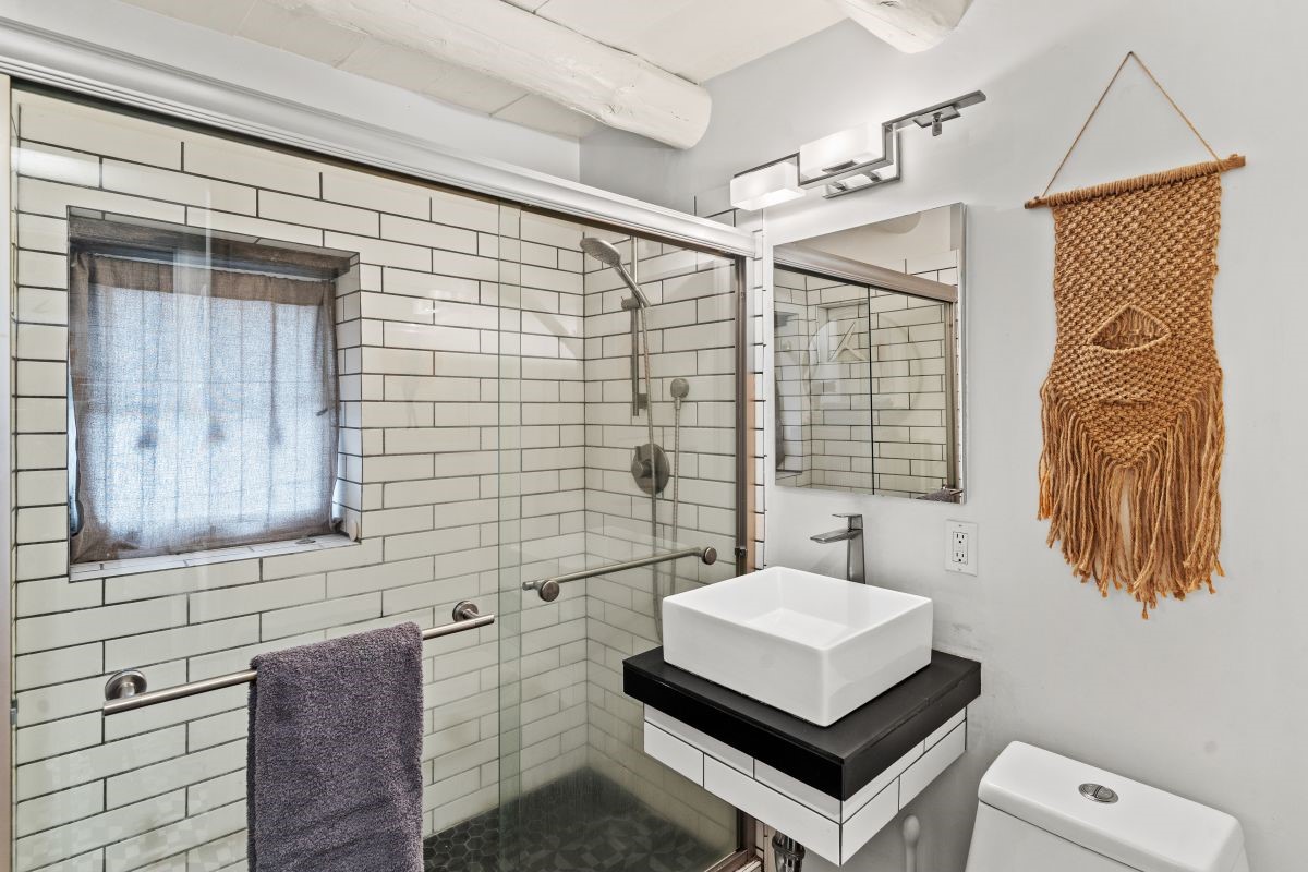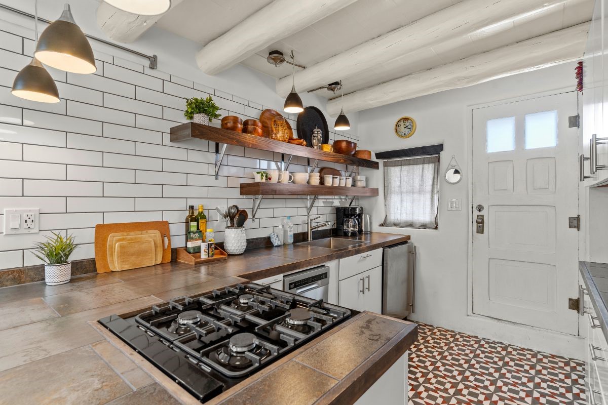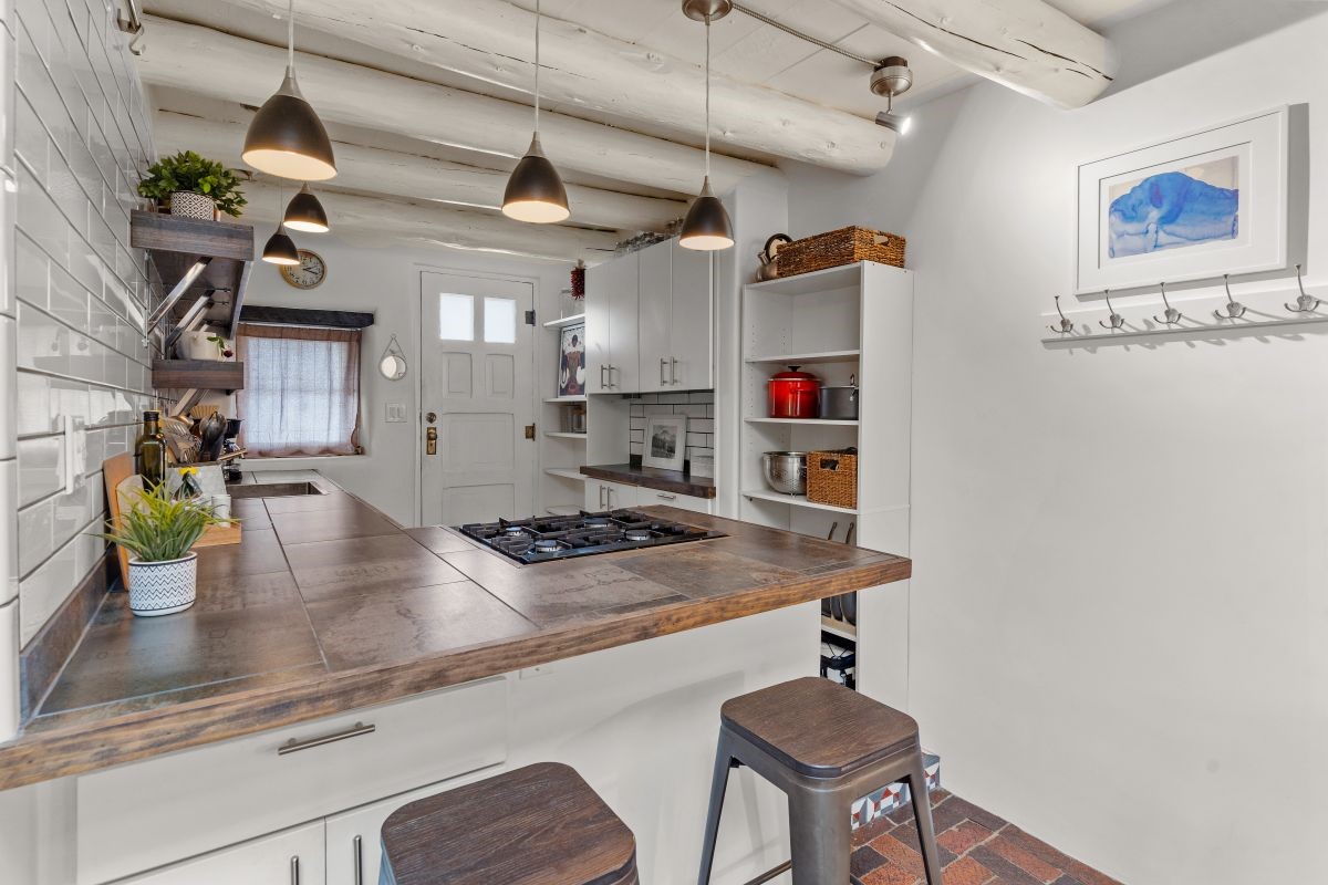 Rare charming historic adobe gem on one of Santa Fe's most adored streets, a stunning stroll to the downtown plaza. This renovated studio condo is sold fully furnished and its darling, with tile floors, viga ceilings, a gas fireplace that also heats, a fully equipped kitchen with half size fridge and dishwasher and high-end appliances. The bathroom is luxurious with a large shower, full size washer and drier. Enjoy the peace and tranquility of the shady private courtyard. The property is part of Santa Fe's rich history, a historic hideaway in the heart of old Santa Fe which was part of the original Webster Compound founded by Ann Webster in the 1930's for artists & writers. Legend has it that 54 books have been written and published including KON TIKI by Thor Heyerdahl at the compound. The condo is perfect as a residence, vacation rental, or artist's/writer's studio. Stroll over to the famed Canyon Rd with galleries and restaurants. Walk the block to Downtown Subscription for a fab coffee. The property has one step down from Kitchen to main area