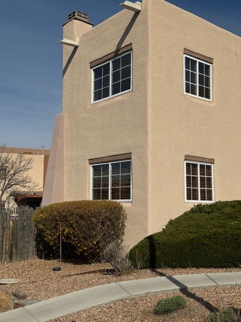 Well, no one thought this prime location in Dos Santos would hit the market. Elevated on high end of subdivision, this one bedroom/one bath town-home style condo has a friendly elongated patio that overlooks the Santa Fe sunset skies. Inside the natural sun graces the corners of your next home. This efficient kitchen has no obstacles meandering your next meal. Wood burning fireplace is neatly tucked in the living room. Upstairs houses the washer/dryer just off the bedroom and the full bath. Energy equipped with newer furnace, refrigerated air and a water heater replaced 2025! Currently parking space next to the condo. Life just got easier.