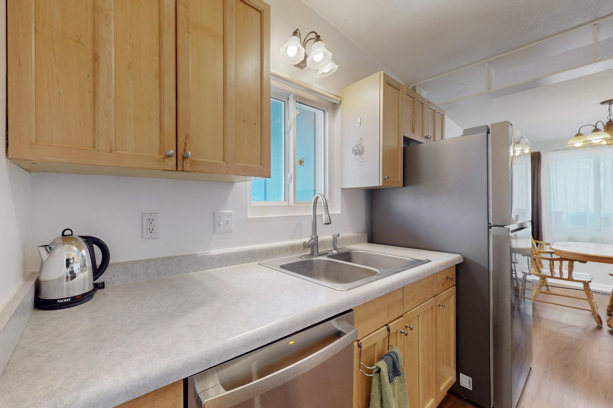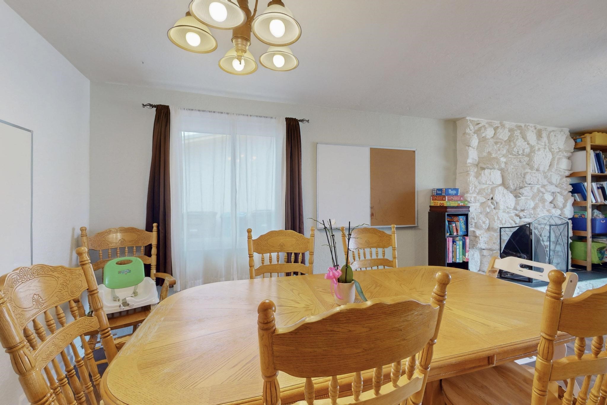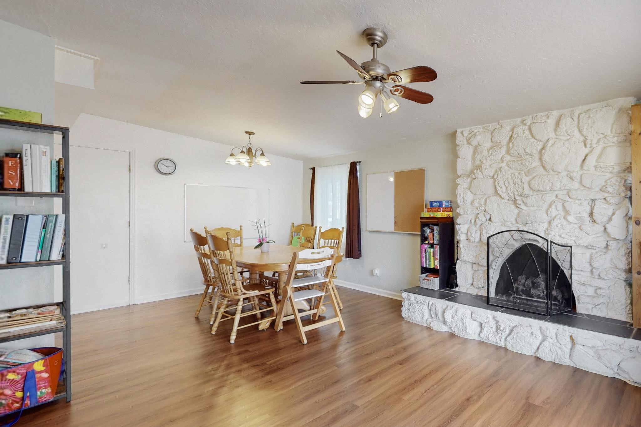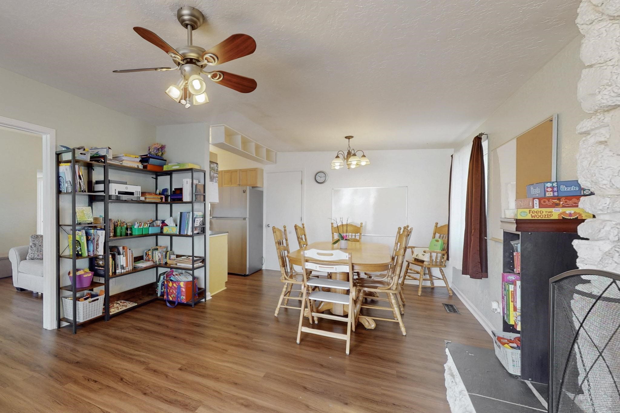 OPEN HOUSE: Saturday, April 19 10-1 Charming home with many amazing updated features and very nicely maintained. Newer roof, windows, doors, gutters and restored ducts. 2024 Cellulose blown-in insulation in ceiling space R-30 on top of current R-19. Cozy all year round with gas fireplace and refrigerated air. Two living areas make it comfortable for the whole family. Vinyl flooring throughout with carpet in the bedrooms. Separate laundry room with shelves and closet. Amazing backyard! Wonderful courtyard and patio, backyard has sprinklers and is shady in the summer, plus has a basketball court. Nice size shed. One car garage has built in shelving to make it very useable. Additional parking pad in front for car or small trailer. Location is ideal on a pleasant cul-de-sac only 2 blocks from the elementary school and walking distance to Overlook and Rover Parks. Make this your new home.