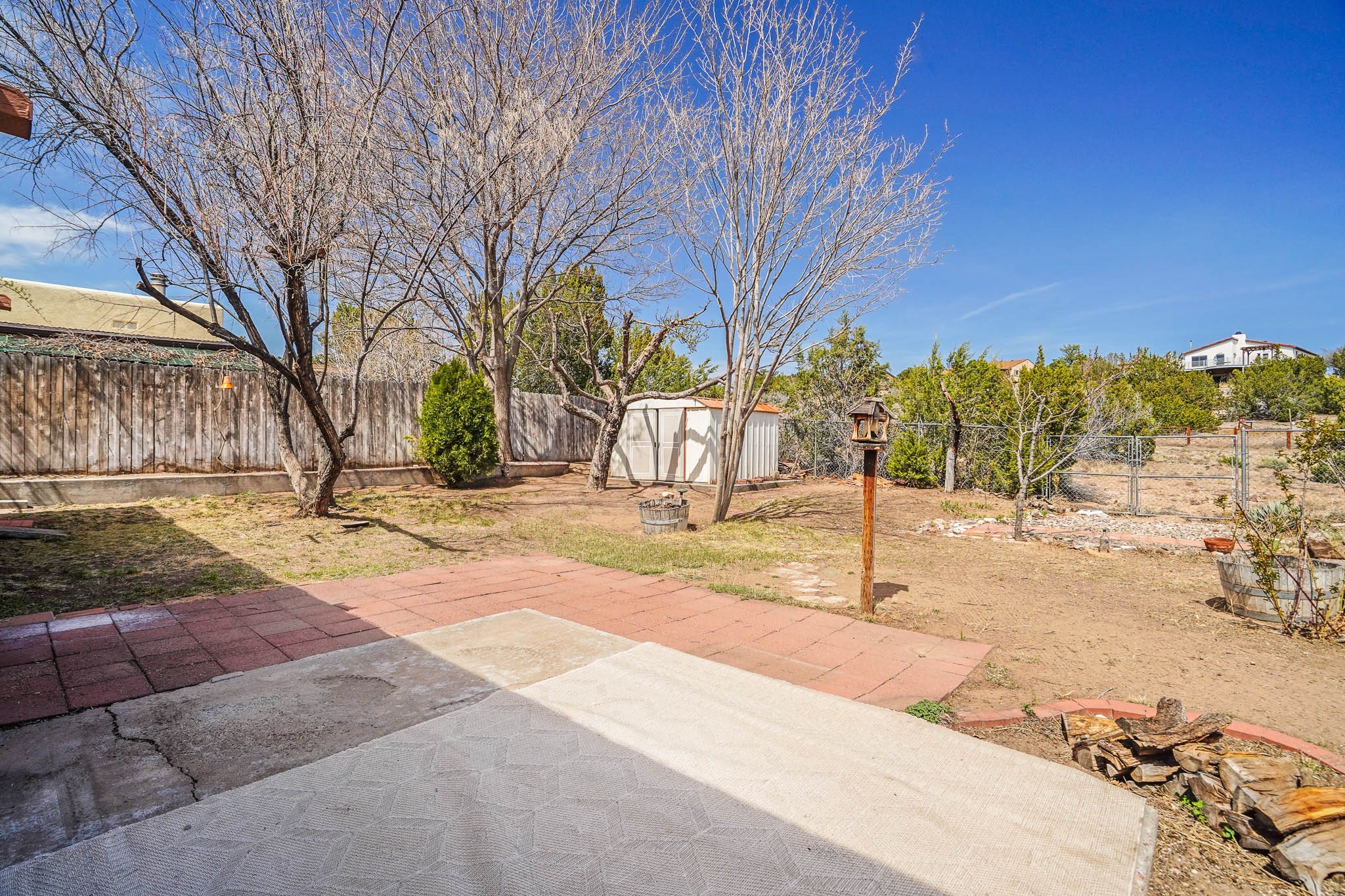 Nestled in Cochiti Lake, this charming 2 bed, 1 bath home offers a blend of comfort and convenience. Enjoy the open living space with a cozy fireplace and an updated kitchen featuring Corian counters. The bathroom boasts a refreshed vanity and counter. Outside, mature landscaping with a Ponderosa Pine and Pinon graces the front, while a fully fenced backyard ensures privacy. A 1-car garage adds practicality. Situated near the town hall yet bordering green space, this home offers both accessibility and tranquility. Don't miss out on this opportunity!