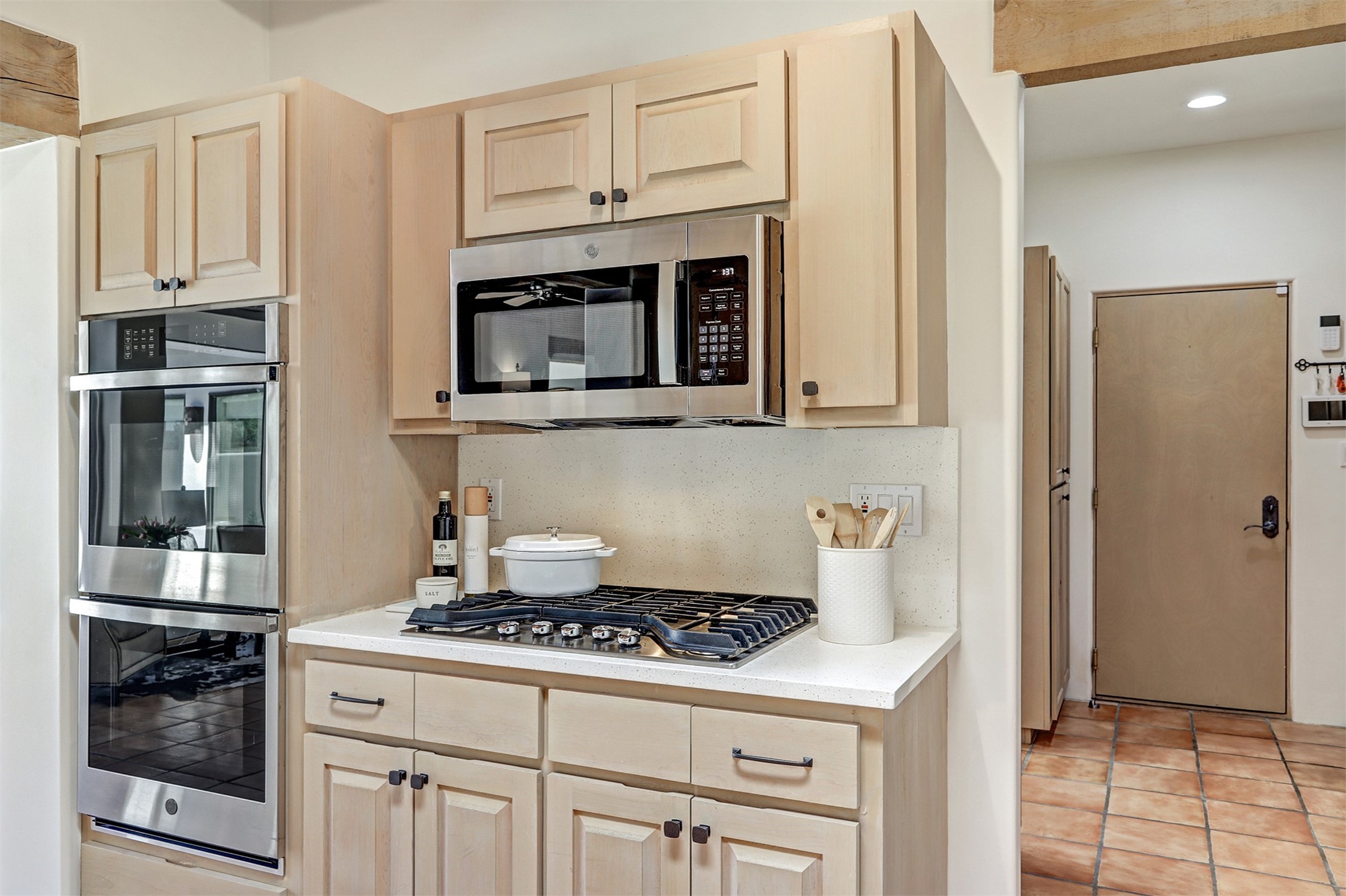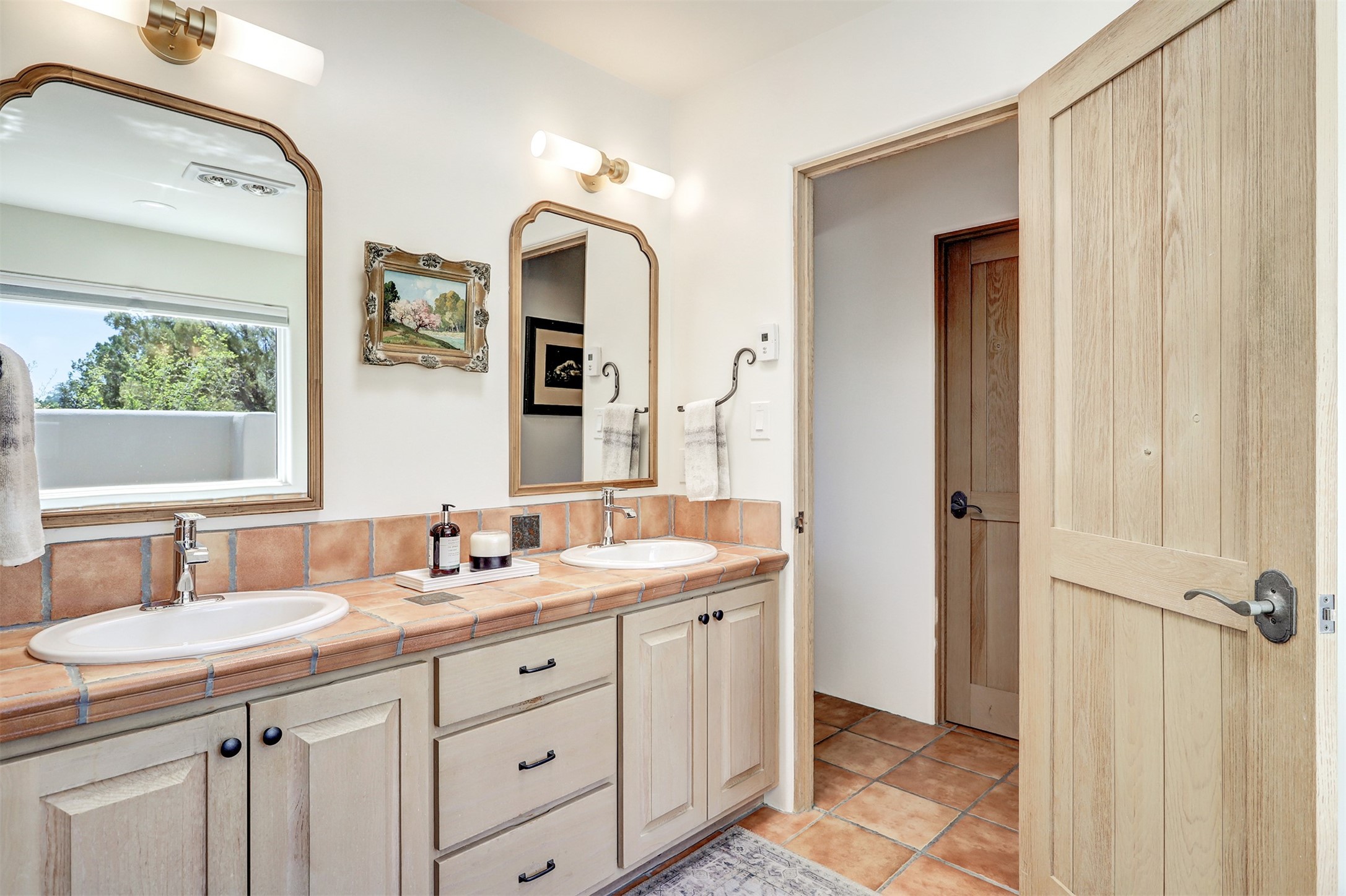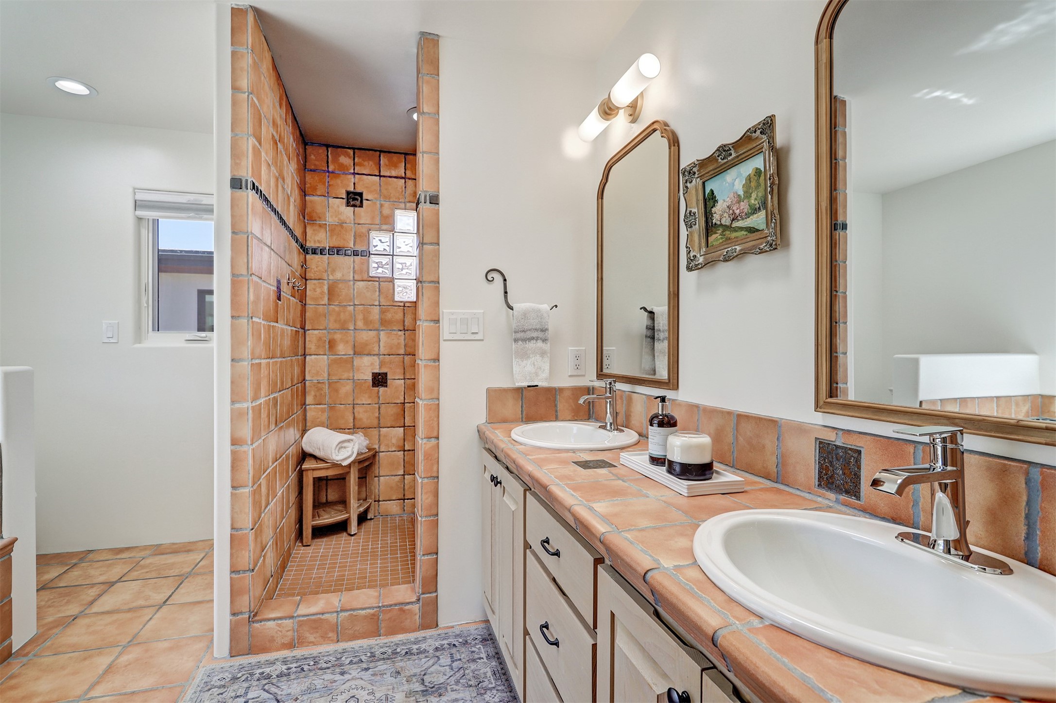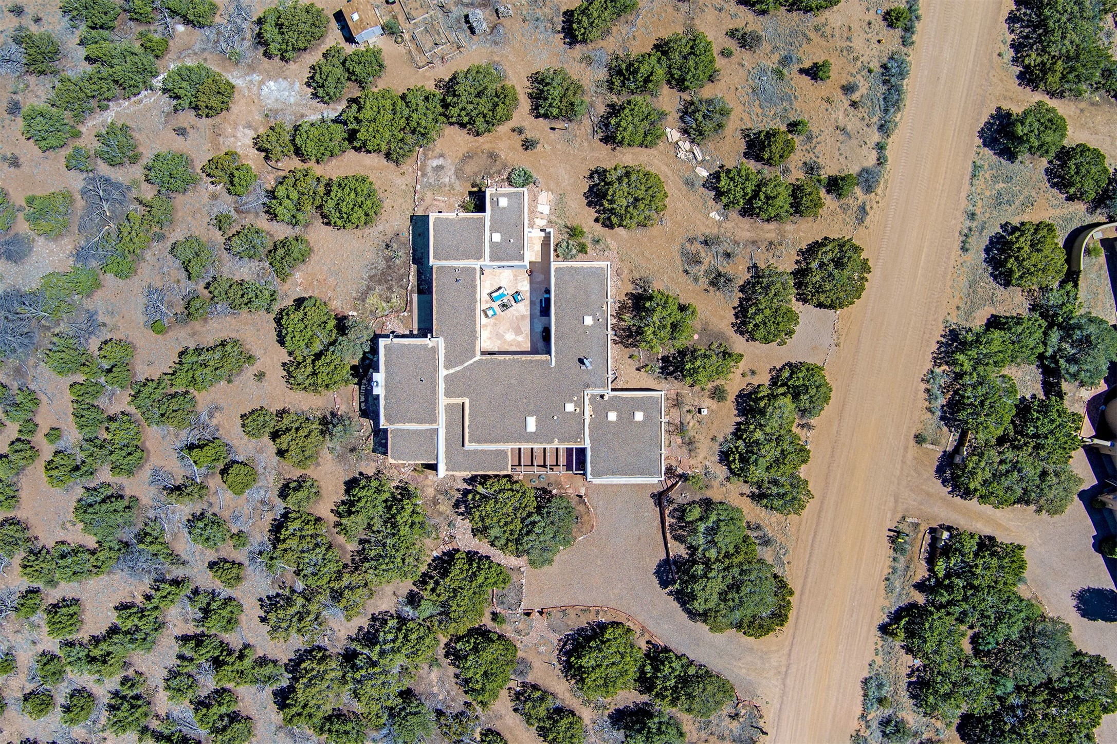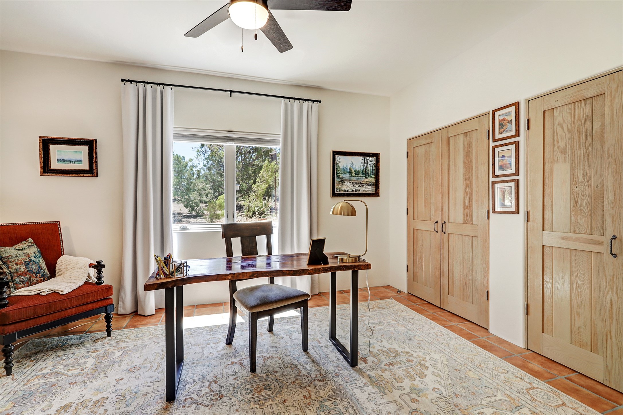 This tastefully remodeled, bright, and move-in-ready 2,879 sq ft, 3-bedroom, 2-bathroom single-level home is nestled within the neighborhood The Ridges, a prestigious and serene enclave just ~20 minutes from the heart of Santa Fe. Offering a seamless blend of classic Santa Fe architecture and modern upgrades, every detail is designed for comfort, style, and function.From the moment you arrive, the fresh new stucco exterior and brand-new garage doors hint at the impeccable updates found throughout.Step inside to discover a spacious and airy open floor plan anchored by a custom-built wood-burning kiva fireplace, framed by dramatic beamed ceilings that gracefully flow throughout the entire home, creating a warm, Santa Fe atmosphere.Natural light fills the living spaces through all-new Windsor windows and enlarged sliding doors, offering captivating picture-framed views of the surrounding landscape. Every window feels like a living canvas, inviting Santa Fe's natural beauty indoors. Custom window treatments add a perfect touch of elegance and privacy. Throughout the home, new light fixtures and fresh paint enhance the refined yet cozy ambiance.The charming kitchen and laundry room shine with sleek new quartz countertops and stainless steel appliances, offering a perfect balance of style and functionality.A standout feature is the inviting private inner courtyard, completely reimagined with premium flagstone pavers and a French drain system, creating a tranquil oasis ideal for al fresco dining, entertaining, or simply relaxing under the starry Santa Fe sky.Set on a quiet and picturesque 4-acre lot, the property welcomes two horses. You'll enjoy the perfect balance of natural serenity and modern convenience, with shopping, dining, medical facilities, and Santa Fe's vibrant cultural scene all within easy reach.