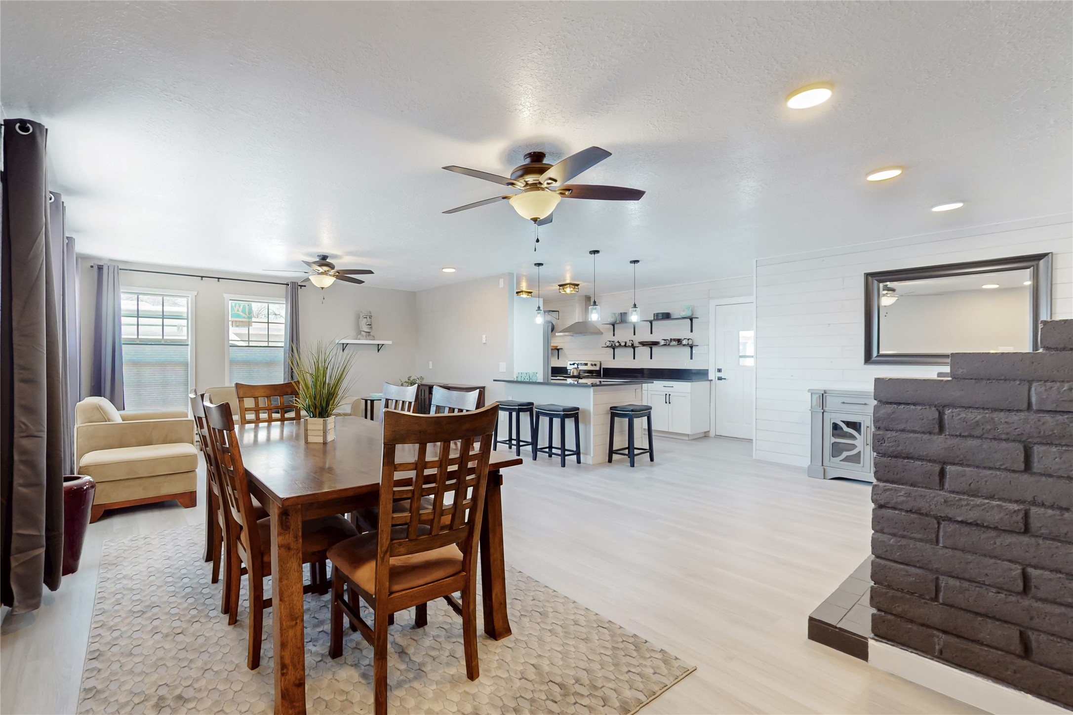 ** Seller to contribute $5,000 towards buyers closing costs/rate-buydown. HUGE PRICE REDUCTION!! What a rare opportunity to get to two stunning homes centrally located in the beautiful Espanola Valley. Both homes have been tastefully redone. Step into style and comfort with this beautifully updated property featuring a completely remodeled kitchen, equipped with new appliances, granite countertops, black quartz sink, and elegant soft close cabinets in a White Ivory with Silver glaze. Enjoy the sleek look and durability of the flooring that flows seamlessly throughout the home in a nice grey color. Natural light fills the space through new windows dressed in new modern blinds, while a new lighting package enhances the ambiance in every room. Enjoy the beautiful closets for all your storage needs. New heaters, new Master Cool unit offer peace of mind in the main house. New water heaters have installed in both homes. Main house offers a wood stove fireplace for those cold nights. Also added is a privacy fence on the North side of the property. This home also features a beautifully updated casita, perfect as a guesthouse, RENTAL, or she/man cave. Step inside to find a brand-new kitchen featuring butcher block countertops, gorgeous backsplash, under cabinet lighting as well as new appliances. The newly remodeled bathroom offers a glass round shower. Relax in the living area with the electric fireplace for ambiance and heat. Home boasts custom tile flooring throughout. Casita is on its own well and meter. All new windows, doors and electrical. Property comes with irrigation water rights and ditch to keep up those fantastic fruit trees. THIS PROPERTY HAS SO MUCH TO OFFER!! Come see this one before it is gone!