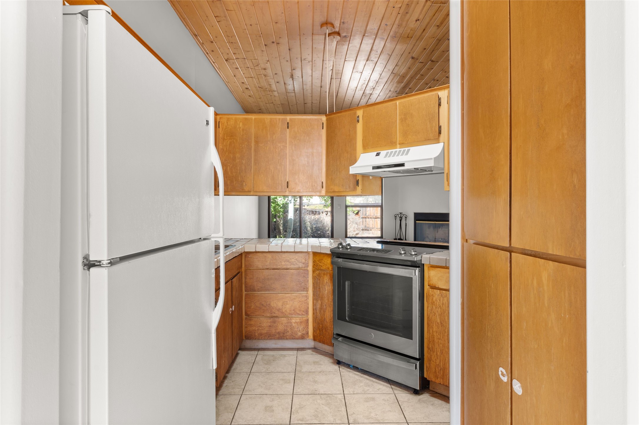 Located in the desirable Park Plazas this lovely two bedroom, two bath has an open kitchen/dining/living room with high ceilings that creates an airy, open feeling. From the living room there are sliding glass doors opening to the back yard for entertaining and relaxing. The two bedrooms are well separated, and the primary bedroom has an en-suite bathroom. Included are a fireplace, tile floors, forced air heat as well as a garage located just steps from the front door. A supper bonus is that there was a new roof installed in 2023. Park Plazas has miles of walking trails, tennis and pickle ball courts, community gardens, off leash dog park, a gated RV storage area as well as other amenities.