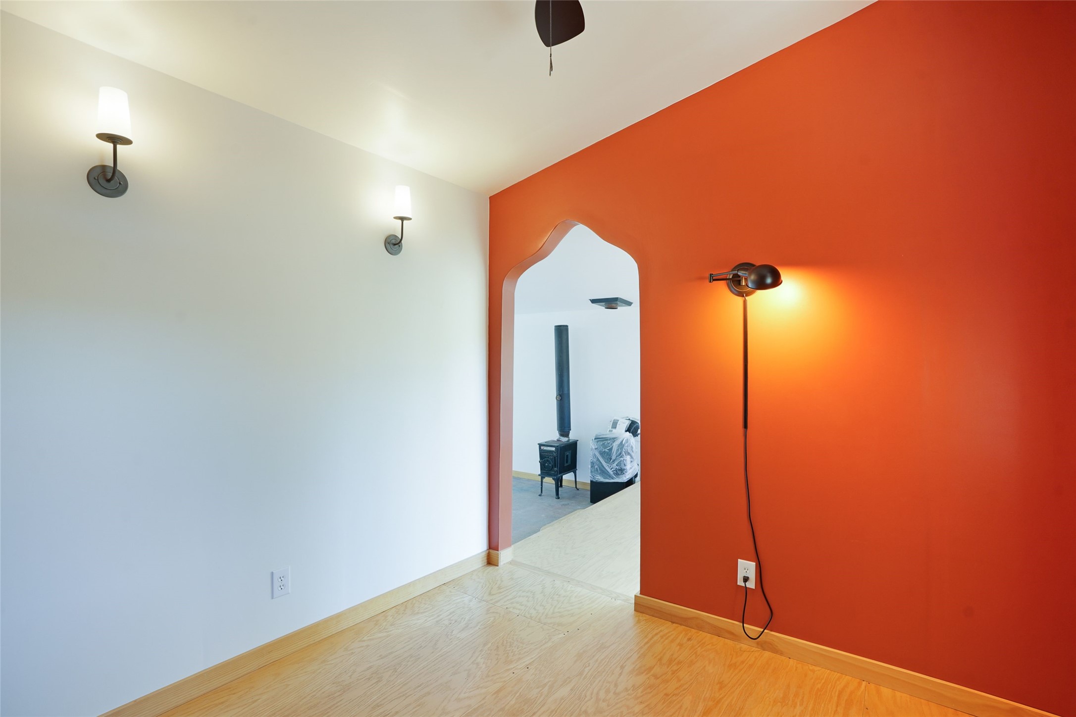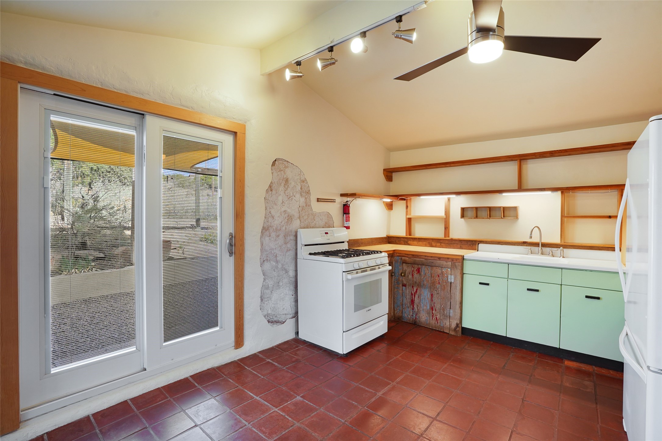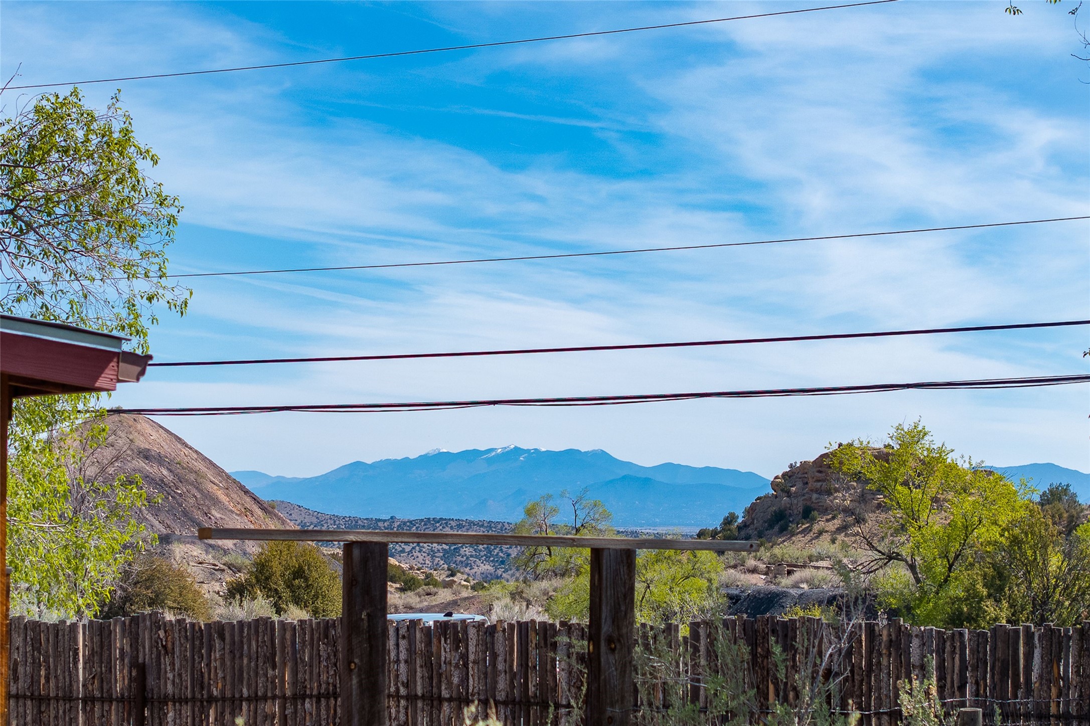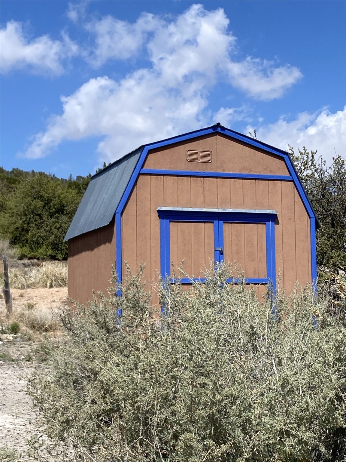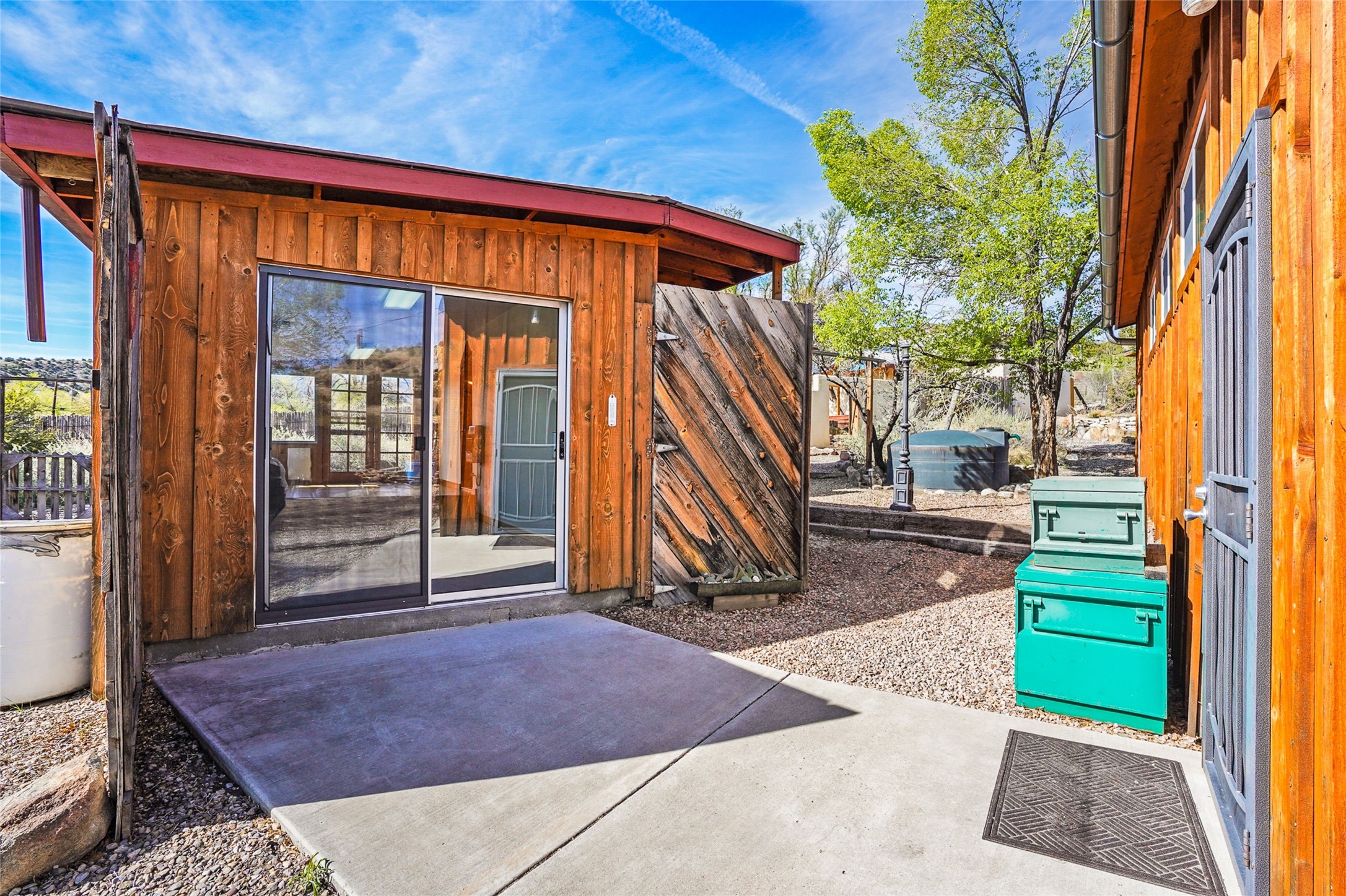 Nestled in the heart of historic Madrid village and close to the County greenbelt, this unique .64-acre property offers a blend of charm and functionality. It features a 972-square-foot artistic main home, a 443-square-foot studio complete bath with shower and sink, and a bright, spacious 750-square-foot workshop. The workshop is equipped with a wood stove for heating and a mini-split system that also provides heating and cooling. The main home showcases partial adobe construction, a sunlit atrium, a two-way kiva fireplace, and a bathroom featuring a clawfoot tub. The property consists of two legally recorded lots. Both the studio and the main house open to an expansive fenced yard with secure coyote fencing, ideal for pets. Just off the kitchen's patio doors lies a tranquil patio space, adding to the peaceful ambiance. This property is part of a lively, creative community with coffee shop, galleries, restaurants, and a general store--all within walking distance. Its location offers convenient access to Albuquerque and Santa Fe via the scenic Turquoise Trail. A perfect blend of artistry, community, and work-at-home possibilities awaits.