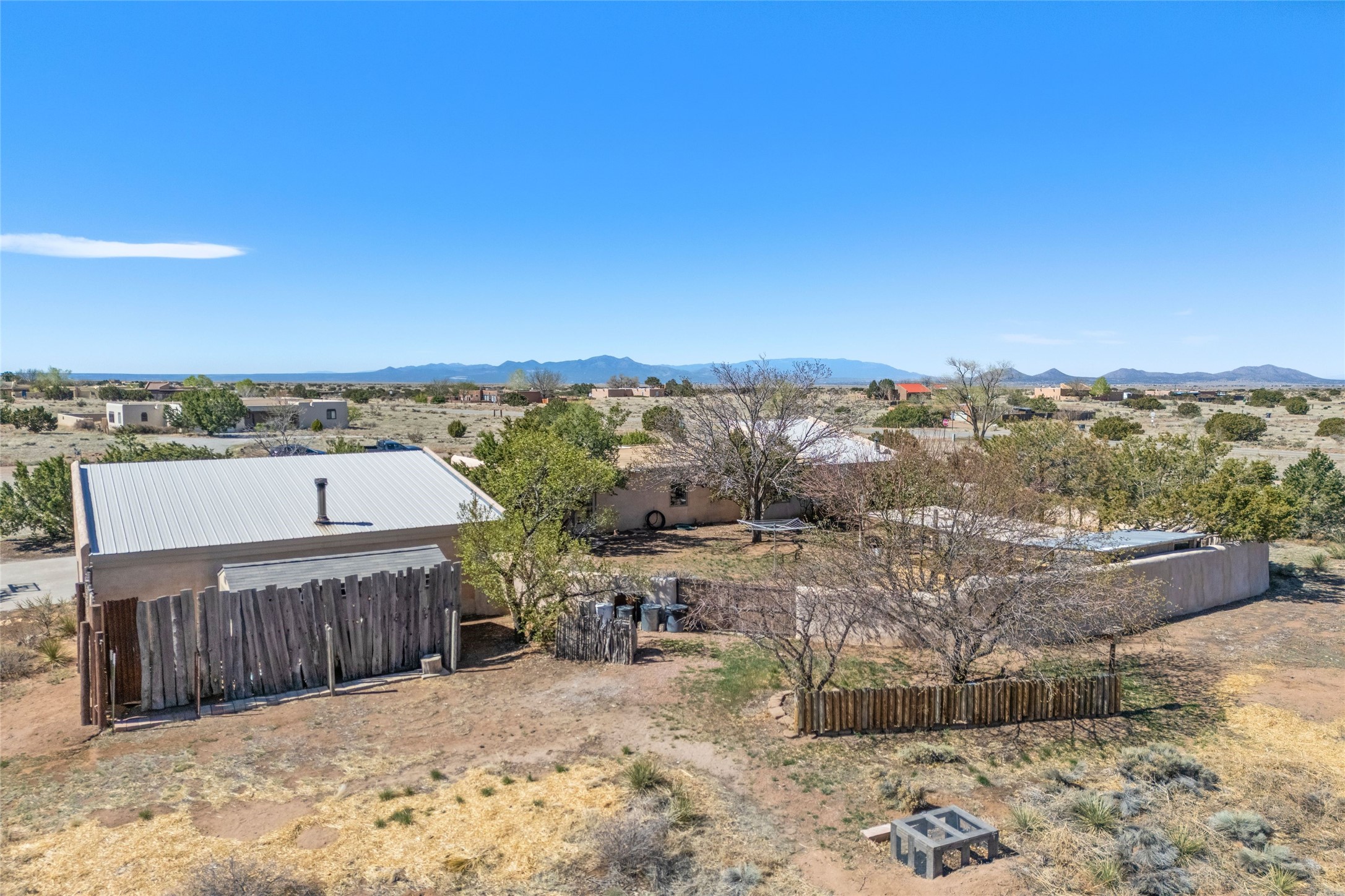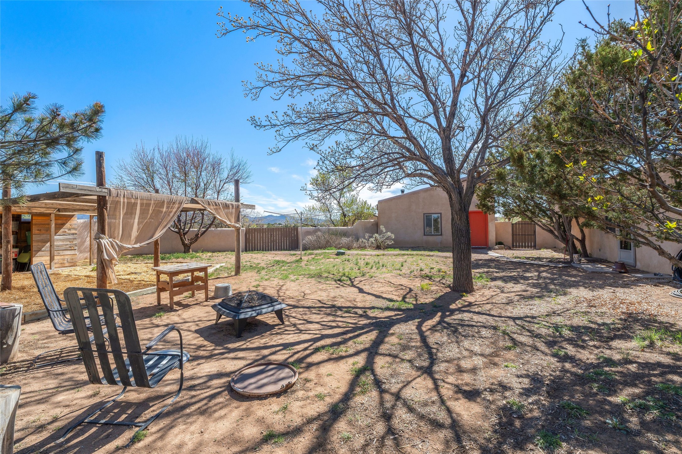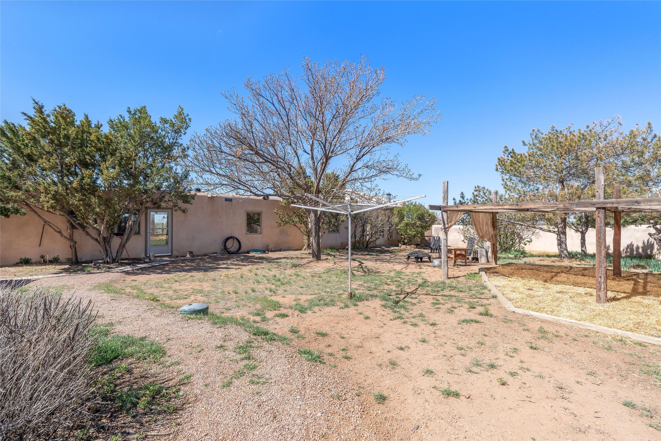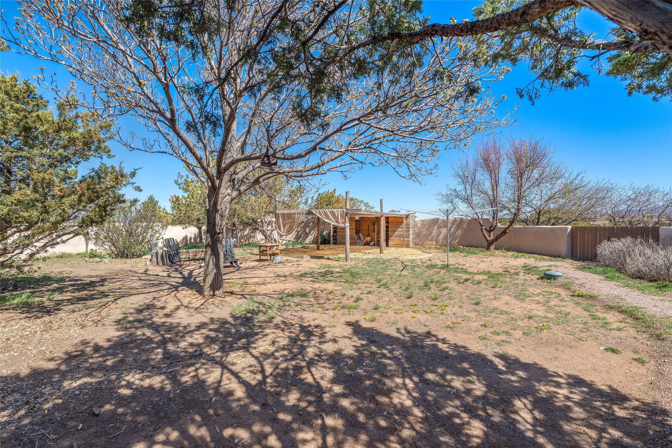 Situated on 1.49 acres in the beloved Eldorado community, this charming 3-bedroom, 2-bathroom retreat is a sanctuary of creativity, comfort, and connection. With 2,004 square feet of light-filled living space and a 704-square-foot detached studio.Inside, classic brick and tile floors, a welcoming kitchen, and a tranquil primary suite with outdoor access set the tone for easy living. Step outside to enjoy multiple patios, mature landscaping, wide-open skies, and the rare bonus of a private well. Backing to greenbelt and open space, the home offers peaceful seclusion with quick access to shopping, dining, and miles of nearby trails. Eldorado's sought-after amenities include scenic walking paths, a community pool, tennis and pickleball courts, a dog park, and an active community center. Just a short drive to the Santa Fe Plaza, this property invites you to embrace a lifestyle that's both grounded in nature and rich in community.