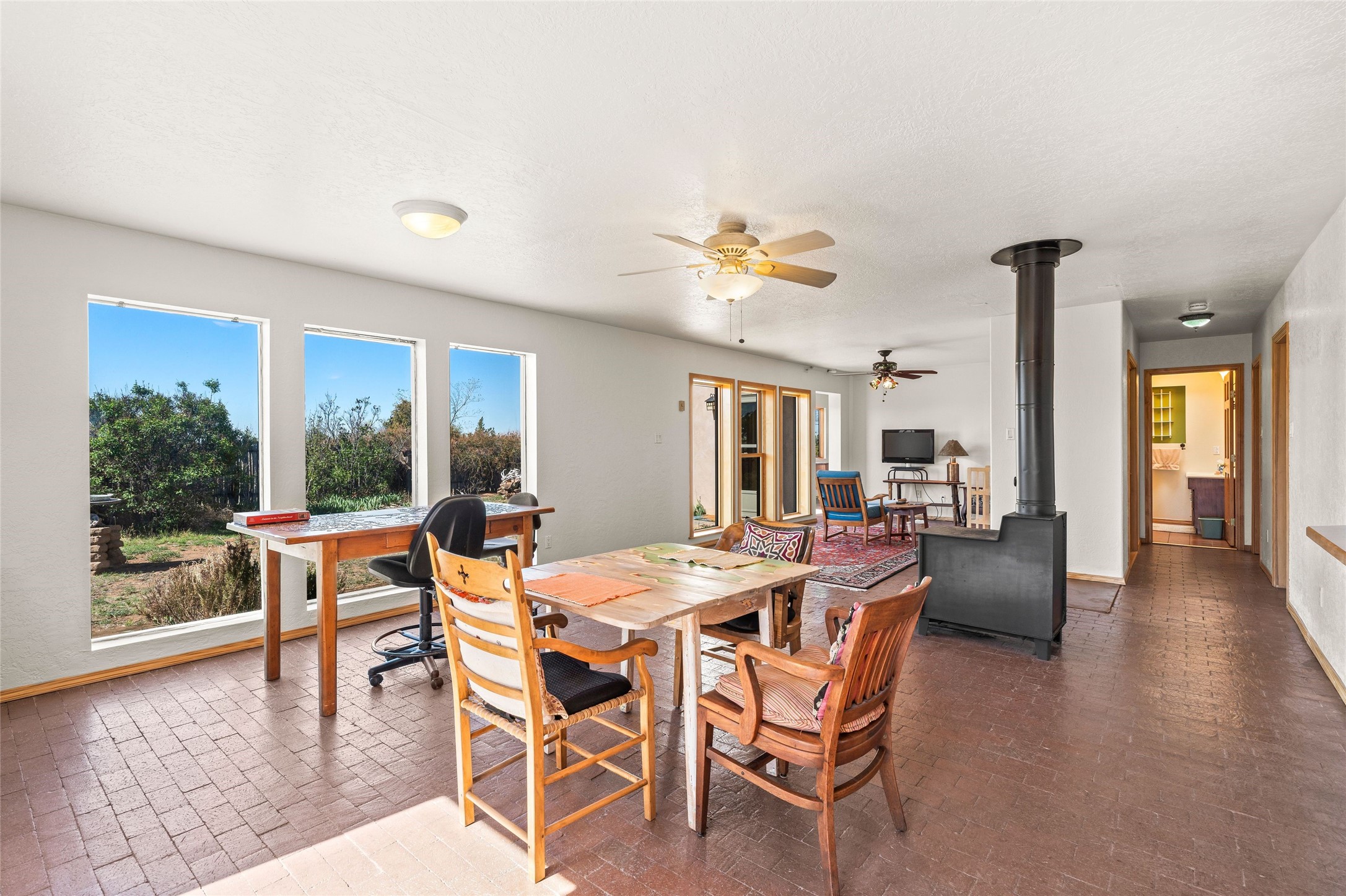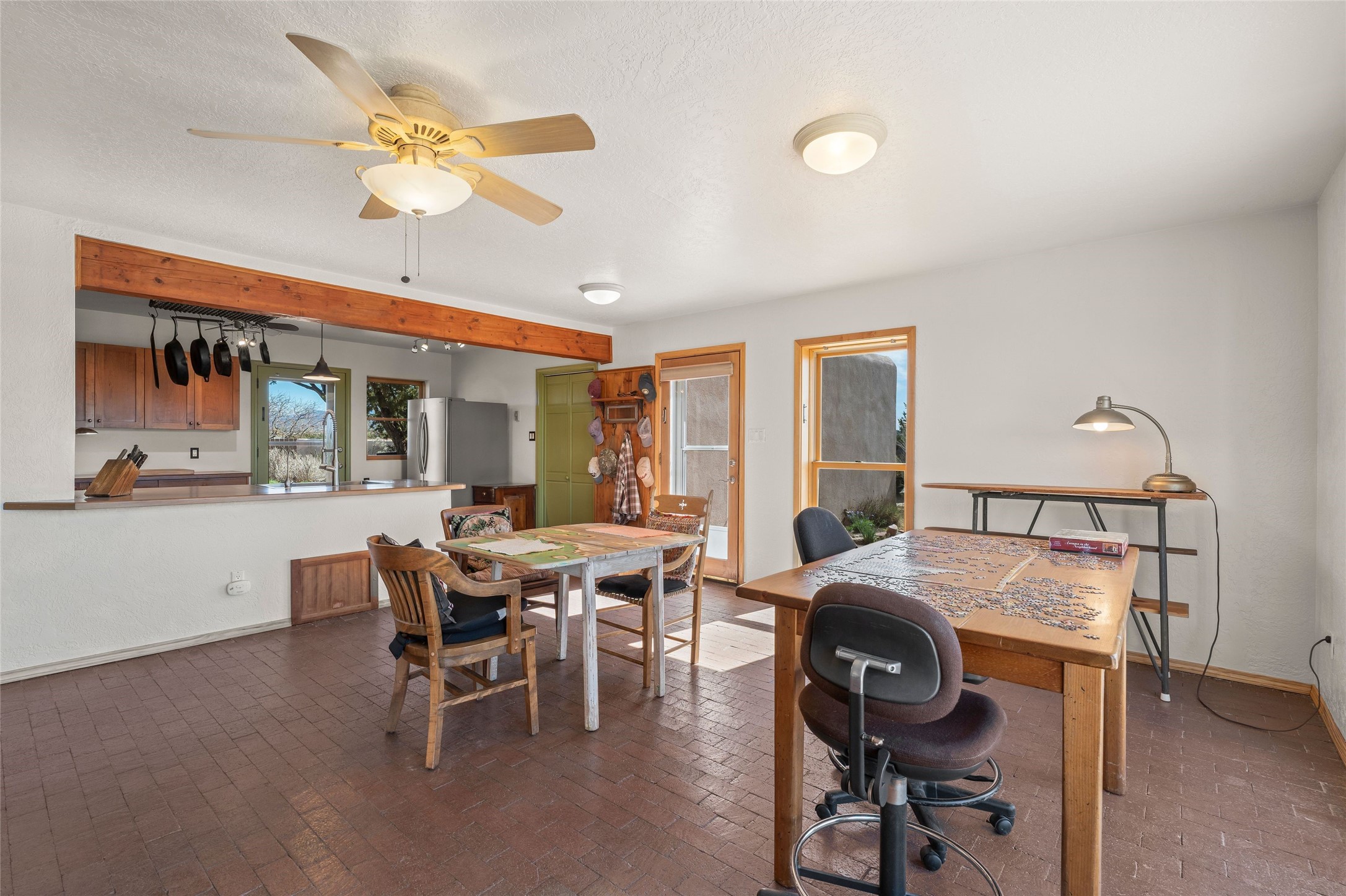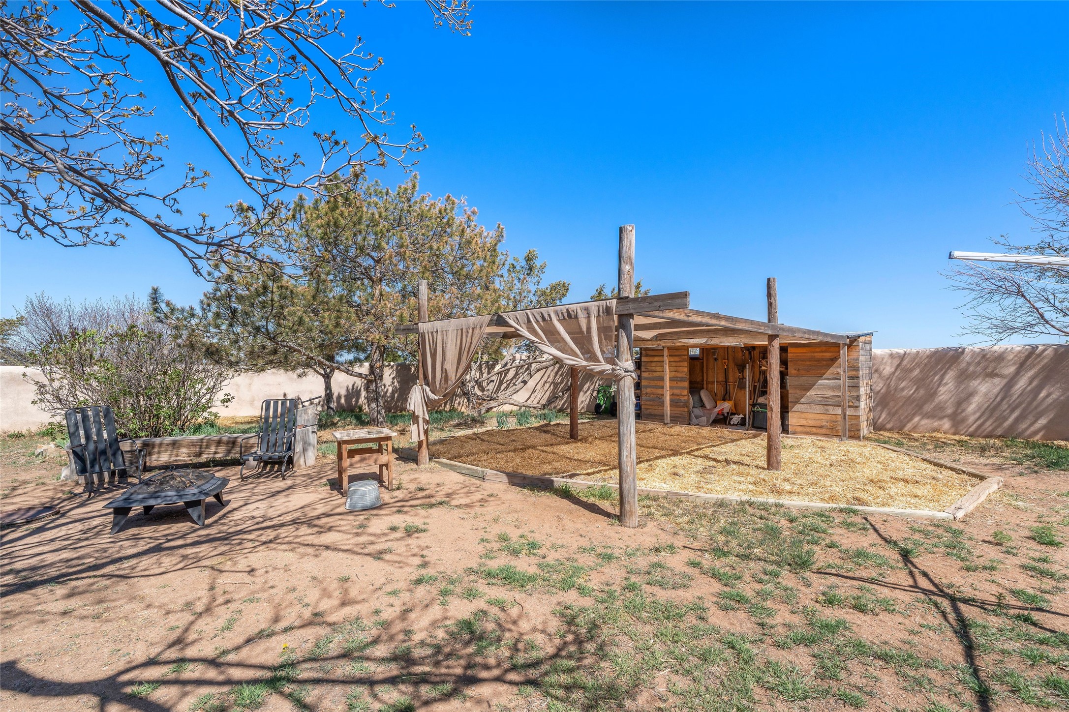 Situated on 1.49 acres in the beloved Eldorado community, this charming 3-bedroom, 2-bathroom retreat is a sanctuary of creativity, comfort, and connection. With 2,004 square feet of light-filled living space and a 704-square-foot detached studio.Inside, classic brick and tile floors, a welcoming kitchen, and a tranquil primary suite with outdoor access set the tone for easy living. Step outside to enjoy multiple patios, mature landscaping, wide-open skies, and the rare bonus of a private well. Backing to greenbelt and open space, the home offers peaceful seclusion with quick access to shopping, dining, and miles of nearby trails. Eldorado's sought-after amenities include scenic walking paths, a community pool, tennis and pickleball courts, a dog park, and an active community center. Just a short drive to the Santa Fe Plaza, this property invites you to embrace a lifestyle that's both grounded in nature and rich in community.