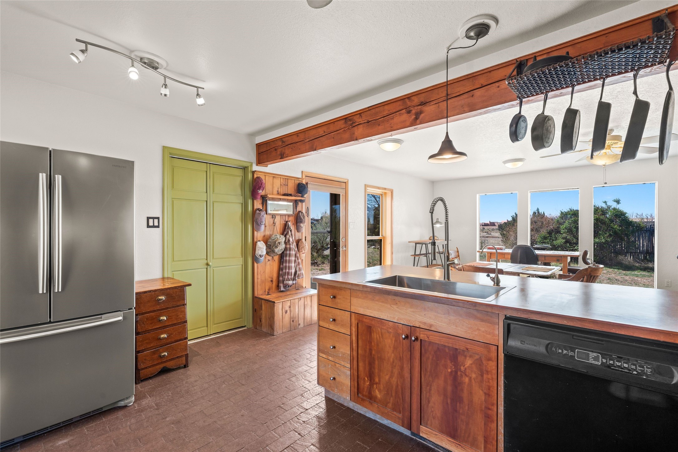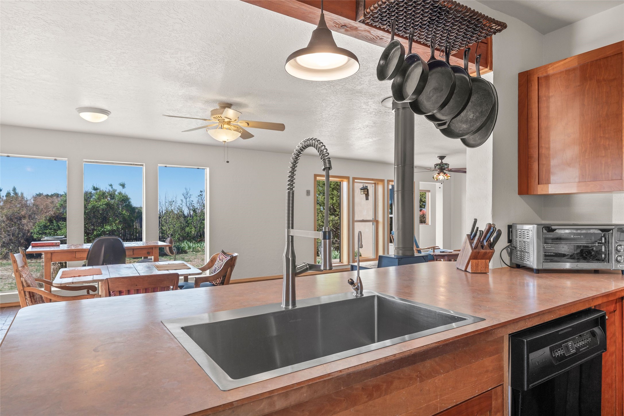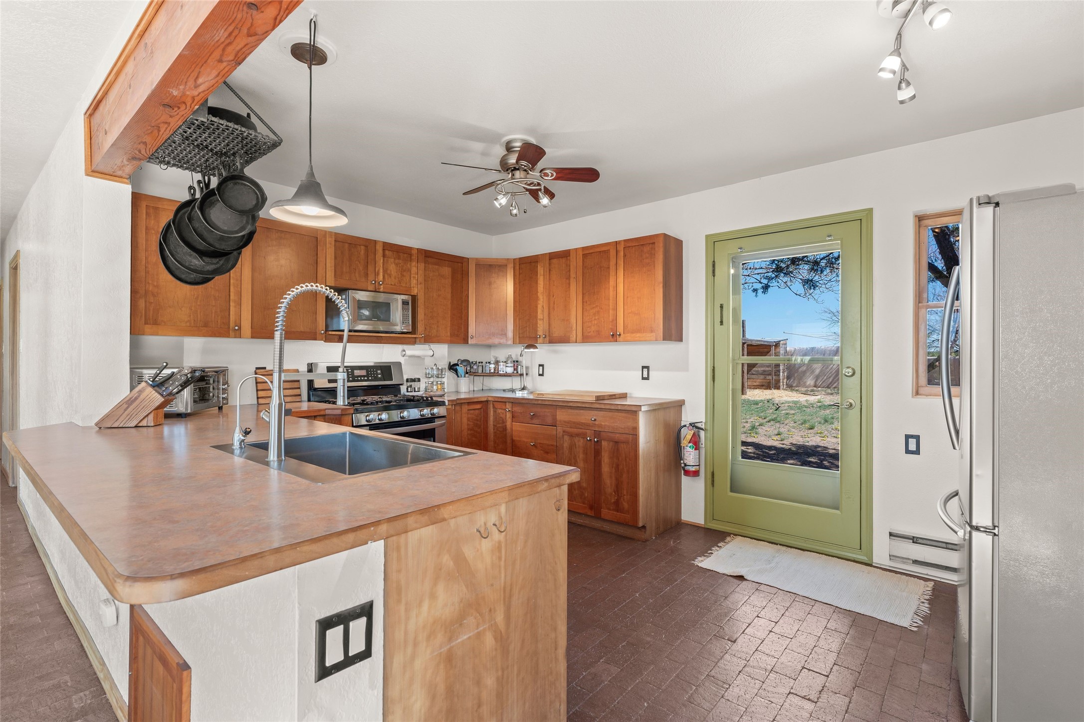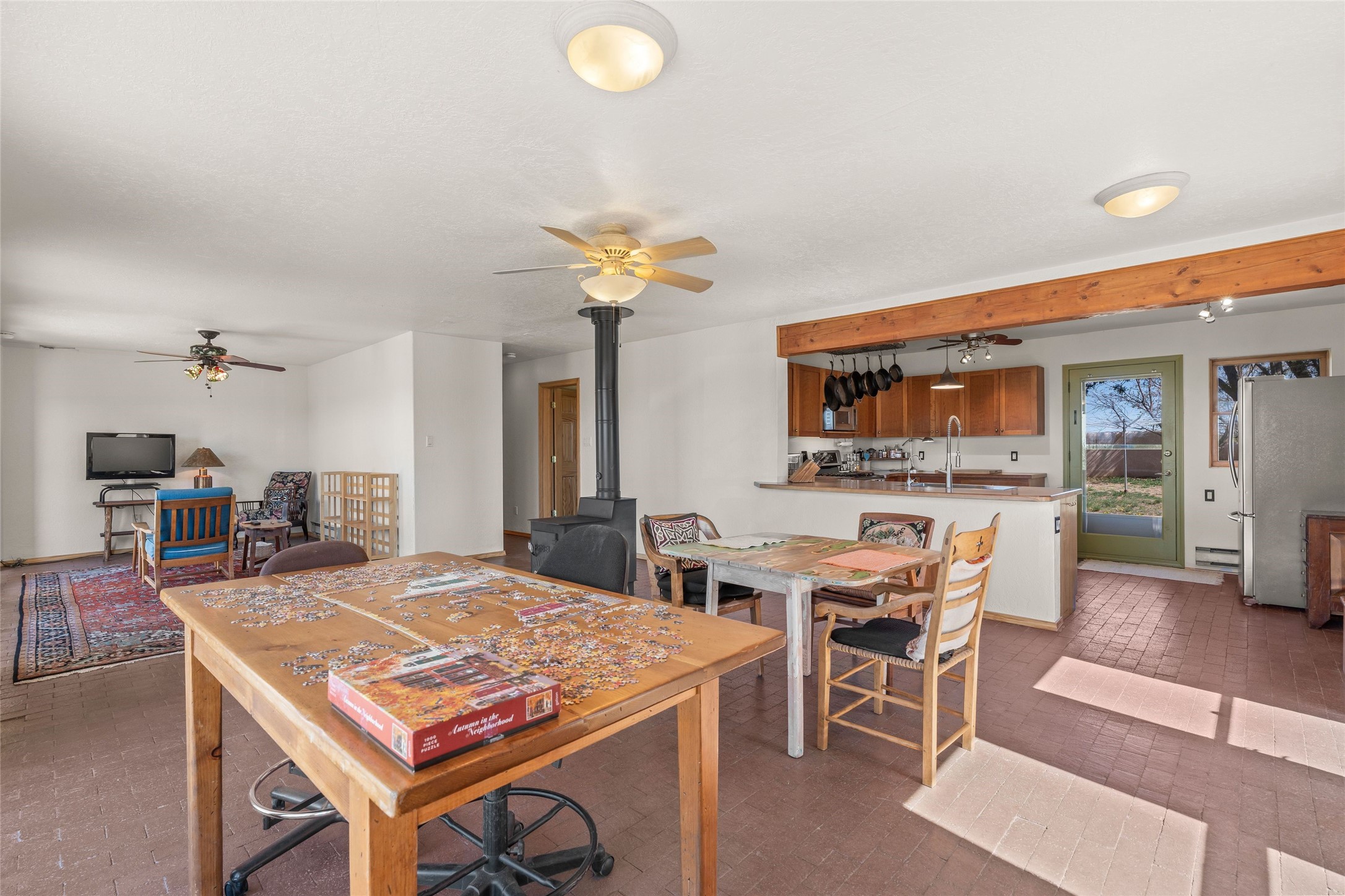 Situated on 1.49 acres in the beloved Eldorado community, this charming 3-bedroom, 2-bathroom retreat is a sanctuary of creativity, comfort, and connection. With 2,004 square feet of light-filled living space and a 704-square-foot detached studio.Inside, classic brick and tile floors, a welcoming kitchen, and a tranquil primary suite with outdoor access set the tone for easy living. Step outside to enjoy multiple patios, mature landscaping, wide-open skies, and the rare bonus of a private well. Backing to greenbelt and open space, the home offers peaceful seclusion with quick access to shopping, dining, and miles of nearby trails. Eldorado's sought-after amenities include scenic walking paths, a community pool, tennis and pickleball courts, a dog park, and an active community center. Just a short drive to the Santa Fe Plaza, this property invites you to embrace a lifestyle that's both grounded in nature and rich in community.
