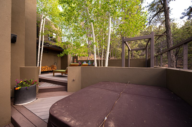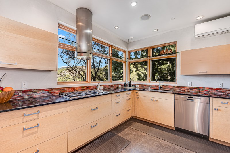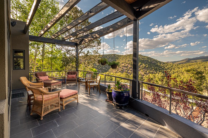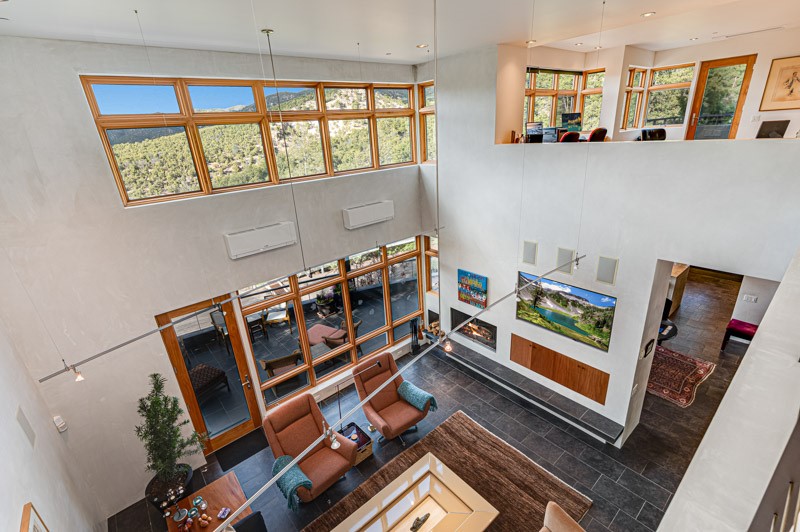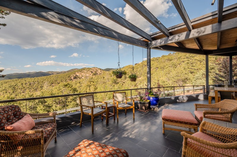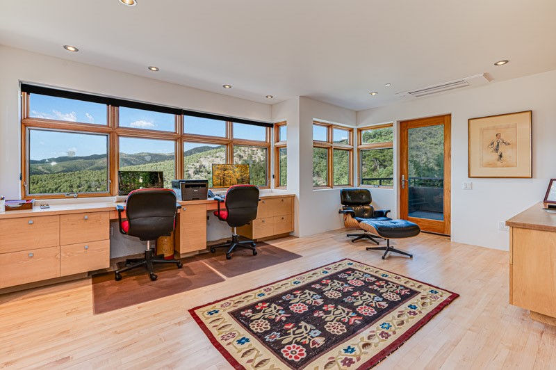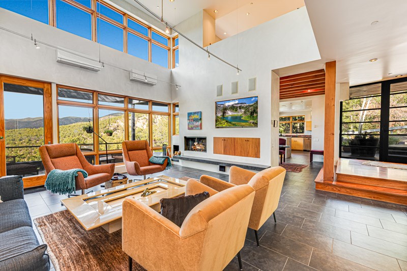 This custom built home is perfectly sited with unbeatable mountain views. Architecturally intelligent, first time on the market and impeccably maintained, this home has all of the amenities of quality living. The main floor has a beautiful owner's suite with a fireplace, bath, walk-in closet and French door to outside deck and portal. The living room has exceptional style with fireplace, soaring ceiling and glass wall engulfing mountain ambiance and the kitchen is light and view filled with Wolf, Bosch and Subzero appliances. The fine finishes include glass tile, unique high-gloss Parapan cabinetry, limestone and granite countertops. Dining is open to the mountain serenity and with maple buffet and access to outdoor built-in kitchen and portal. The spacious laundry/storage leads to a finished garage and wood working studio. Nature beckons with an outdoor hot tub. There is Trex decks, sound system inside/outside, and mature landscaping. There is an impressive use of rare wood such as Brazilian Rosewood that gives this contemporary home an inviting warmth. Upstairs is a stunning guest suite, additional bedroom with a full bath and walk-in closet. Open to the impressive views and to a private deck, the loft office has two built-in desks and bookshelves. This property is a rare piece of art.