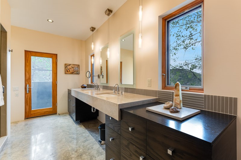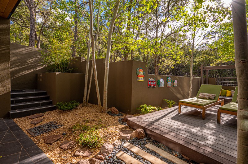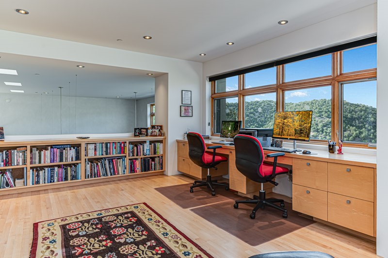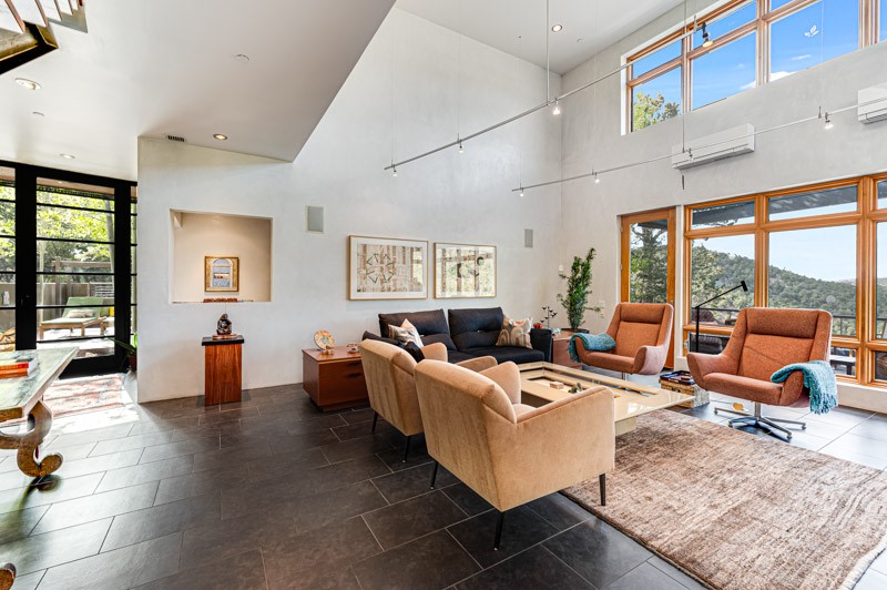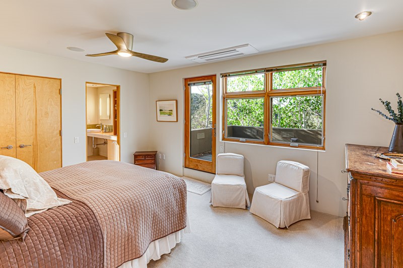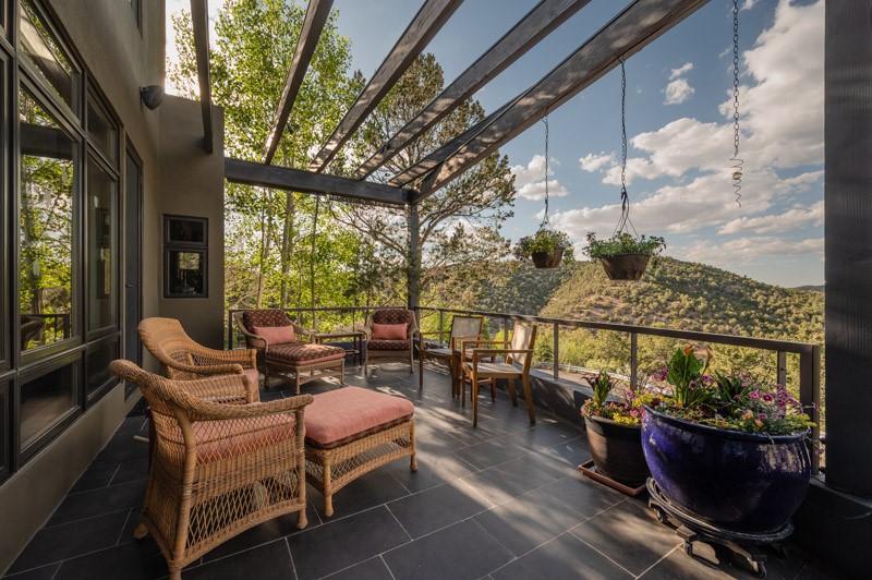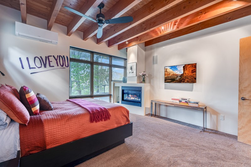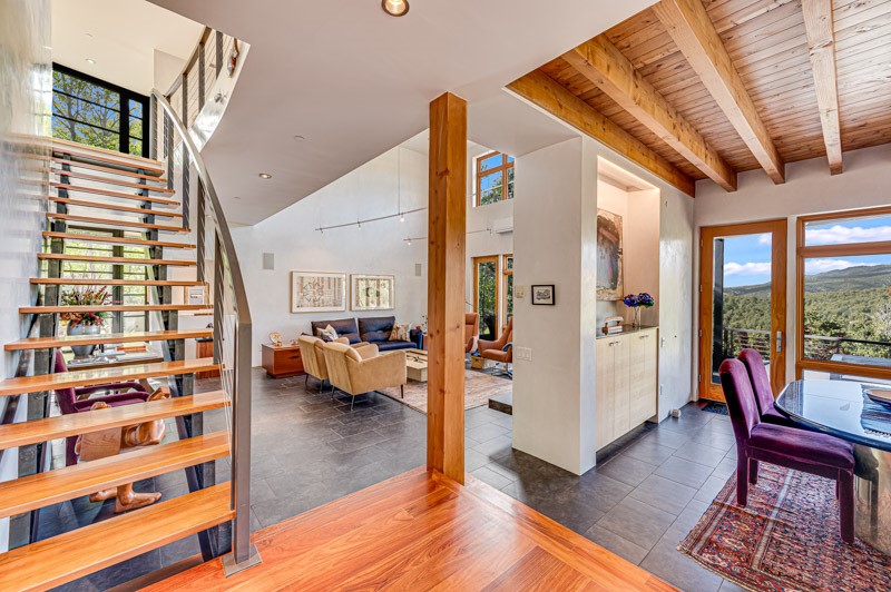 This custom built home is perfectly sited with unbeatable mountain views. Architecturally intelligent, first time on the market and impeccably maintained, this home has all of the amenities of quality living. The main floor has a beautiful owner's suite with a fireplace, bath, walk-in closet and French door to outside deck and portal. The living room has exceptional style with fireplace, soaring ceiling and glass wall engulfing mountain ambiance and the kitchen is light and view filled with Wolf, Bosch and Subzero appliances. The fine finishes include glass tile, unique high-gloss Parapan cabinetry, limestone and granite countertops. Dining is open to the mountain serenity and with maple buffet and access to outdoor built-in kitchen and portal. The spacious laundry/storage leads to a finished garage and wood working studio. Nature beckons with an outdoor hot tub. There is Trex decks, sound system inside/outside, and mature landscaping. There is an impressive use of rare wood such as Brazilian Rosewood that gives this contemporary home an inviting warmth. Upstairs is a stunning guest suite, additional bedroom with a full bath and walk-in closet. Open to the impressive views and to a private deck, the loft office has two built-in desks and bookshelves. This property is a rare piece of art.