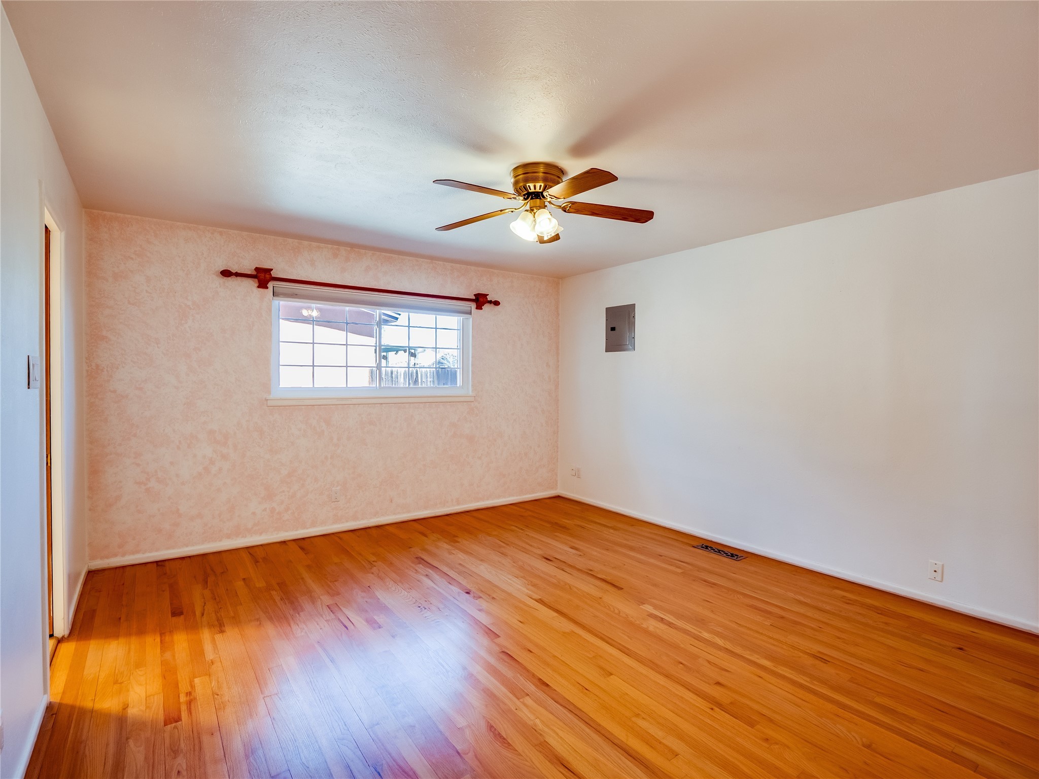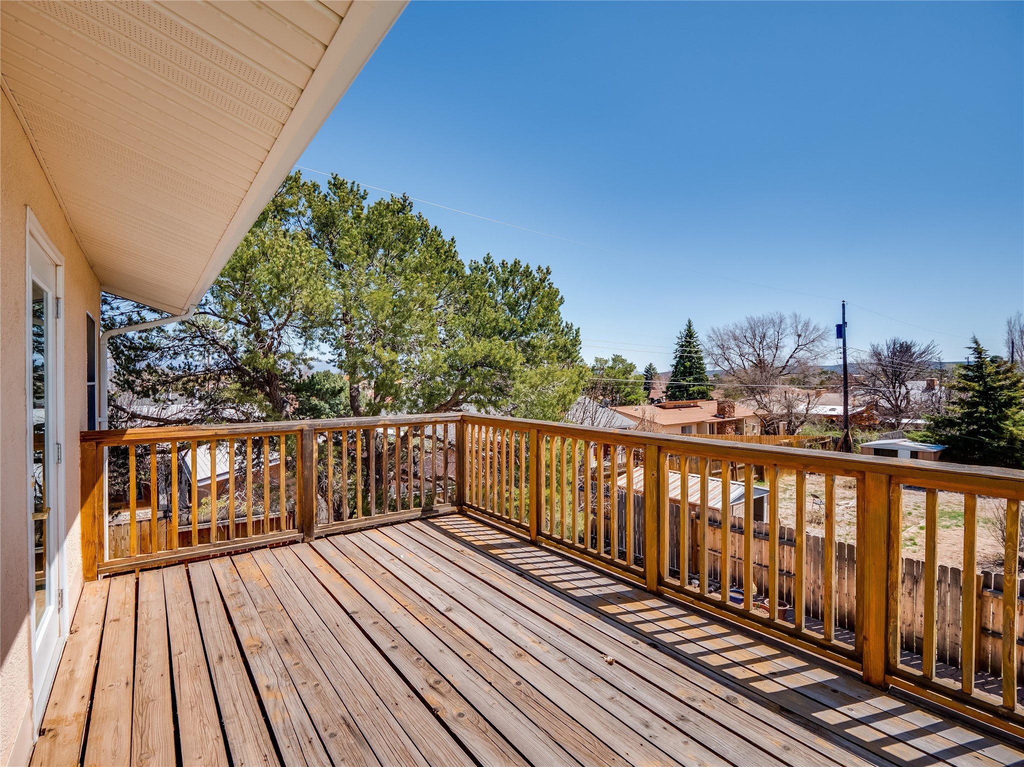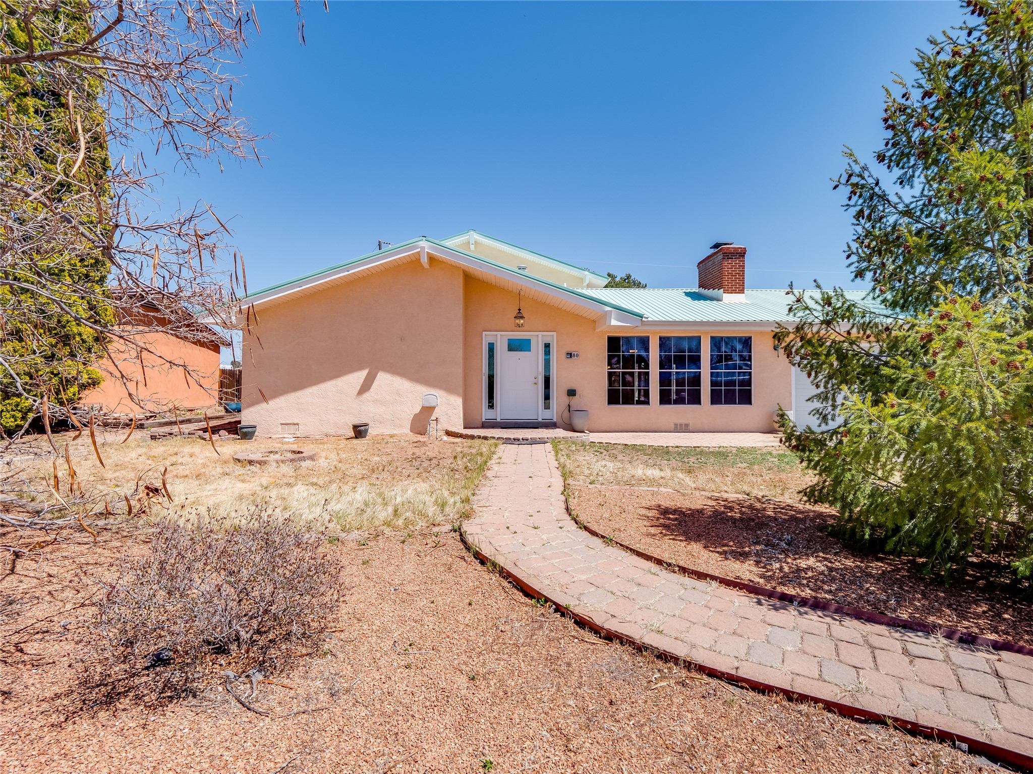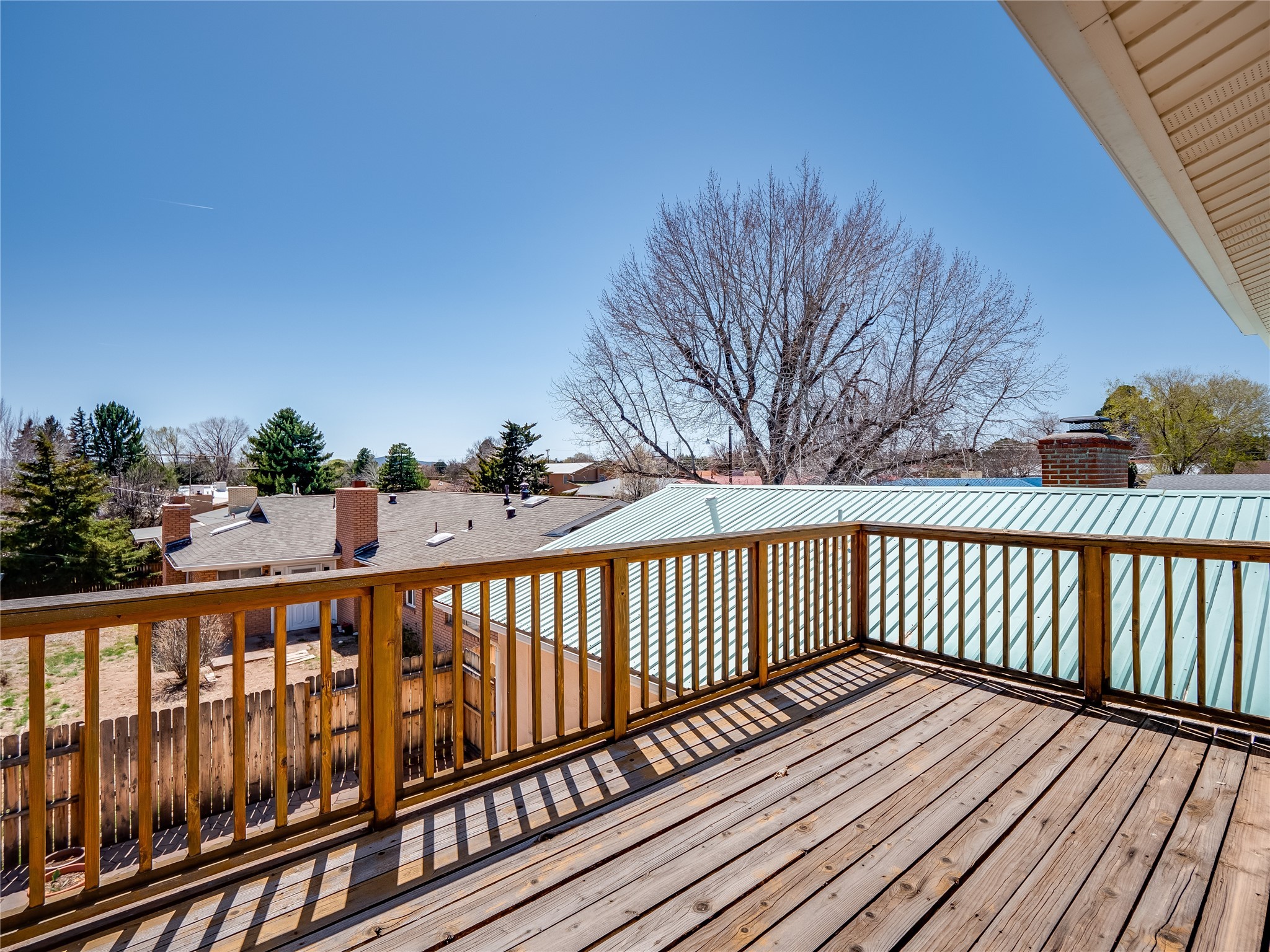 Welcome to this inviting two-story home located in the heart of White Rock, offering ample space, character-filled design, and a functional layout ideal for comfortable living. Nestled behind a large, low-maintenance front yard. Step into the foyer and head right into the cozy yet spacious living room, where warm wood floors and wood-paneled walls flank a charming brick wood-burning fireplace--the perfect centerpiece for relaxing evenings. Just off the living room is the bright, expansive kitchen featuring crisp white cabinetry, solid surface counters, tile flooring, a tile backsplash above the stove, stainless steel appliances, and bar seating for casual meals or entertaining. The kitchen flows seamlessly into the open dining room, filled with natural light and offering French doors that lead to the backyard patio, creating an easy indoor-outdoor living experience. Down the front hallway, you'll find a full guest bathroom and two generously sized guest bedrooms--one of which features its own private bathroom with a beautifully tiled walk-in shower and a walk-in closet. A separate hallway in the back of the home leads to two additional carpeted guest bedrooms, one with its own walk-in closet, and a bright and airy full bathroom with classic white tile and a single-sink vanity. Up the dramatic wood staircase is the spacious and private primary en-suite. Vaulted beamed ceilings and large windows make the space feel open and serene, while the private deck offers a peaceful outdoor escape. The suite also includes a large walk-in closet and a luxurious bathroom featuring a walk-in shower, a deep jetted soaking tub, and a double-sink vanity, creating the perfect retreat. The fully fenced backyard is ideal for entertaining or relaxing, complete with a cement patio, mature trees and landscaping, a shed, and a dog enclosure. Located close to trails, parks, and shopping, this home offers the best of White Rock living. Don't miss out--schedule your tour today!
