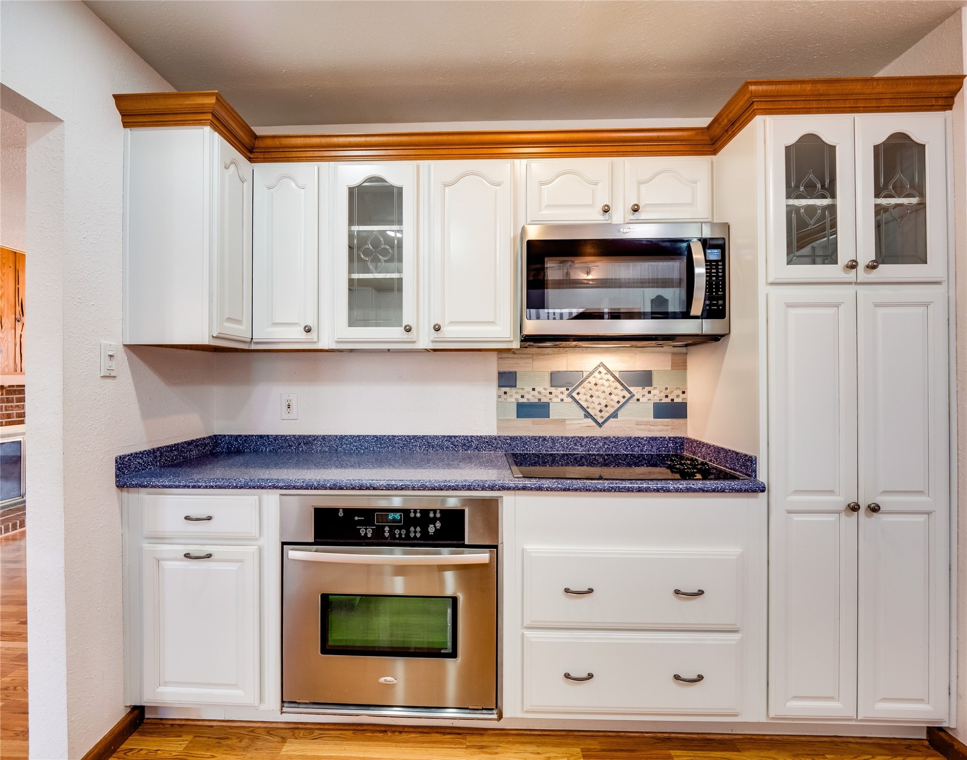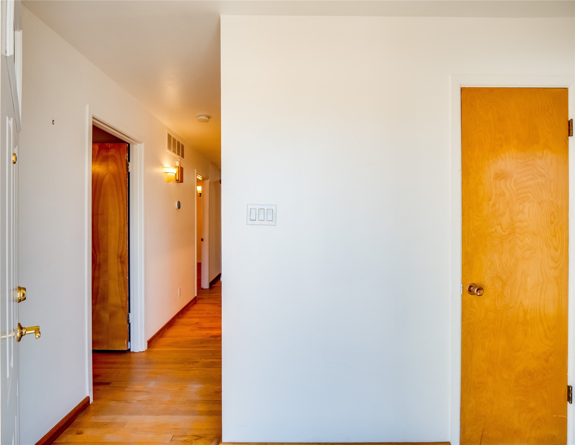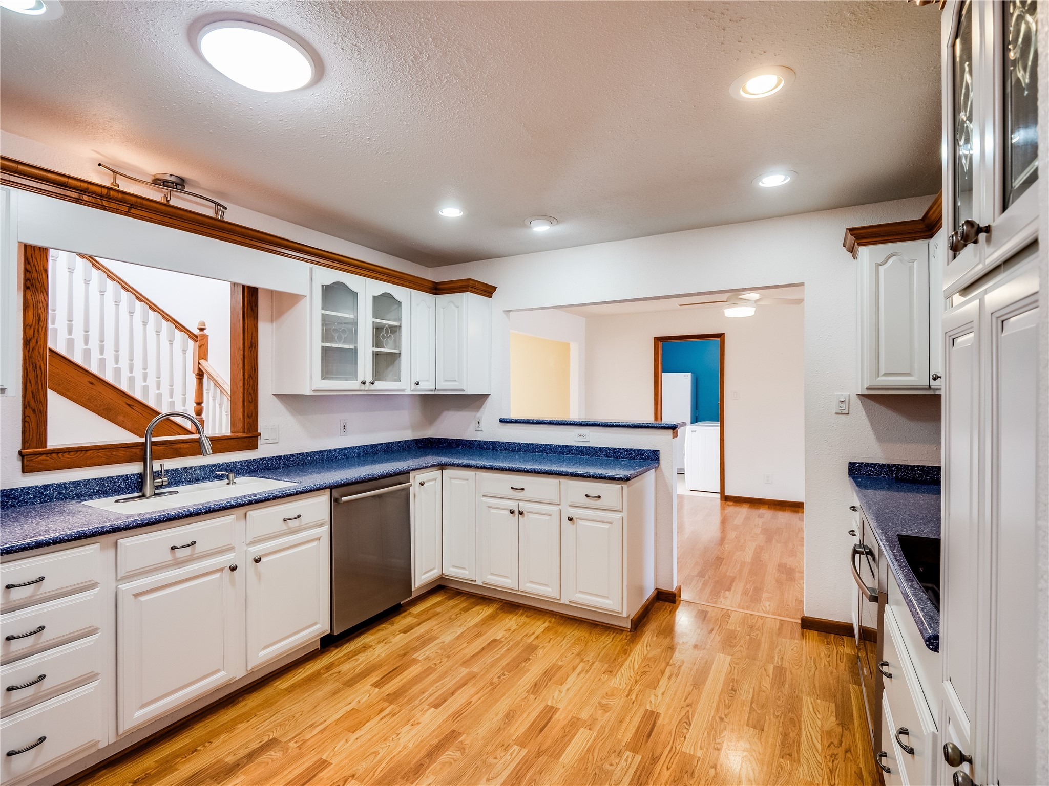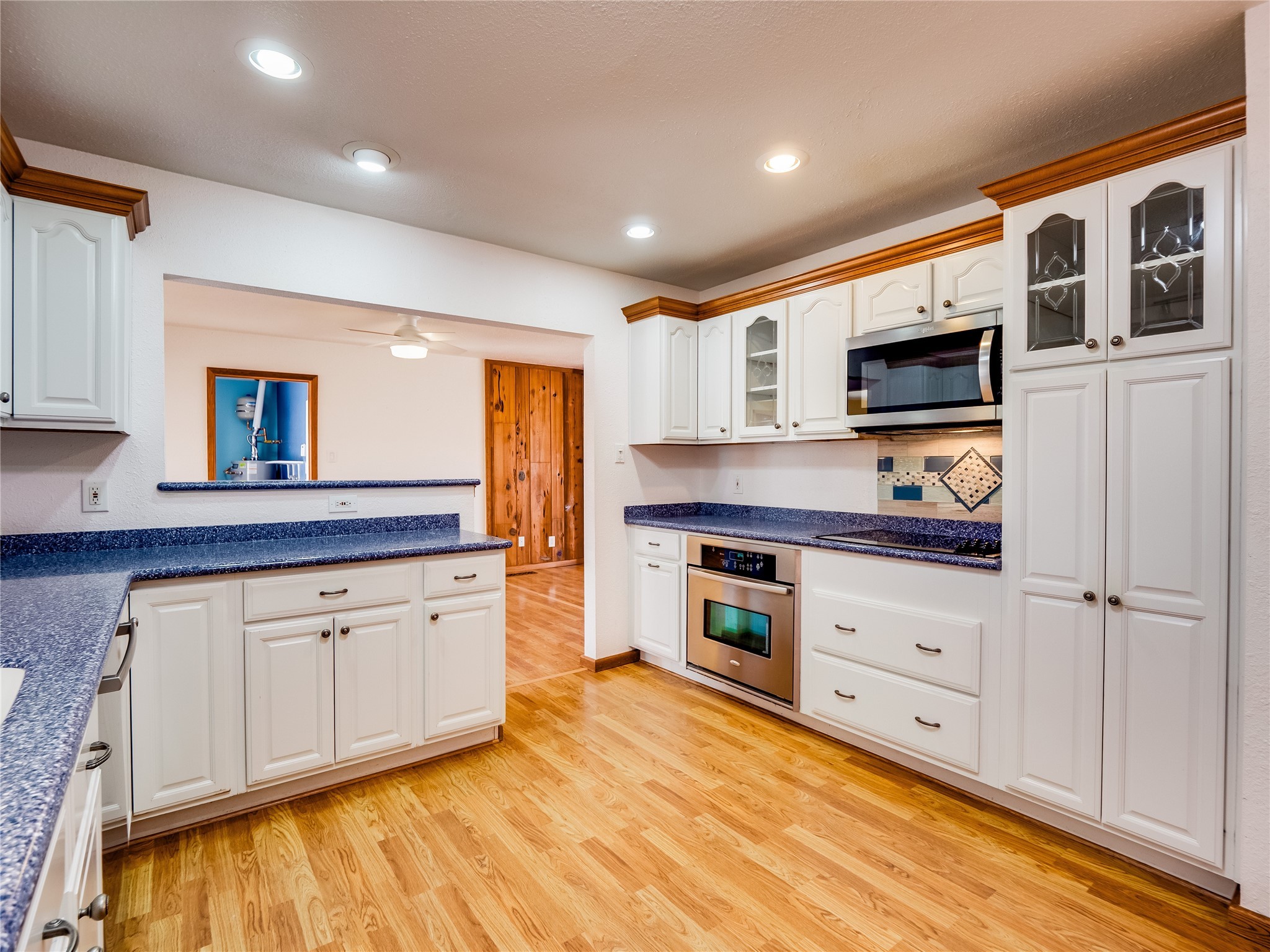 Welcome to this inviting two-story home located in the heart of White Rock, offering ample space, character-filled design, and a functional layout ideal for comfortable living. Nestled behind a large, low-maintenance front yard. Step into the foyer and head right into the cozy yet spacious living room, where warm wood floors and wood-paneled walls flank a charming brick wood-burning fireplace--the perfect centerpiece for relaxing evenings. Just off the living room is the bright, expansive kitchen featuring crisp white cabinetry, solid surface counters, tile flooring, a tile backsplash above the stove, stainless steel appliances, and bar seating for casual meals or entertaining. The kitchen flows seamlessly into the open dining room, filled with natural light and offering French doors that lead to the backyard patio, creating an easy indoor-outdoor living experience. Down the front hallway, you'll find a full guest bathroom and two generously sized guest bedrooms--one of which features its own private bathroom with a beautifully tiled walk-in shower and a walk-in closet. A separate hallway in the back of the home leads to two additional carpeted guest bedrooms, one with its own walk-in closet, and a bright and airy full bathroom with classic white tile and a single-sink vanity. Up the dramatic wood staircase is the spacious and private primary en-suite. Vaulted beamed ceilings and large windows make the space feel open and serene, while the private deck offers a peaceful outdoor escape. The suite also includes a large walk-in closet and a luxurious bathroom featuring a walk-in shower, a deep jetted soaking tub, and a double-sink vanity, creating the perfect retreat. The fully fenced backyard is ideal for entertaining or relaxing, complete with a cement patio, mature trees and landscaping, a shed, and a dog enclosure. Located close to trails, parks, and shopping, this home offers the best of White Rock living. Don't miss out--schedule your tour today!
