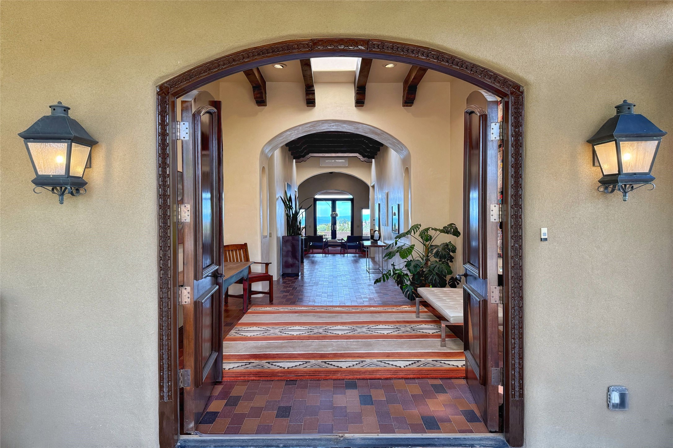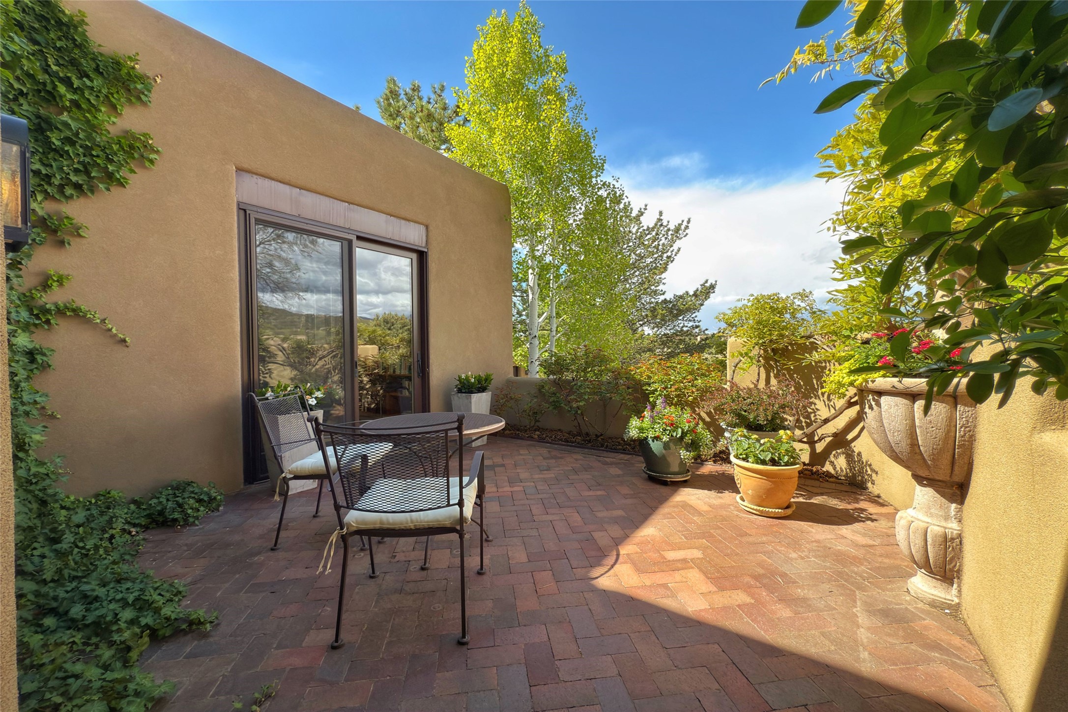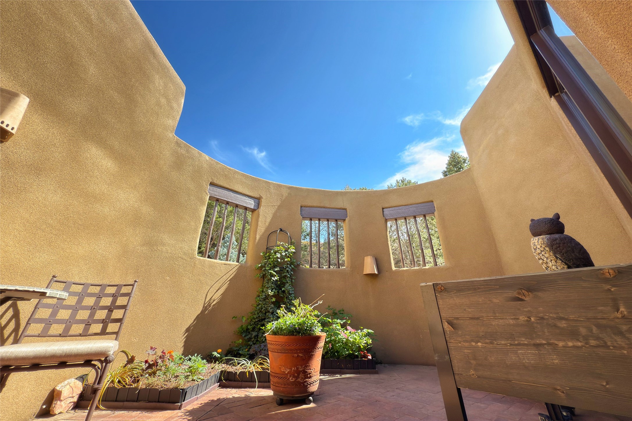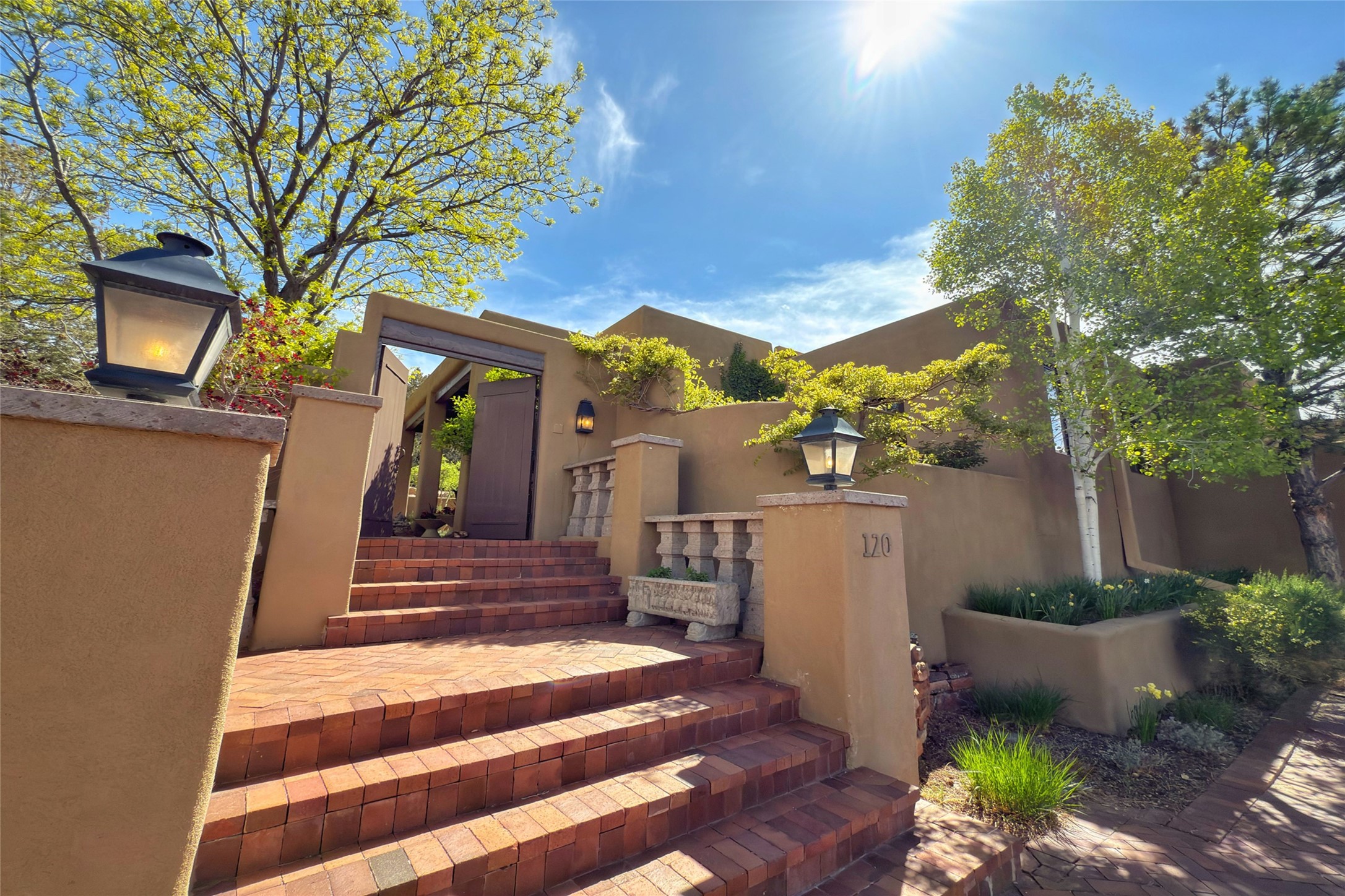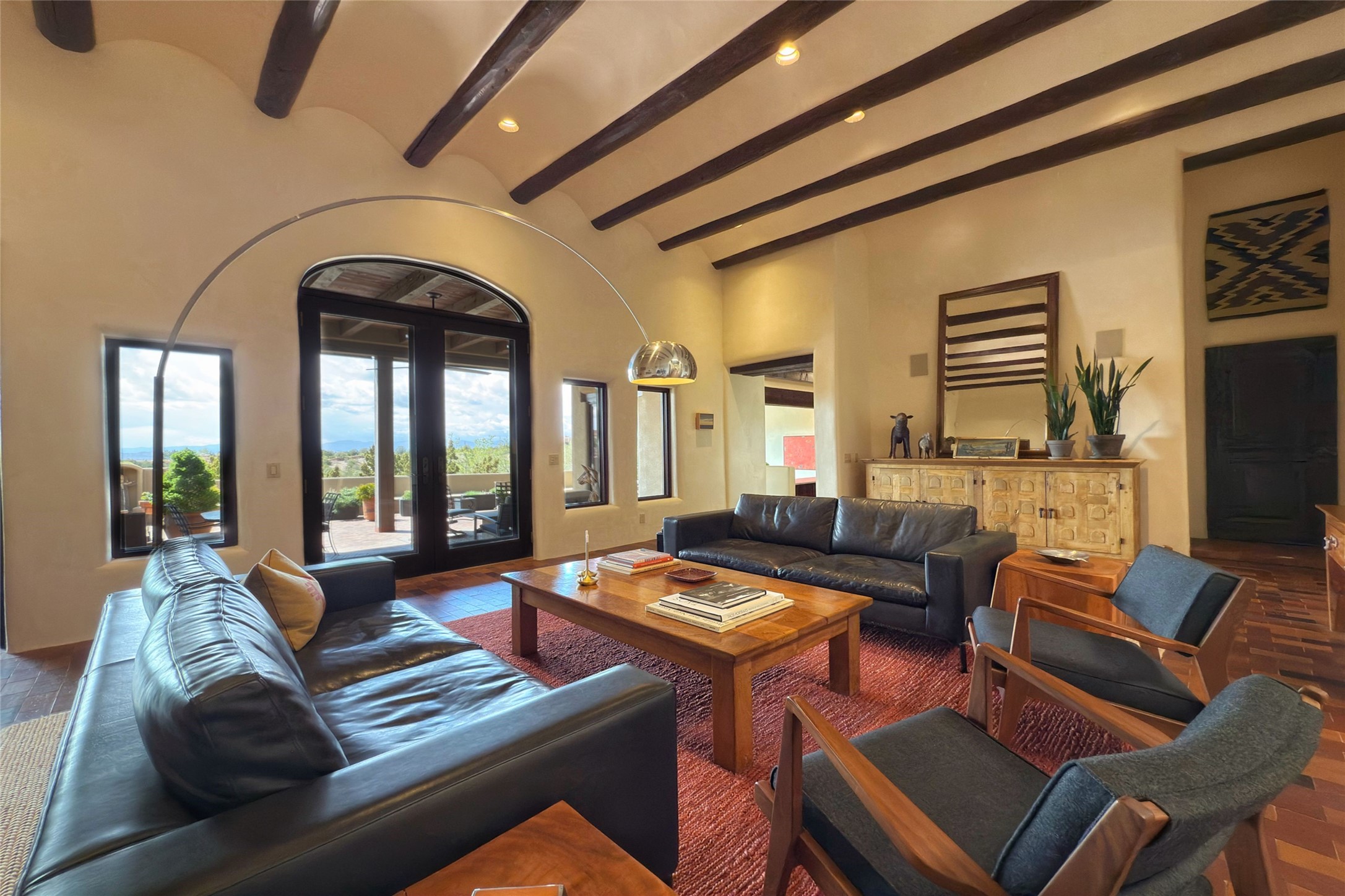 Elegant Foothills Estate with Sangre and Jemez Mountain Views in La CanteraThis exceptional residence is nestled within the prestigious, gated enclave of La Cantera--just moments from the world-class galleries and dining of Canyon Road and the Plaza. Designed for refined living and grand-scale entertaining, the home blends traditional Santa Fe architecture with timeless luxury and sweeping mountain vistas.Enter into a gated courtyard with mature landscaping. A gracious reception and a dramatic gallery hallway lead to an expansive great room with soaring beamed ceilings, one of five fireplaces, and panoramic views. The heart of the home is a spacious open-concept kitchen and dining area, offering breathtaking landscape views. Multiple outdoor living spaces, including a portal with fireplace are ideal for alfresco dining or sunset gatherings. The generous primary suite features a cozy fireplace, walk-in closet, sitting room, and courtyard access. Guests are accommodated in an ensuite bedroom with fireplace and private courtyard. The large studio, currently used as a gym, is ensuite and has a north-facing picture window. There is also outside entry making this space perfect for additional guests or an office. More highlights include a versatile media/office room ensuite with an adjoining sunroom, a wet bar with adjacent wine storage space, a cozy breakfast room, and a workshop off the garage.Set on a private, beautifully landscaped lot with mature trees and tranquil outdoor spaces, this is a rare opportunity to own a remarkable residence in one of Santa Fe's most sought-after communities.