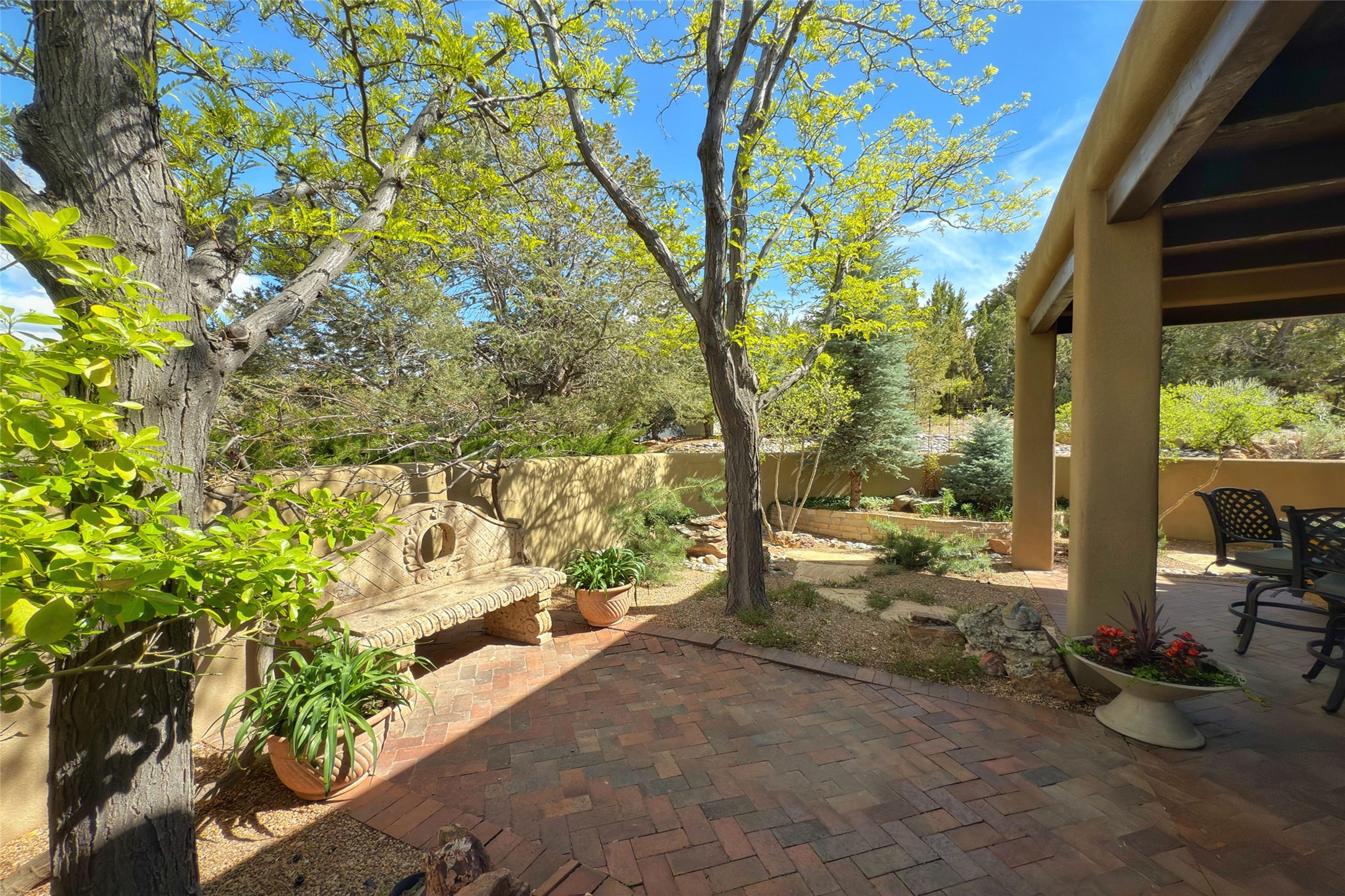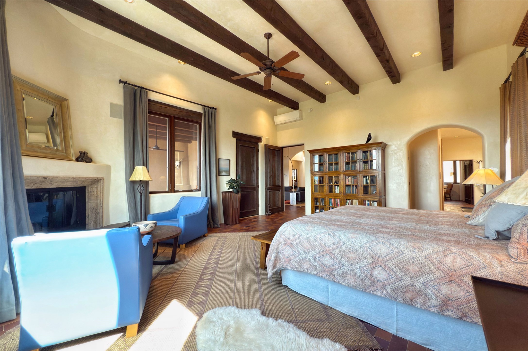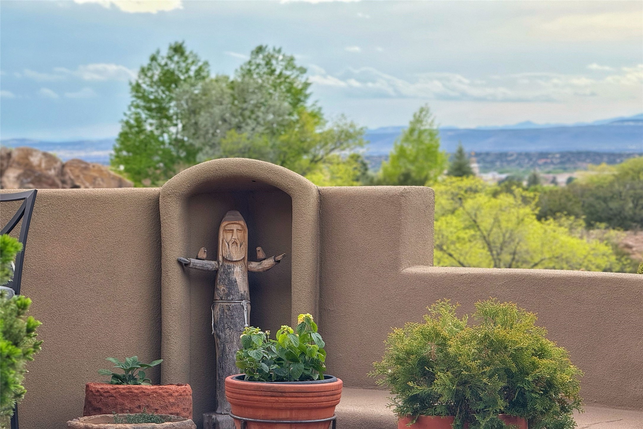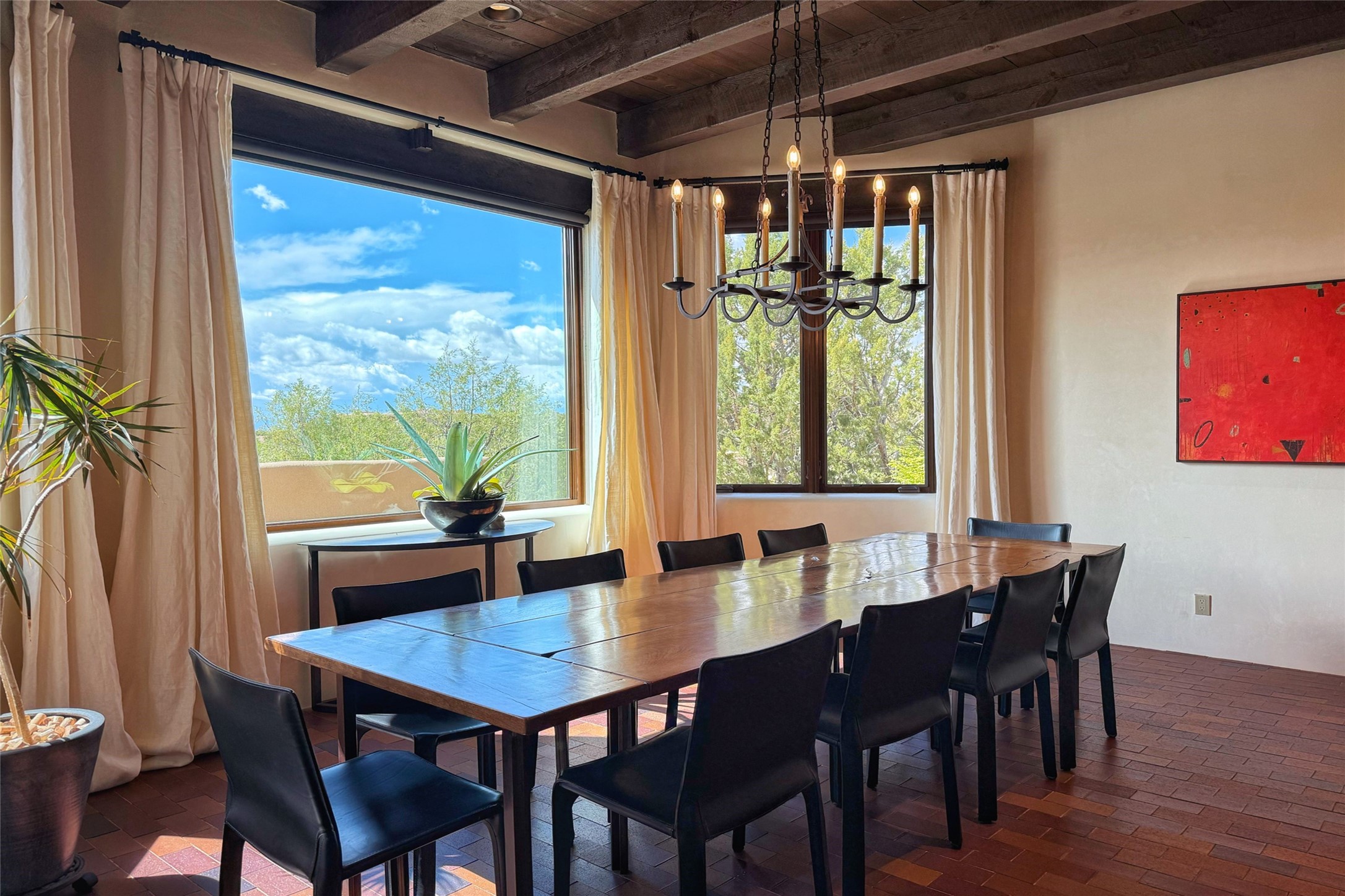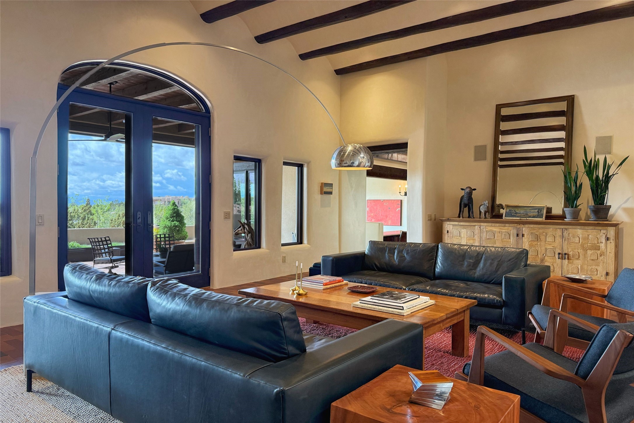 Elegant Foothills Estate with Sangre and Jemez Mountain Views in La CanteraThis exceptional residence is nestled within the prestigious, gated enclave of La Cantera--just moments from the world-class galleries and dining of Canyon Road and the Plaza. Designed for refined living and grand-scale entertaining, the home blends traditional Santa Fe architecture with timeless luxury and sweeping mountain vistas.Enter into a gated courtyard with mature landscaping. A gracious reception and a dramatic gallery hallway lead to an expansive great room with soaring beamed ceilings, one of five fireplaces, and panoramic views. The heart of the home is a spacious open-concept kitchen and dining area, offering breathtaking landscape views. Multiple outdoor living spaces, including a portal with fireplace are ideal for alfresco dining or sunset gatherings. The generous primary suite features a cozy fireplace, walk-in closet, sitting room, and courtyard access. Guests are accommodated in an ensuite bedroom with fireplace and private courtyard. The large studio, currently used as a gym, is ensuite and has a north-facing picture window. There is also outside entry making this space perfect for additional guests or an office. More highlights include a versatile media/office room ensuite with an adjoining sunroom, a wet bar with adjacent wine storage space, a cozy breakfast room, and a workshop off the garage.Set on a private, beautifully landscaped lot with mature trees and tranquil outdoor spaces, this is a rare opportunity to own a remarkable residence in one of Santa Fe's most sought-after communities.