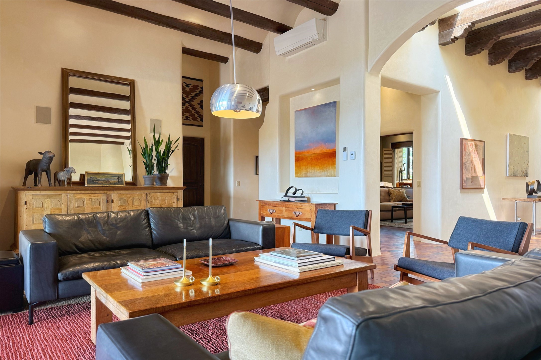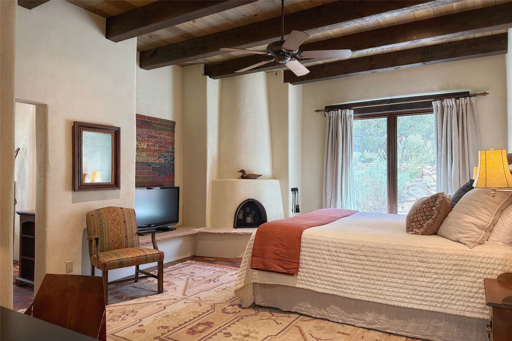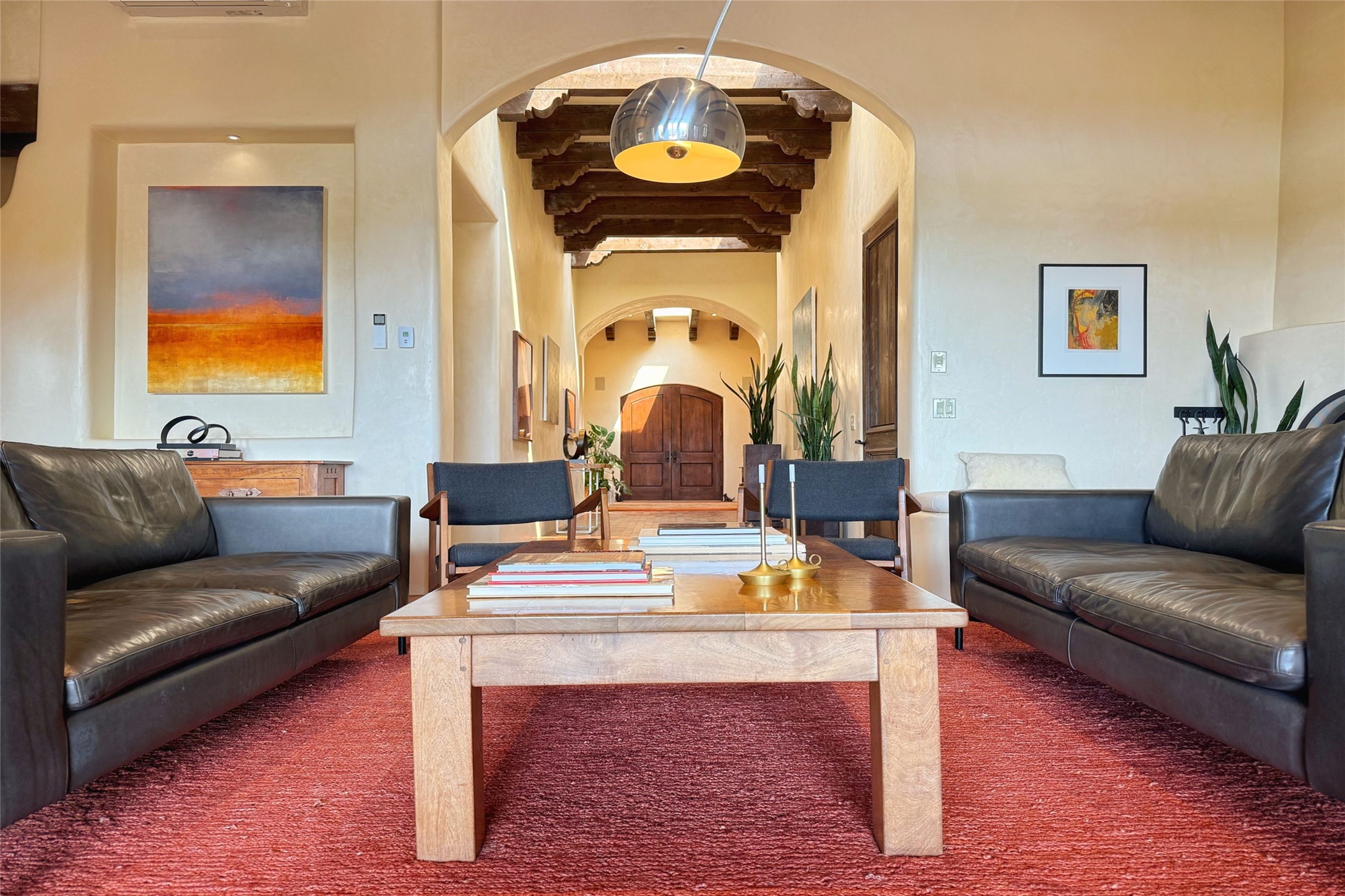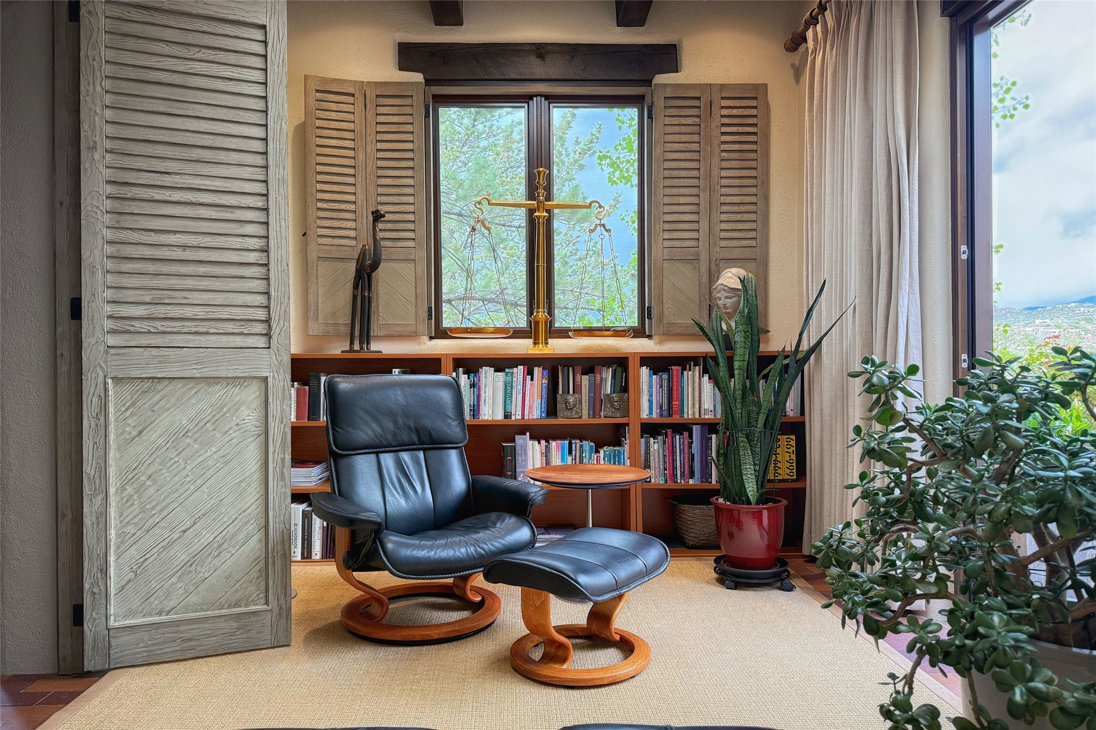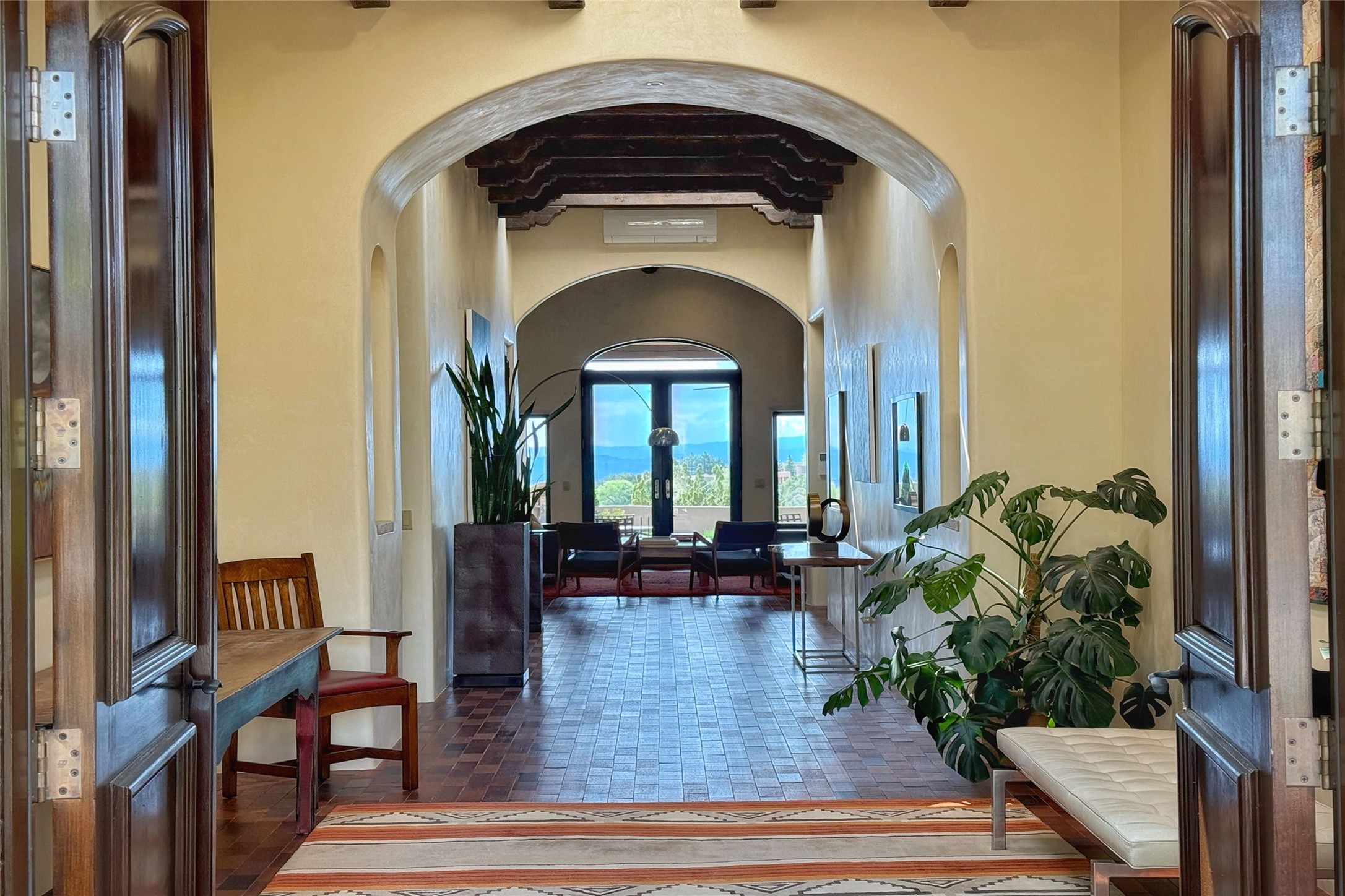 Elegant Foothills Estate with Sangre and Jemez Mountain Views in La CanteraThis exceptional residence is nestled within the prestigious, gated enclave of La Cantera--just moments from the world-class galleries and dining of Canyon Road and the Plaza. Designed for refined living and grand-scale entertaining, the home blends traditional Santa Fe architecture with timeless luxury and sweeping mountain vistas.Enter into a gated courtyard with mature landscaping. A gracious reception and a dramatic gallery hallway lead to an expansive great room with soaring beamed ceilings, one of five fireplaces, and panoramic views. The heart of the home is a spacious open-concept kitchen and dining area, offering breathtaking landscape views. Multiple outdoor living spaces, including a portal with fireplace are ideal for alfresco dining or sunset gatherings. The generous primary suite features a cozy fireplace, walk-in closet, sitting room, and courtyard access. Guests are accommodated in an ensuite bedroom with fireplace and private courtyard. The large studio, currently used as a gym, is ensuite and has a north-facing picture window. There is also outside entry making this space perfect for additional guests or an office. More highlights include a versatile media/office room ensuite with an adjoining sunroom, a wet bar with adjacent wine storage space, a cozy breakfast room, and a workshop off the garage.Set on a private, beautifully landscaped lot with mature trees and tranquil outdoor spaces, this is a rare opportunity to own a remarkable residence in one of Santa Fe's most sought-after communities.