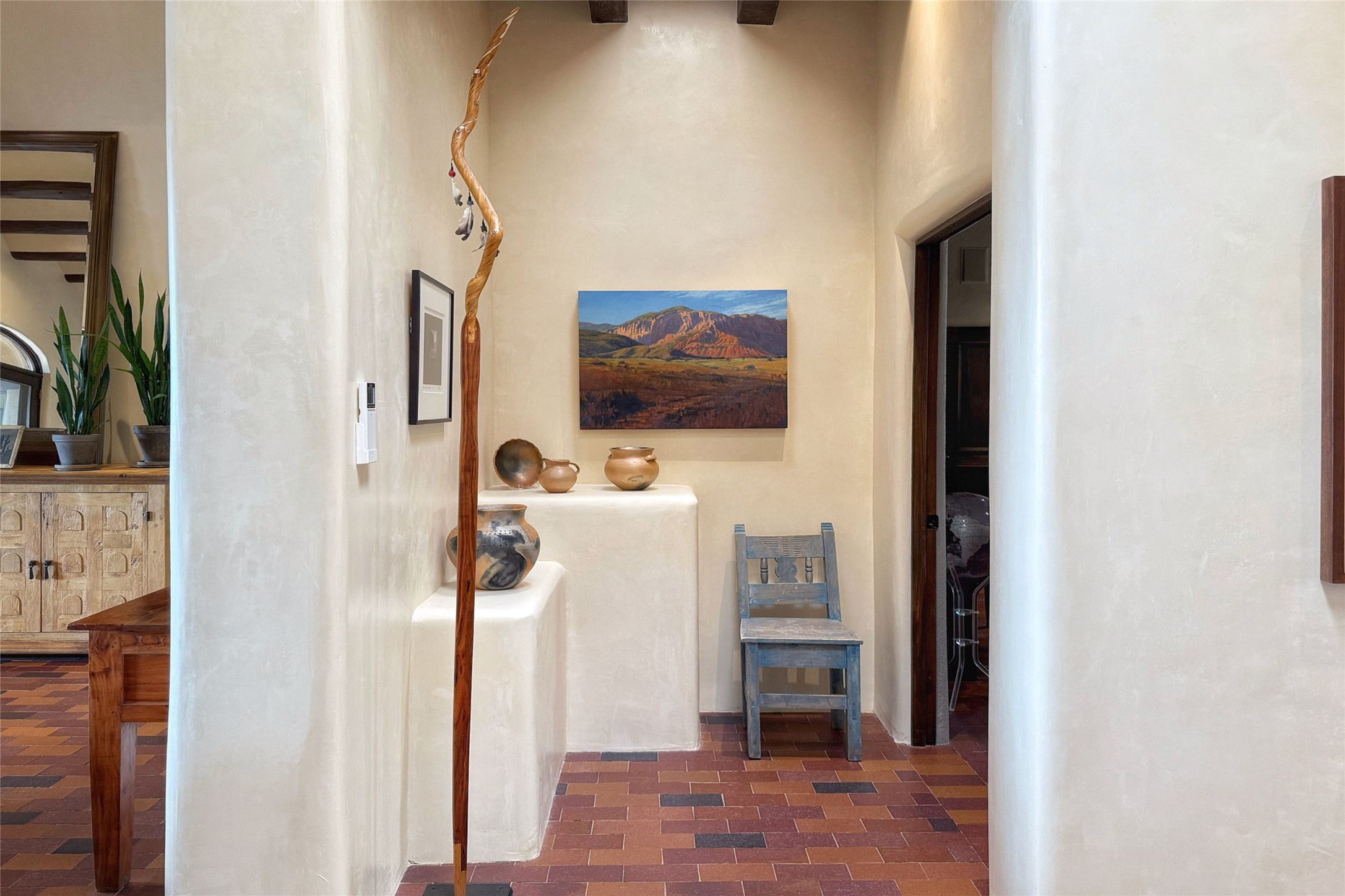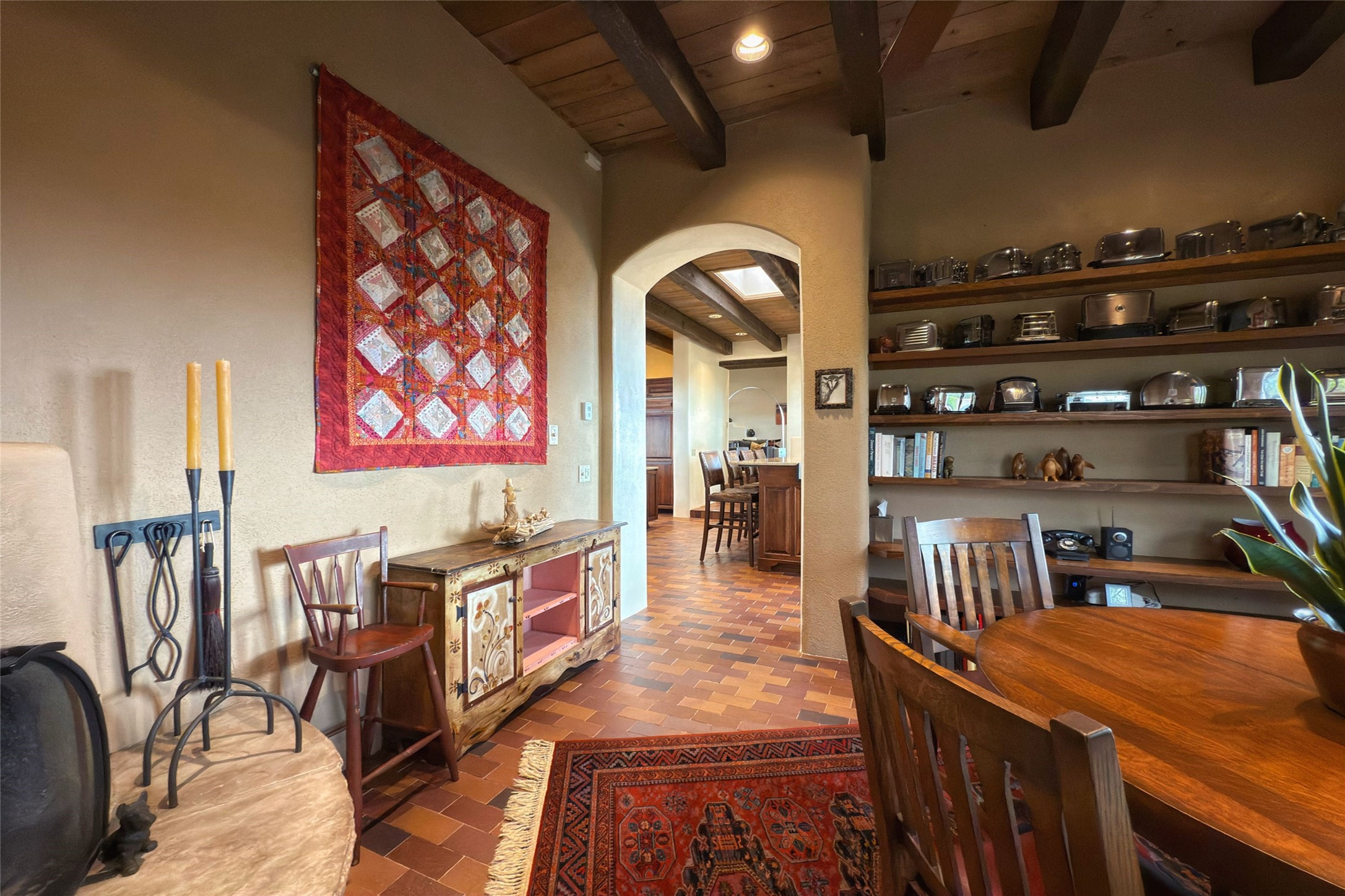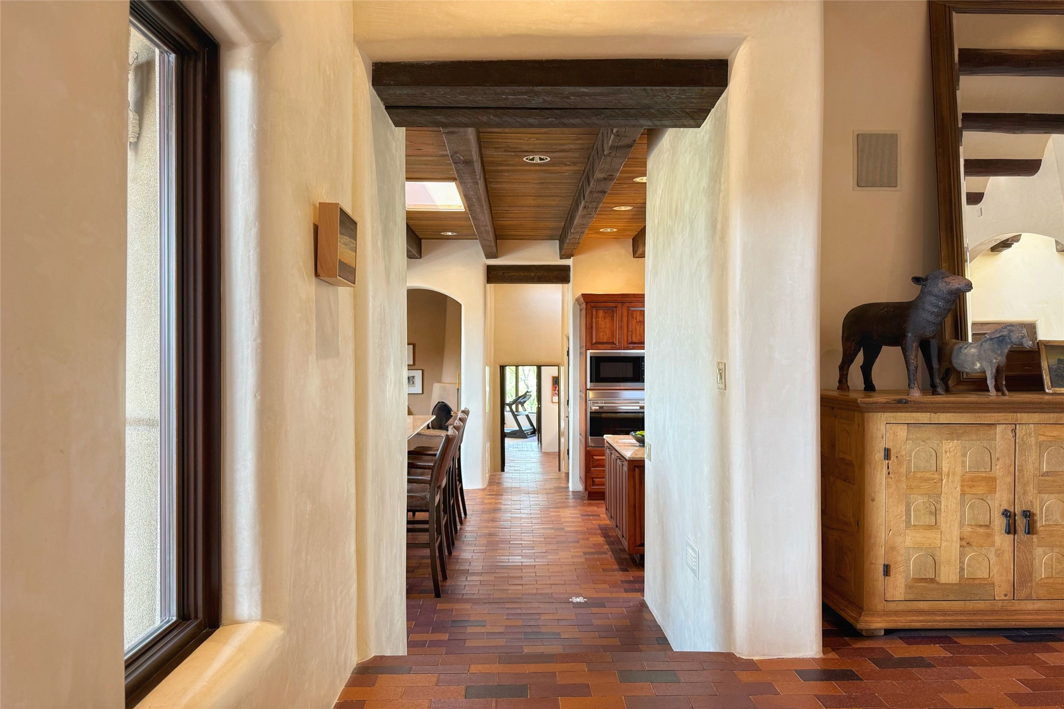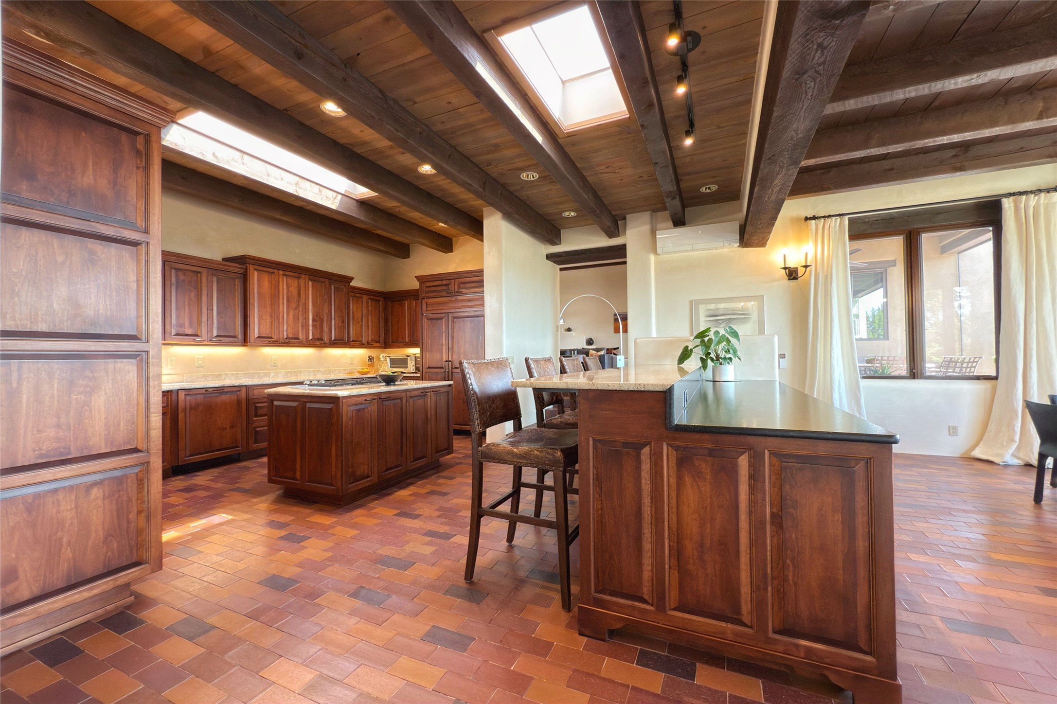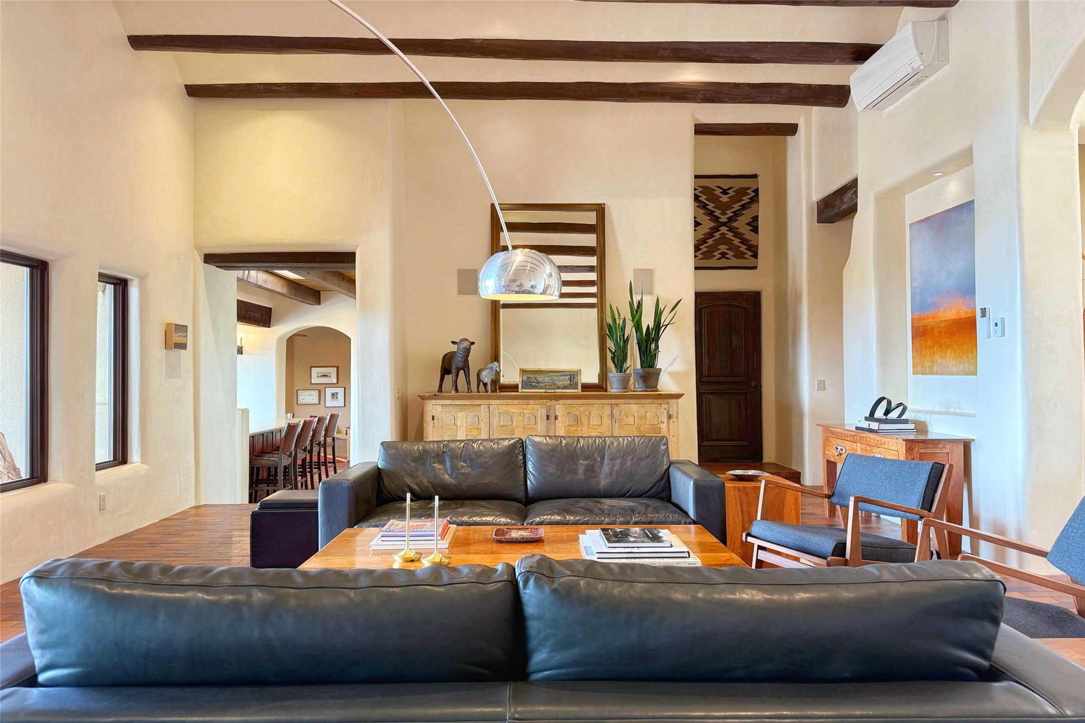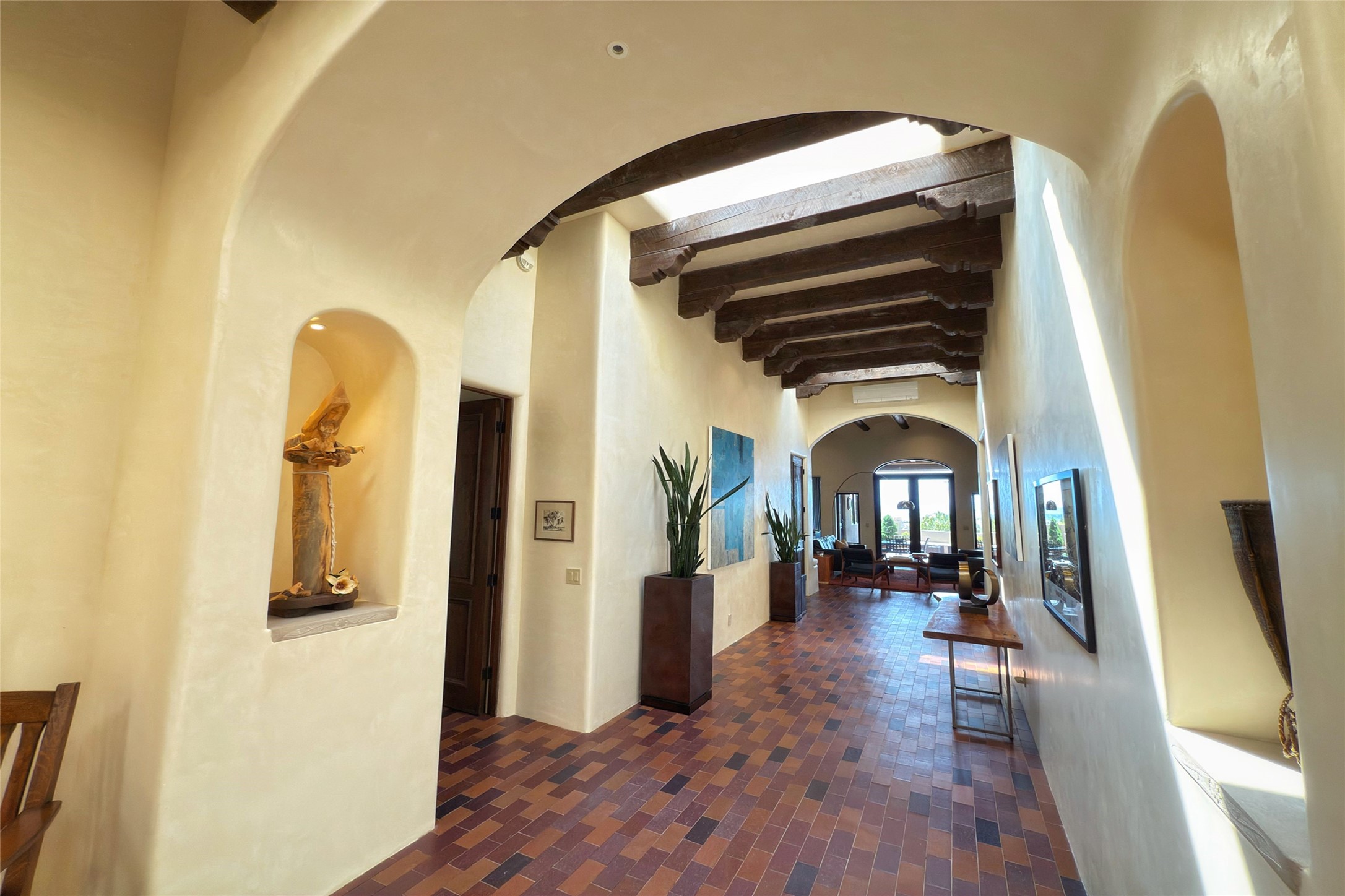 Elegant Foothills Estate with Sangre and Jemez Mountain Views in La CanteraThis exceptional residence is nestled within the prestigious, gated enclave of La Cantera--just moments from the world-class galleries and dining of Canyon Road and the Plaza. Designed for refined living and grand-scale entertaining, the home blends traditional Santa Fe architecture with timeless luxury and sweeping mountain vistas.Enter into a gated courtyard with mature landscaping. A gracious reception and a dramatic gallery hallway lead to an expansive great room with soaring beamed ceilings, one of five fireplaces, and panoramic views. The heart of the home is a spacious open-concept kitchen and dining area, offering breathtaking landscape views. Multiple outdoor living spaces, including a portal with fireplace are ideal for alfresco dining or sunset gatherings. The generous primary suite features a cozy fireplace, walk-in closet, sitting room, and courtyard access. Guests are accommodated in an ensuite bedroom with fireplace and private courtyard. The large studio, currently used as a gym, is ensuite and has a north-facing picture window. There is also outside entry making this space perfect for additional guests or an office. More highlights include a versatile media/office room ensuite with an adjoining sunroom, a wet bar with adjacent wine storage space, a cozy breakfast room, and a workshop off the garage.Set on a private, beautifully landscaped lot with mature trees and tranquil outdoor spaces, this is a rare opportunity to own a remarkable residence in one of Santa Fe's most sought-after communities.